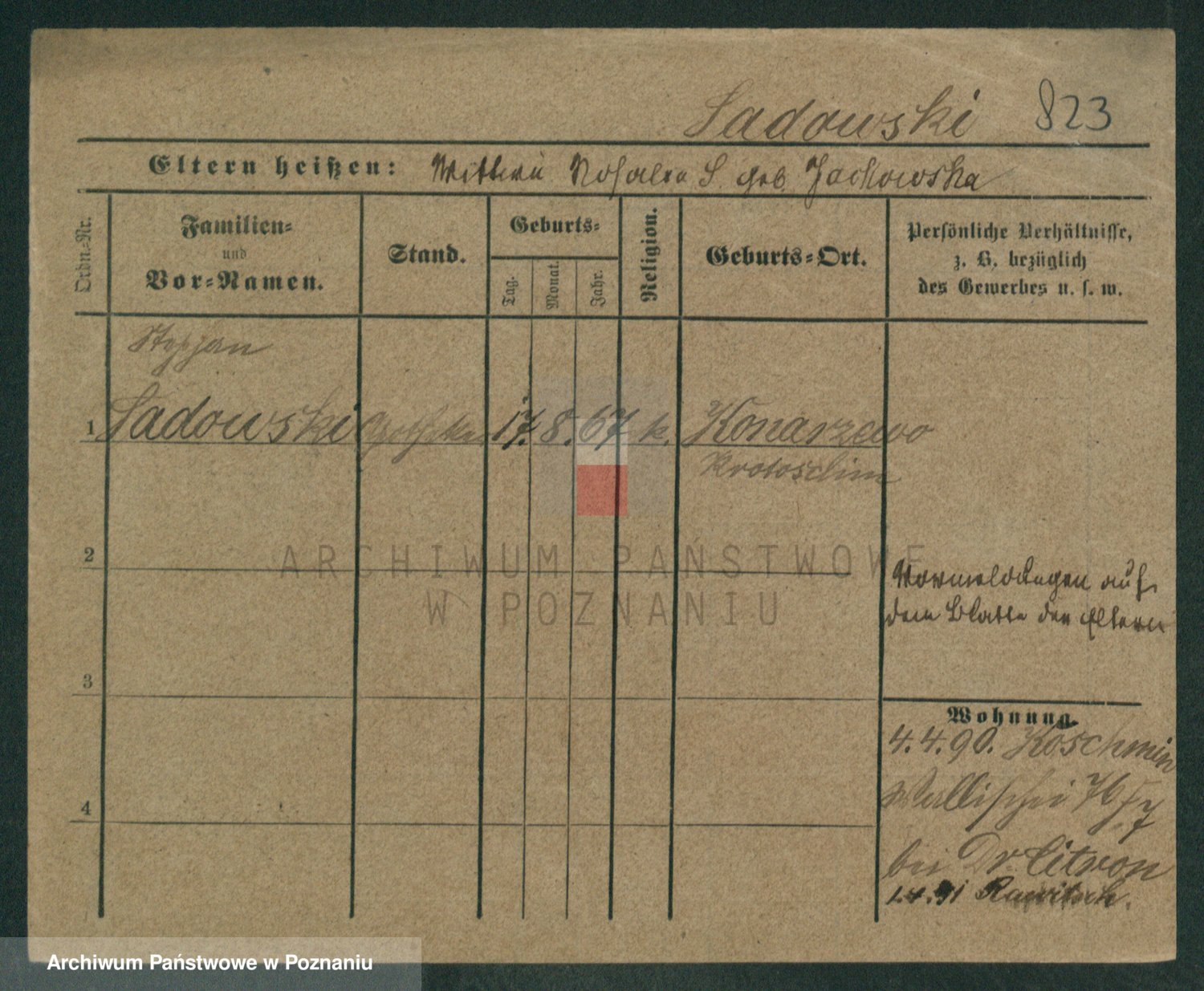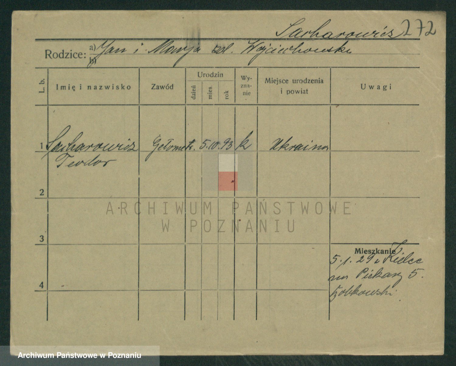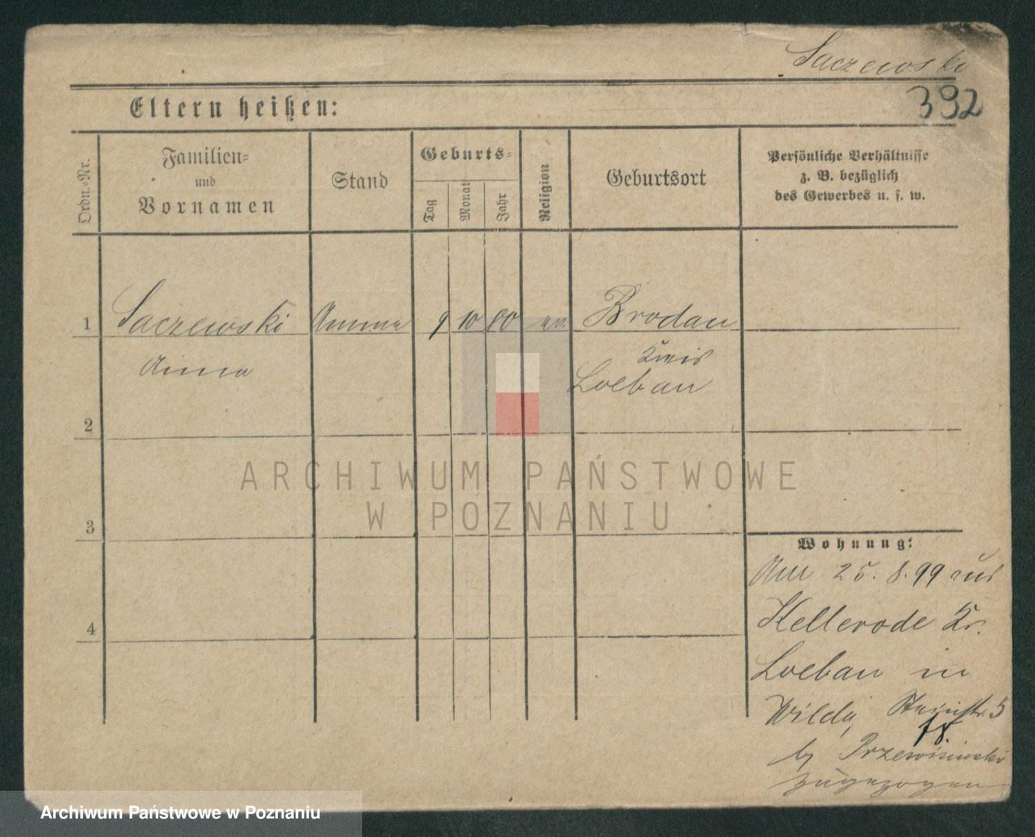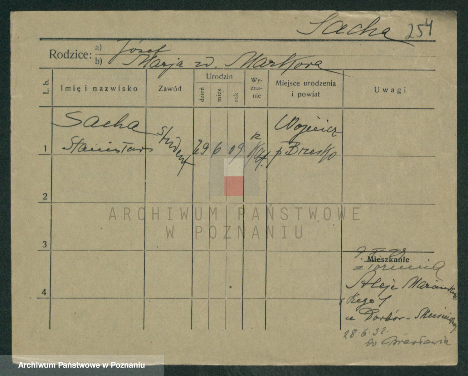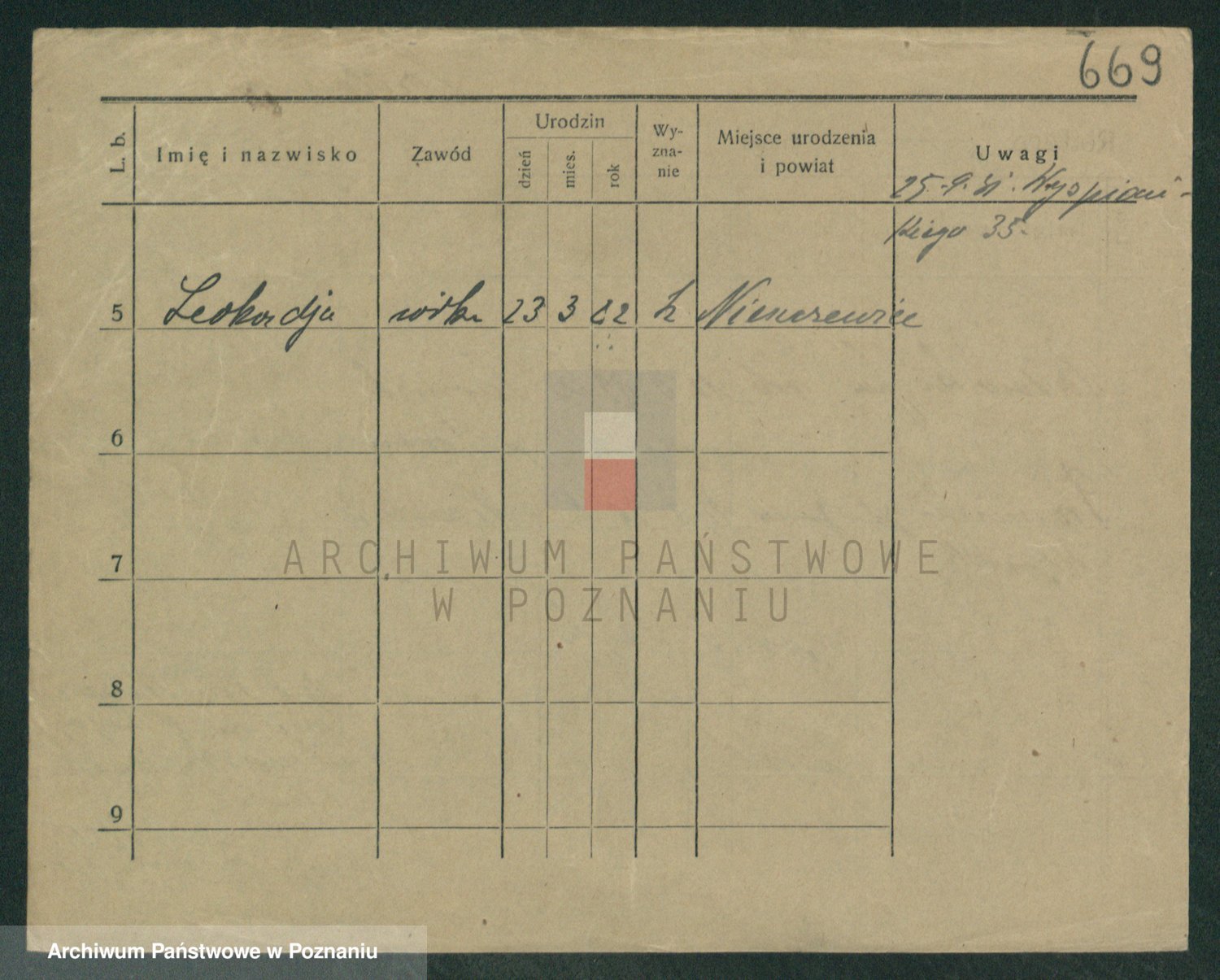 Podgląd karty osobowej dostępny jest po kliknięciu na nazwisko lub ikonkę karty. Można dokonywać powiększenia (ikony na górze) lub przechodzić między kolejnymi skanami (strzałki po bokach).