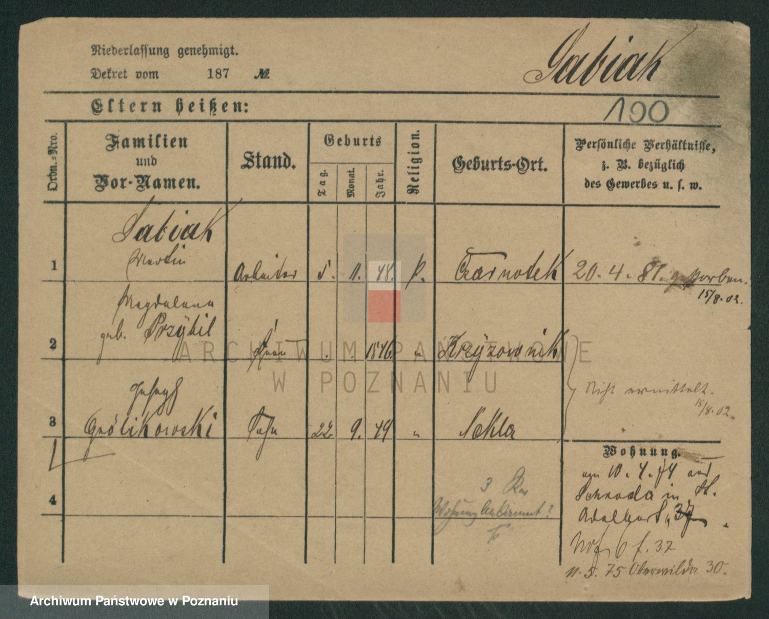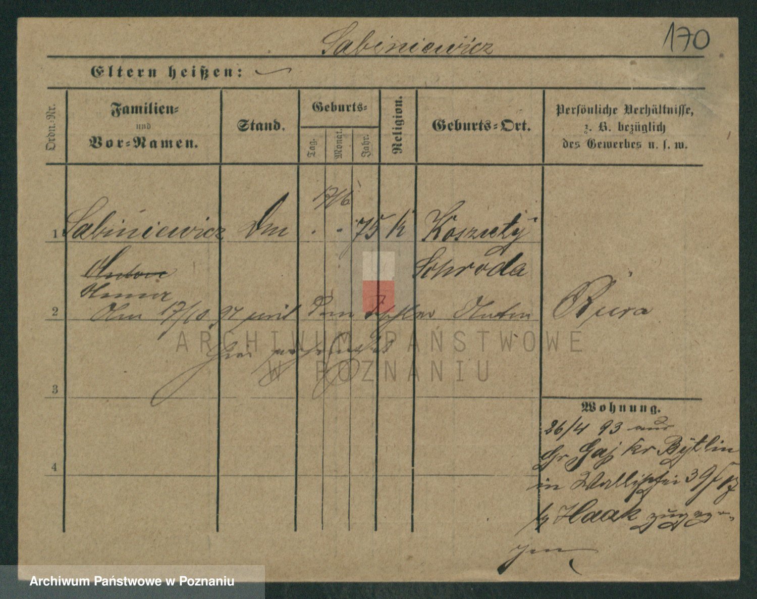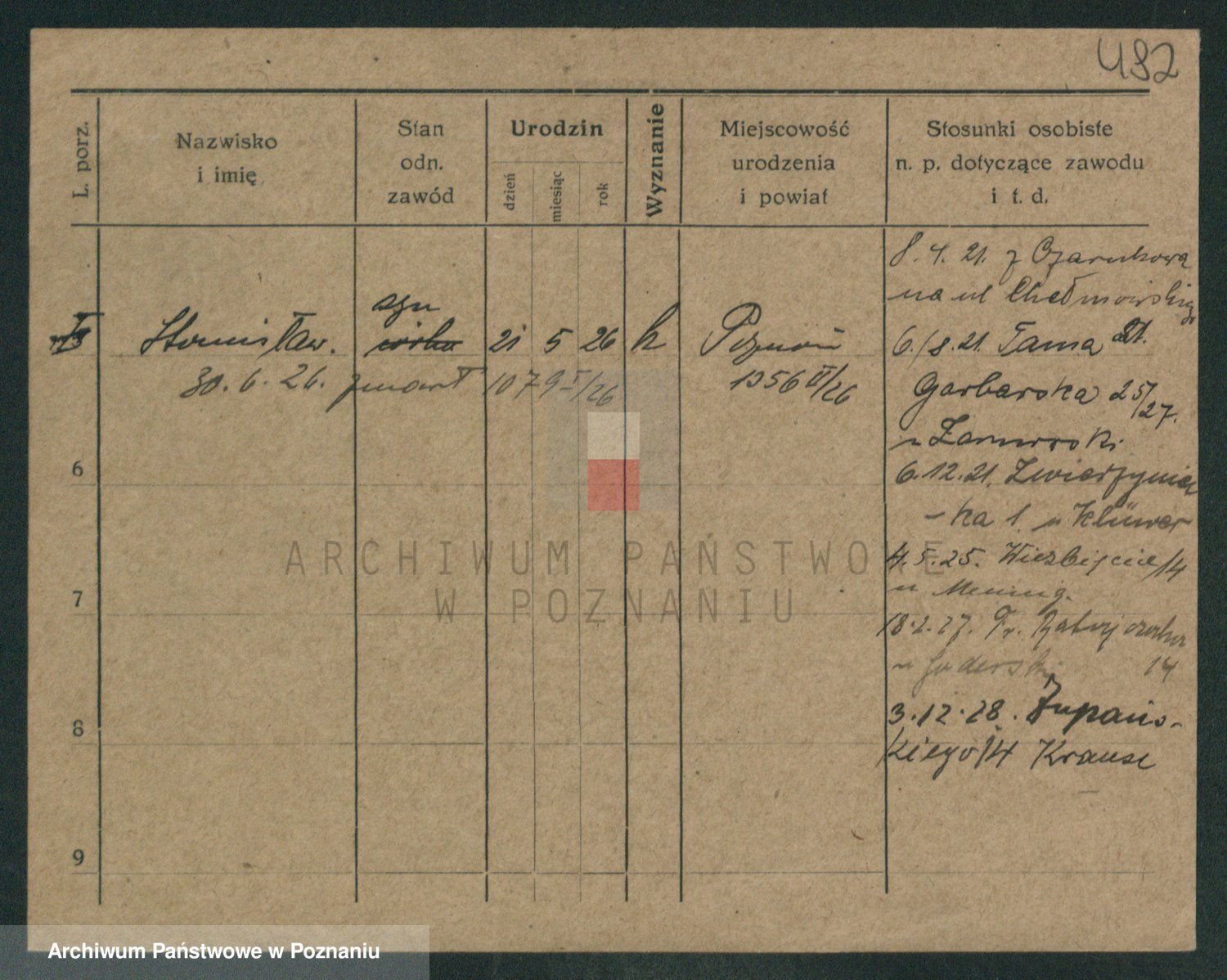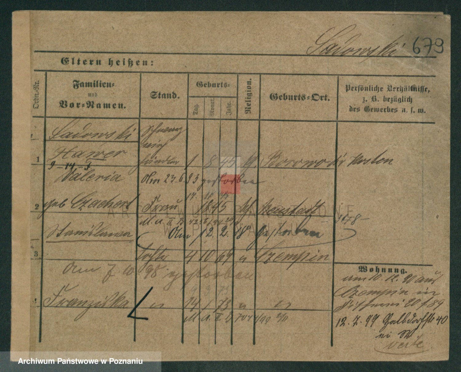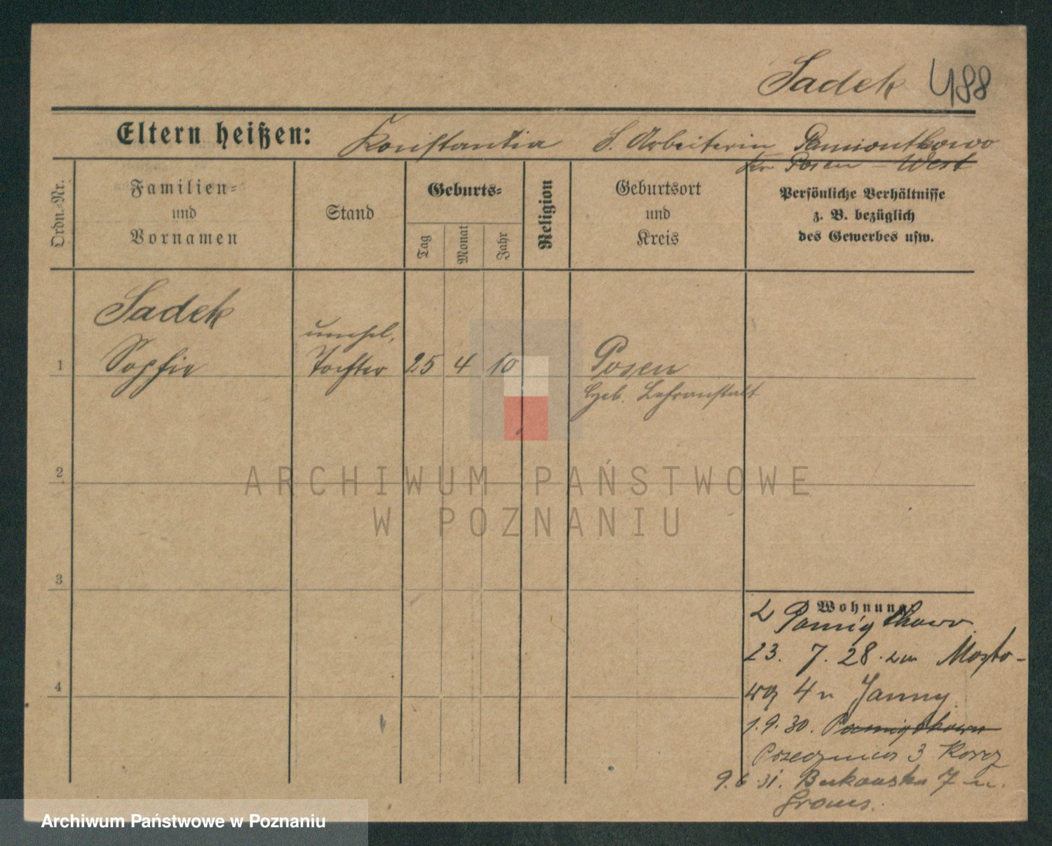 Podgląd karty osobowej dostępny jest po kliknięciu na nazwisko lub ikonkę karty. Można dokonywać powiększenia (ikony na górze) lub przechodzić między kolejnymi skanami (strzałki po bokach).