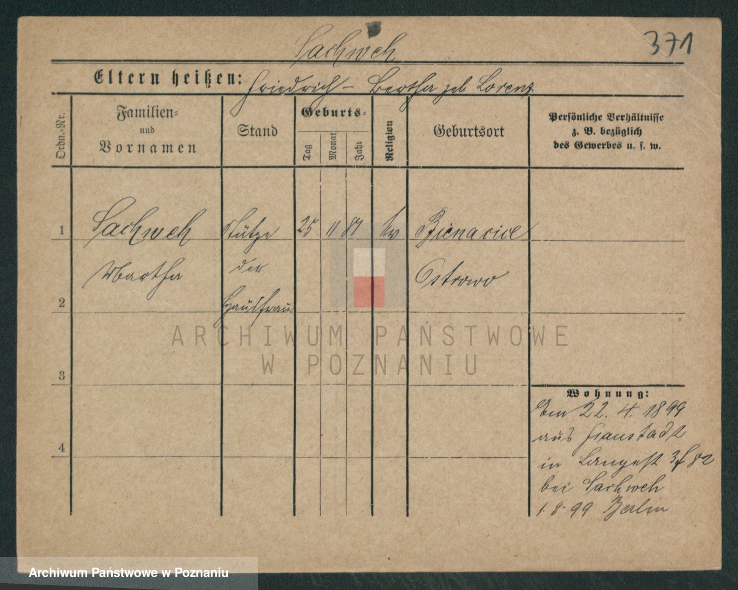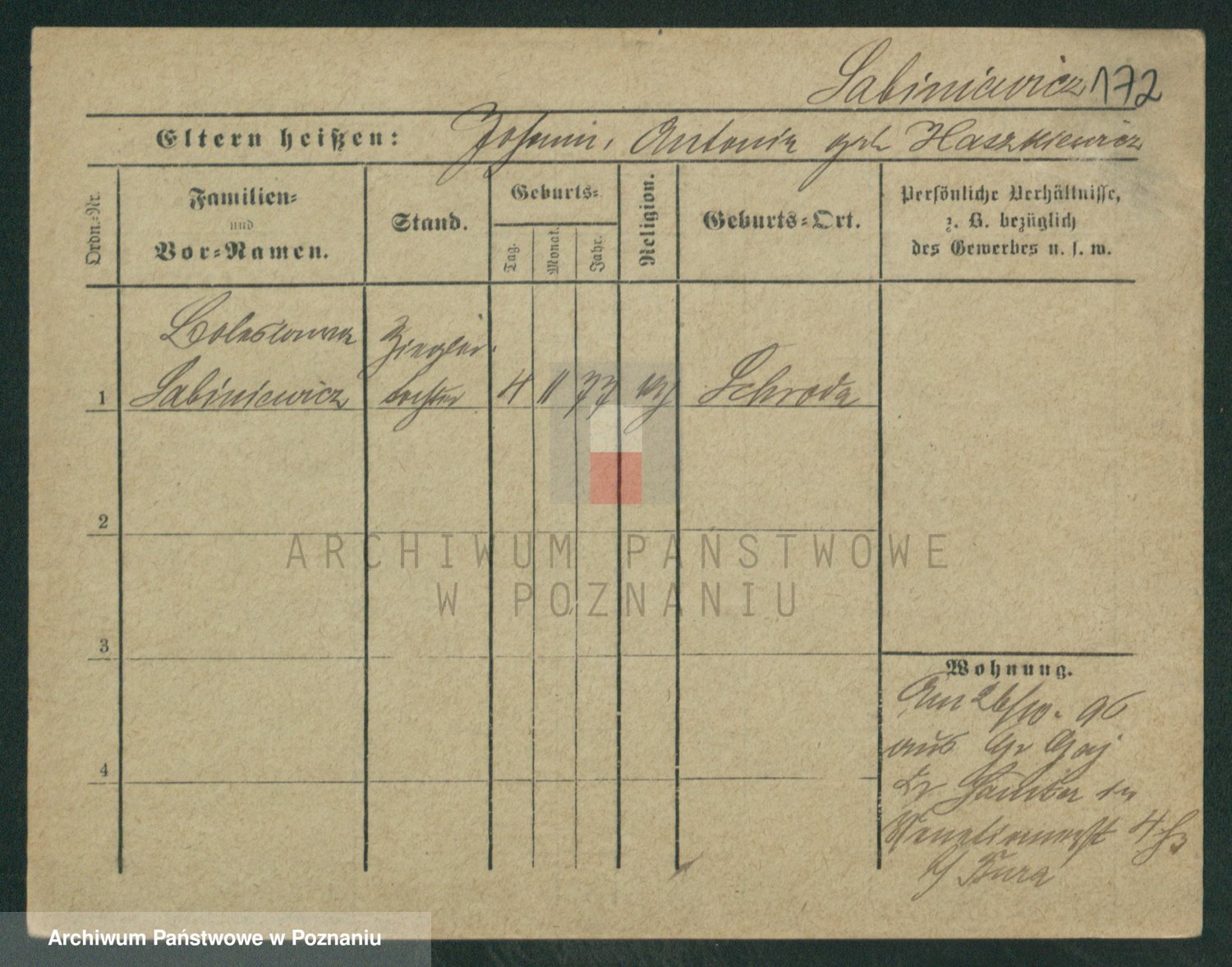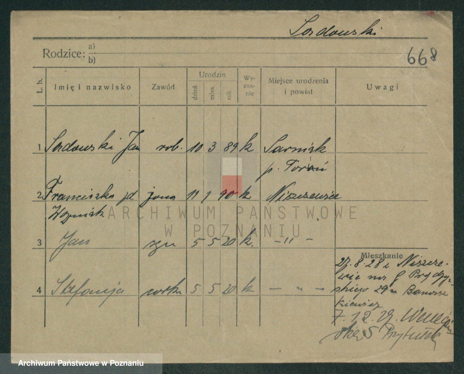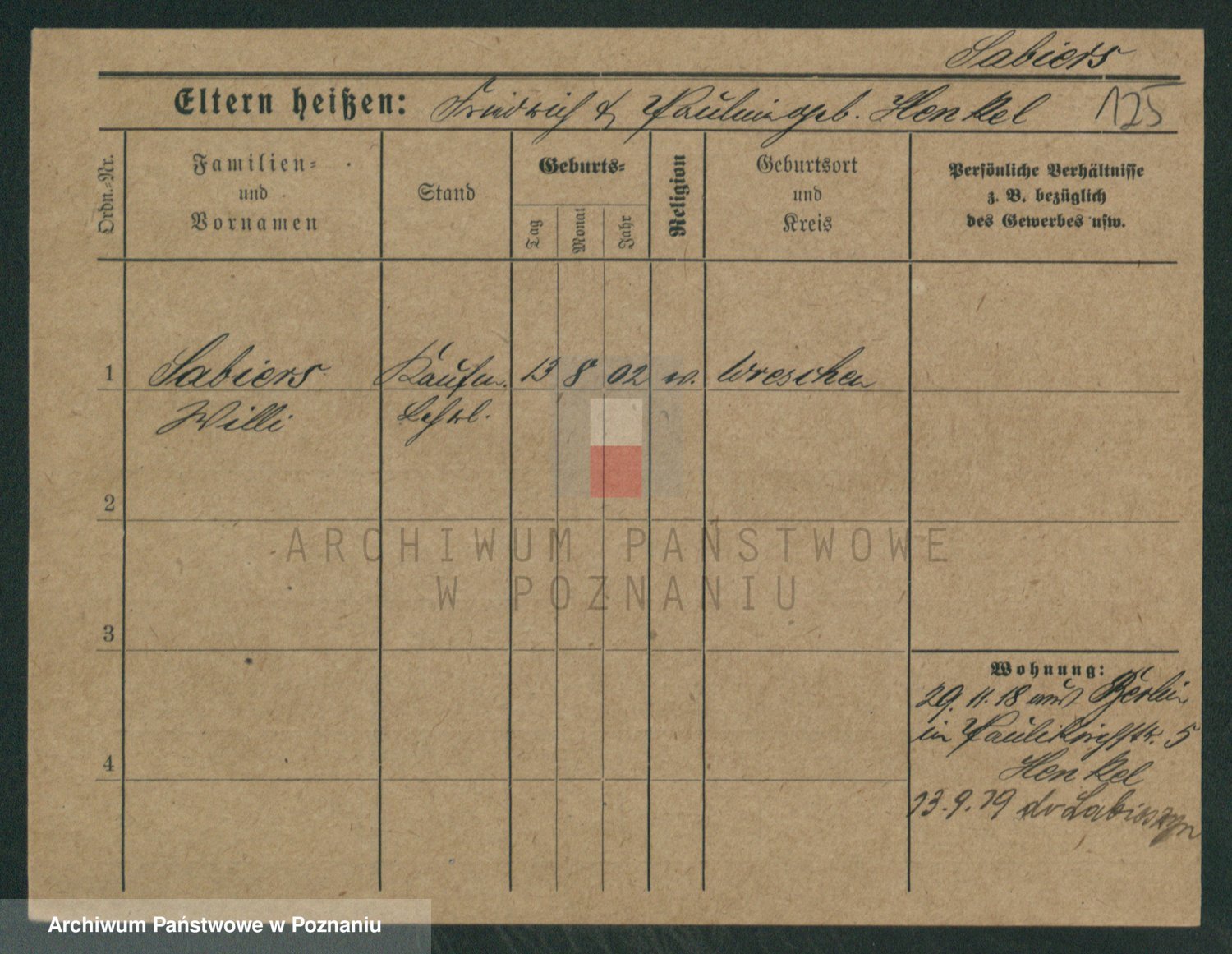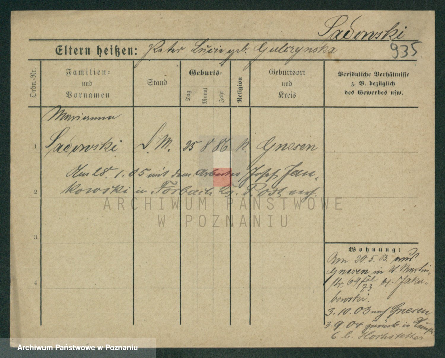 Podgląd karty osobowej dostępny jest po kliknięciu na nazwisko lub ikonkę karty. Można dokonywać powiększenia (ikony na górze) lub przechodzić między kolejnymi skanami (strzałki po bokach).