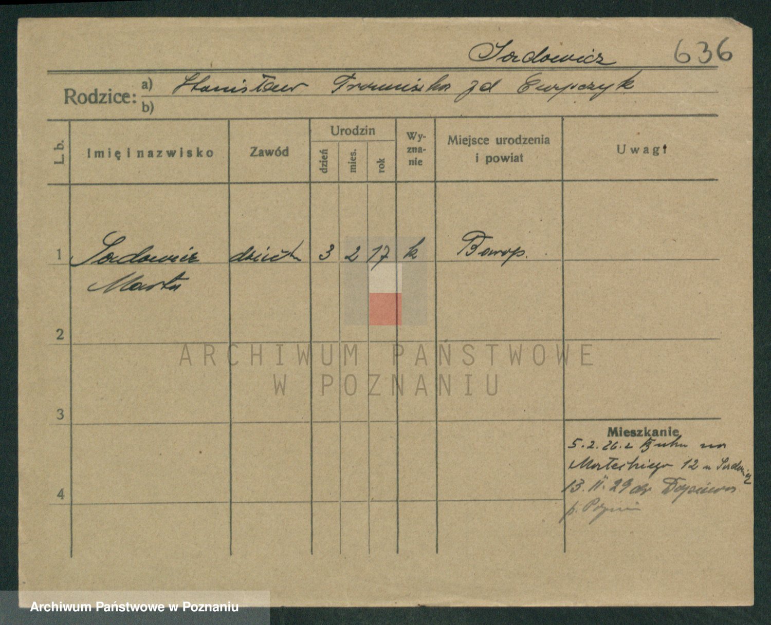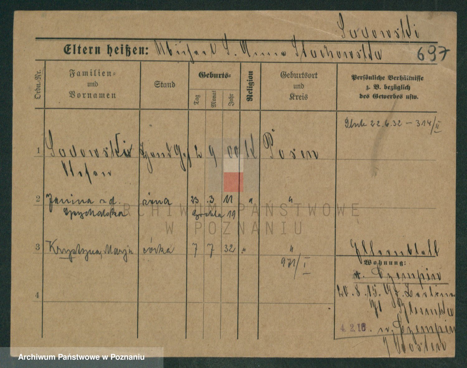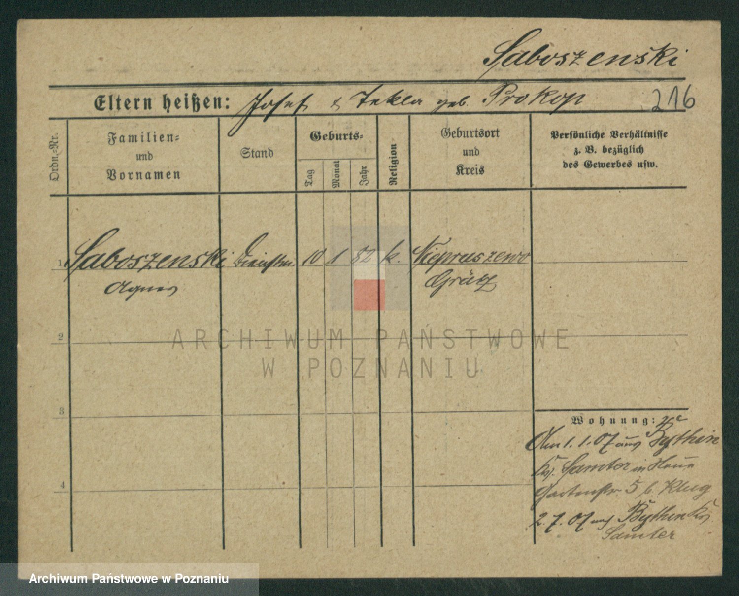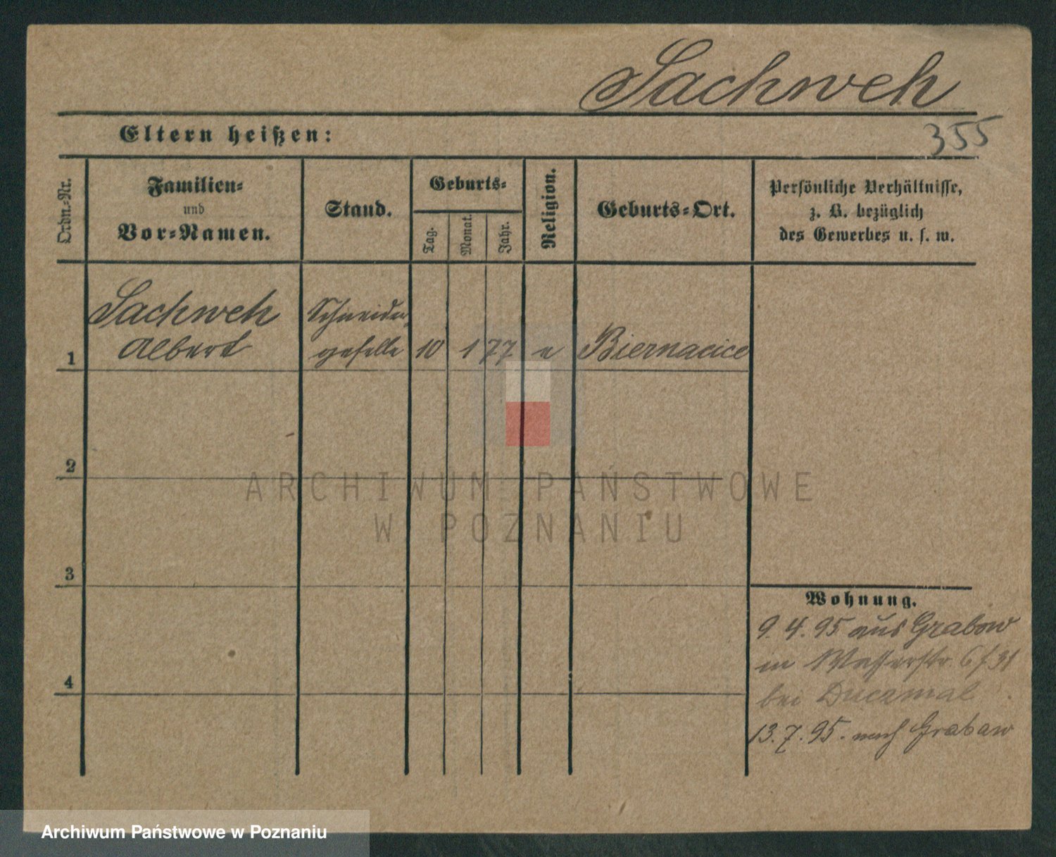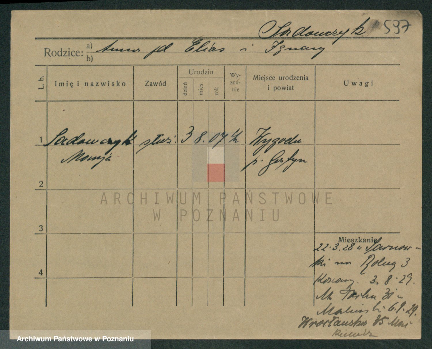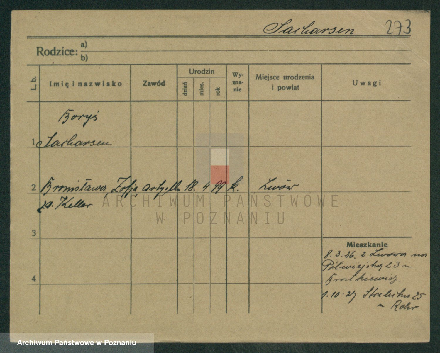 Podgląd karty osobowej dostępny jest po kliknięciu na nazwisko lub ikonkę karty. Można dokonywać powiększenia (ikony na górze) lub przechodzić między kolejnymi skanami (strzałki po bokach).