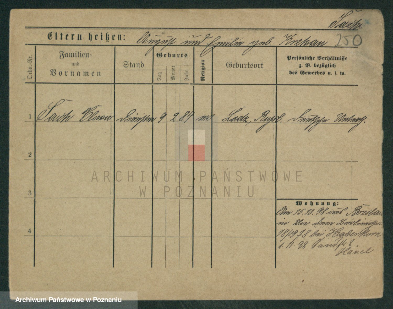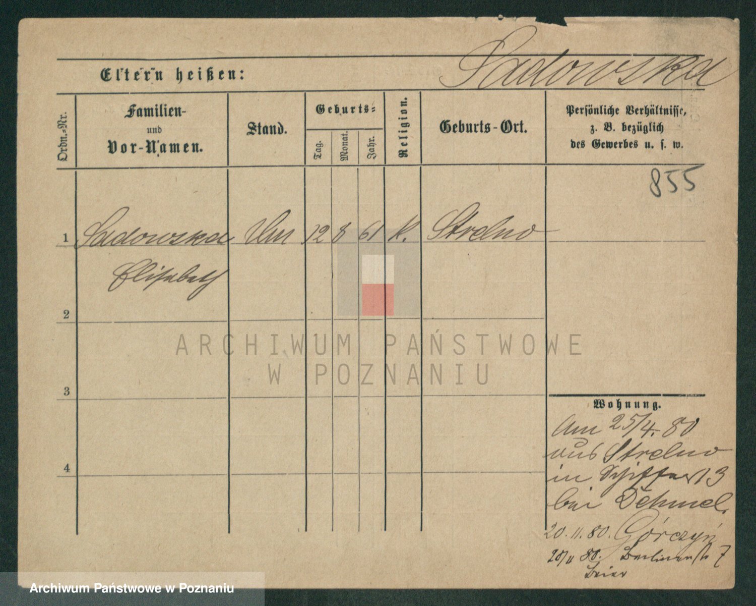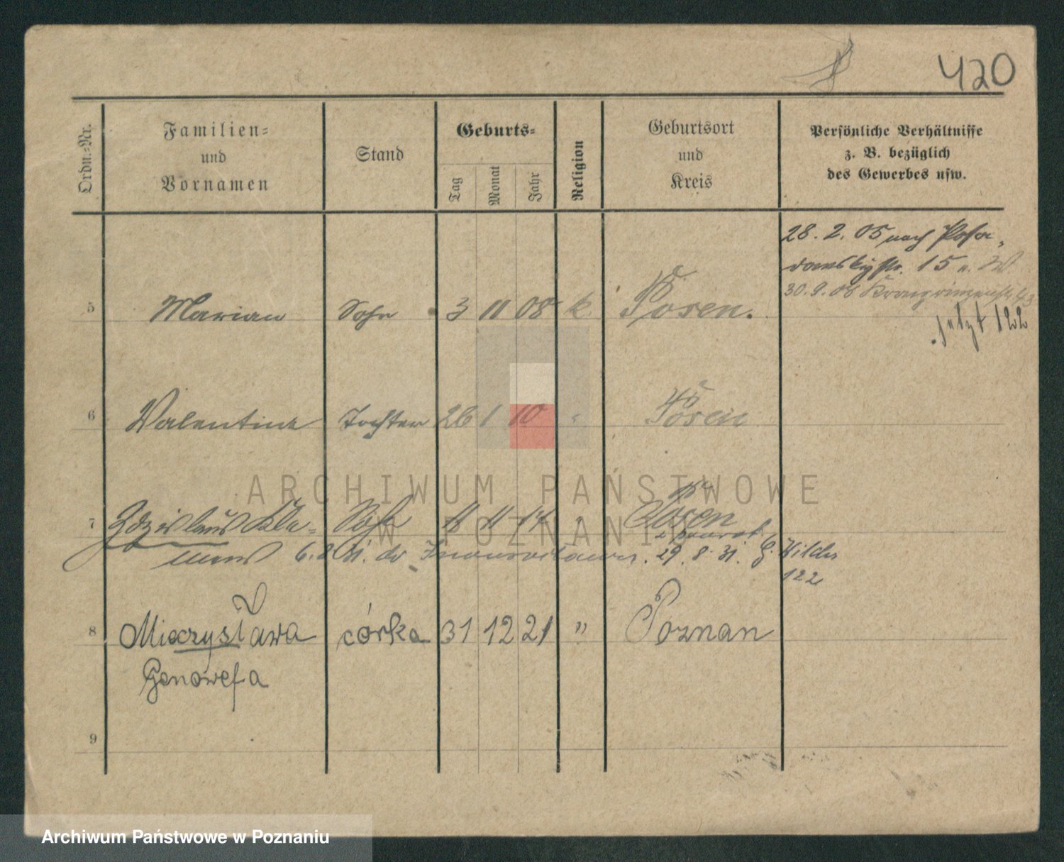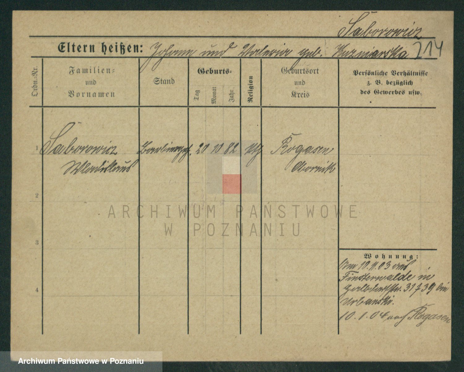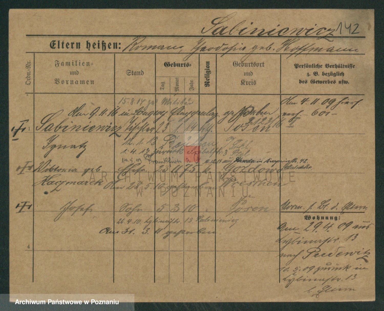 Podgląd karty osobowej dostępny jest po kliknięciu na nazwisko lub ikonkę karty. Można dokonywać powiększenia (ikony na górze) lub przechodzić między kolejnymi skanami (strzałki po bokach).