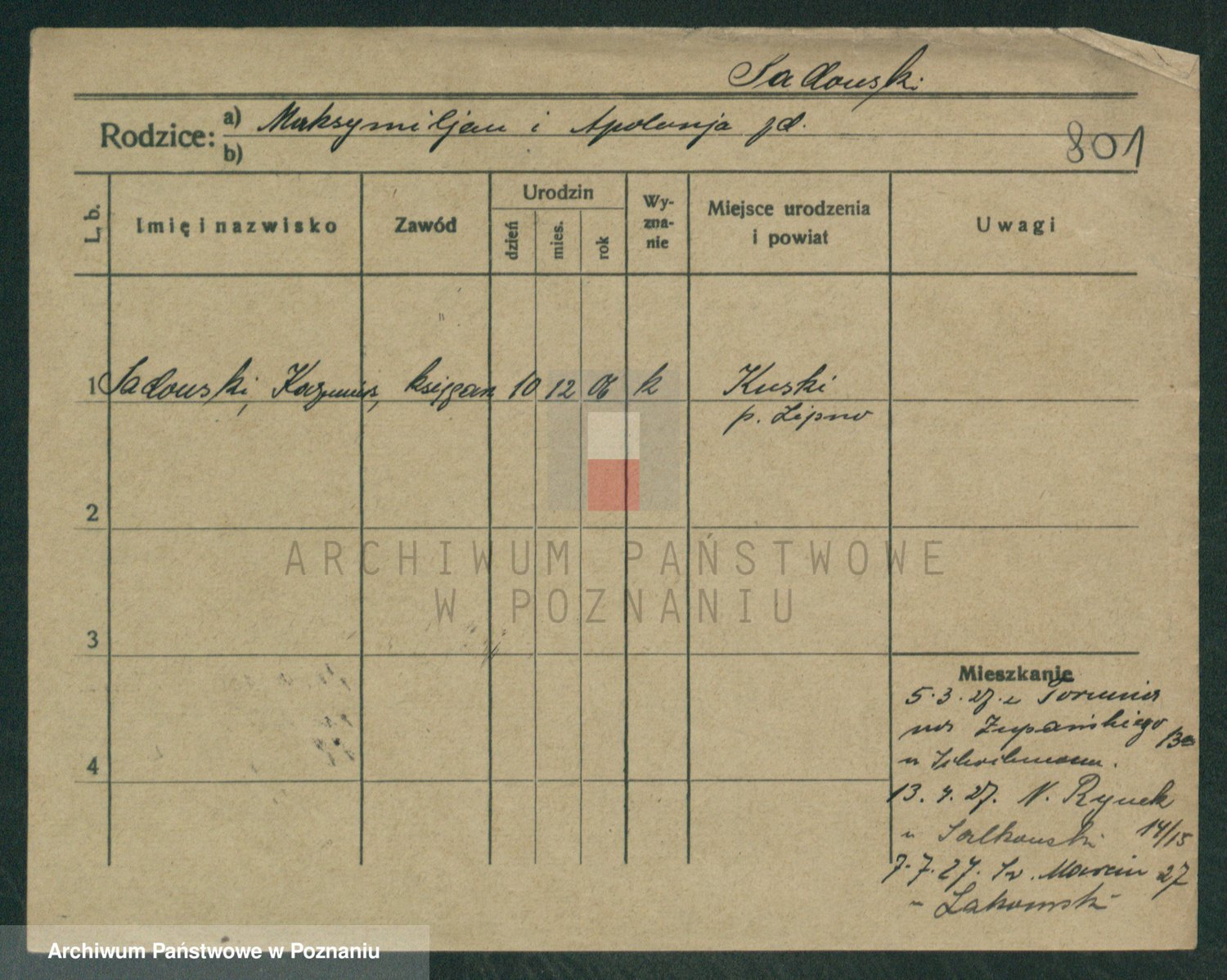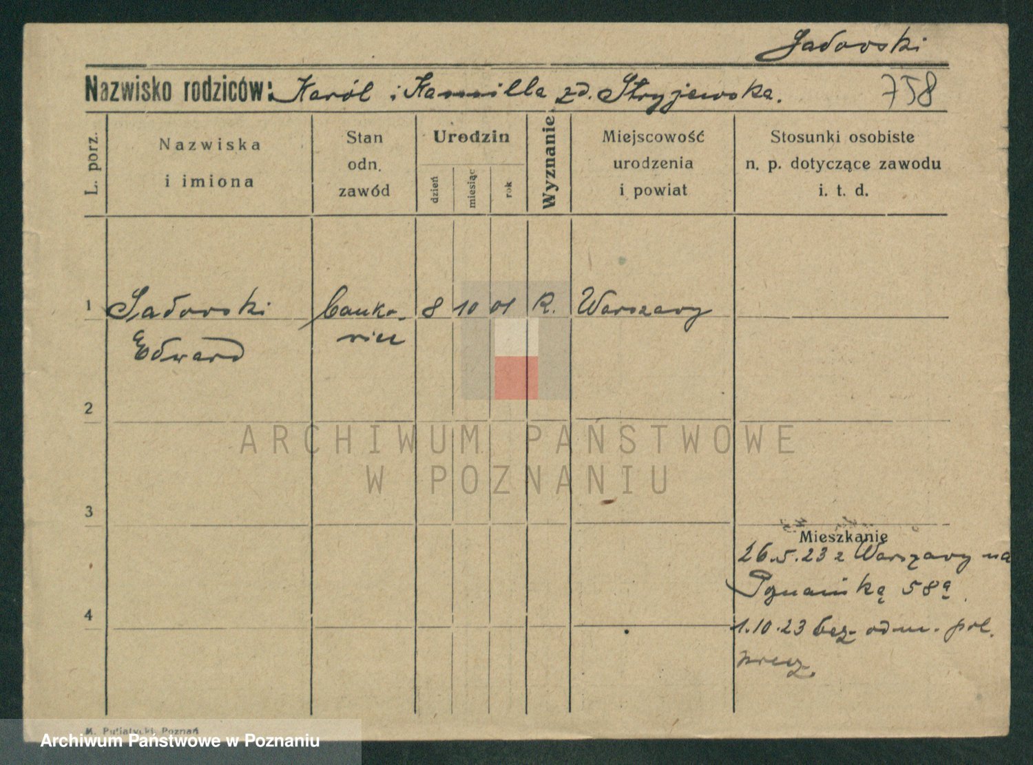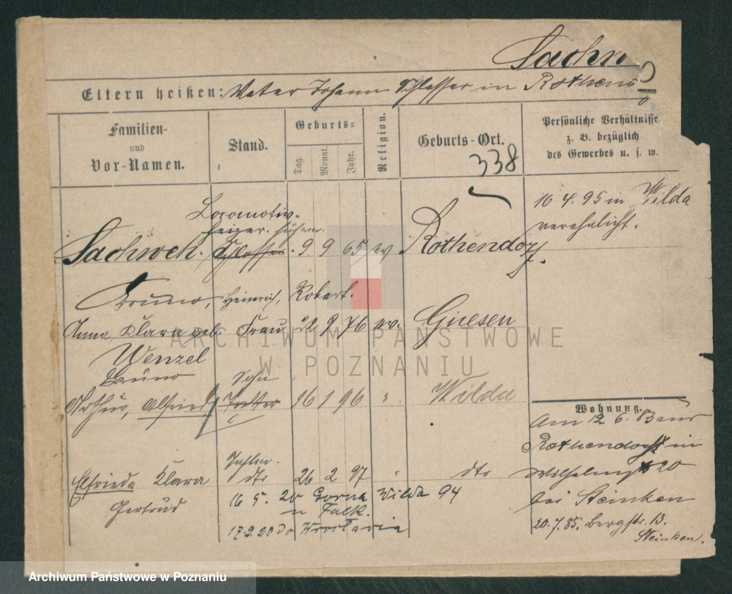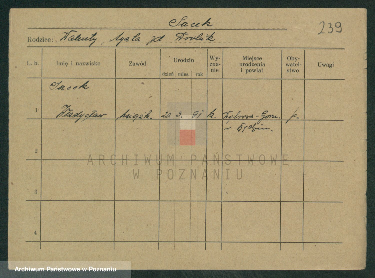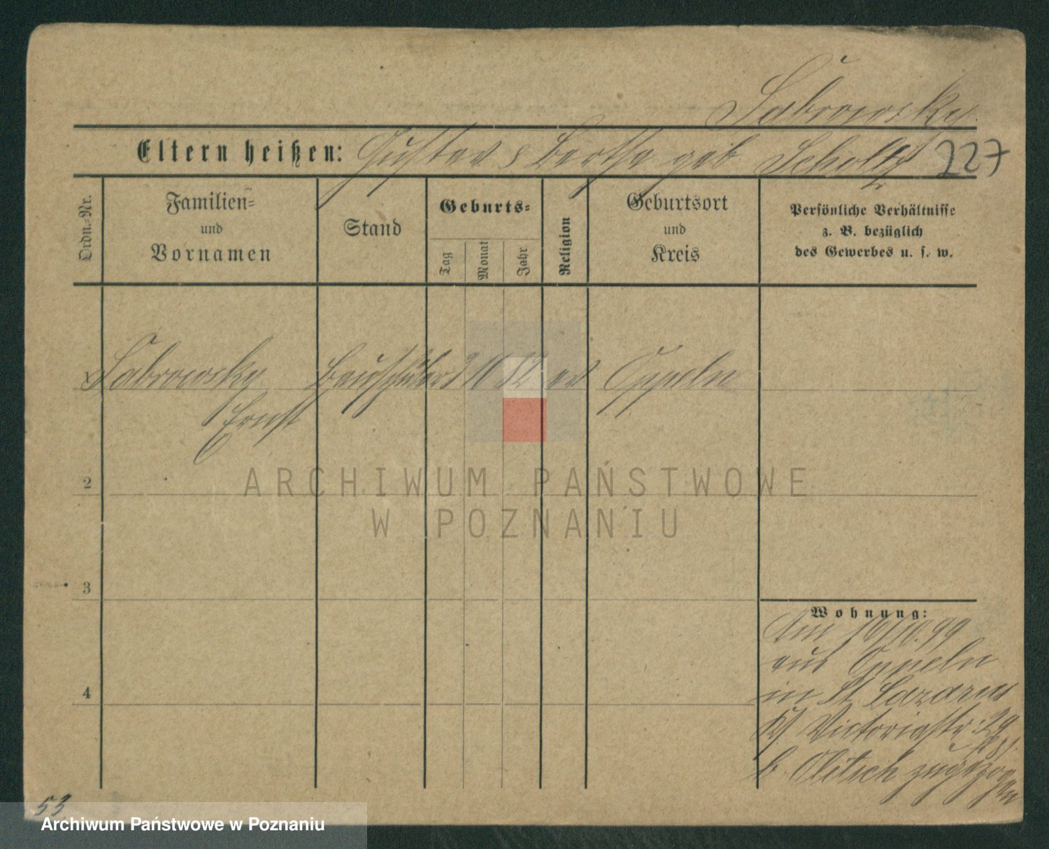 Podgląd karty osobowej dostępny jest po kliknięciu na nazwisko lub ikonkę karty. Można dokonywać powiększenia (ikony na górze) lub przechodzić między kolejnymi skanami (strzałki po bokach).