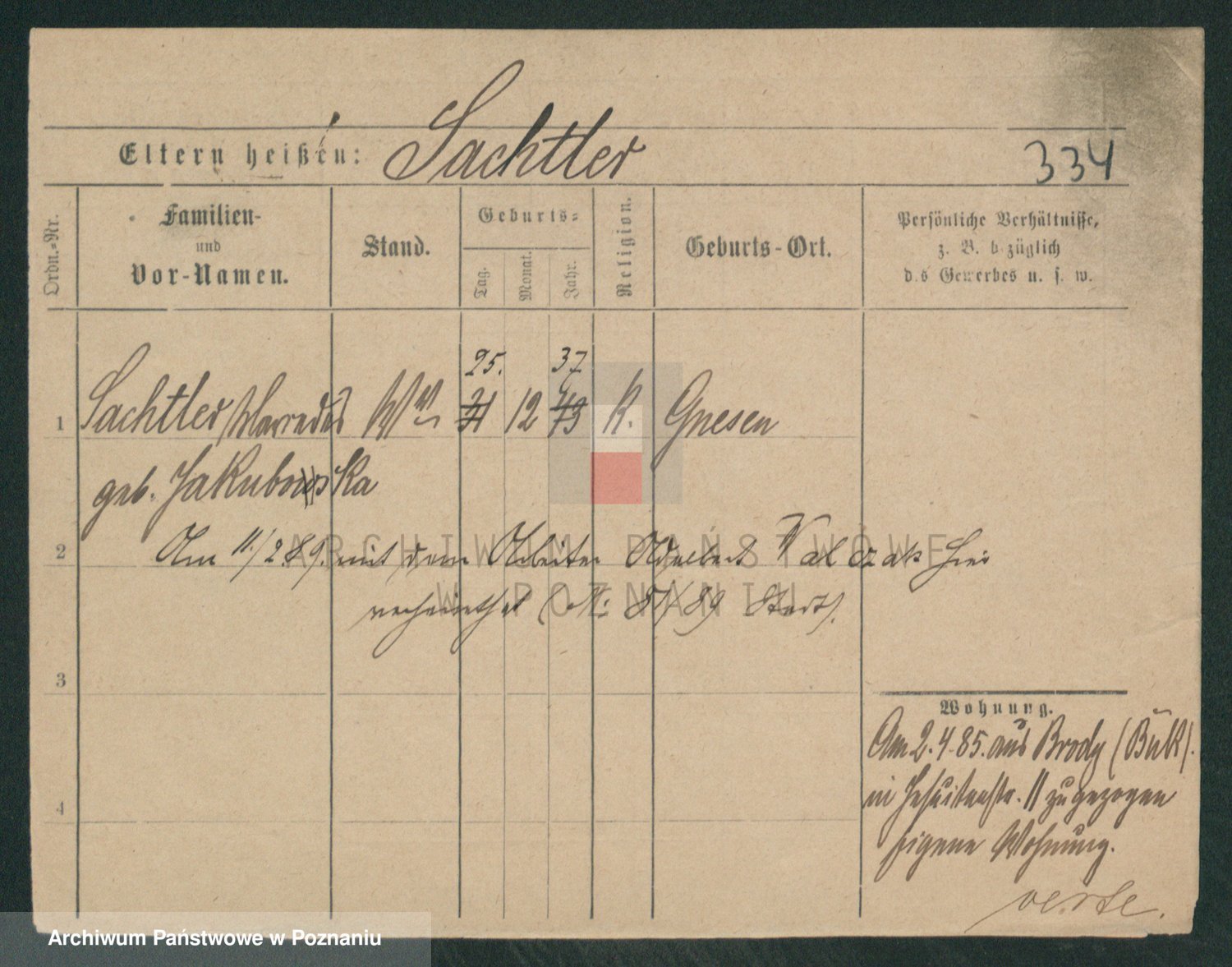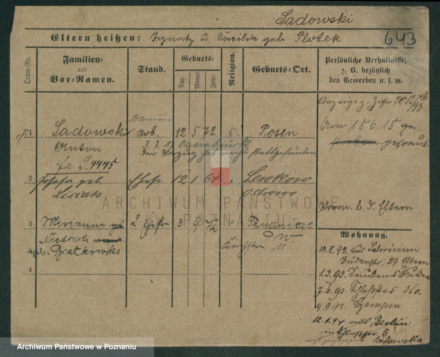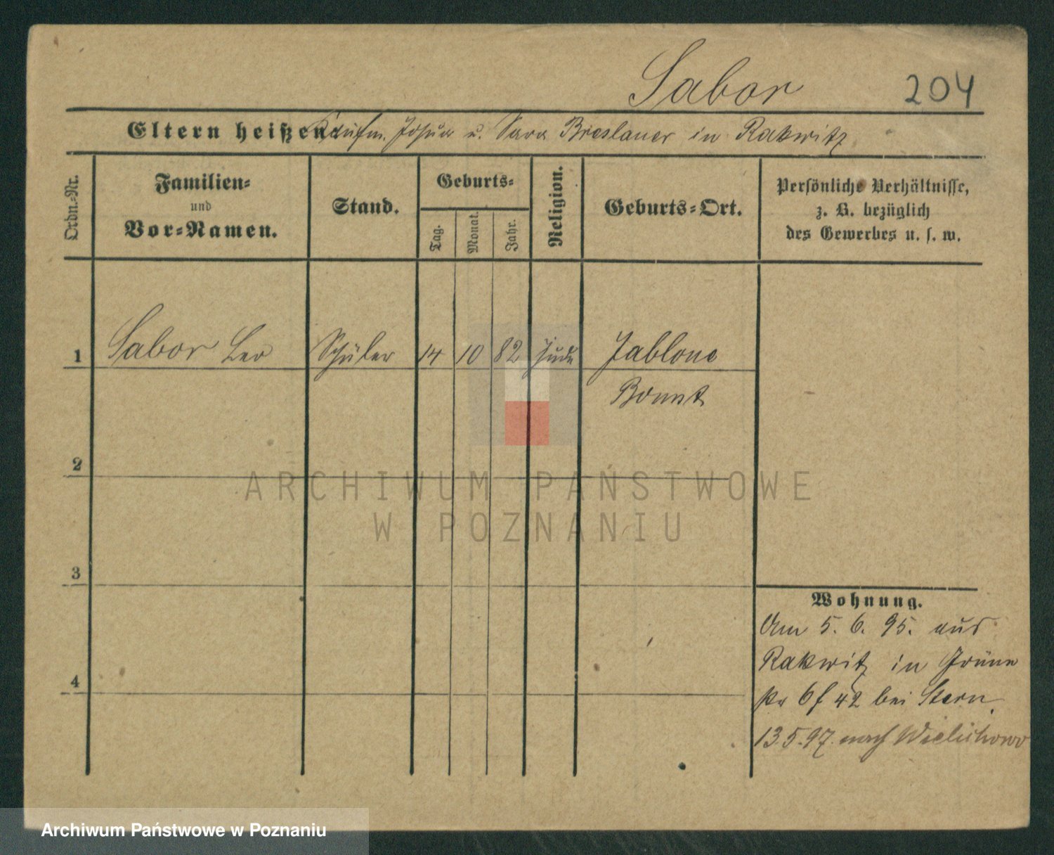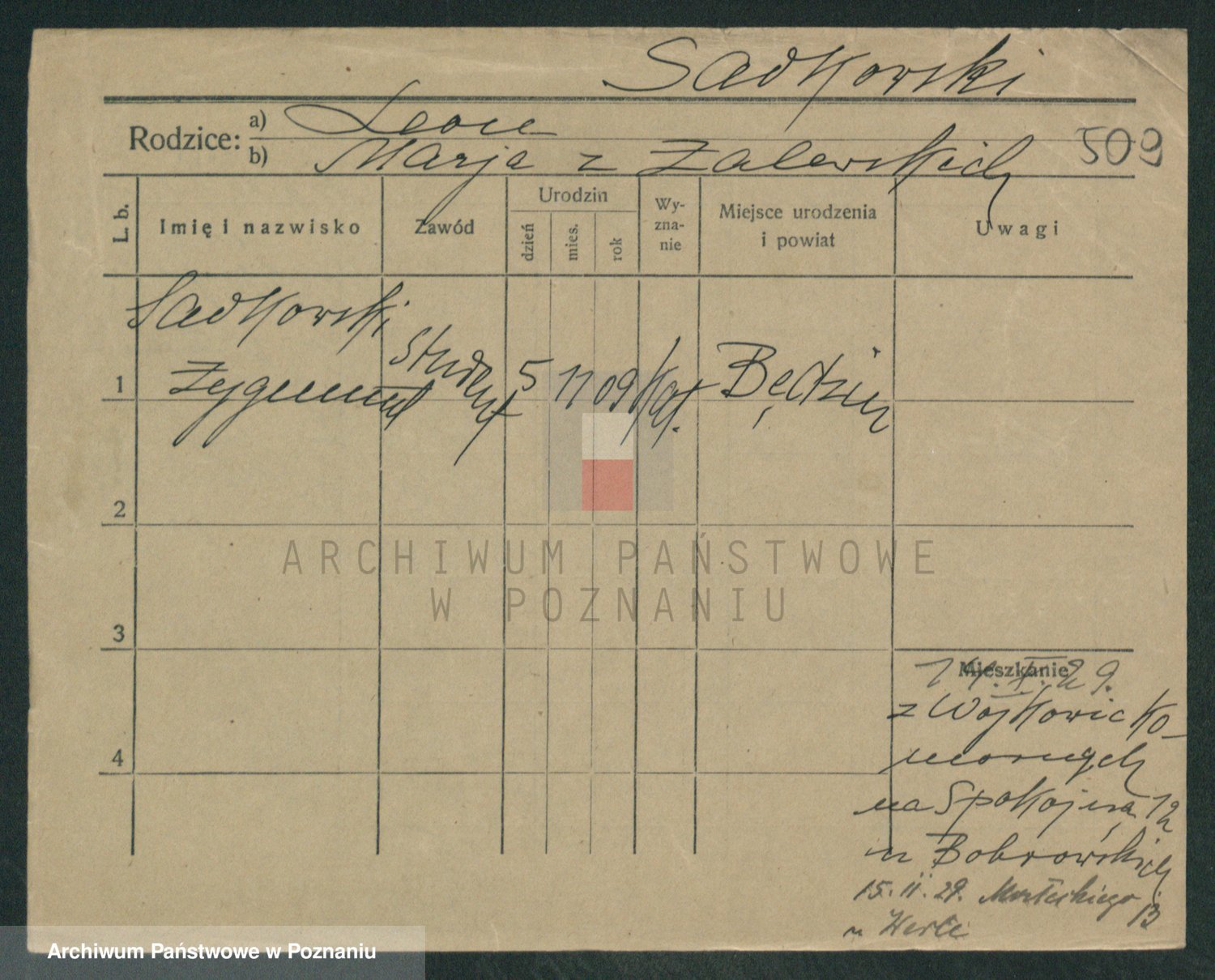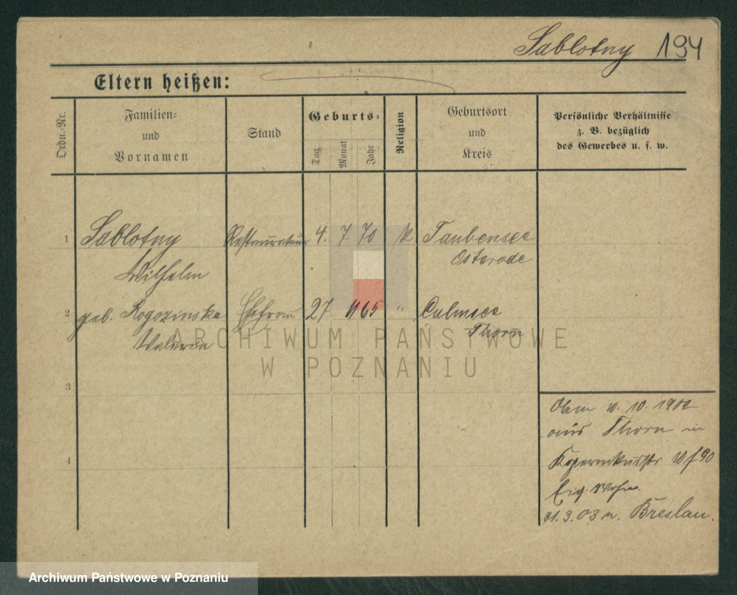 Podgląd karty osobowej dostępny jest po kliknięciu na nazwisko lub ikonkę karty. Można dokonywać powiększenia (ikony na górze) lub przechodzić między kolejnymi skanami (strzałki po bokach).