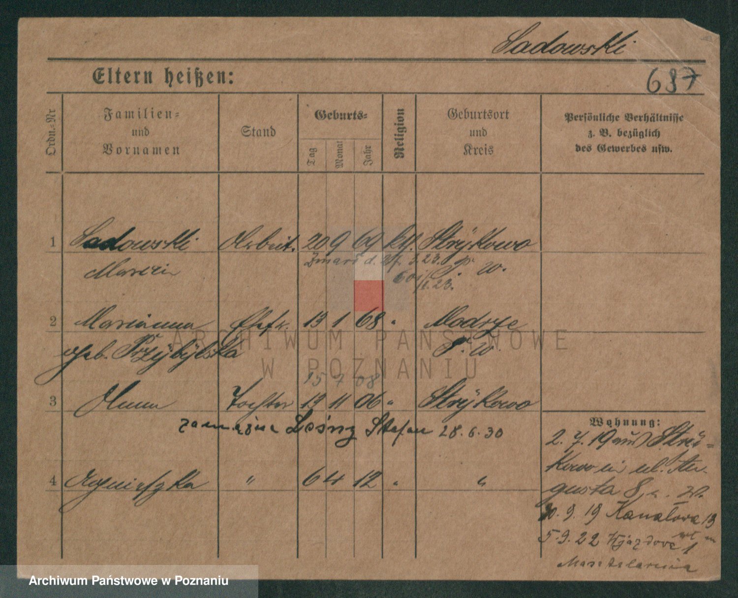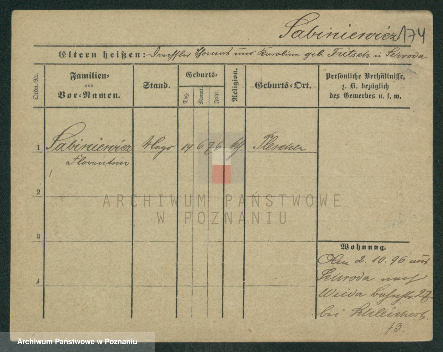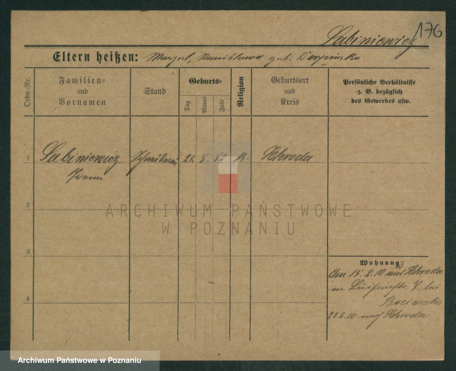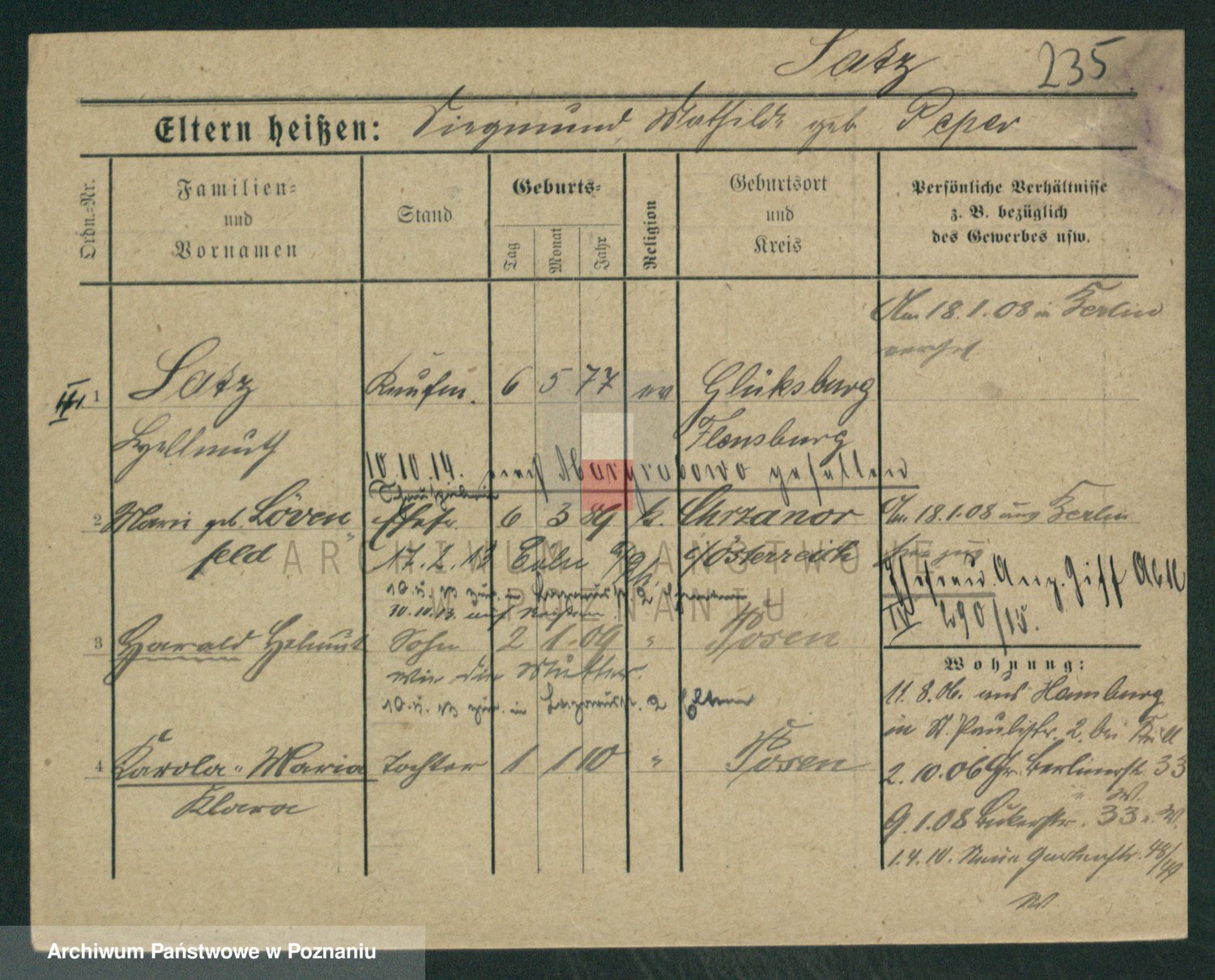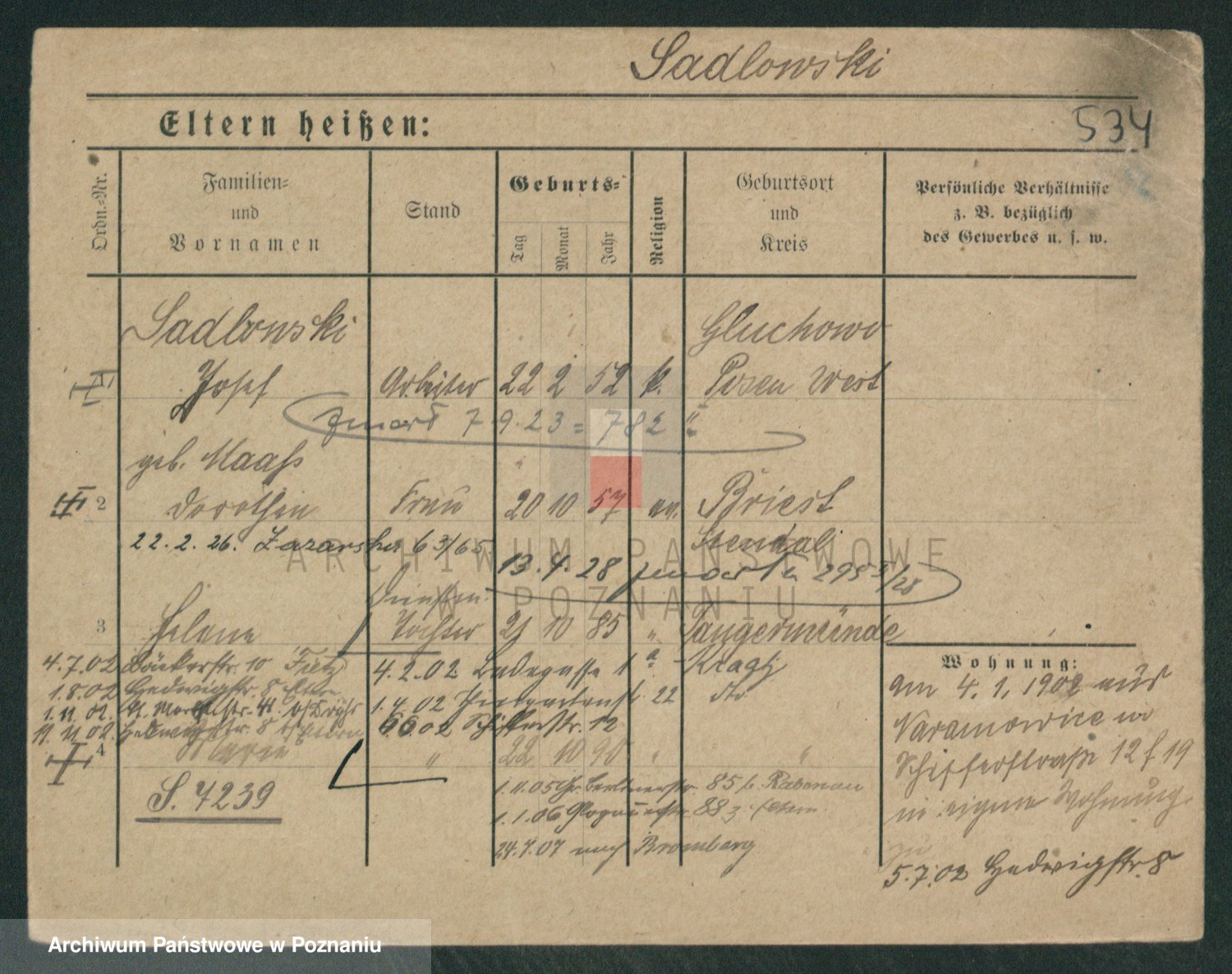 Podgląd karty osobowej dostępny jest po kliknięciu na nazwisko lub ikonkę karty. Można dokonywać powiększenia (ikony na górze) lub przechodzić między kolejnymi skanami (strzałki po bokach).