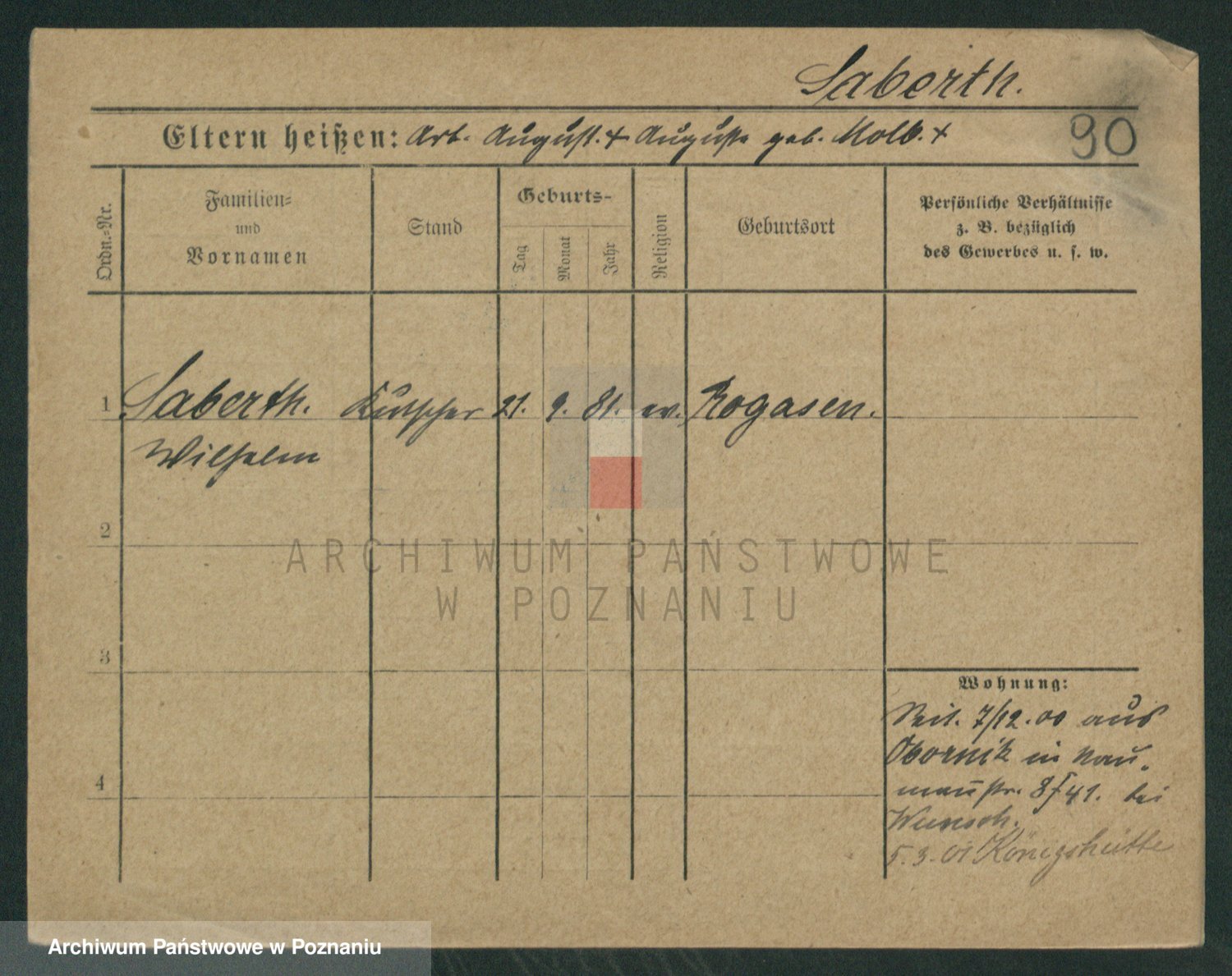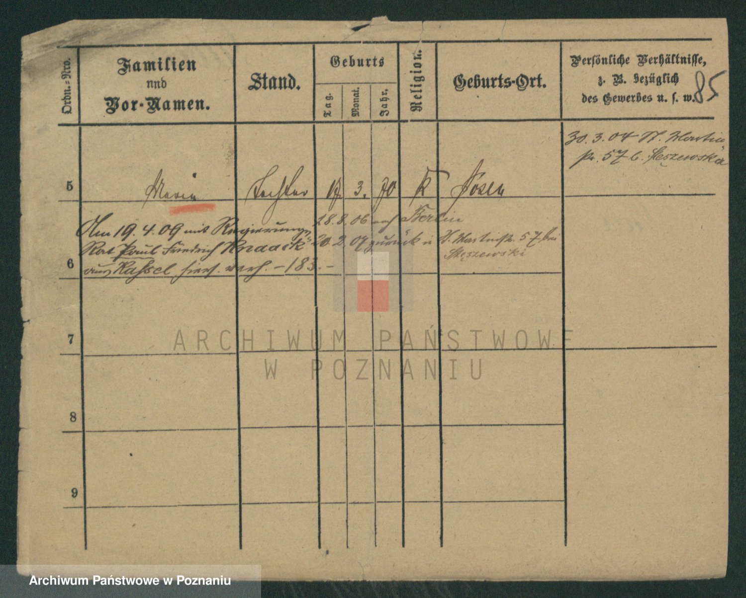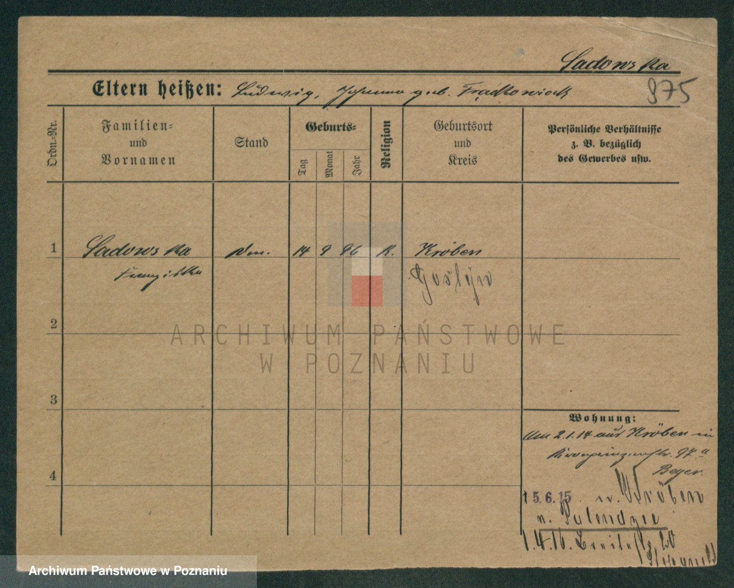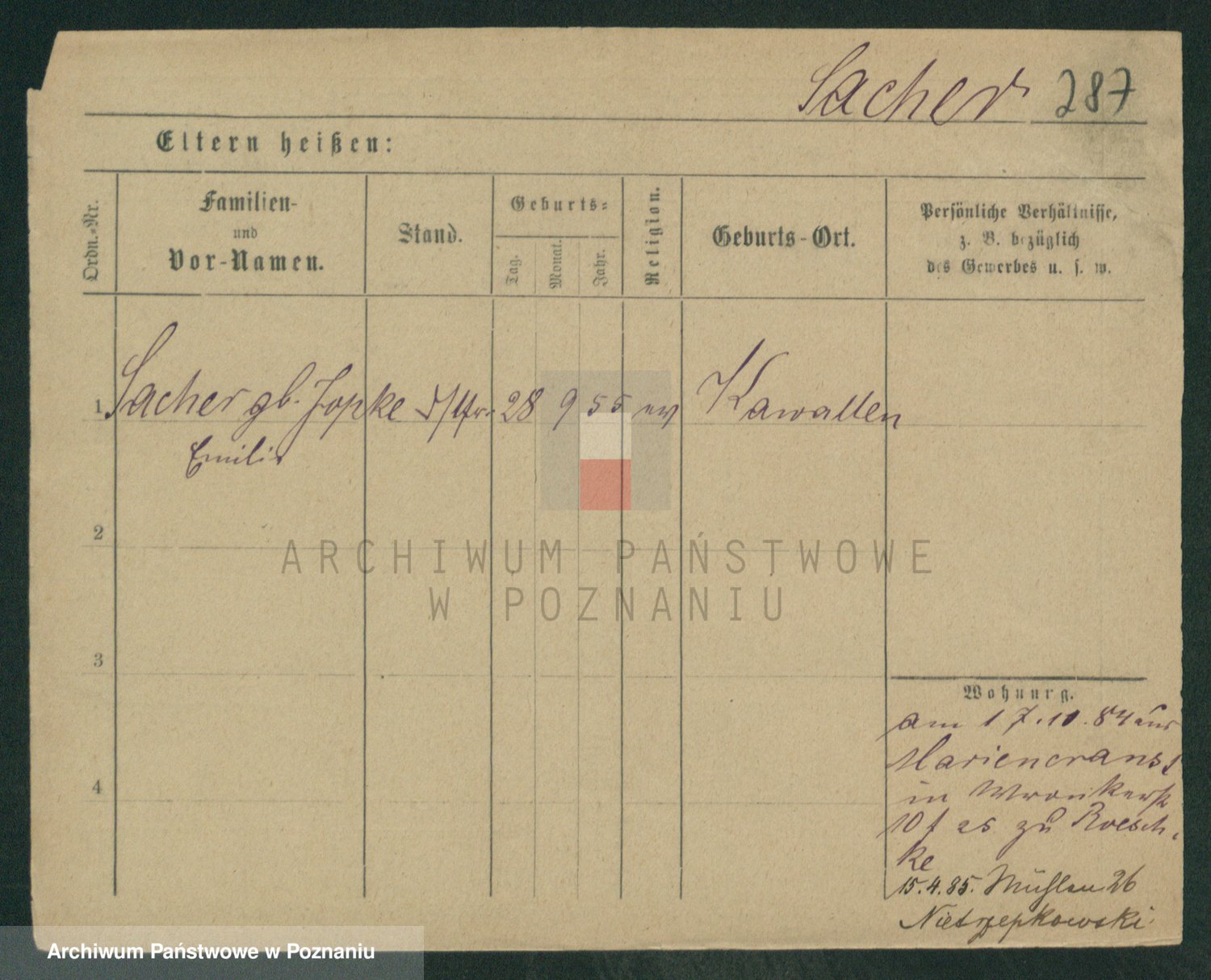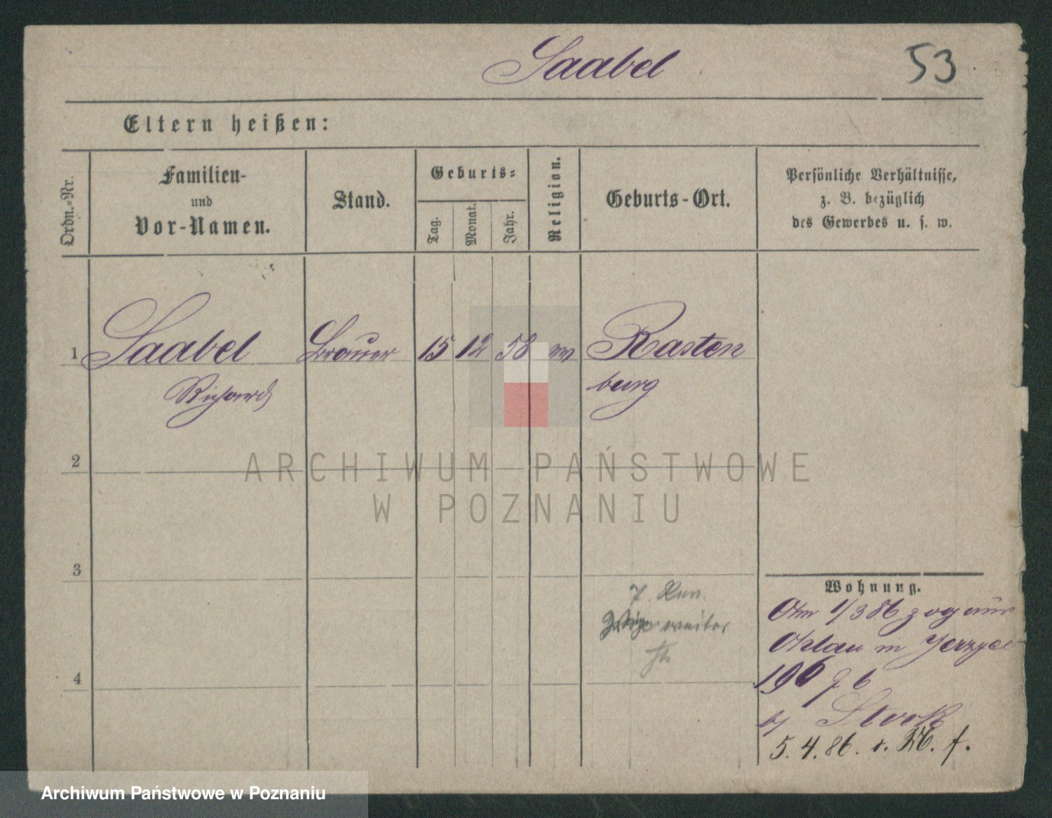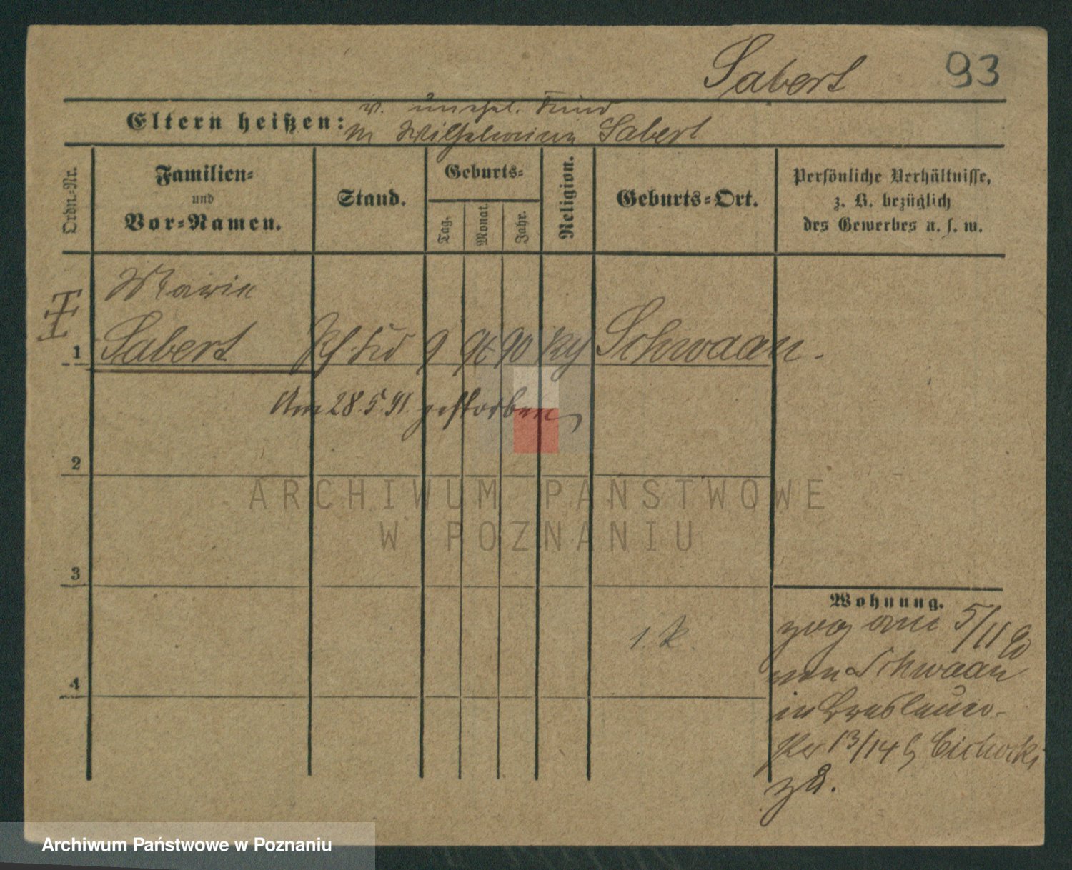 Podgląd karty osobowej dostępny jest po kliknięciu na nazwisko lub ikonkę karty. Można dokonywać powiększenia (ikony na górze) lub przechodzić między kolejnymi skanami (strzałki po bokach).