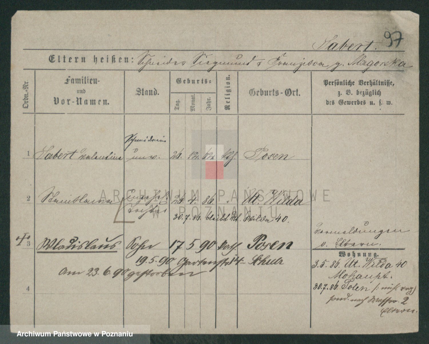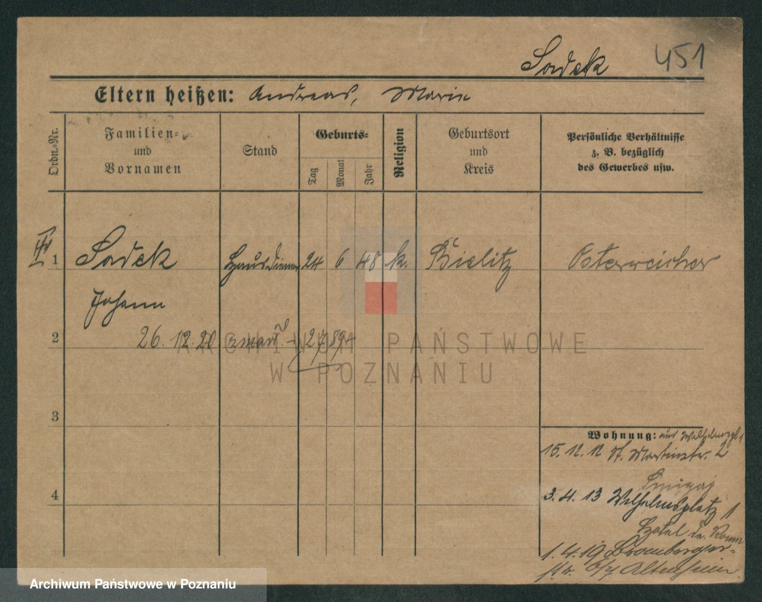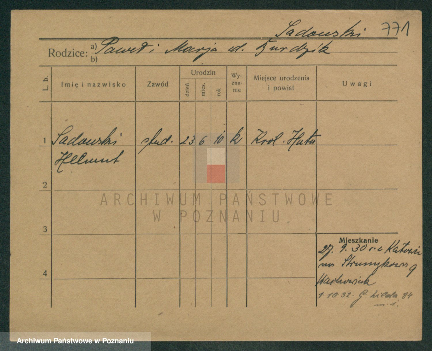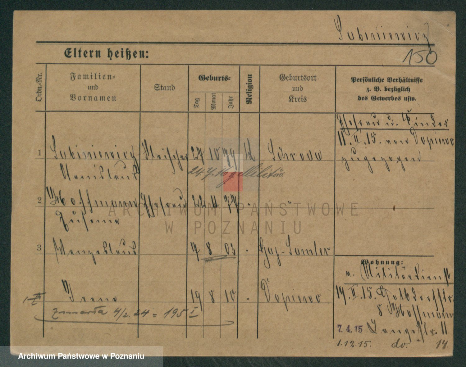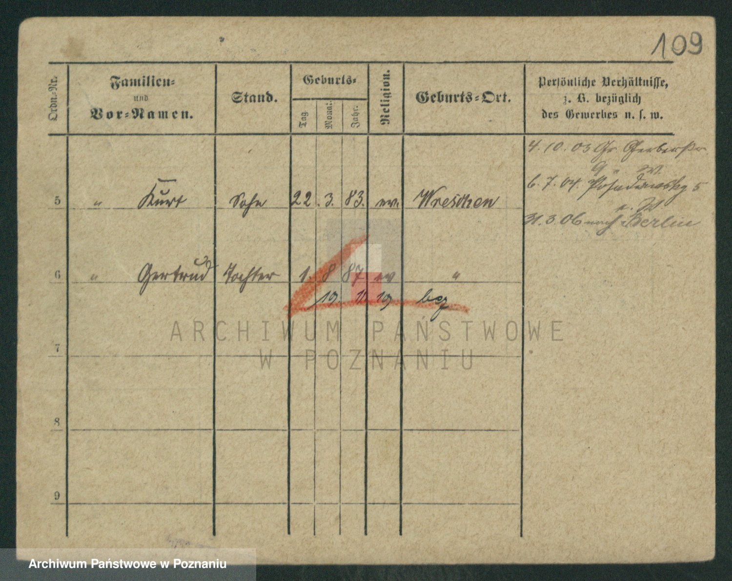 Podgląd karty osobowej dostępny jest po kliknięciu na nazwisko lub ikonkę karty. Można dokonywać powiększenia (ikony na górze) lub przechodzić między kolejnymi skanami (strzałki po bokach).