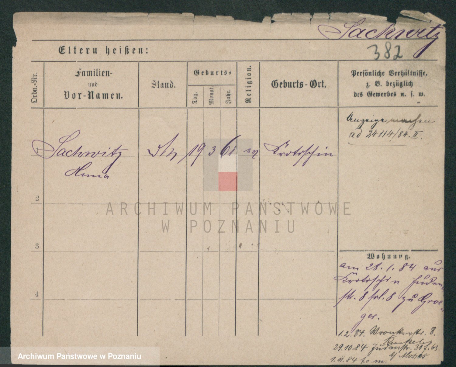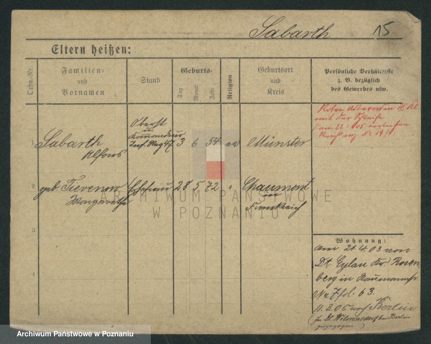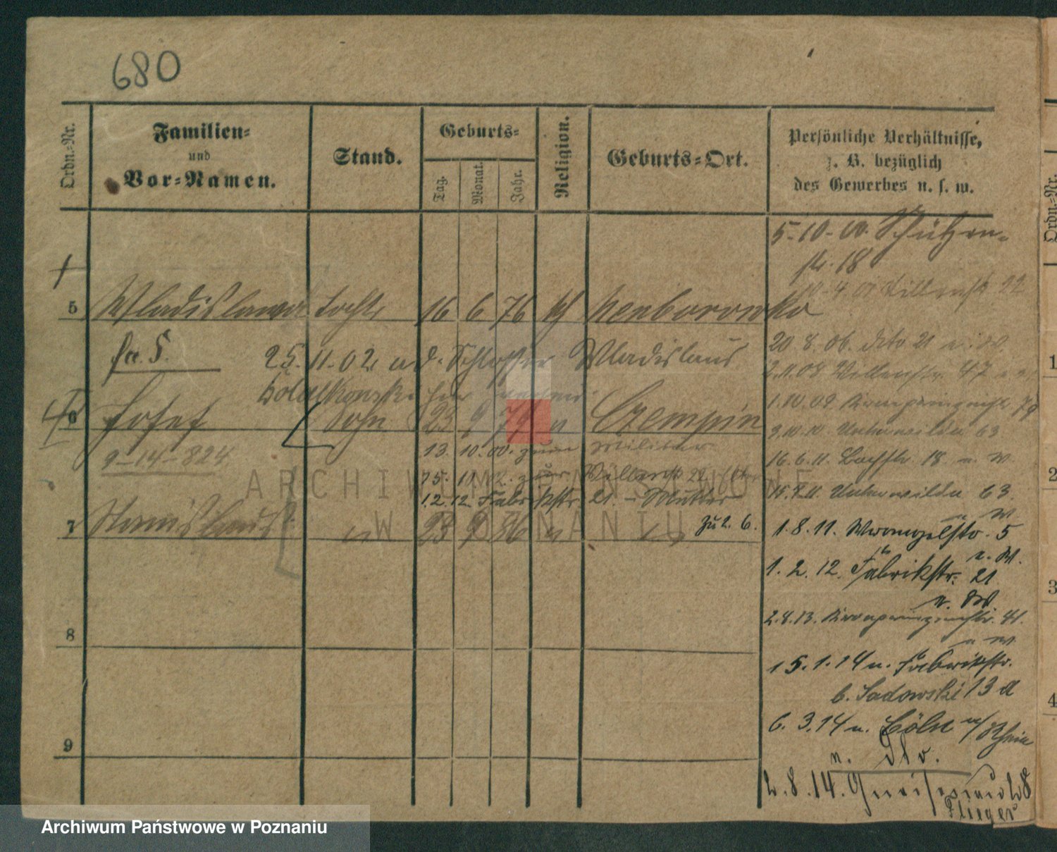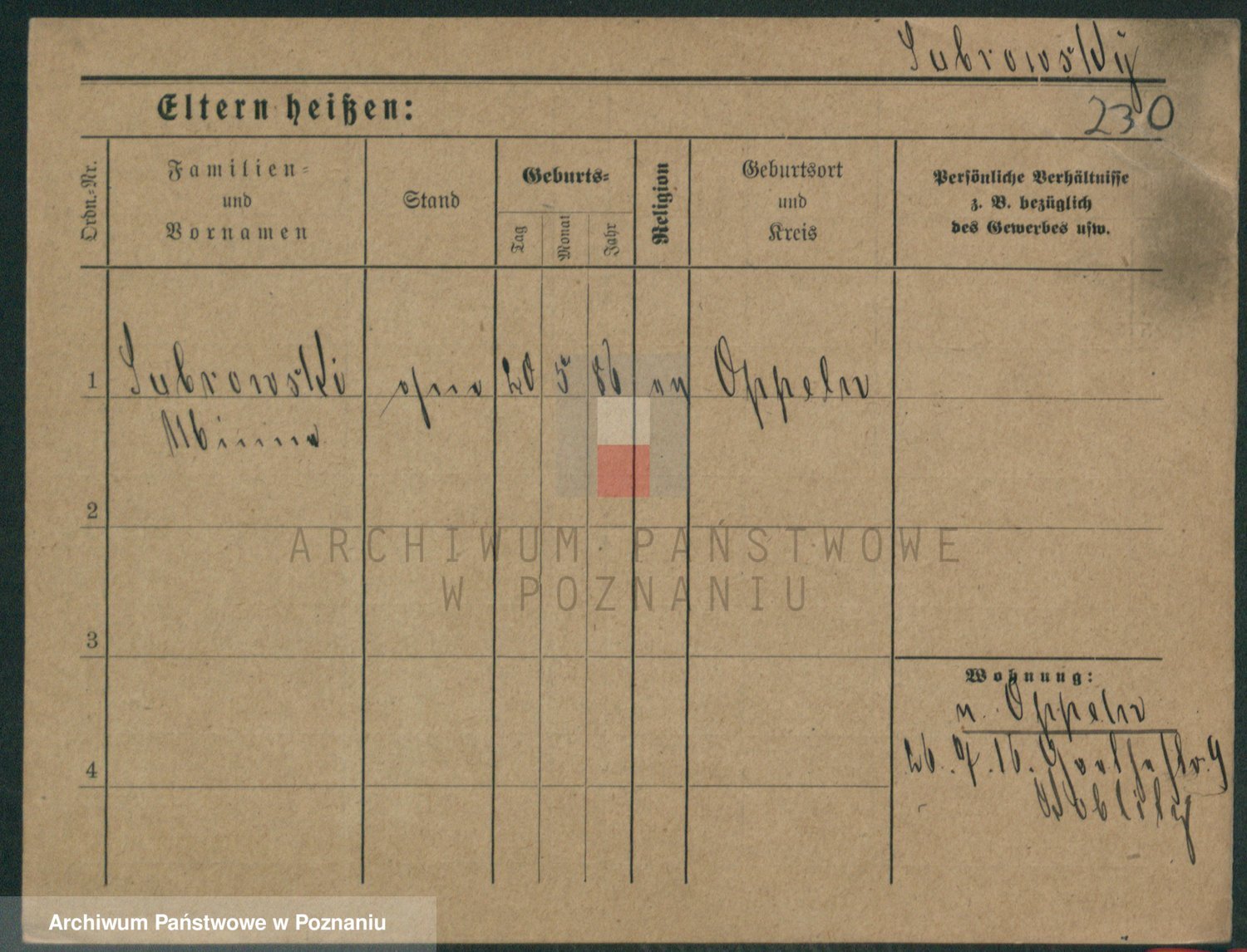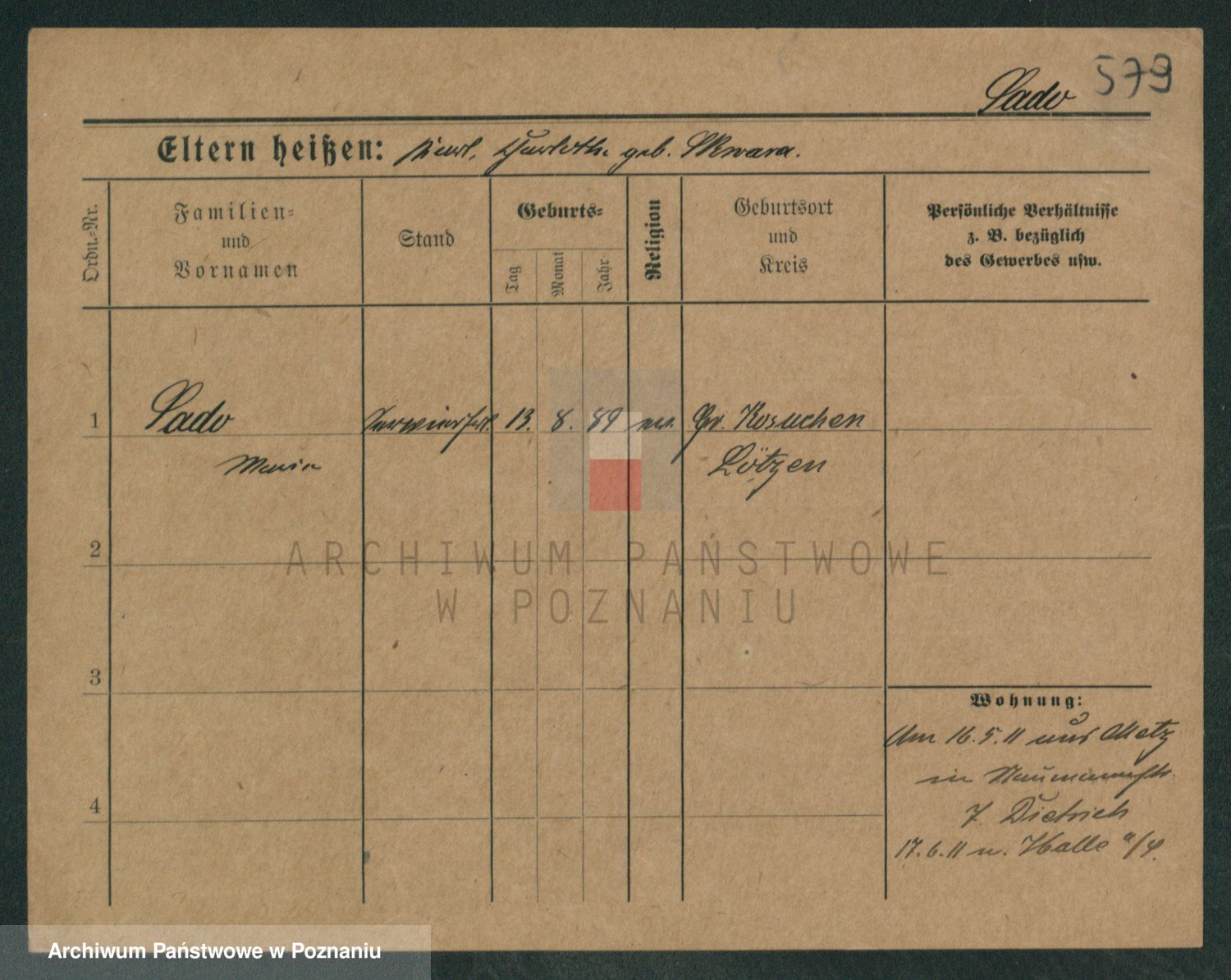 Podgląd karty osobowej dostępny jest po kliknięciu na nazwisko lub ikonkę karty. Można dokonywać powiększenia (ikony na górze) lub przechodzić między kolejnymi skanami (strzałki po bokach).