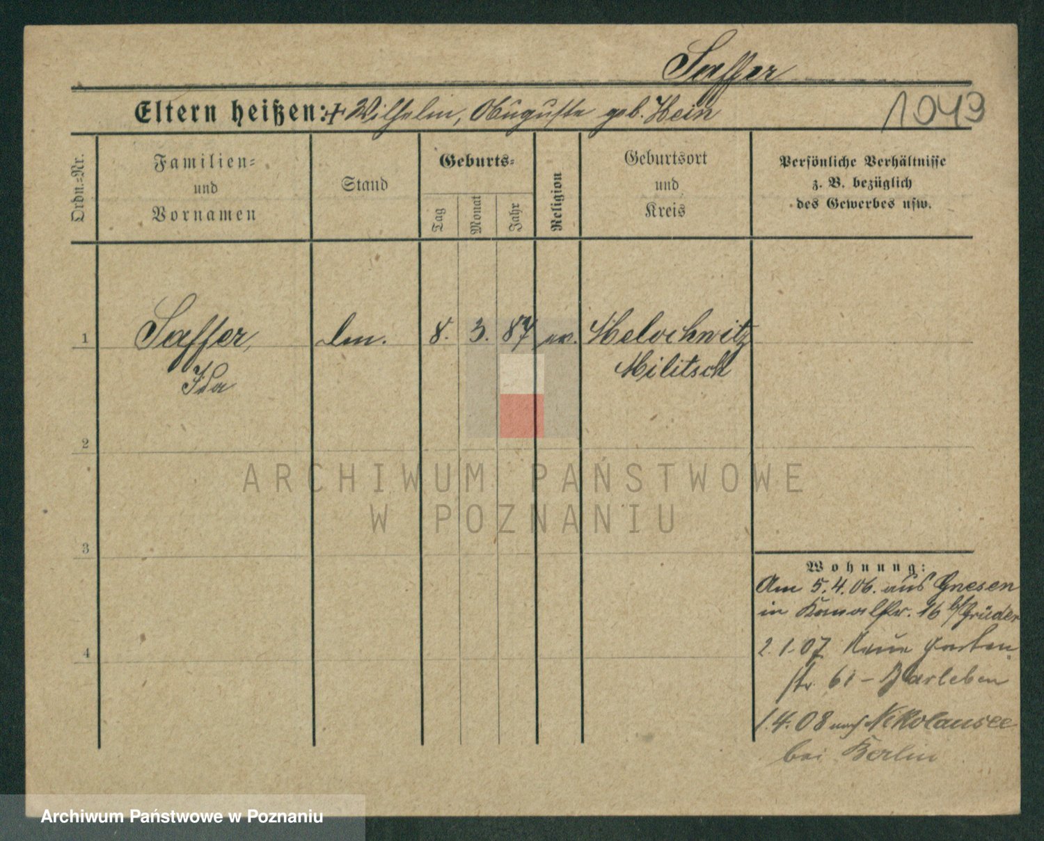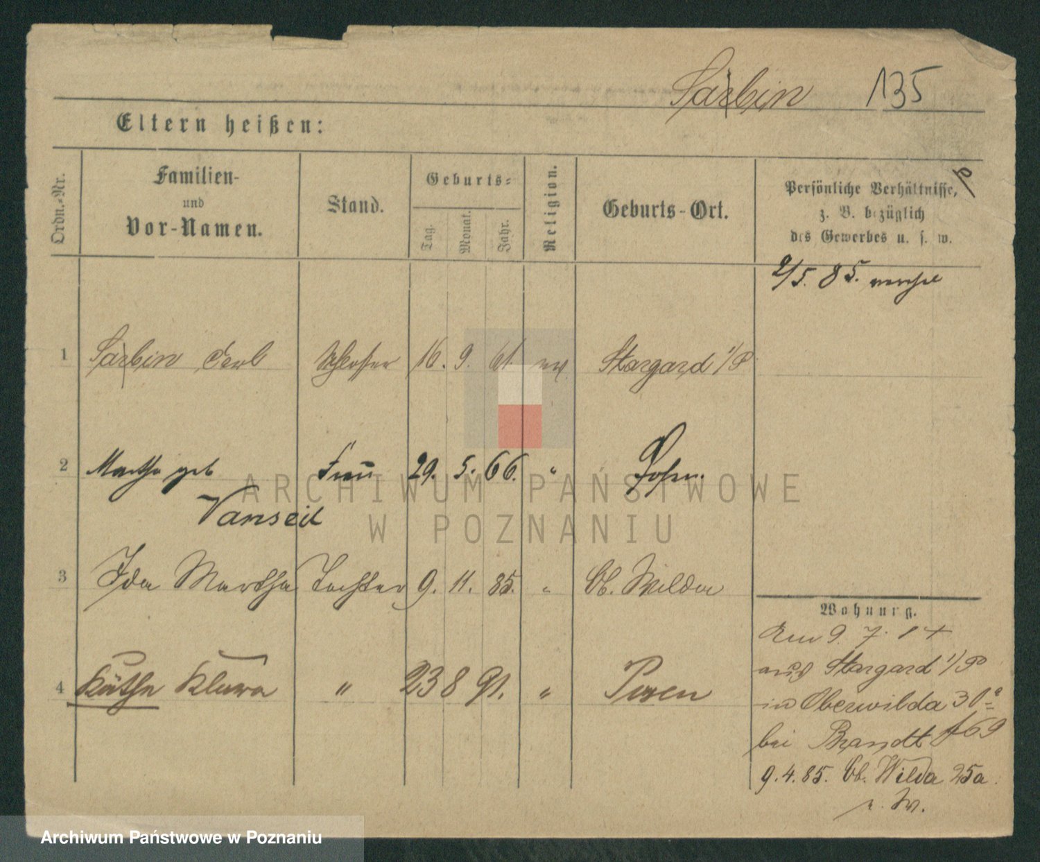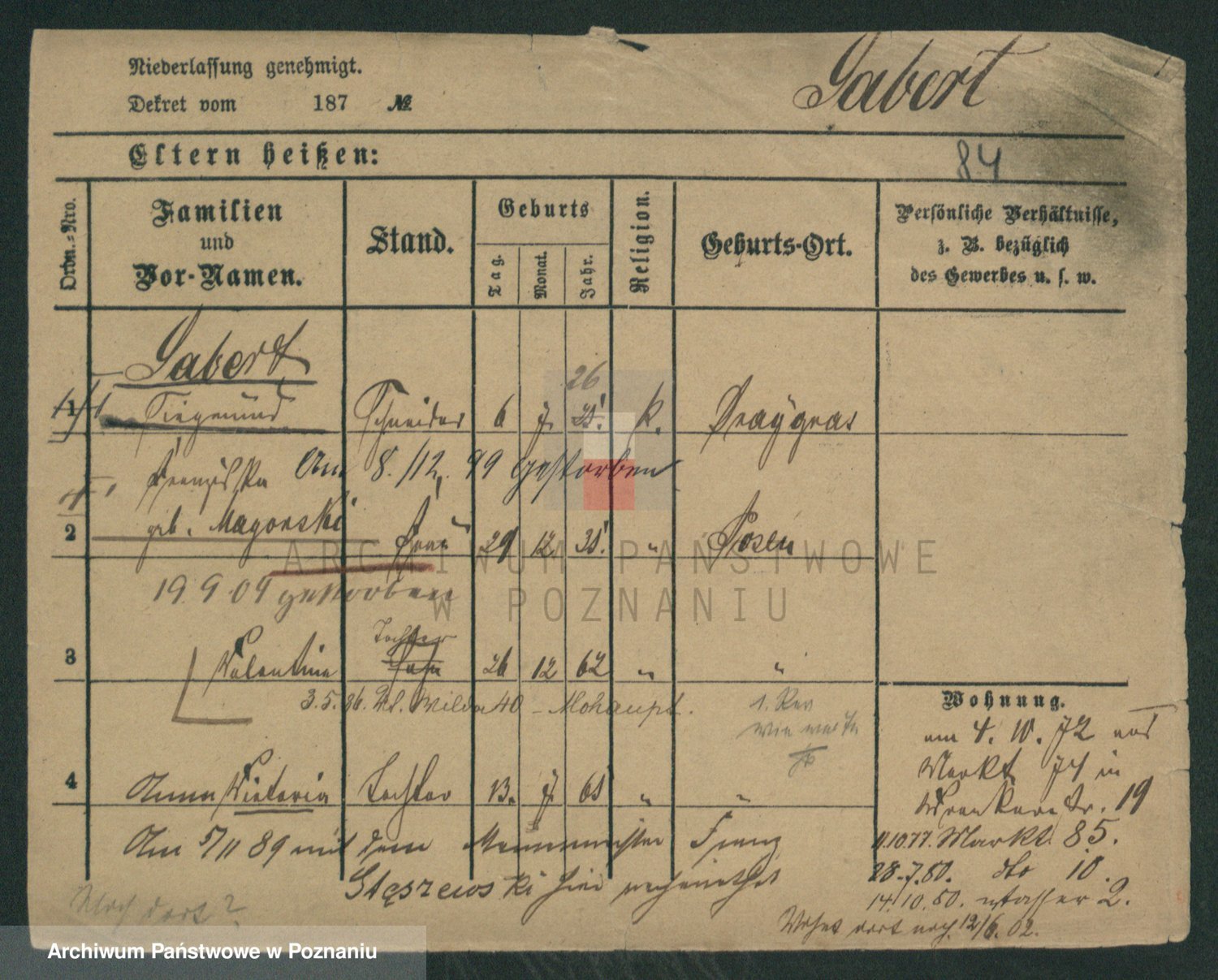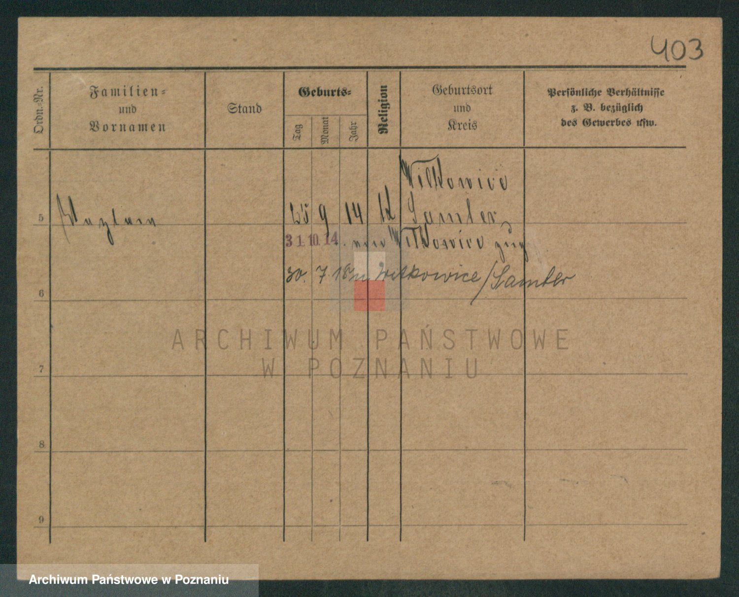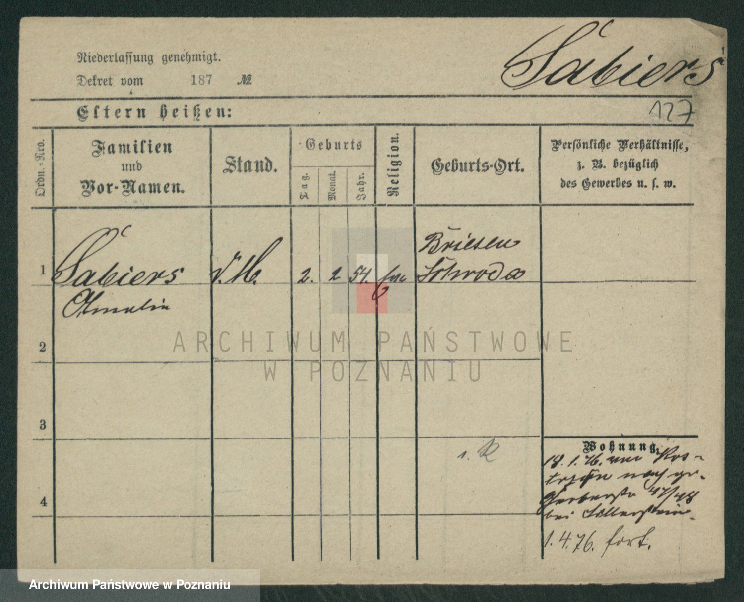 Podgląd karty osobowej dostępny jest po kliknięciu na nazwisko lub ikonkę karty. Można dokonywać powiększenia (ikony na górze) lub przechodzić między kolejnymi skanami (strzałki po bokach).