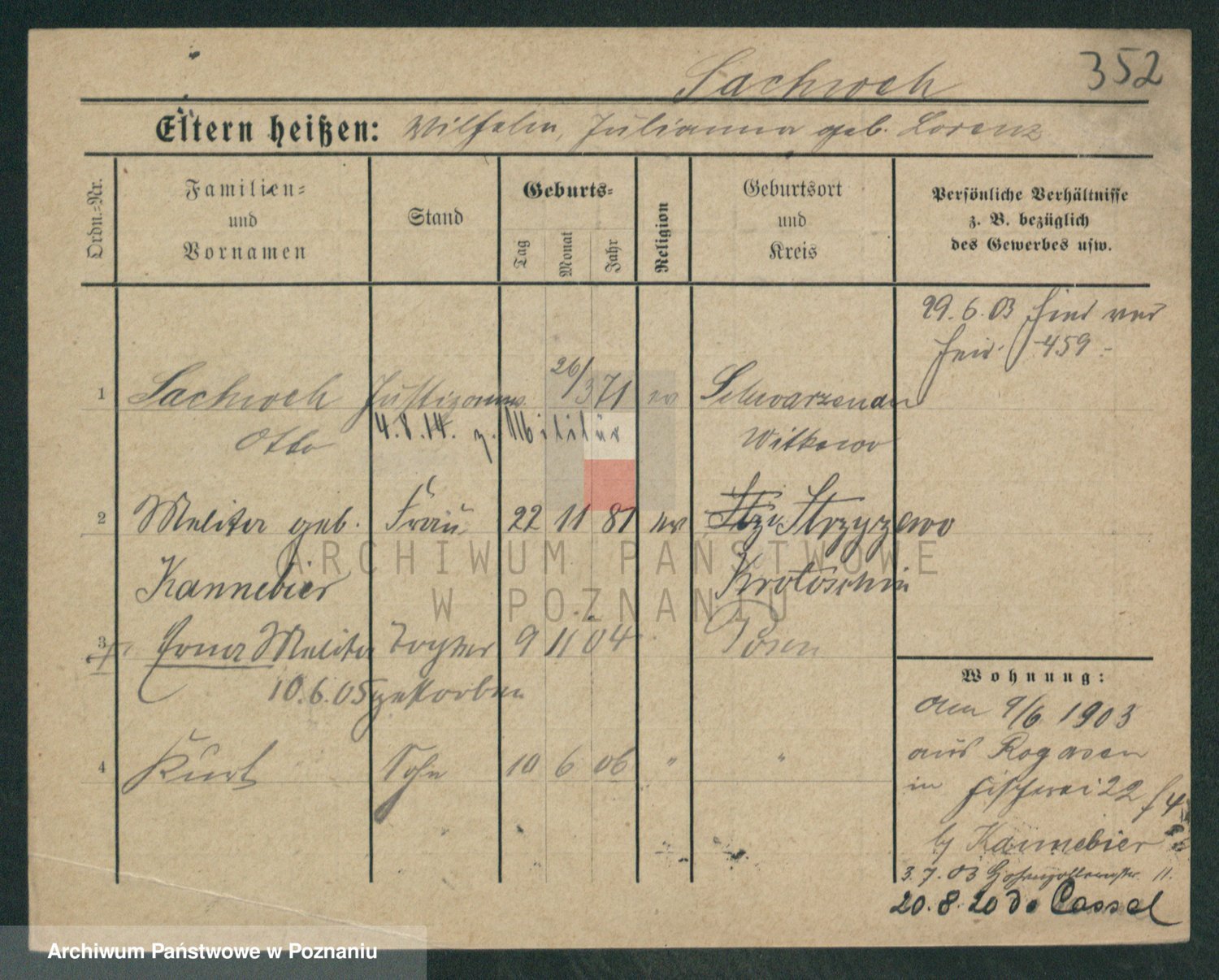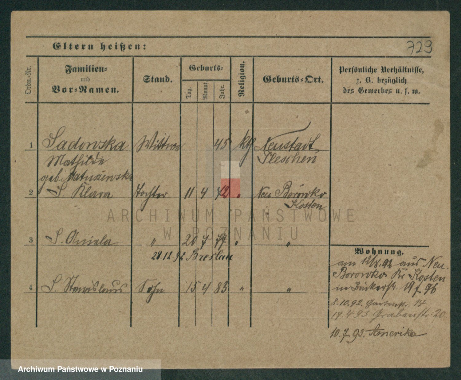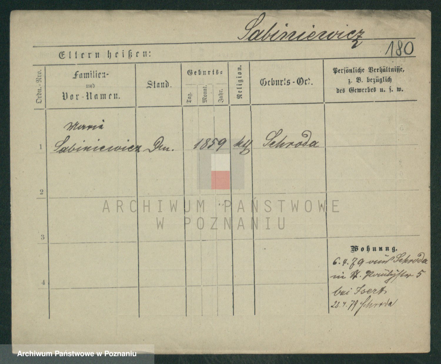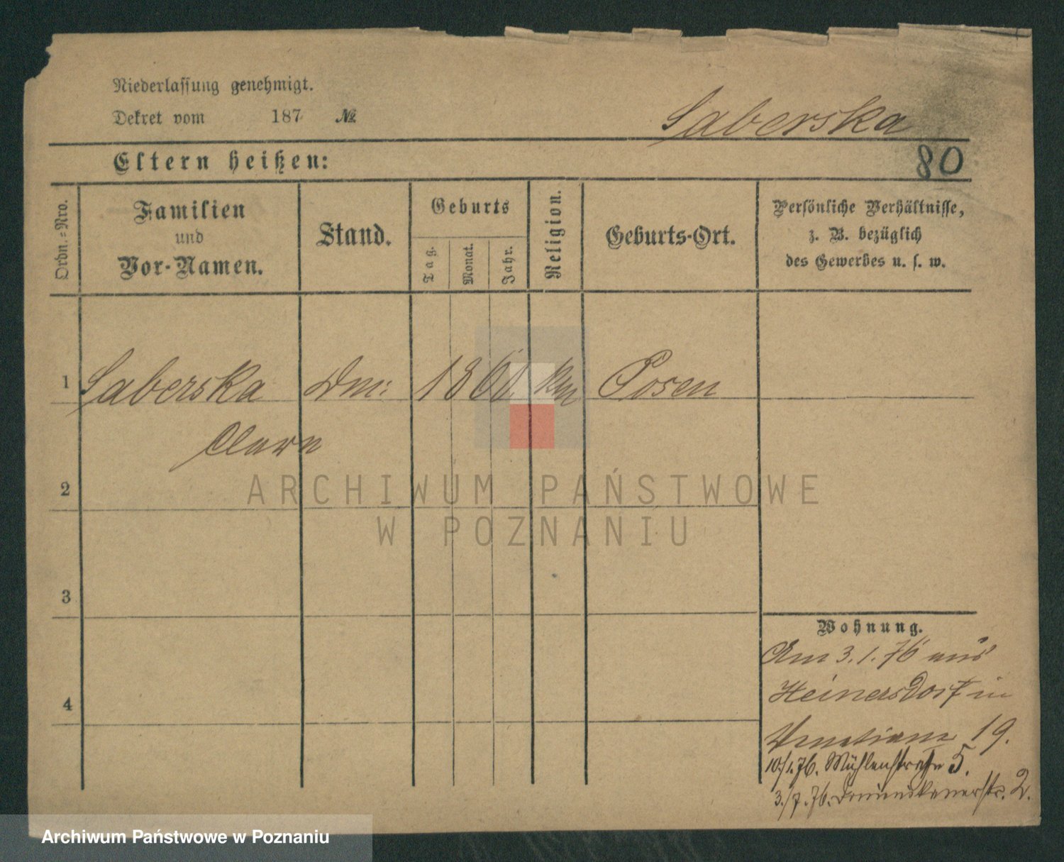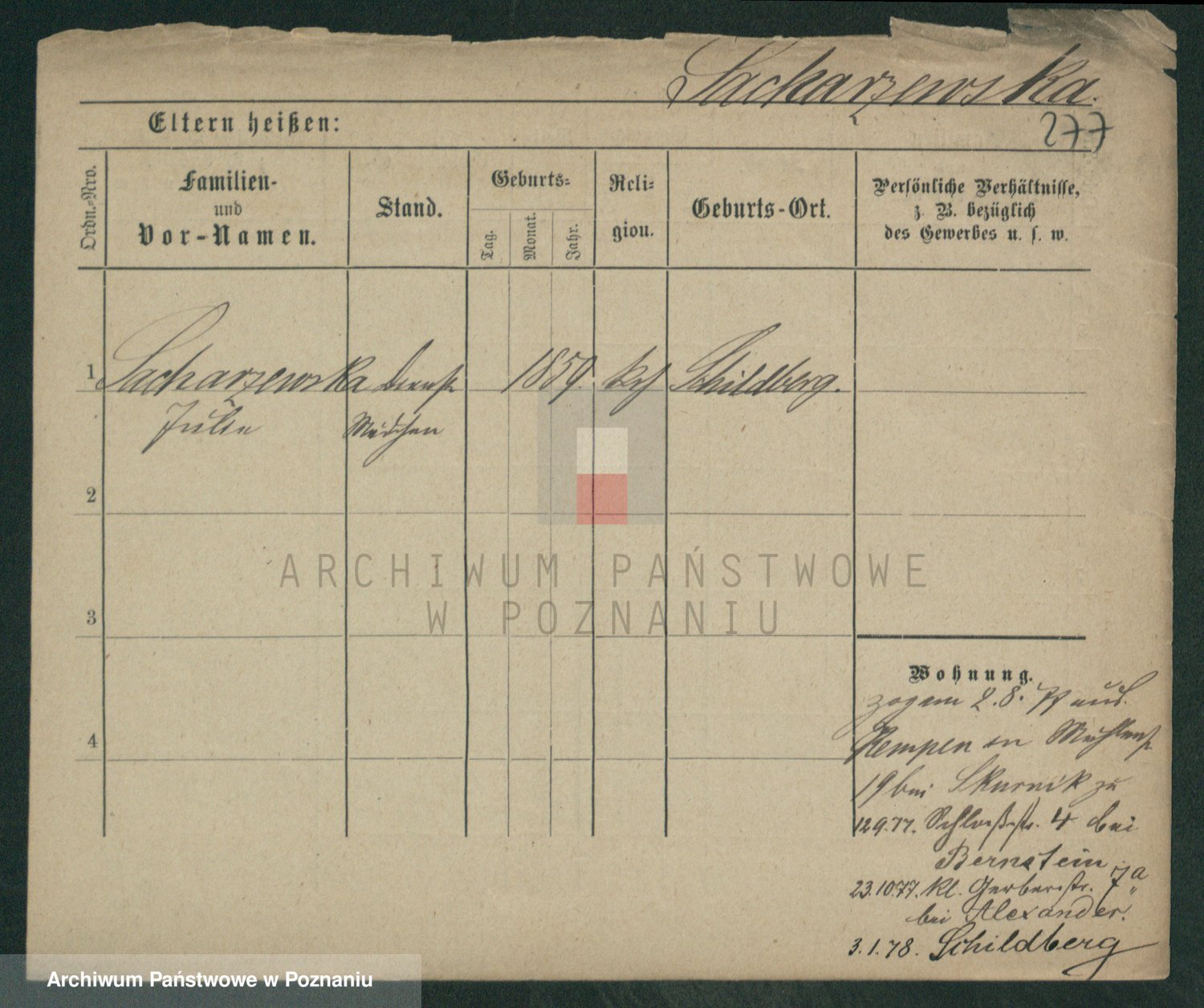 Podgląd karty osobowej dostępny jest po kliknięciu na nazwisko lub ikonkę karty. Można dokonywać powiększenia (ikony na górze) lub przechodzić między kolejnymi skanami (strzałki po bokach).