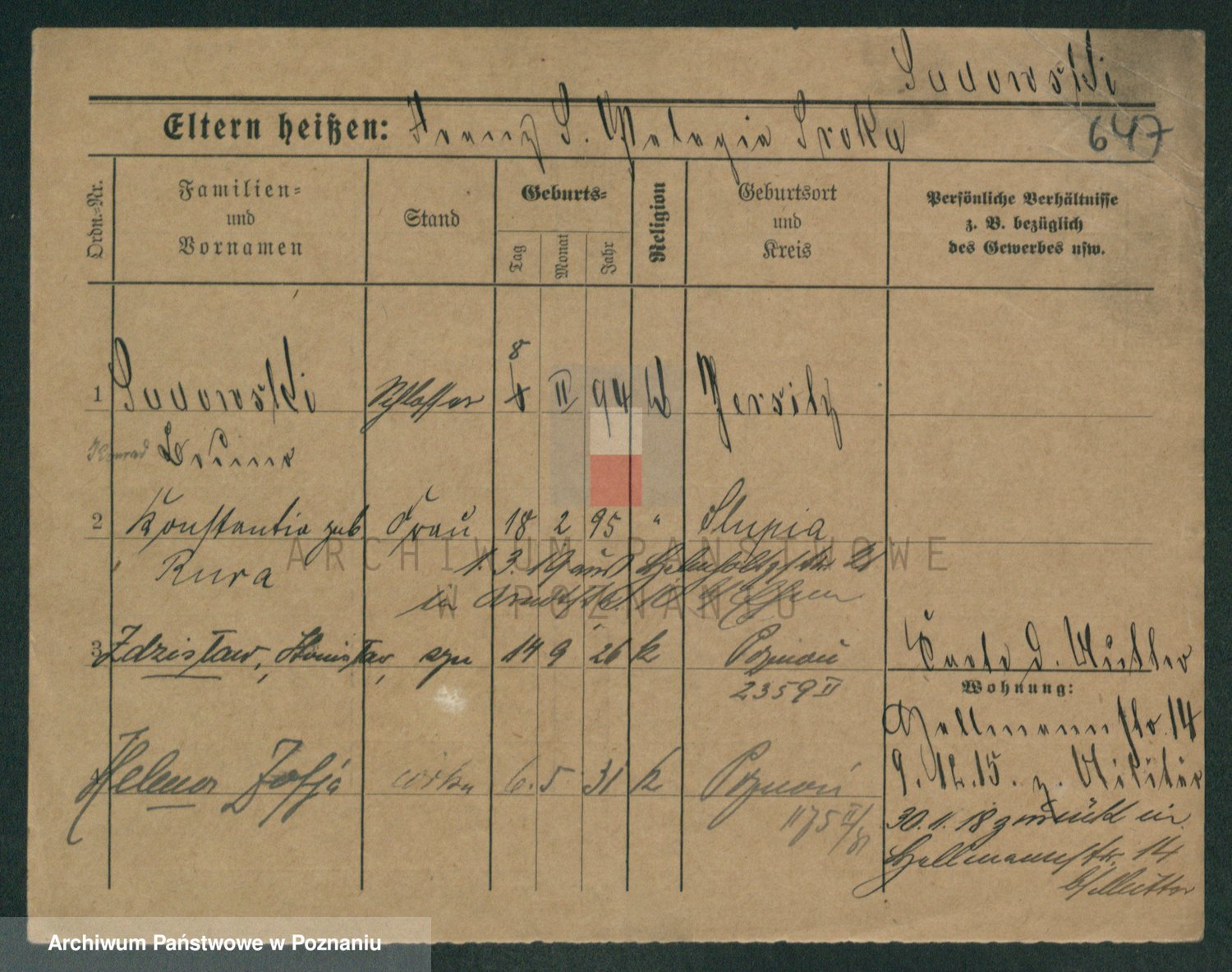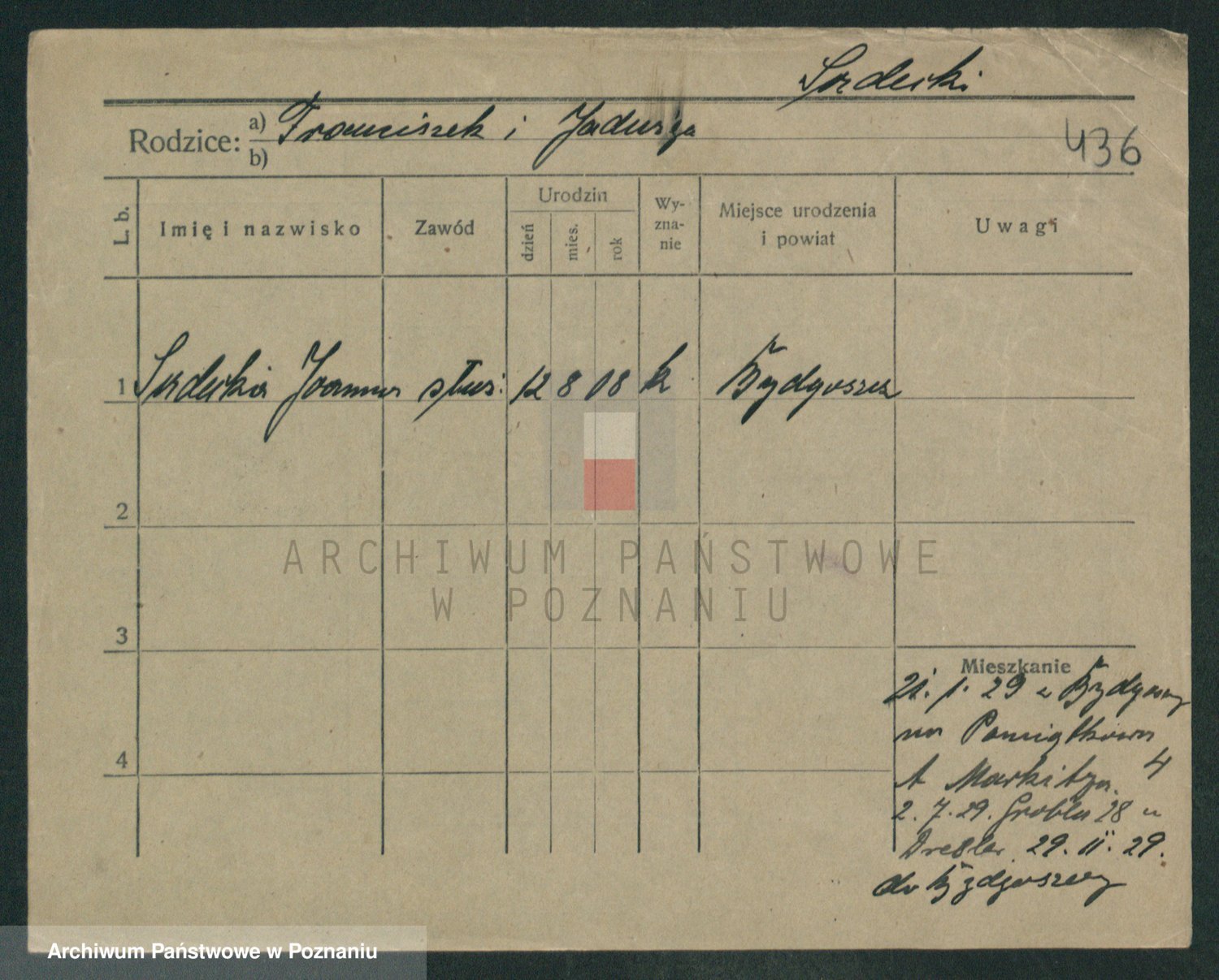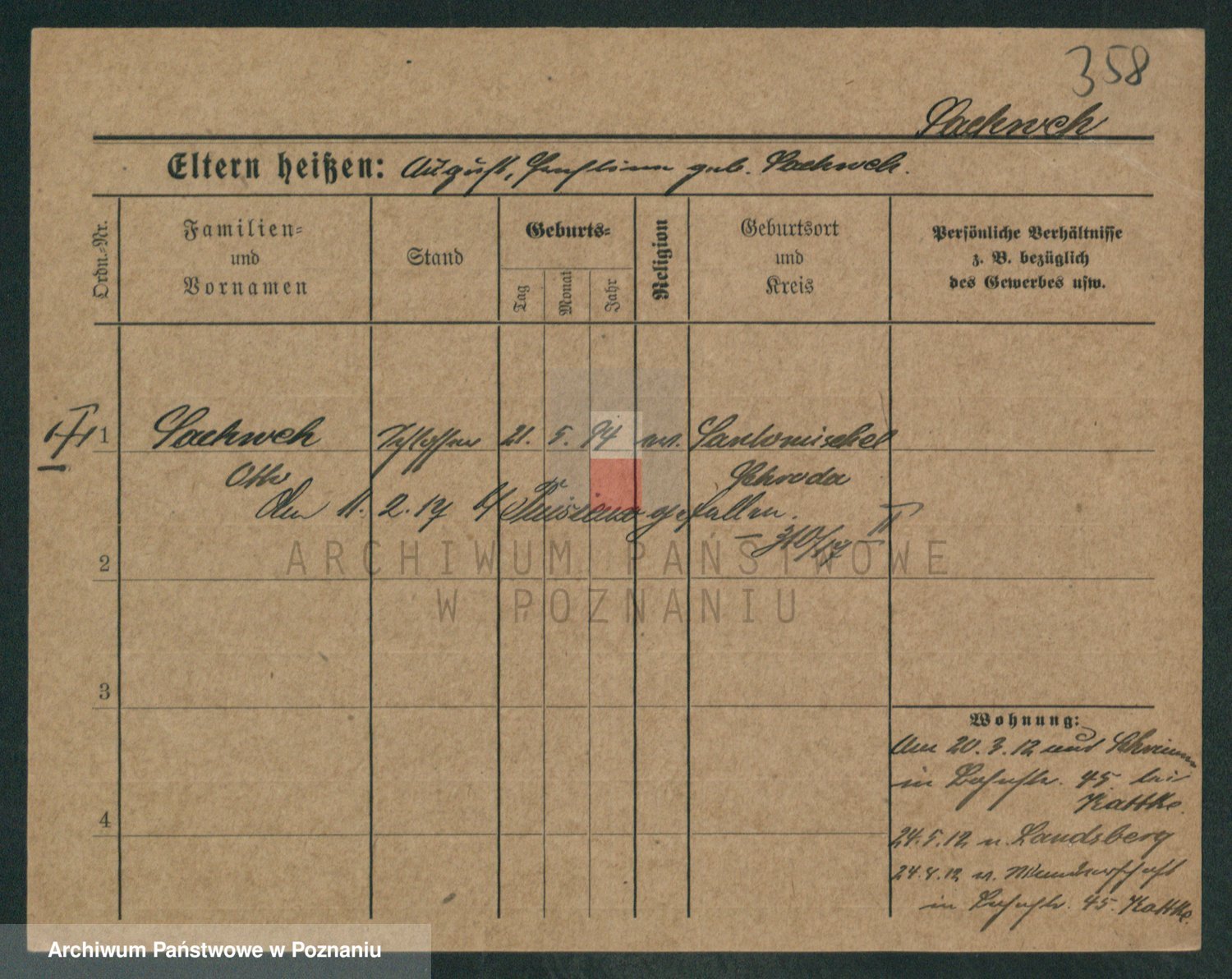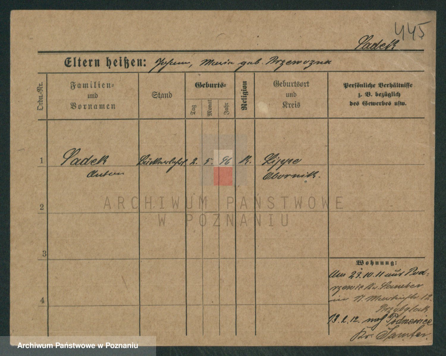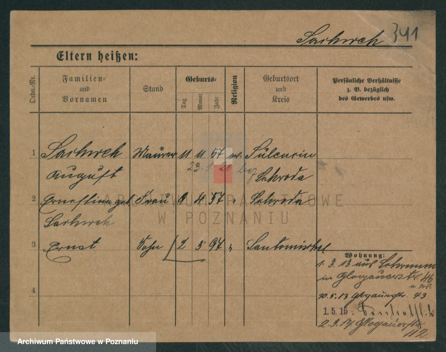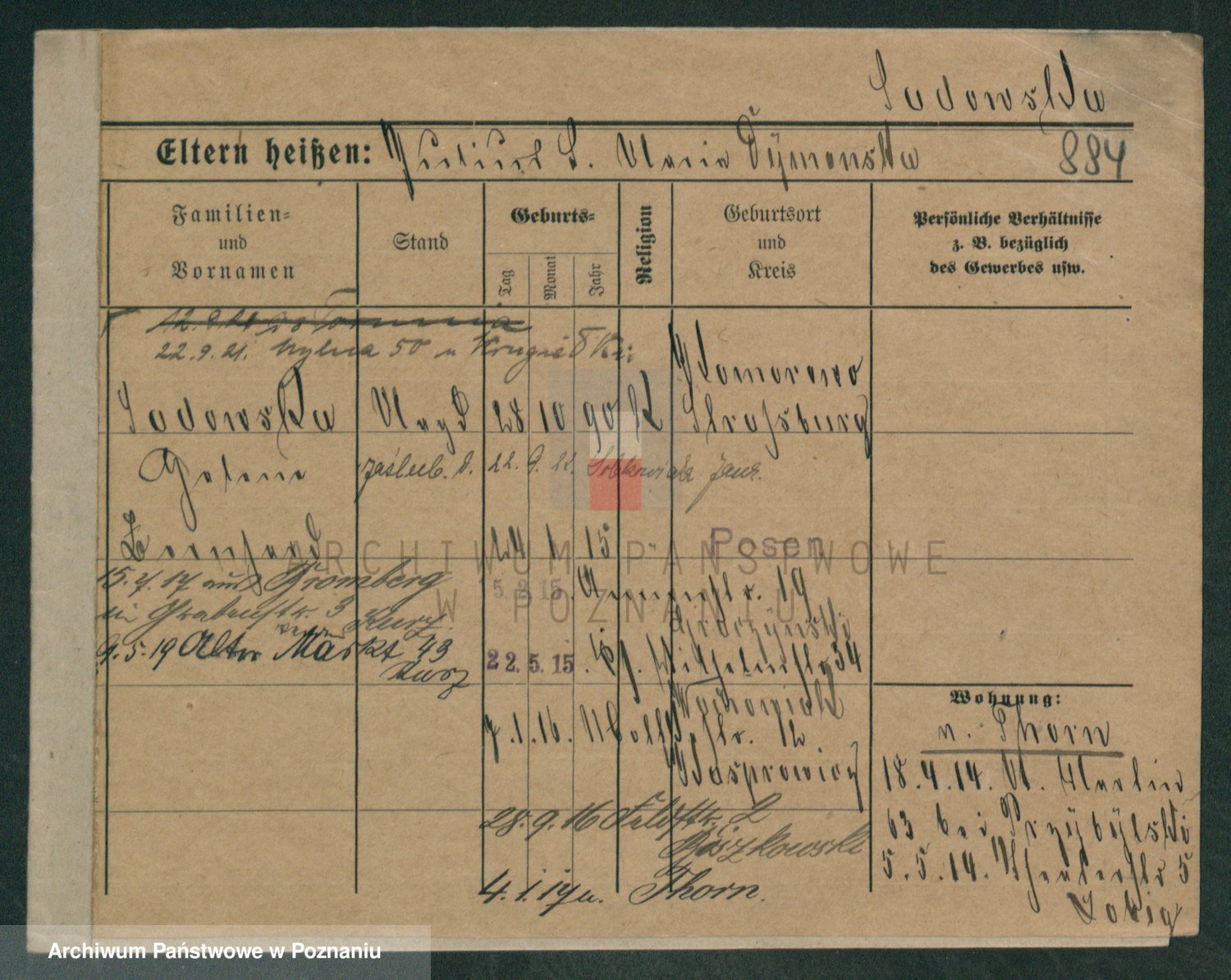 Podgląd karty osobowej dostępny jest po kliknięciu na nazwisko lub ikonkę karty. Można dokonywać powiększenia (ikony na górze) lub przechodzić między kolejnymi skanami (strzałki po bokach).