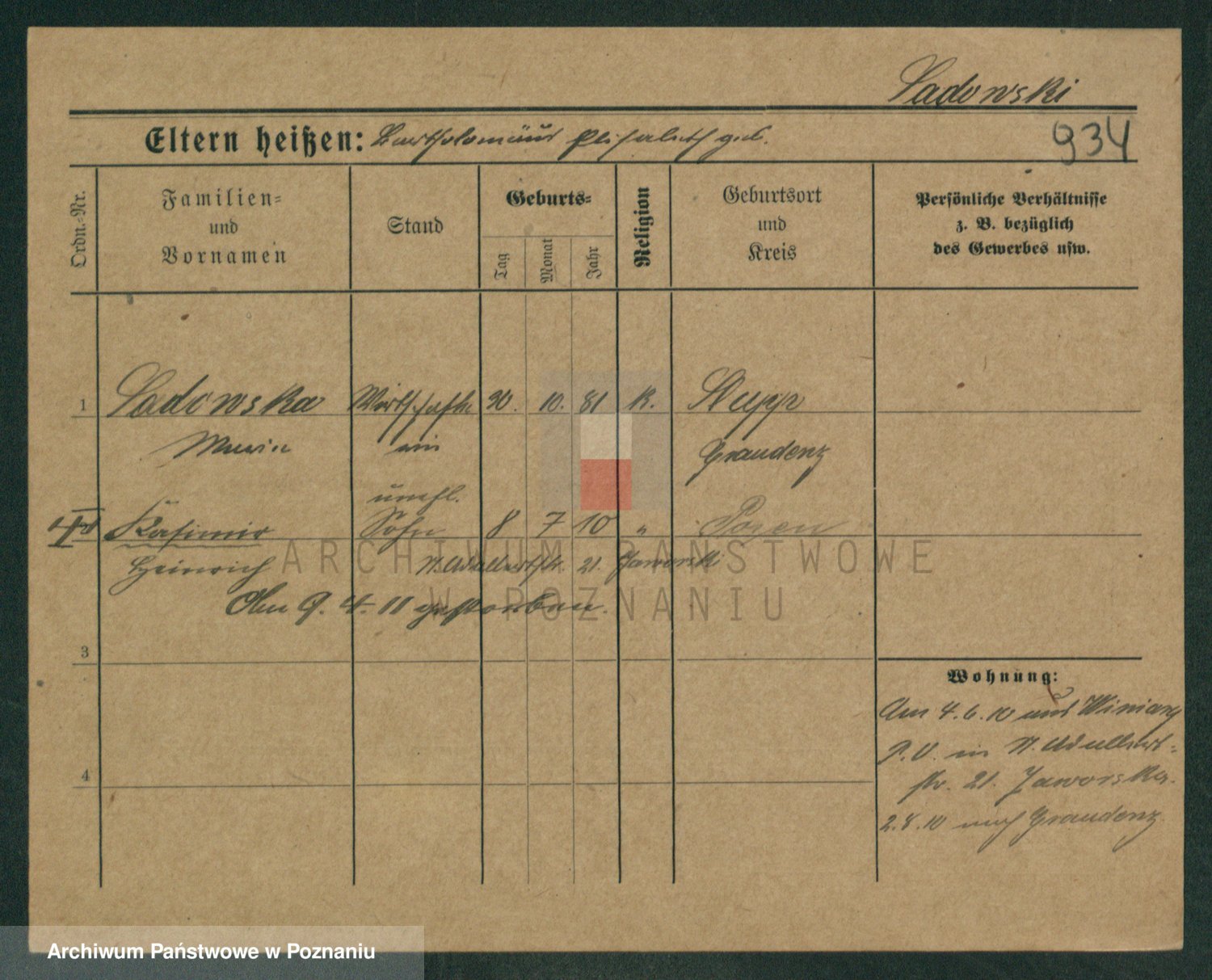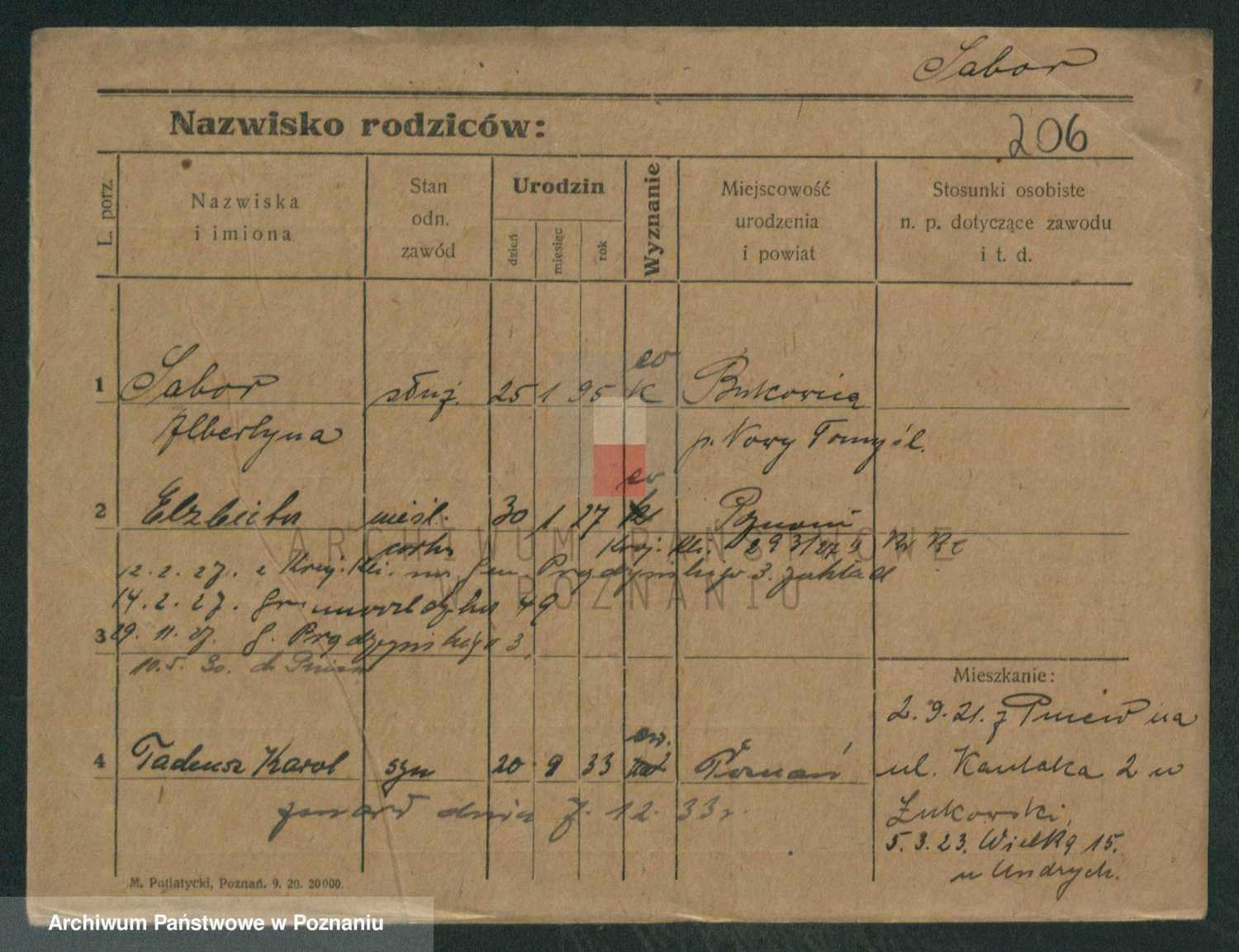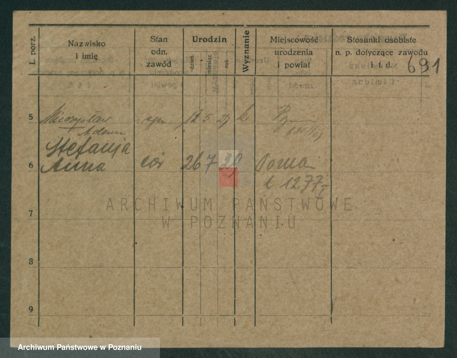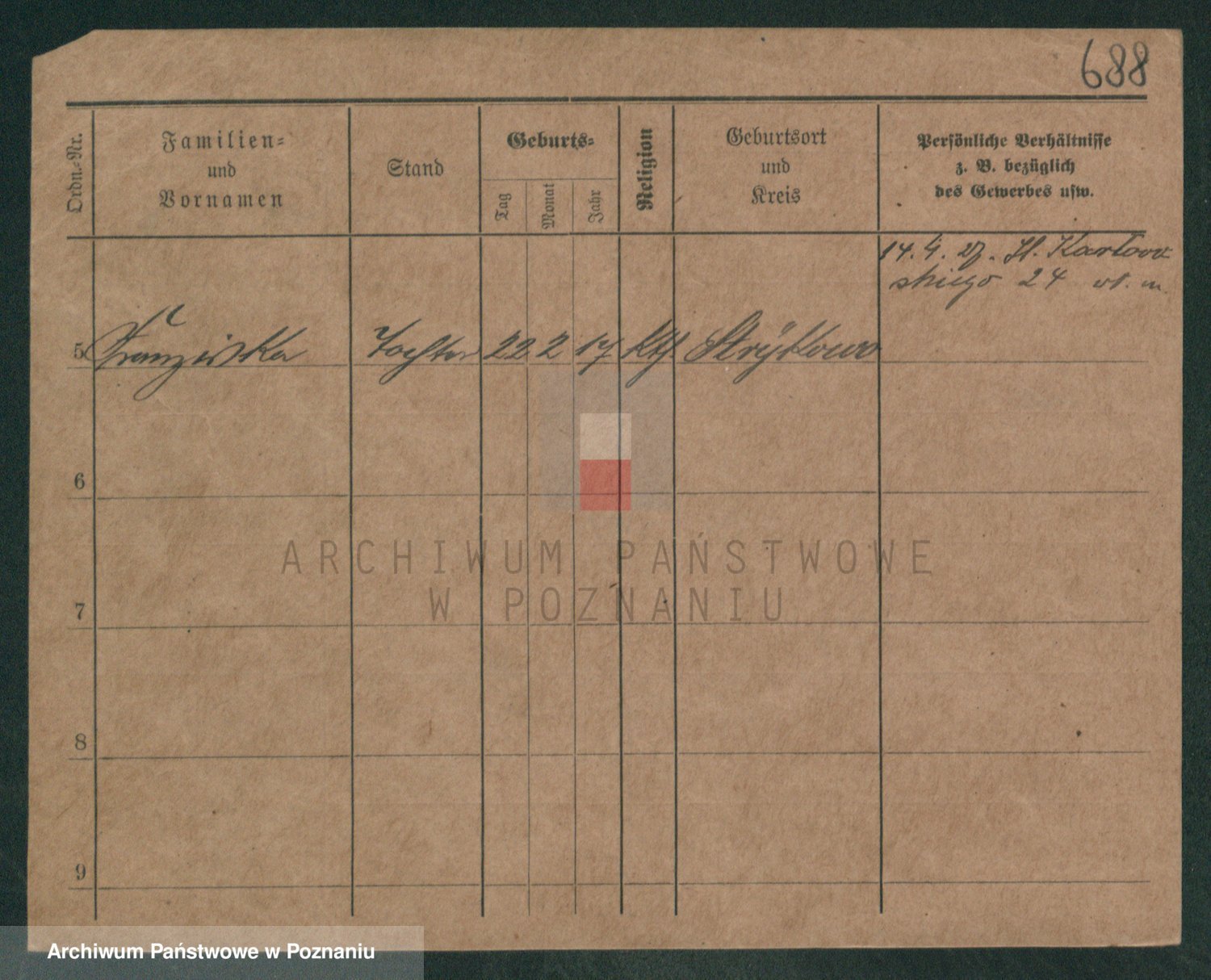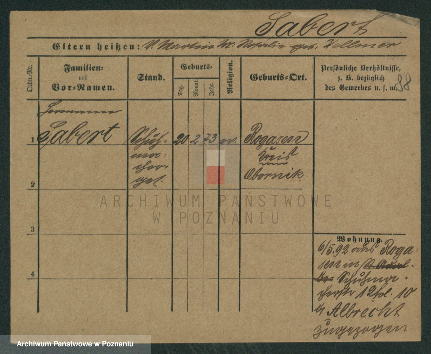 Podgląd karty osobowej dostępny jest po kliknięciu na nazwisko lub ikonkę karty. Można dokonywać powiększenia (ikony na górze) lub przechodzić między kolejnymi skanami (strzałki po bokach).