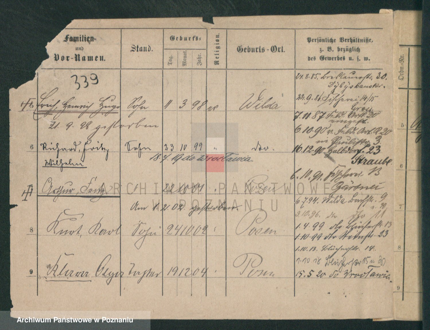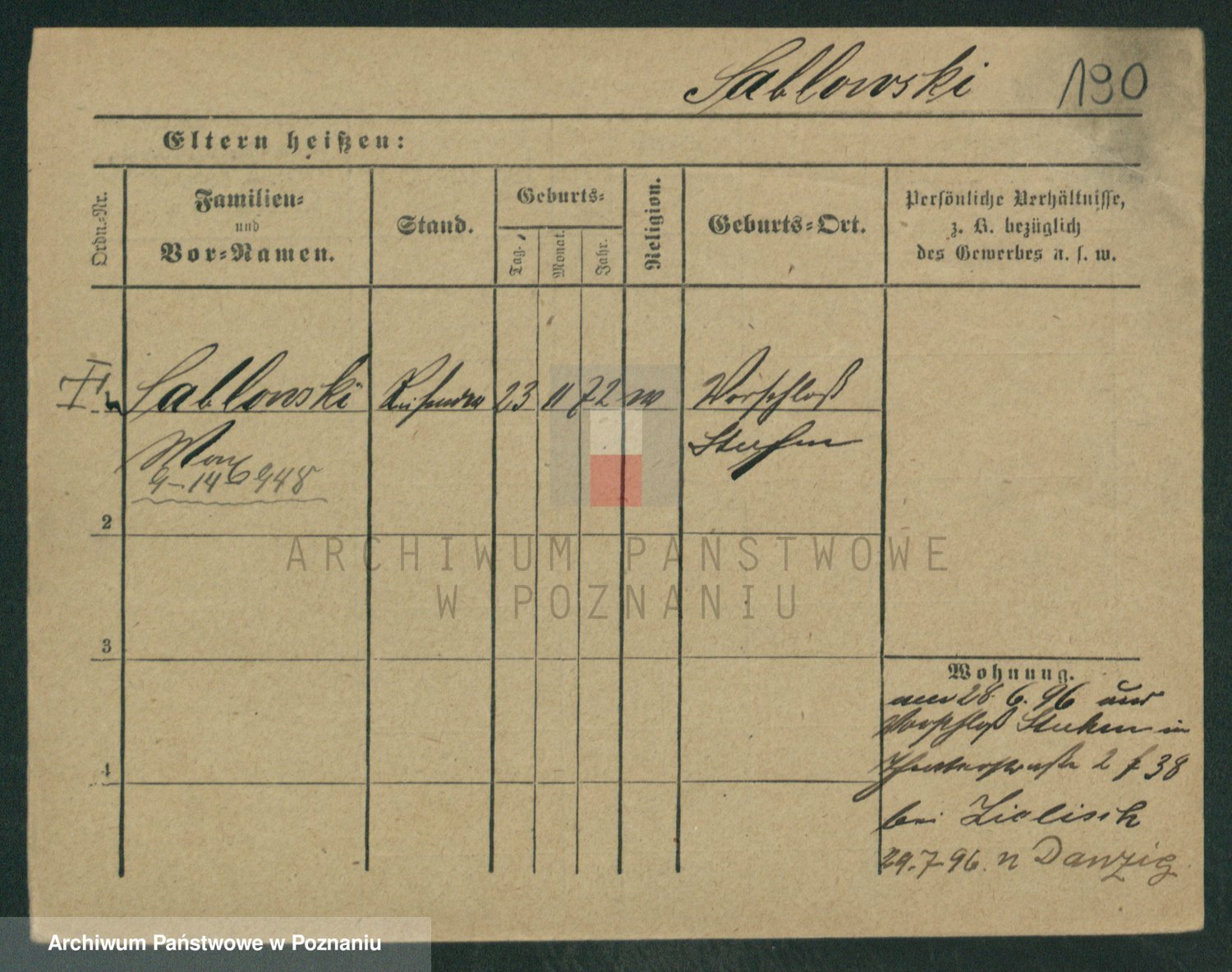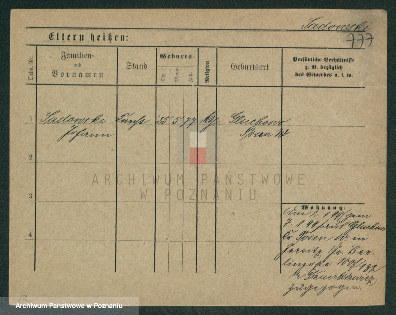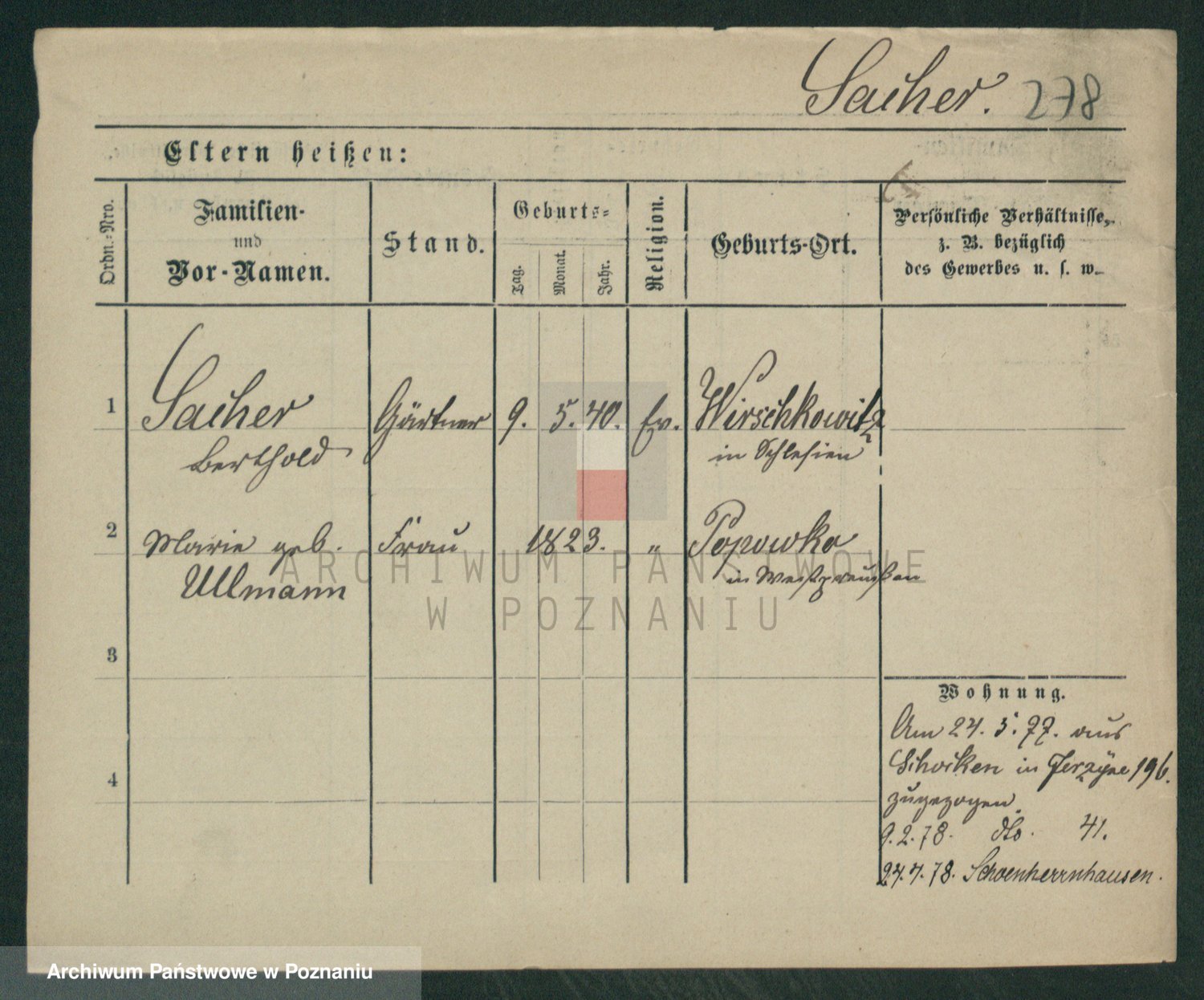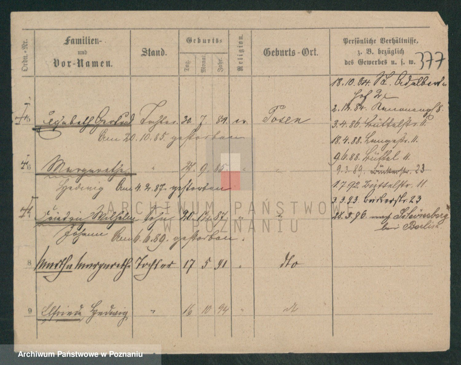 Podgląd karty osobowej dostępny jest po kliknięciu na nazwisko lub ikonkę karty. Można dokonywać powiększenia (ikony na górze) lub przechodzić między kolejnymi skanami (strzałki po bokach).