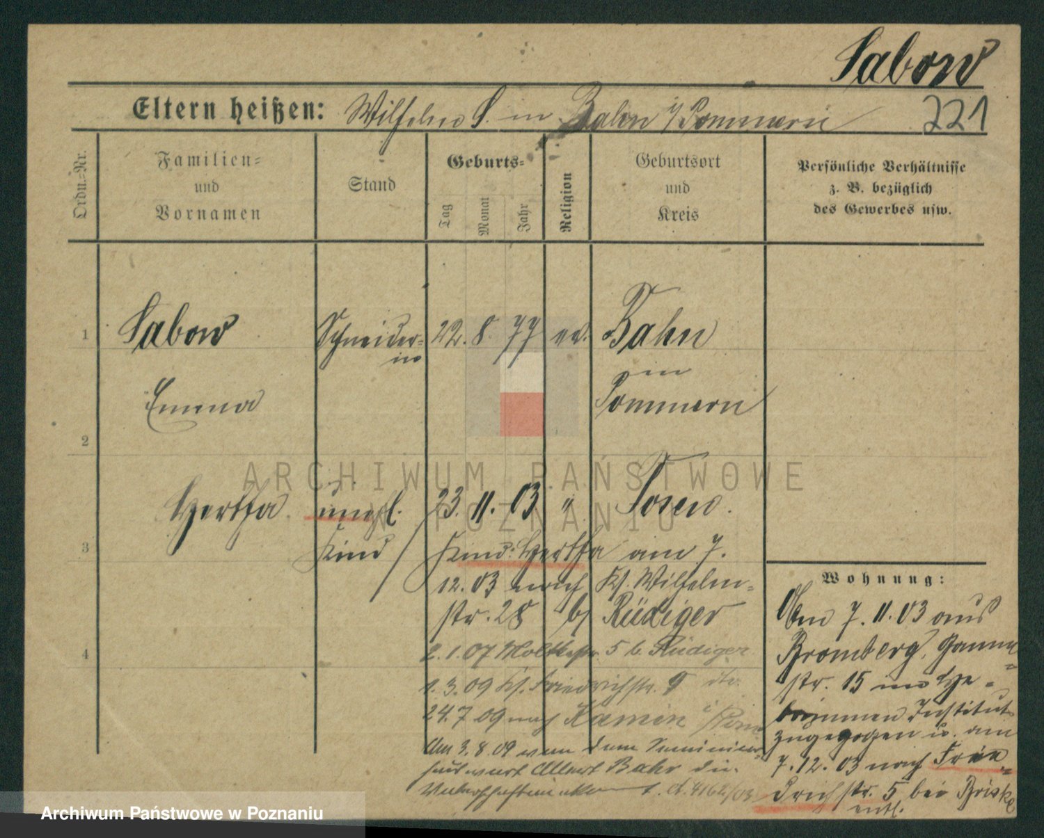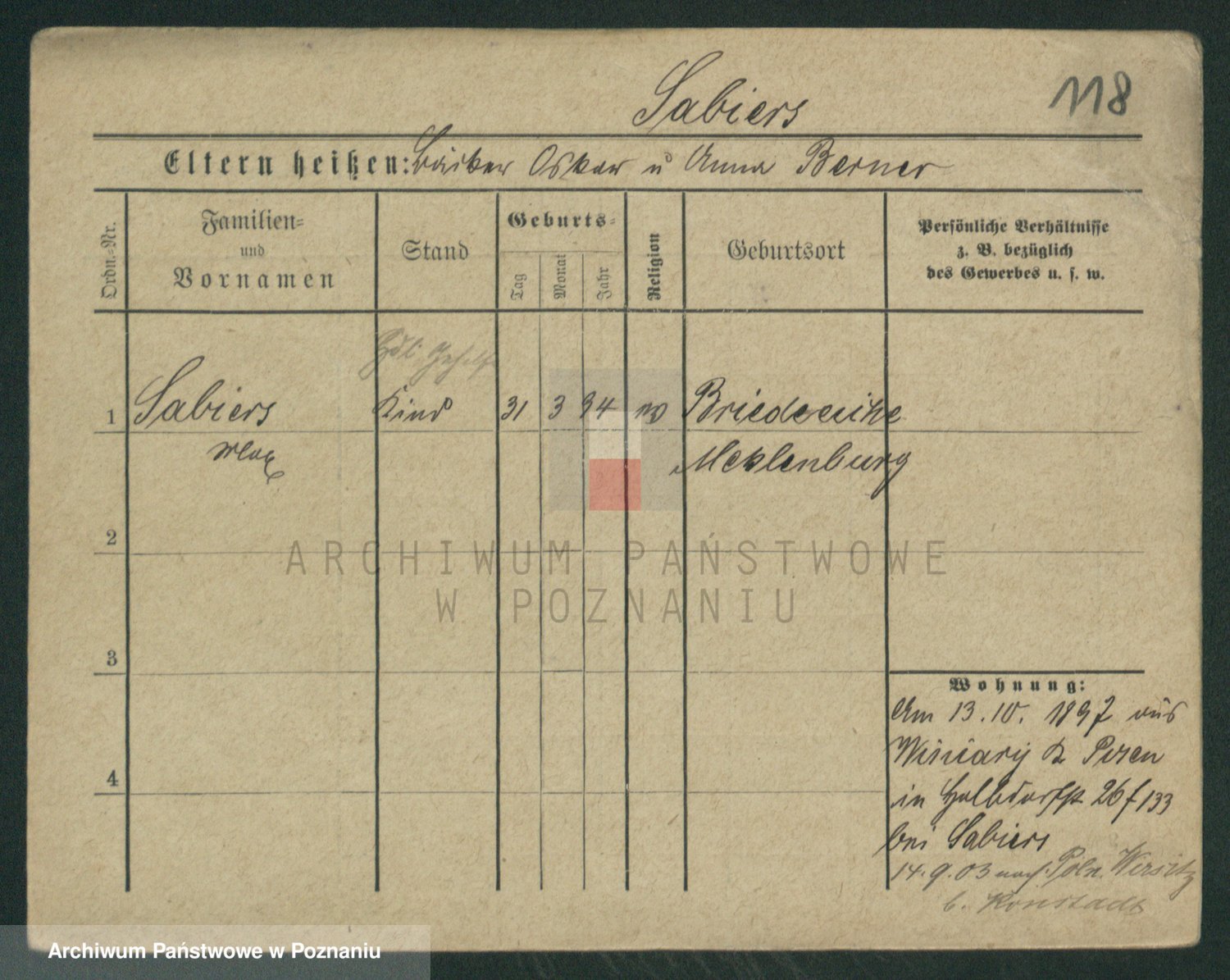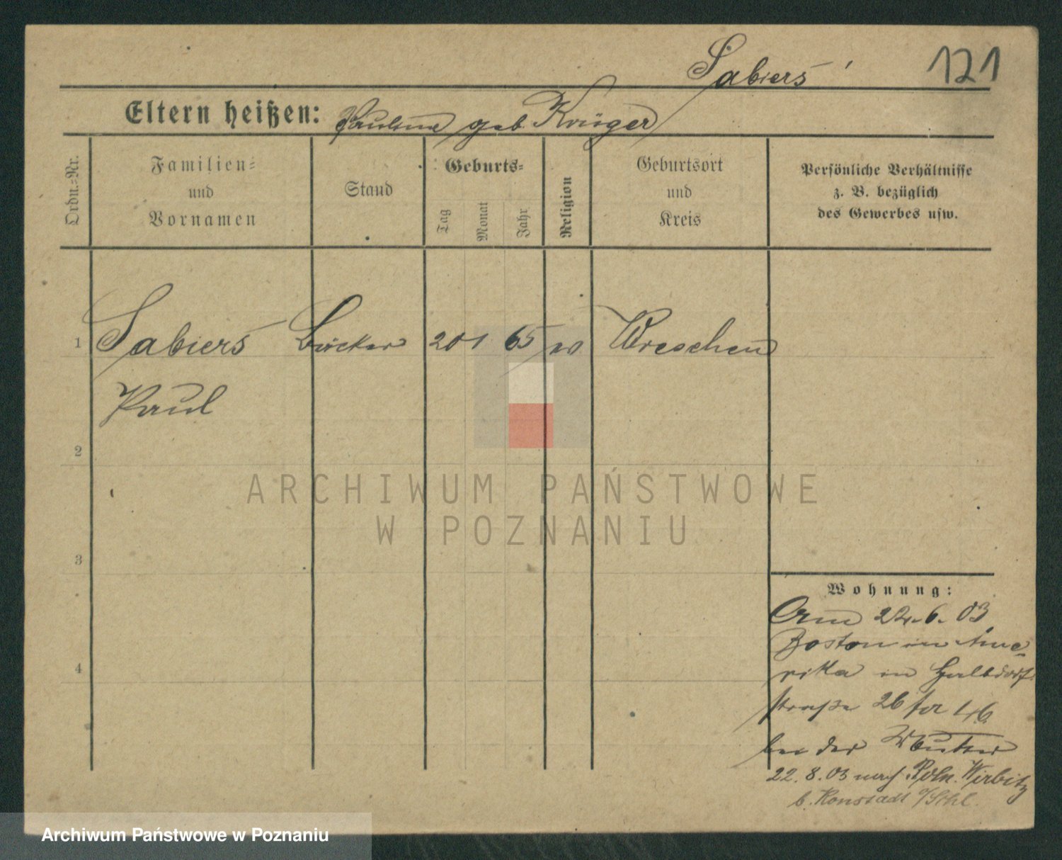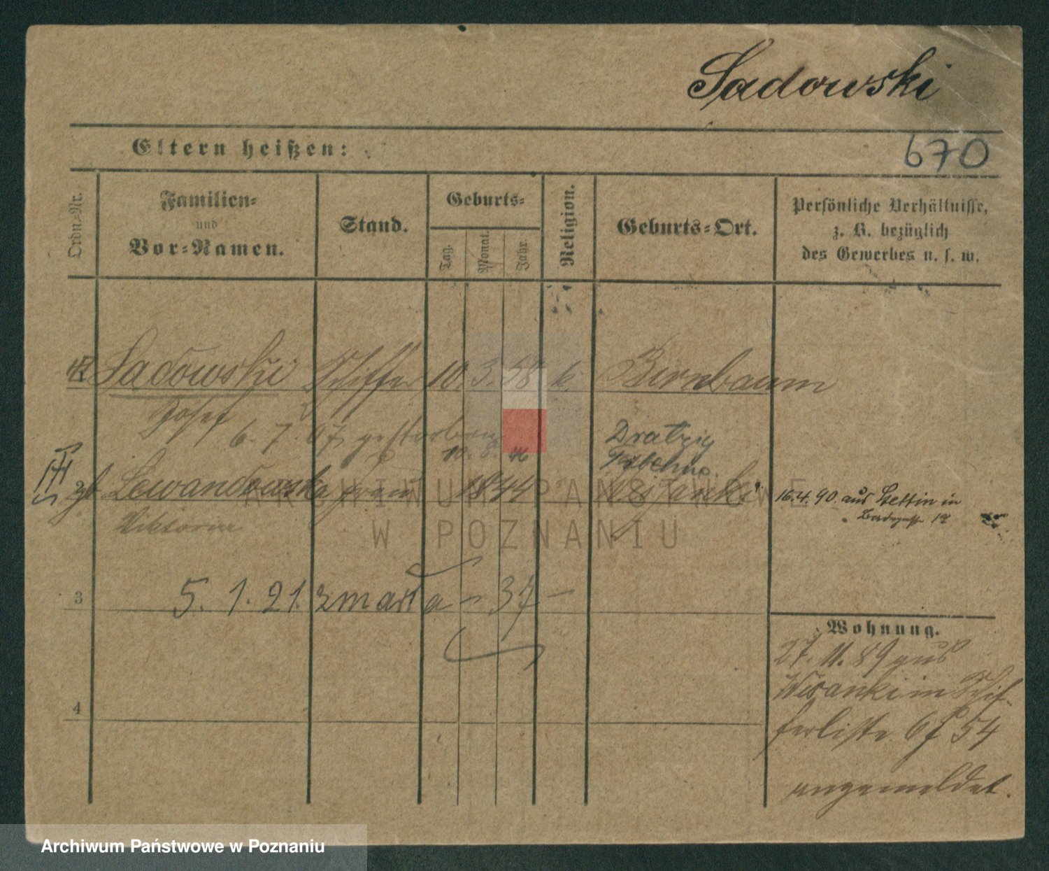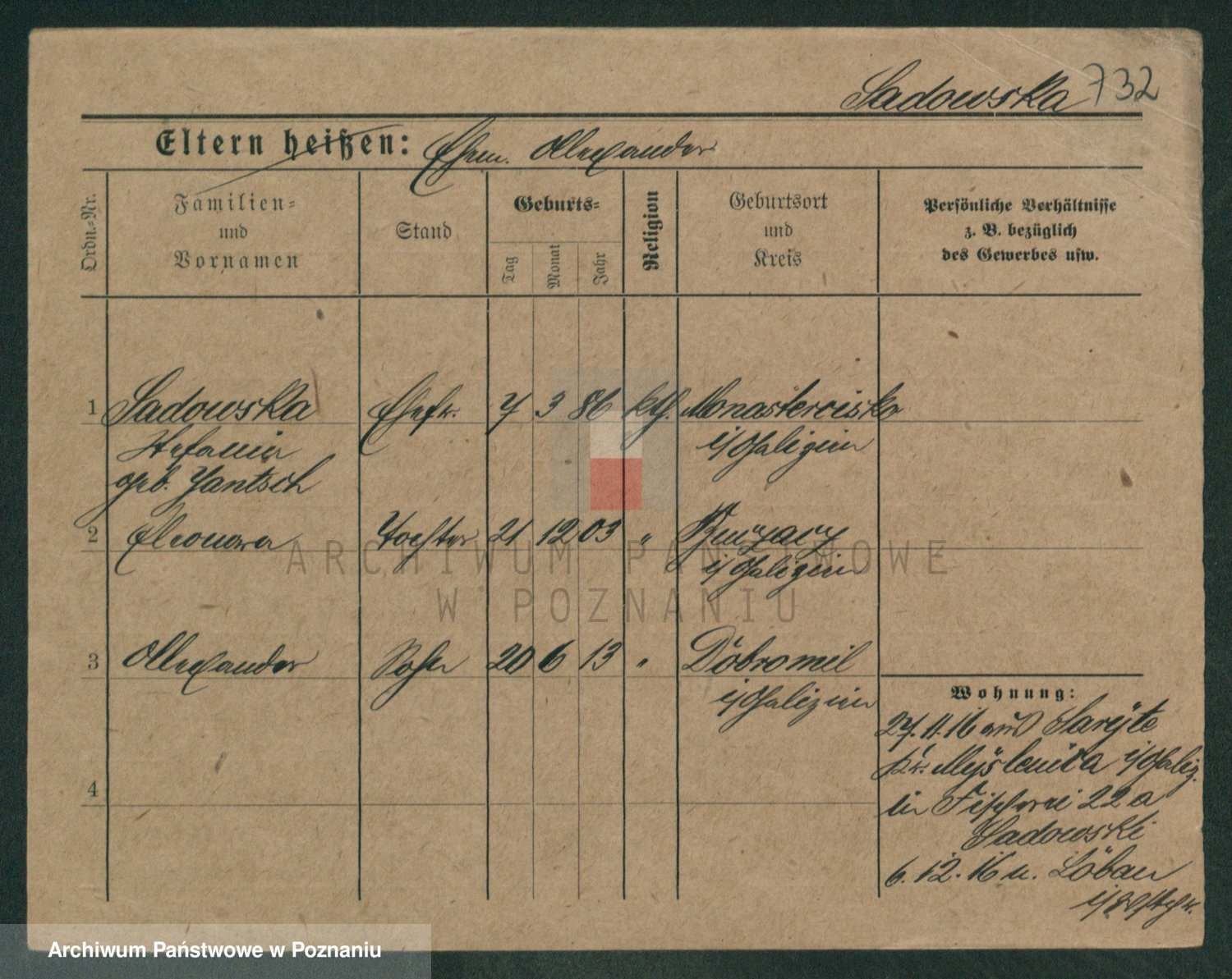 Podgląd karty osobowej dostępny jest po kliknięciu na nazwisko lub ikonkę karty. Można dokonywać powiększenia (ikony na górze) lub przechodzić między kolejnymi skanami (strzałki po bokach).