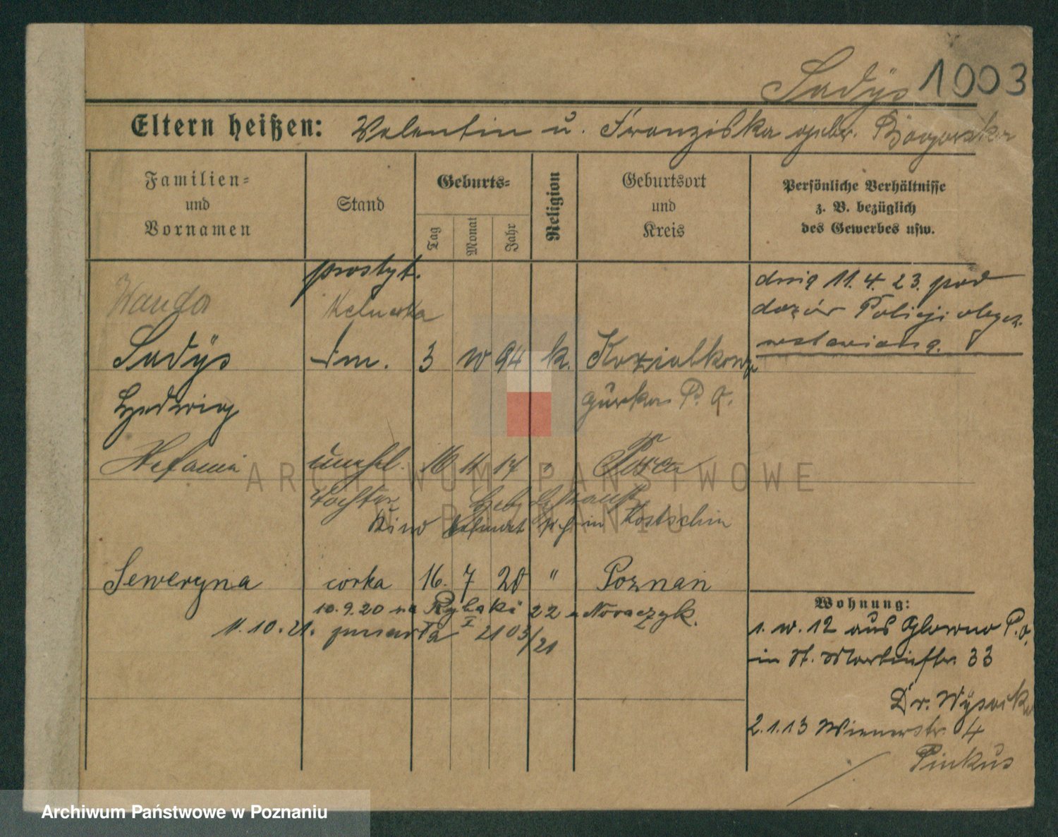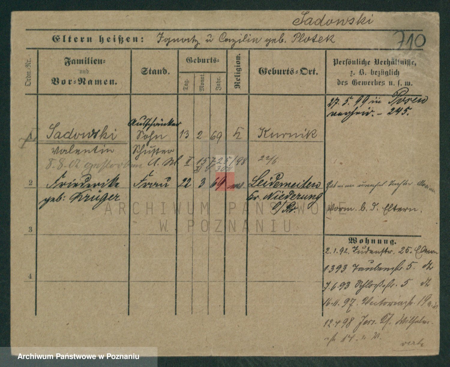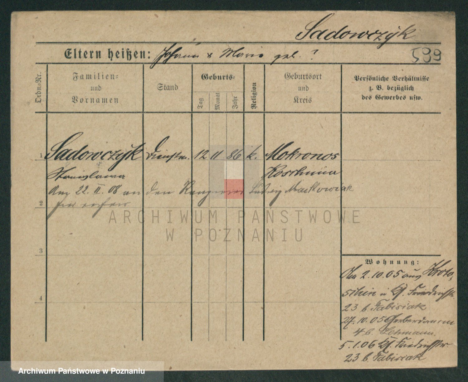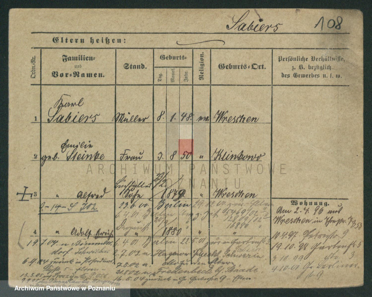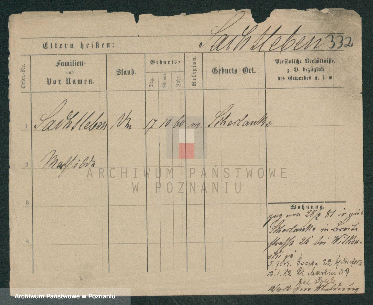 Podgląd karty osobowej dostępny jest po kliknięciu na nazwisko lub ikonkę karty. Można dokonywać powiększenia (ikony na górze) lub przechodzić między kolejnymi skanami (strzałki po bokach).