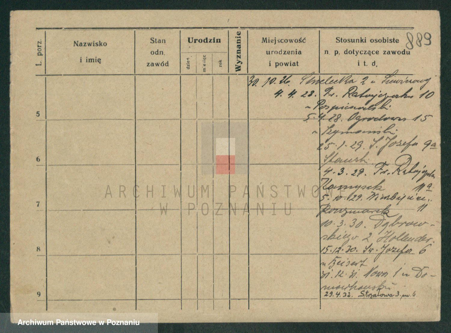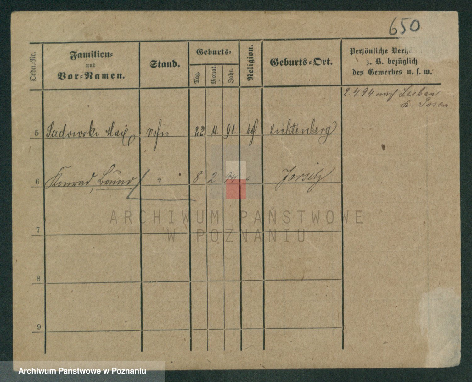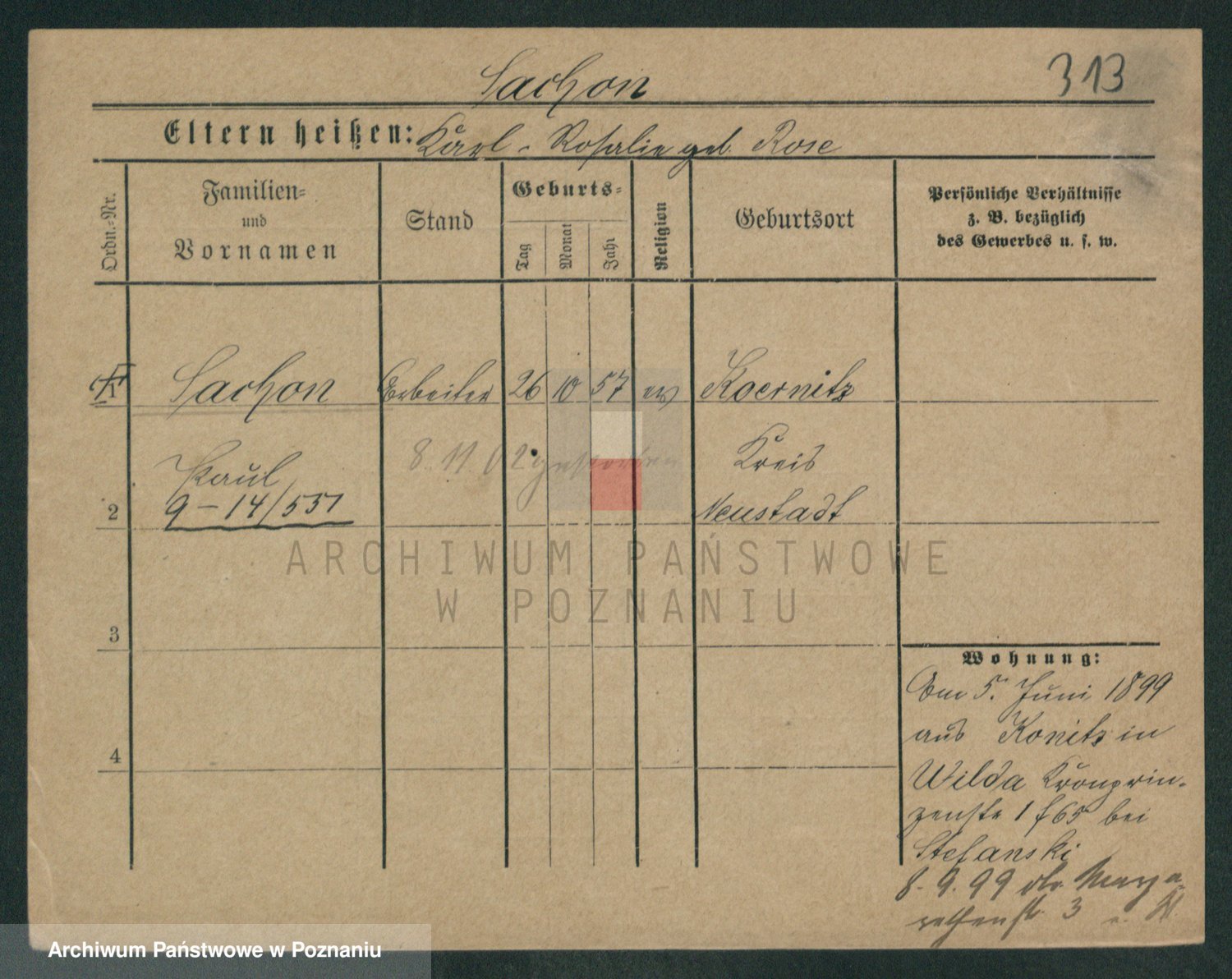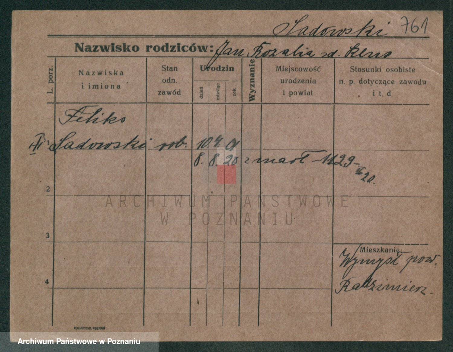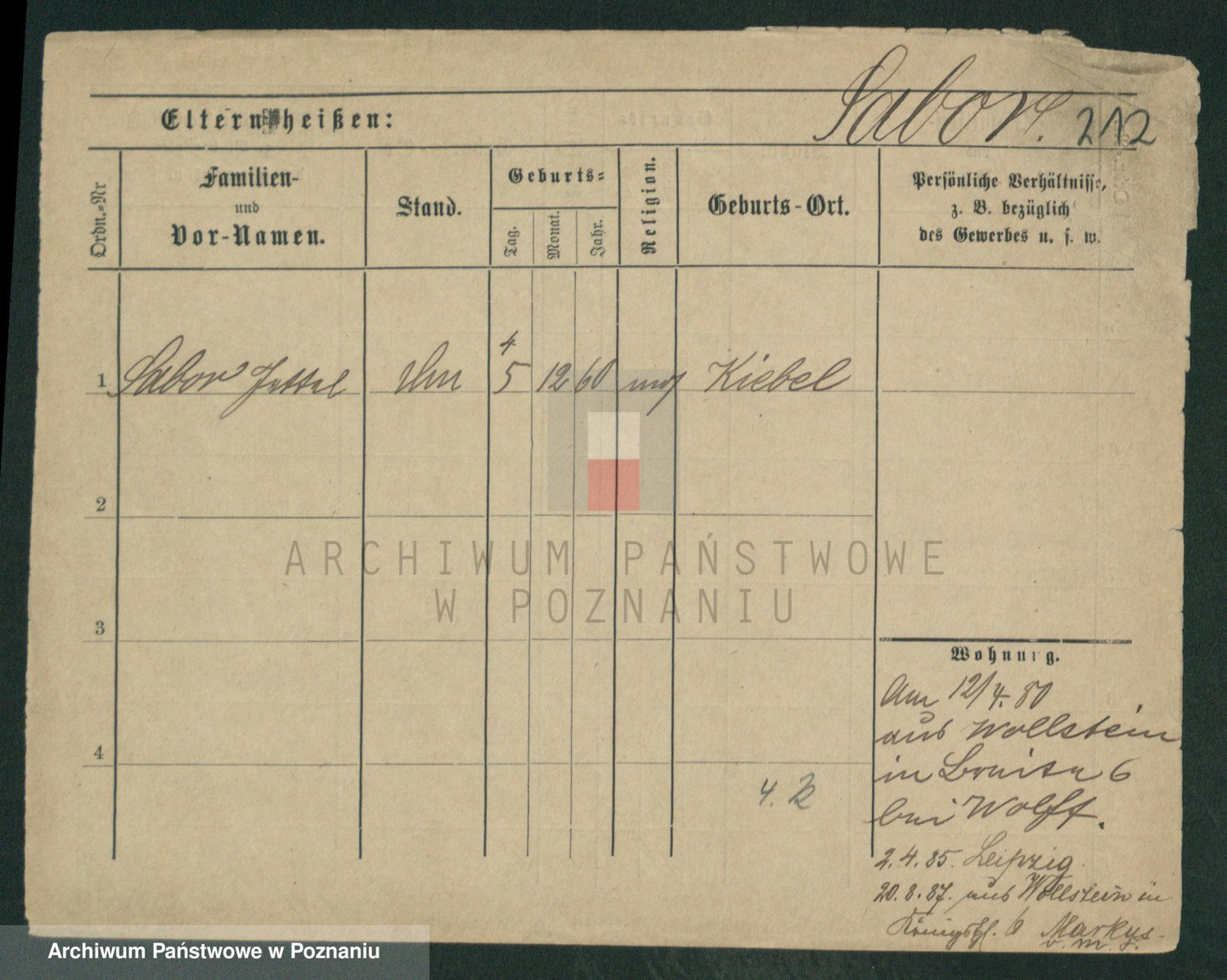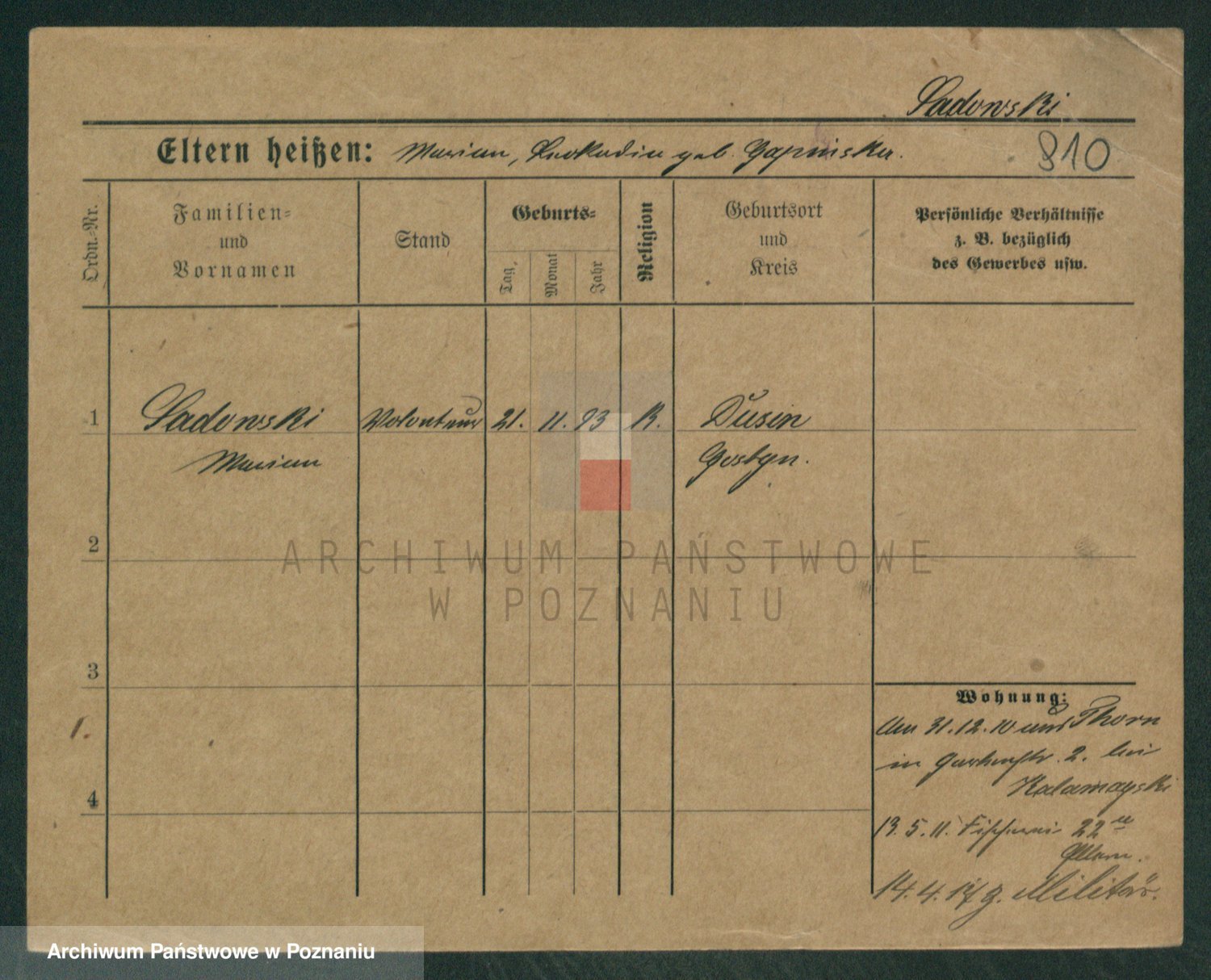 Podgląd karty osobowej dostępny jest po kliknięciu na nazwisko lub ikonkę karty. Można dokonywać powiększenia (ikony na górze) lub przechodzić między kolejnymi skanami (strzałki po bokach).