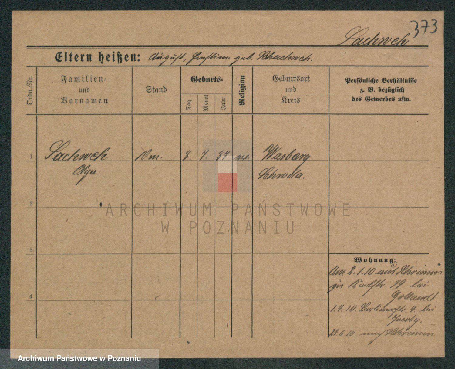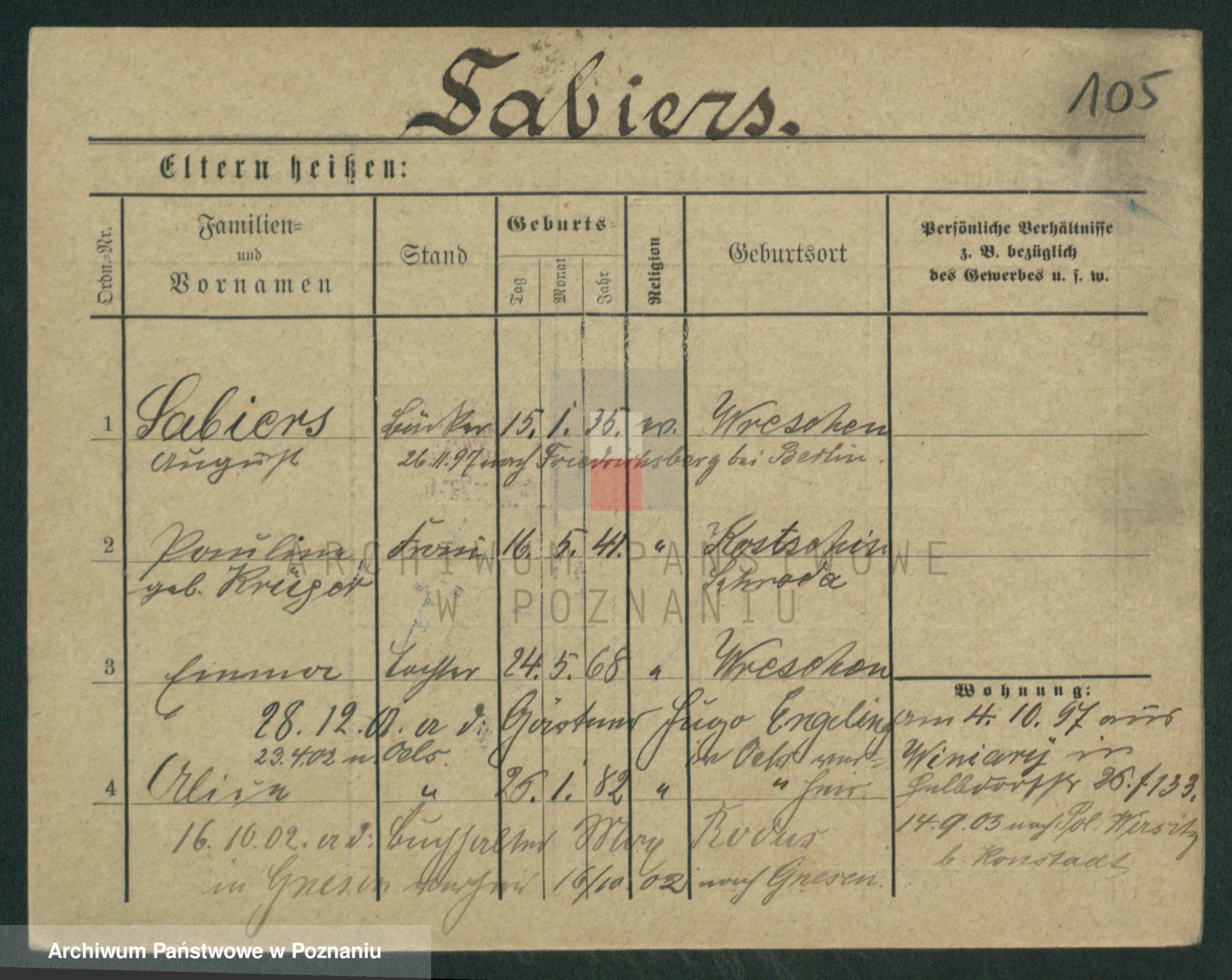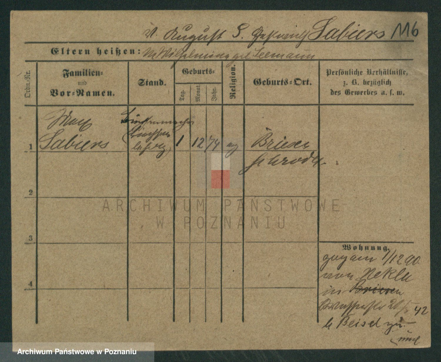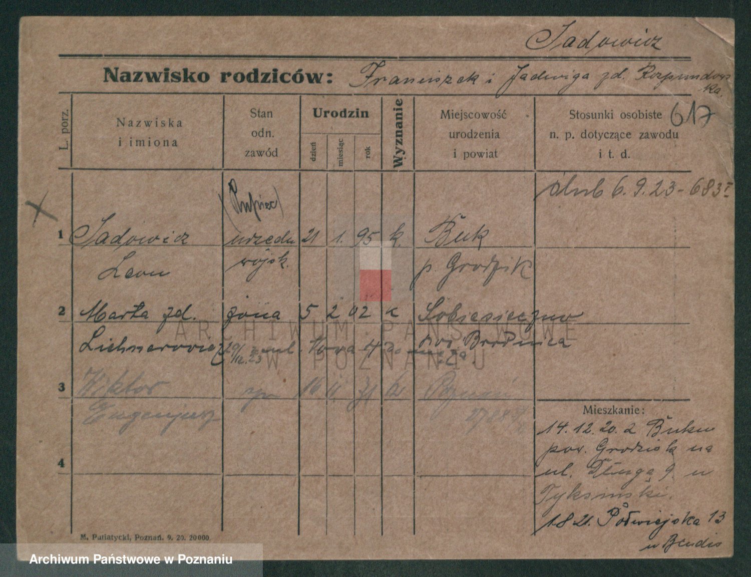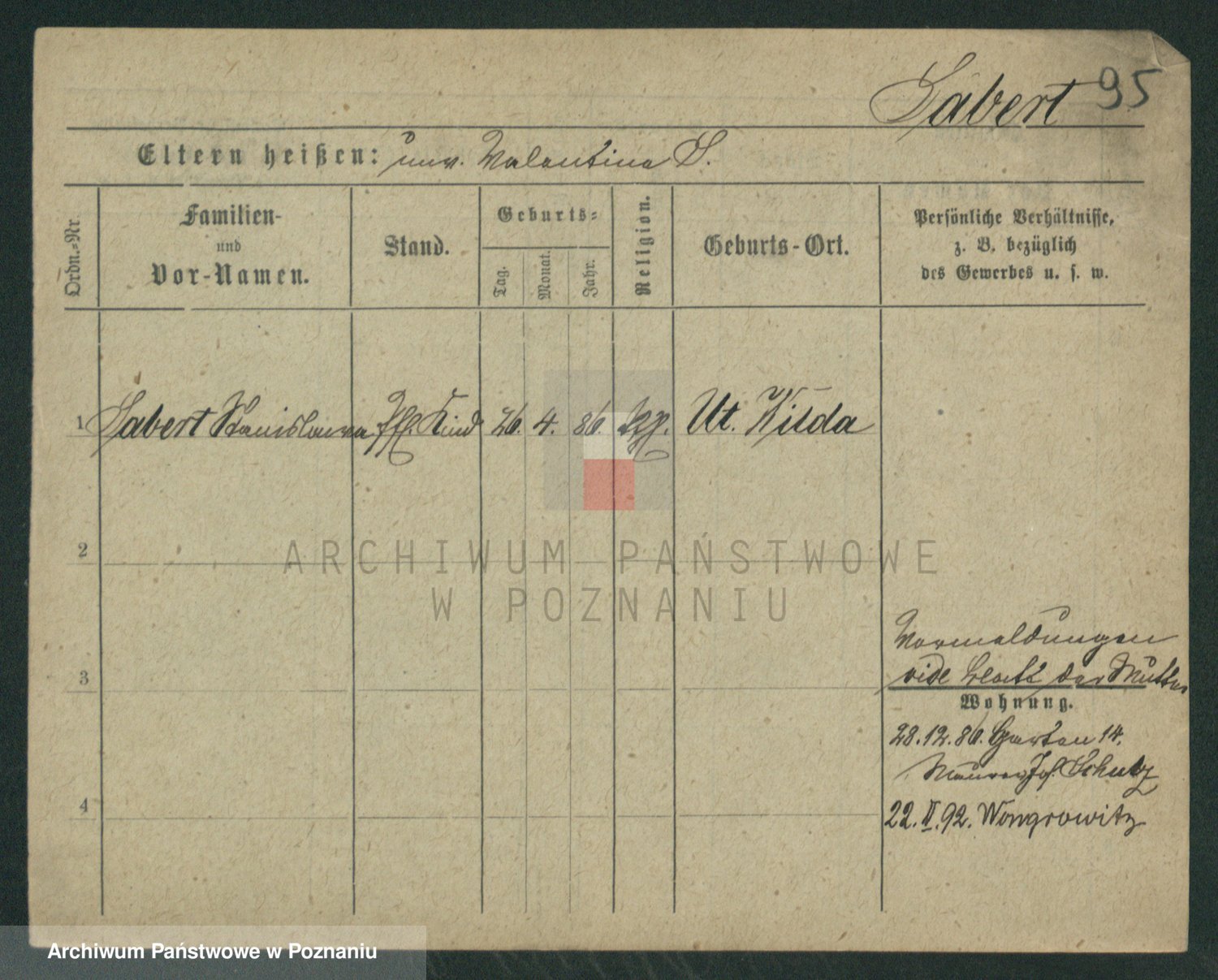 Podgląd karty osobowej dostępny jest po kliknięciu na nazwisko lub ikonkę karty. Można dokonywać powiększenia (ikony na górze) lub przechodzić między kolejnymi skanami (strzałki po bokach).