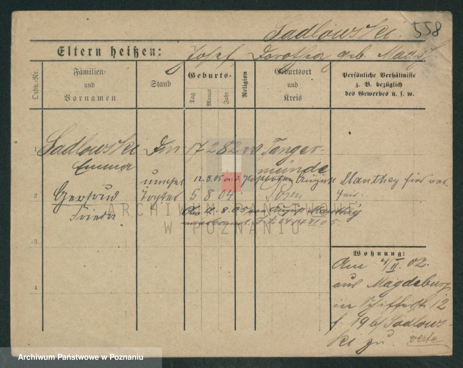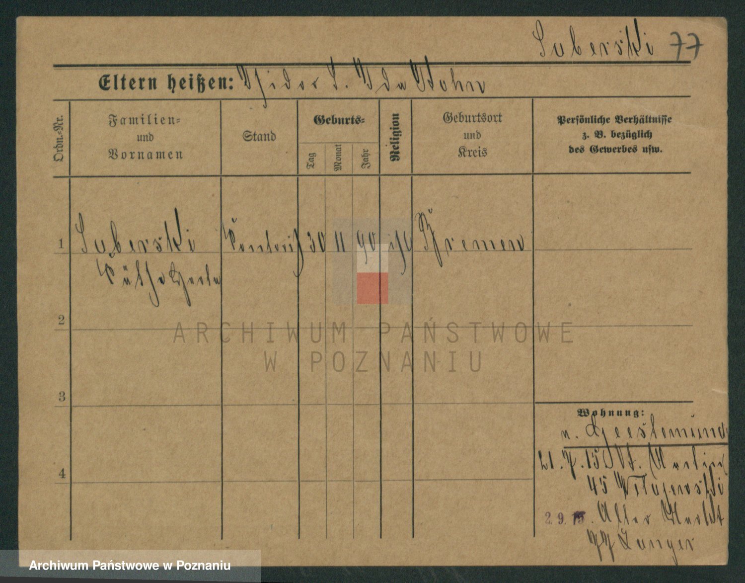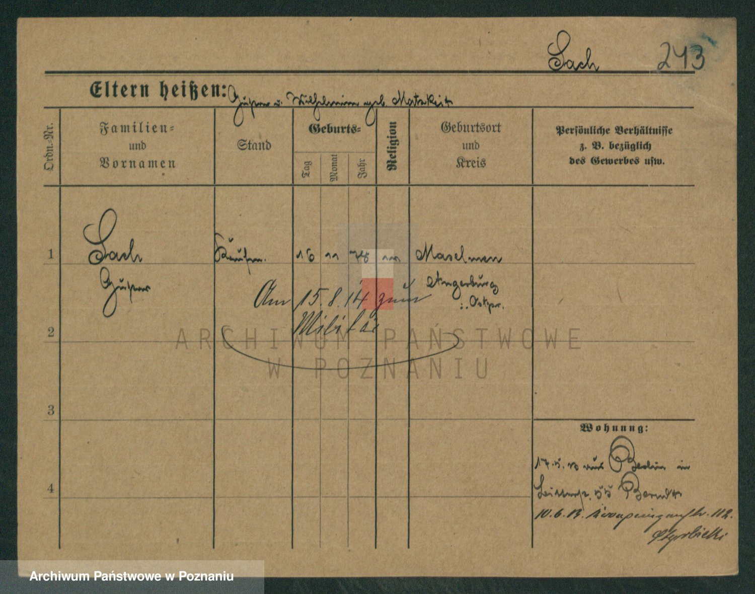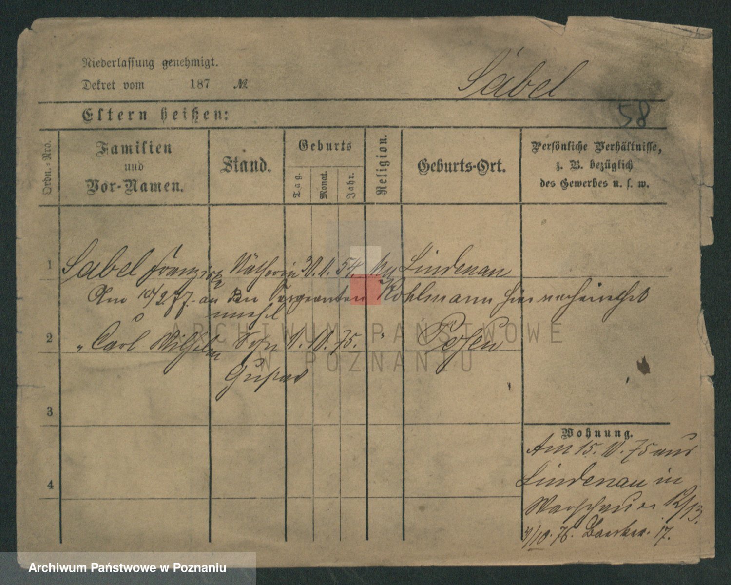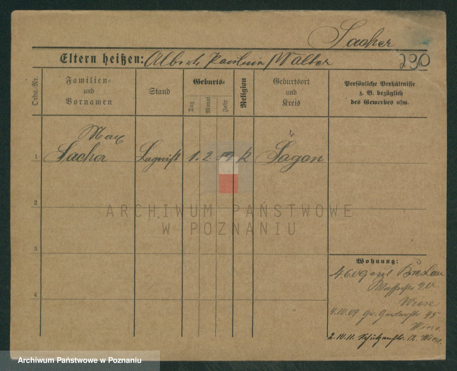 Podgląd karty osobowej dostępny jest po kliknięciu na nazwisko lub ikonkę karty. Można dokonywać powiększenia (ikony na górze) lub przechodzić między kolejnymi skanami (strzałki po bokach).