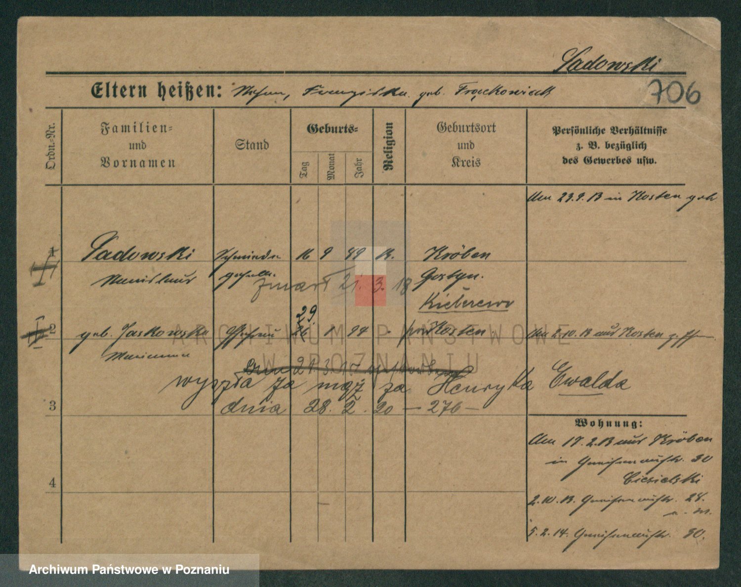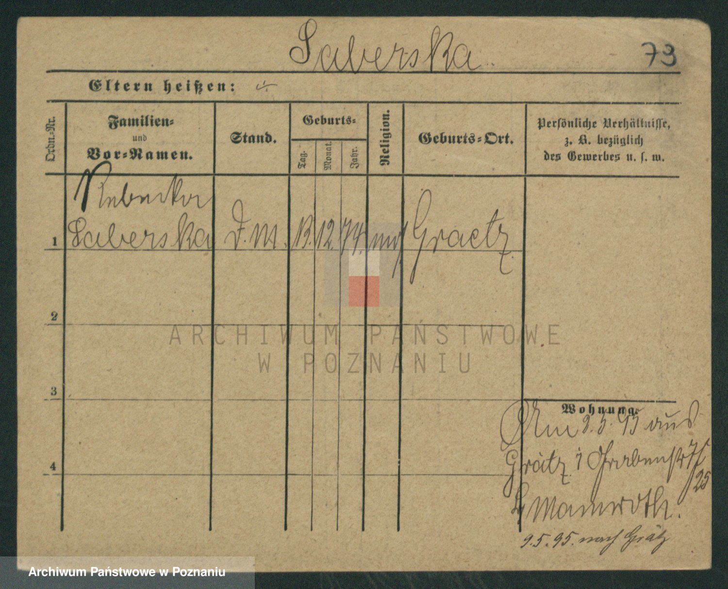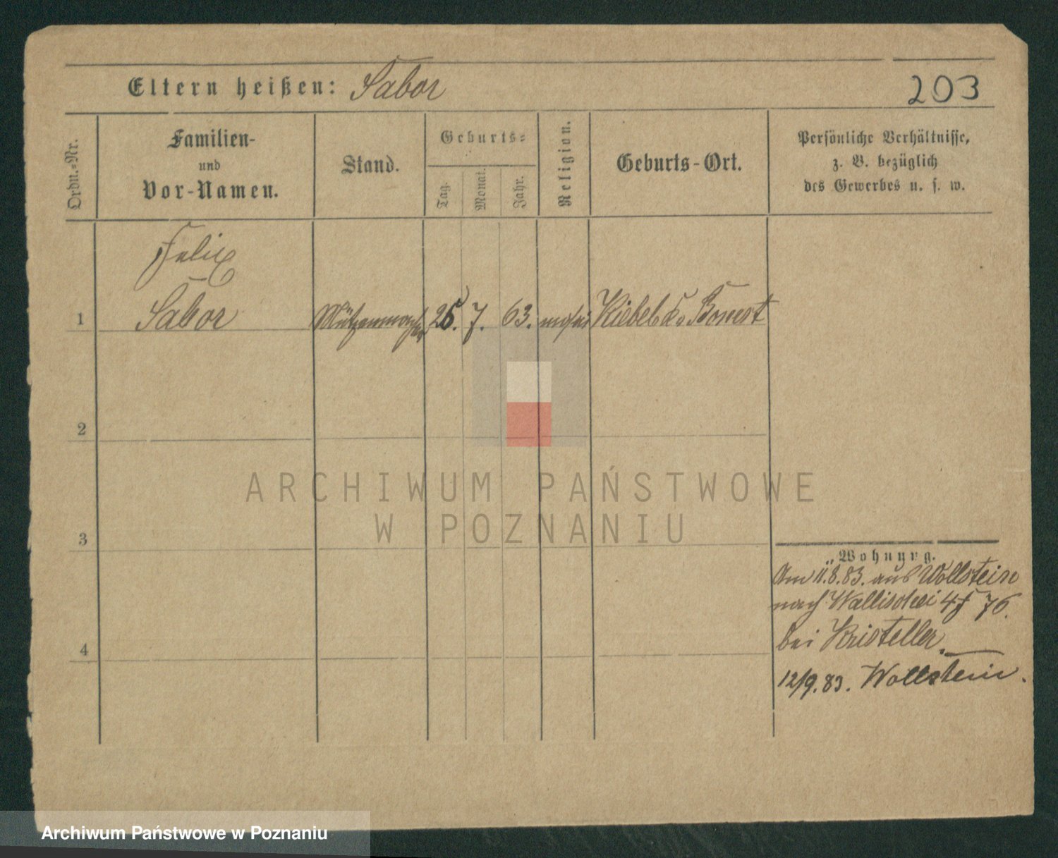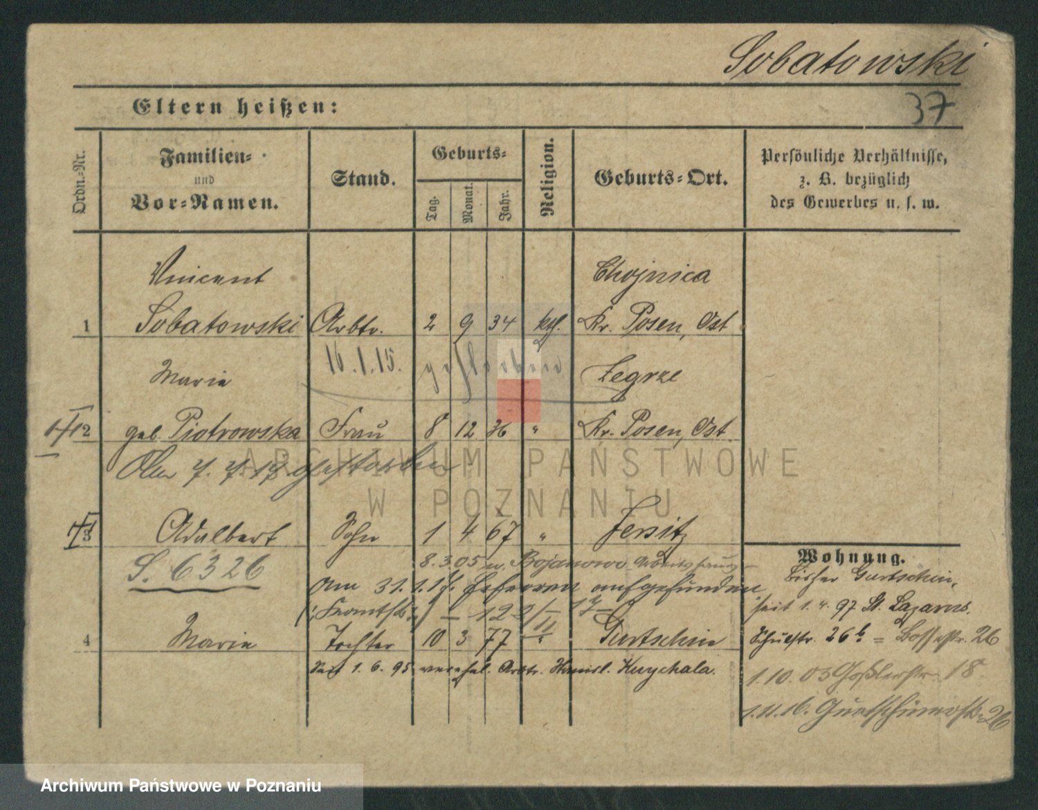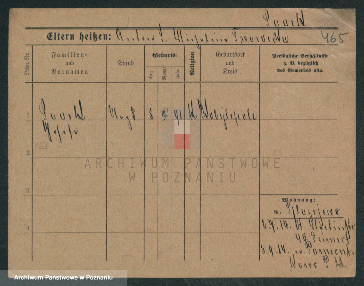 Podgląd karty osobowej dostępny jest po kliknięciu na nazwisko lub ikonkę karty. Można dokonywać powiększenia (ikony na górze) lub przechodzić między kolejnymi skanami (strzałki po bokach).