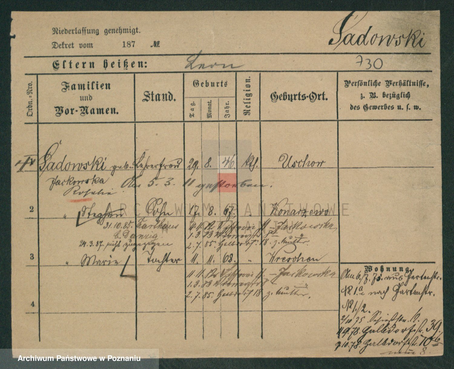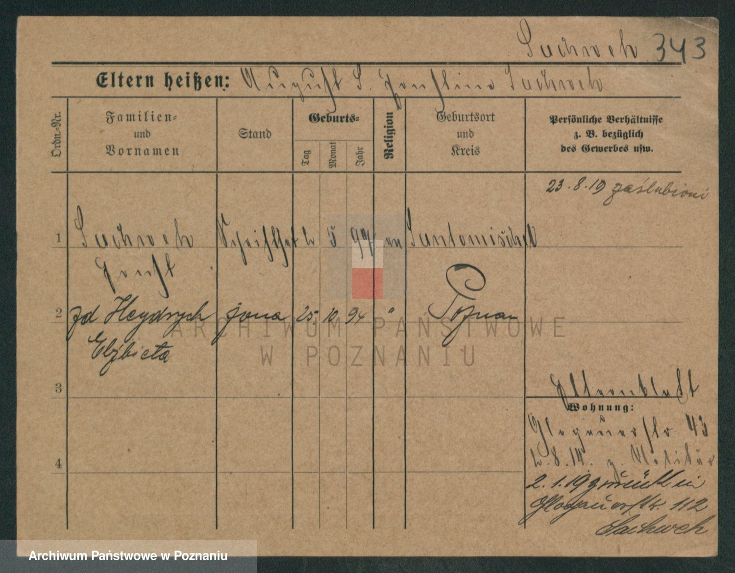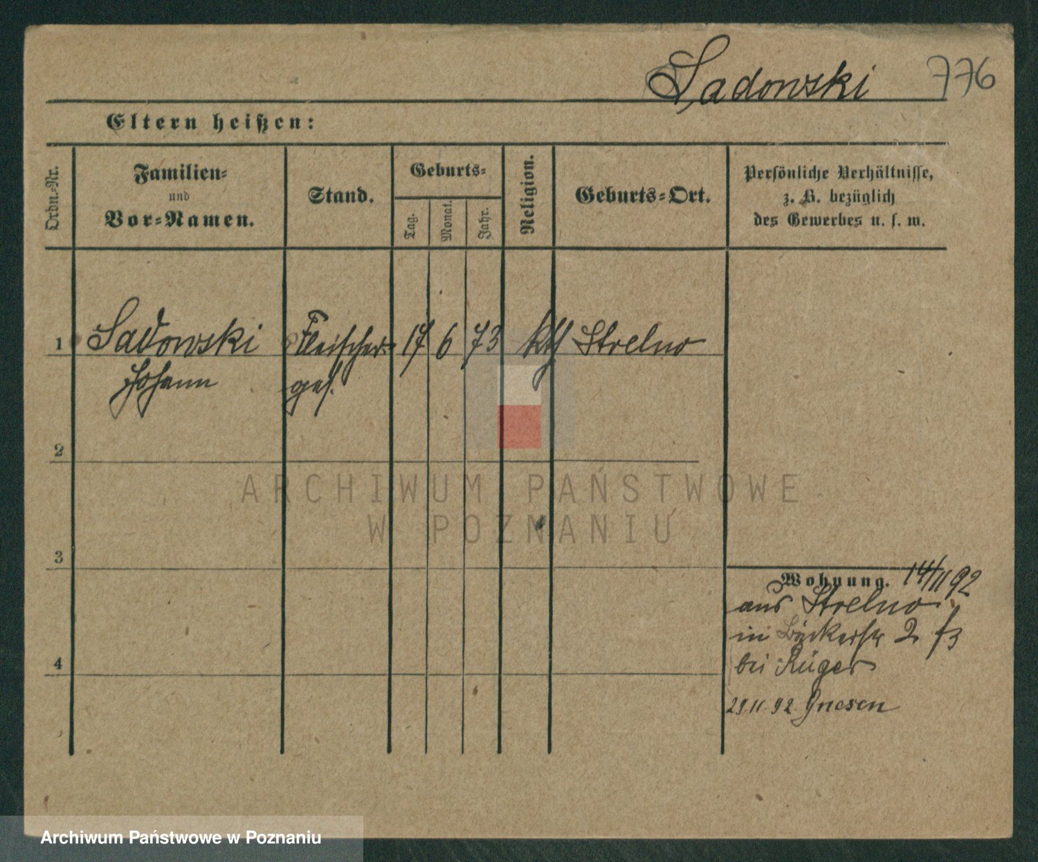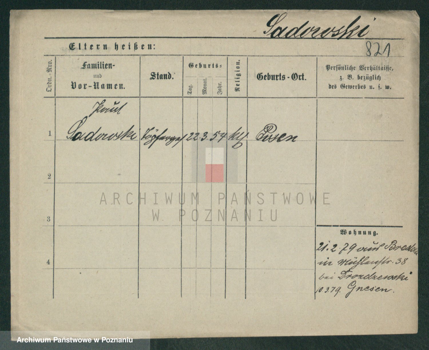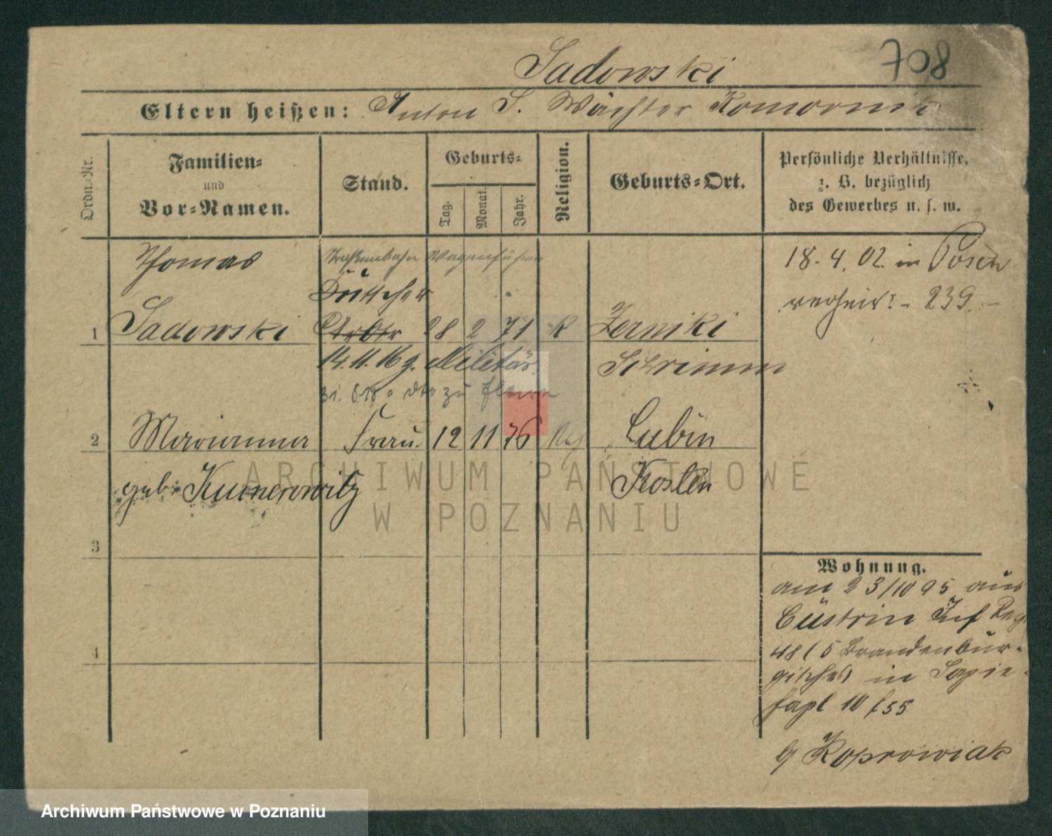 Podgląd karty osobowej dostępny jest po kliknięciu na nazwisko lub ikonkę karty. Można dokonywać powiększenia (ikony na górze) lub przechodzić między kolejnymi skanami (strzałki po bokach).