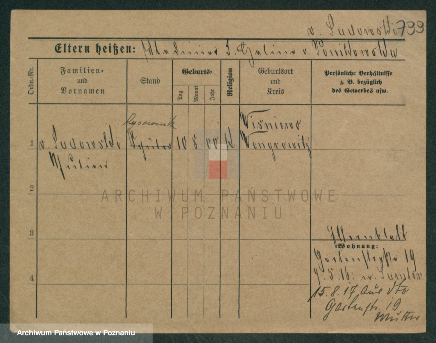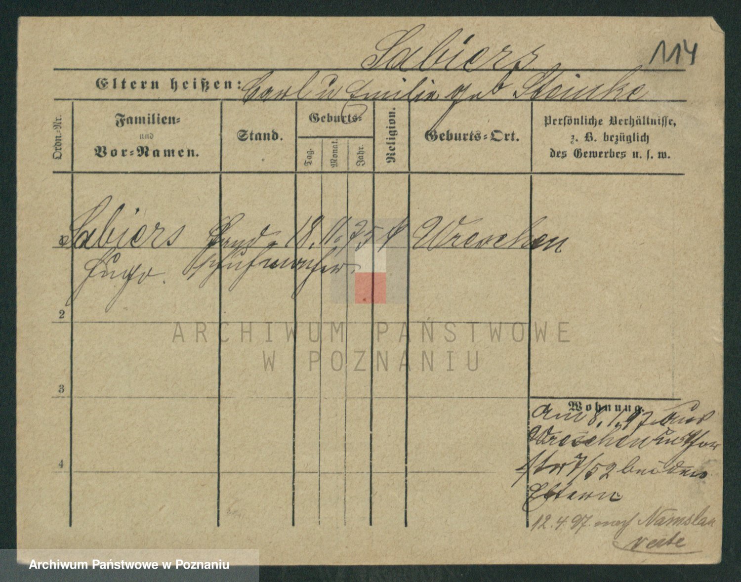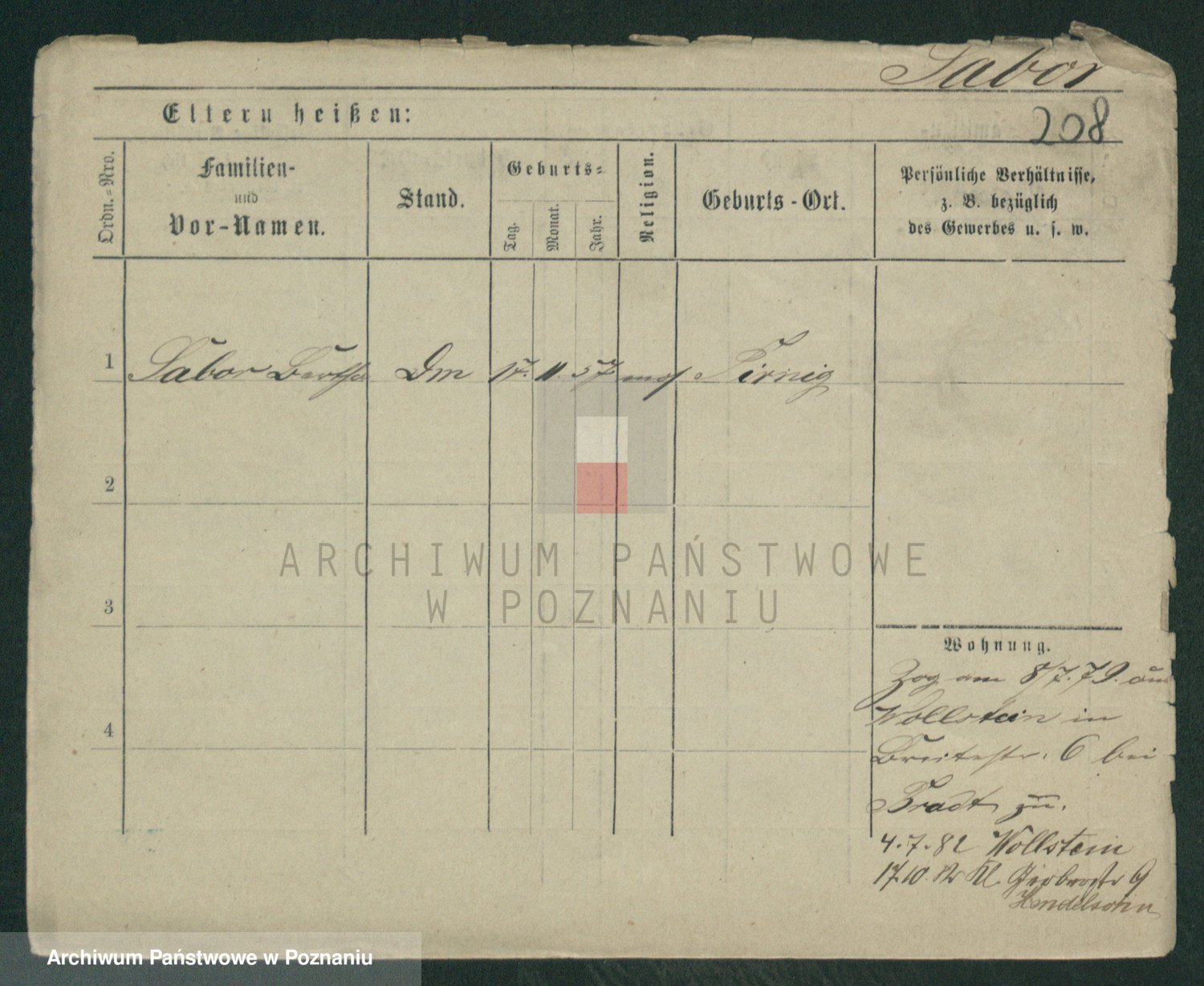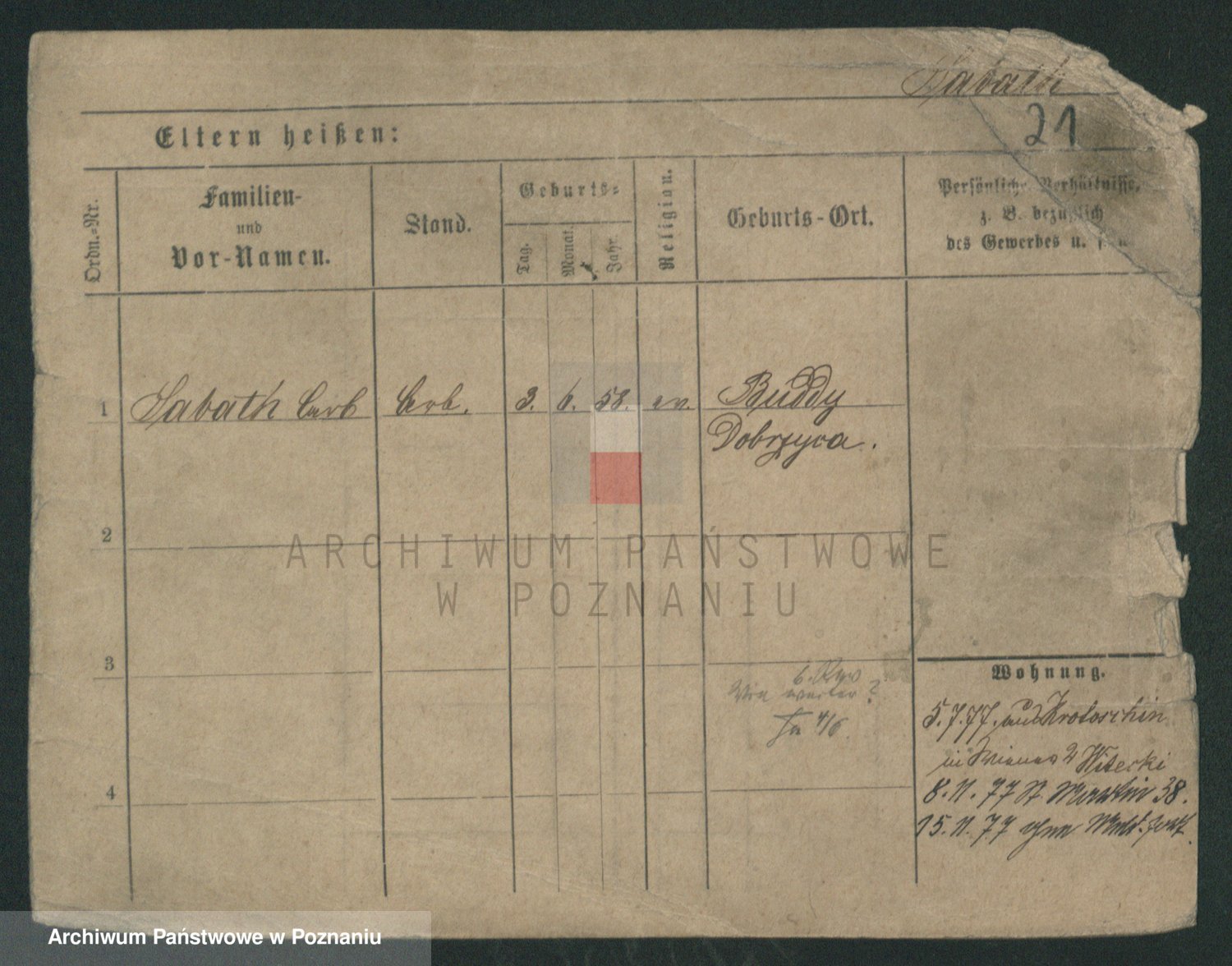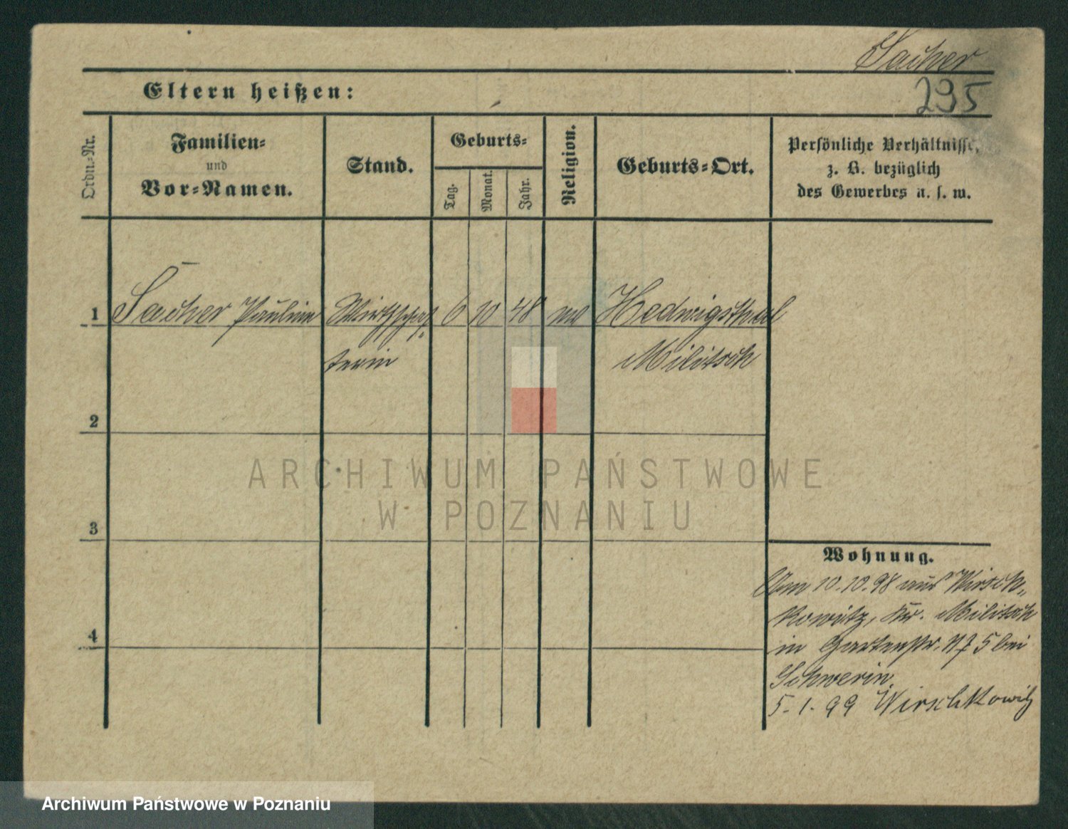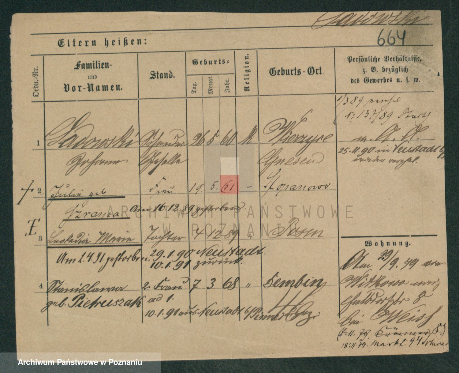 Podgląd karty osobowej dostępny jest po kliknięciu na nazwisko lub ikonkę karty. Można dokonywać powiększenia (ikony na górze) lub przechodzić między kolejnymi skanami (strzałki po bokach).