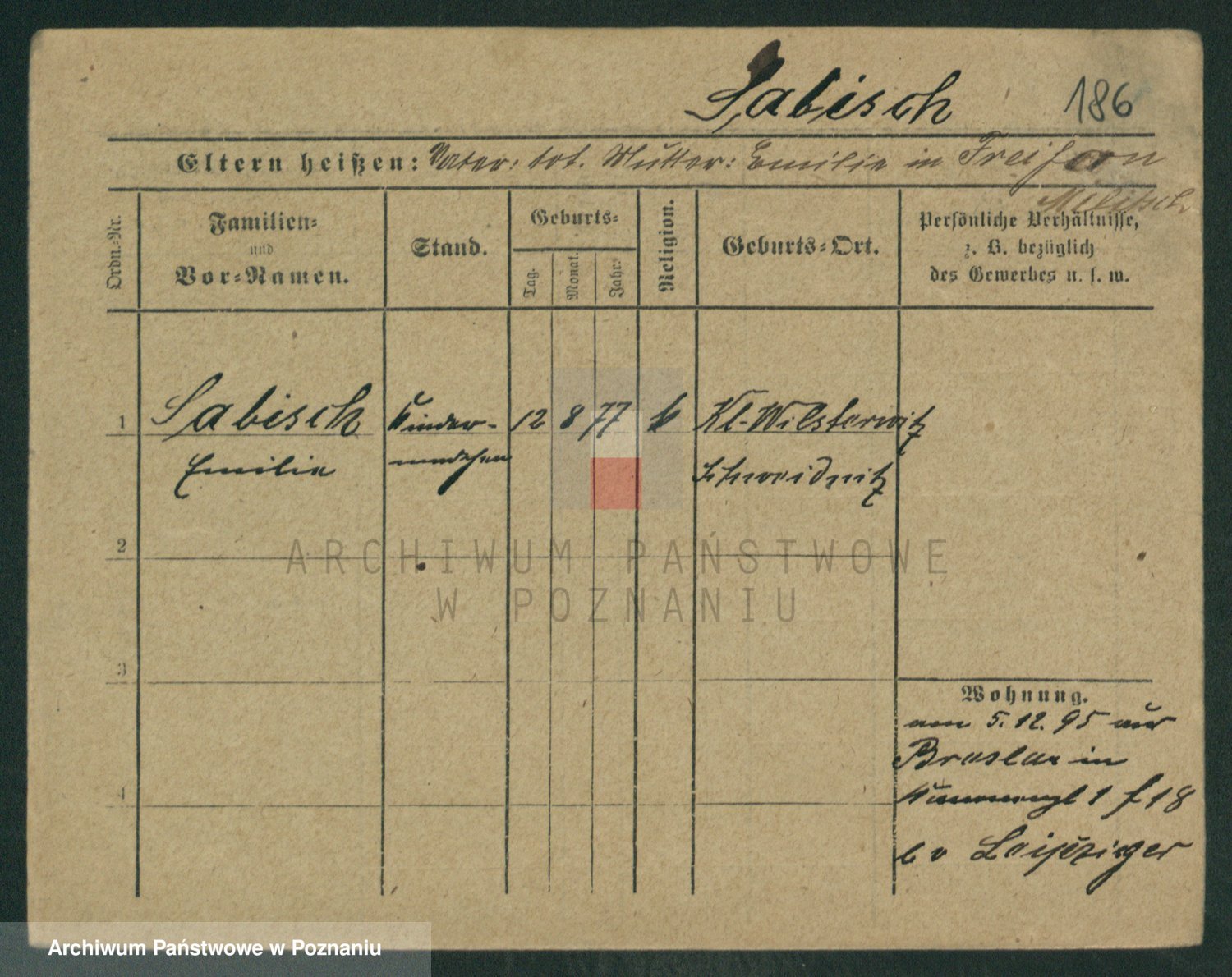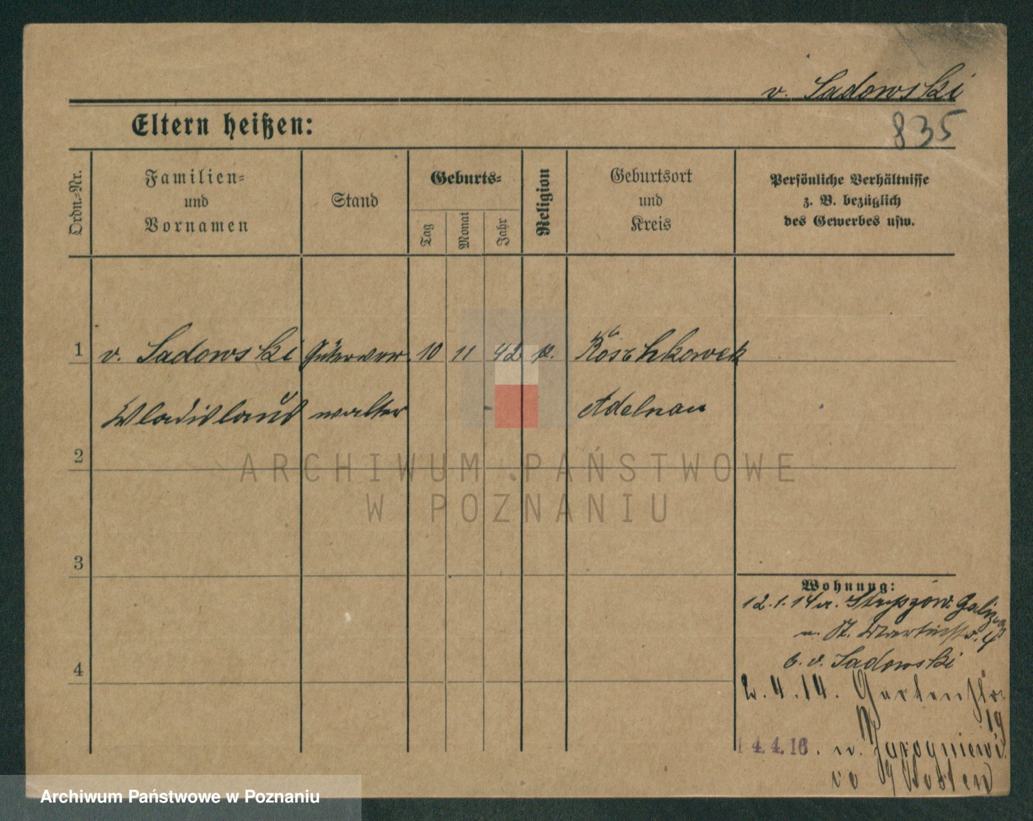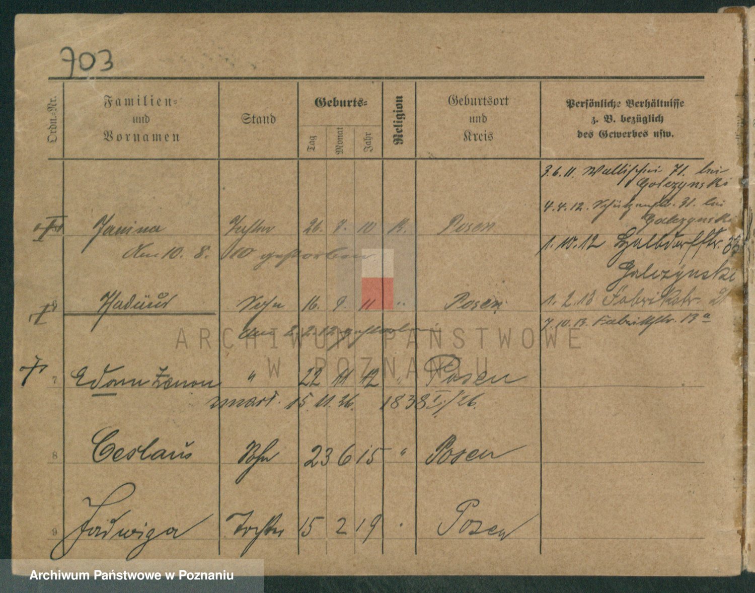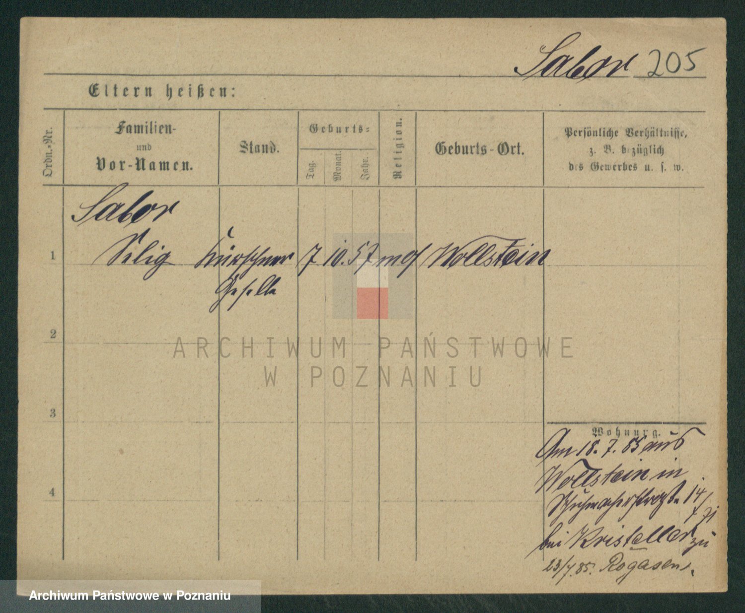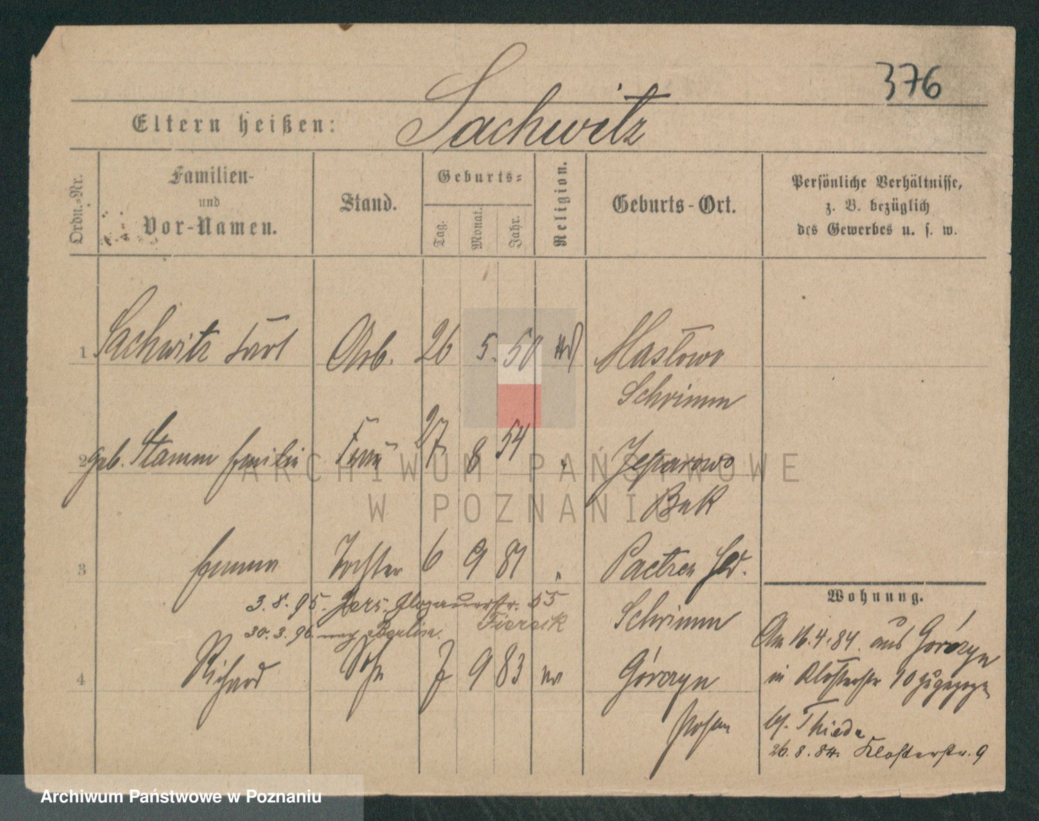 Podgląd karty osobowej dostępny jest po kliknięciu na nazwisko lub ikonkę karty. Można dokonywać powiększenia (ikony na górze) lub przechodzić między kolejnymi skanami (strzałki po bokach).