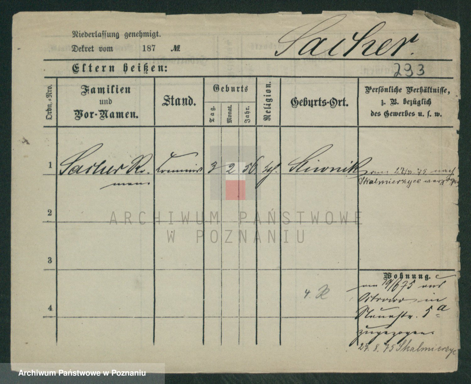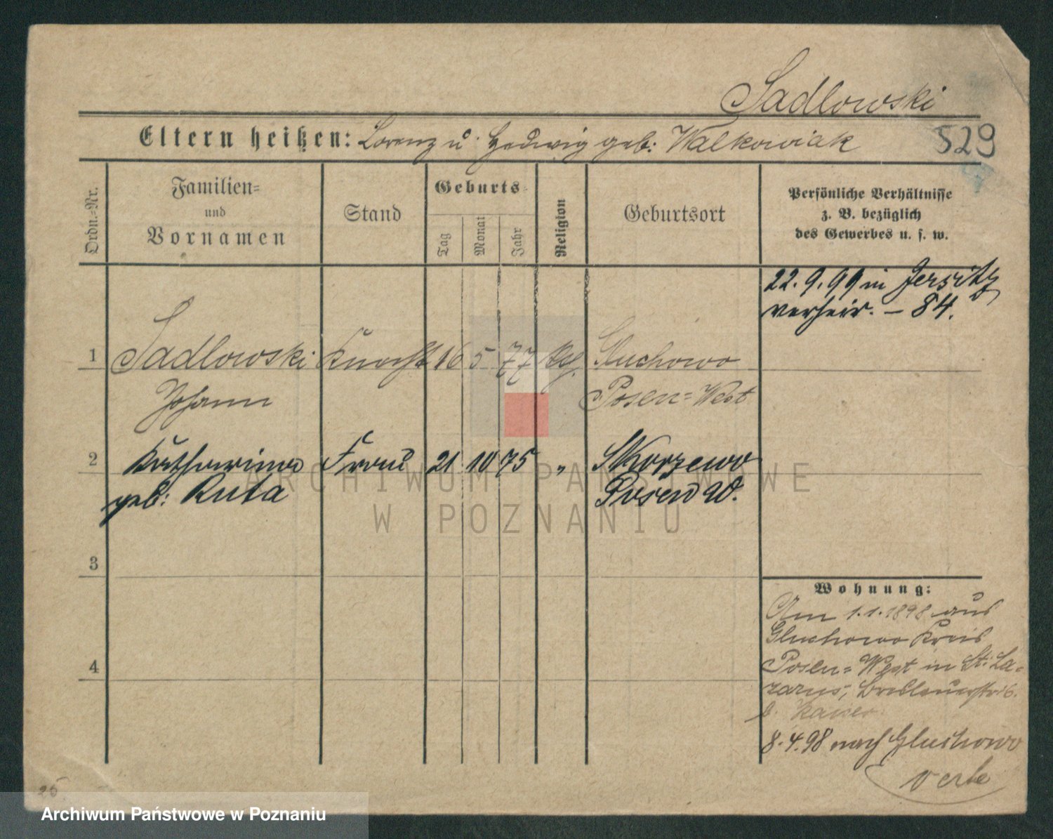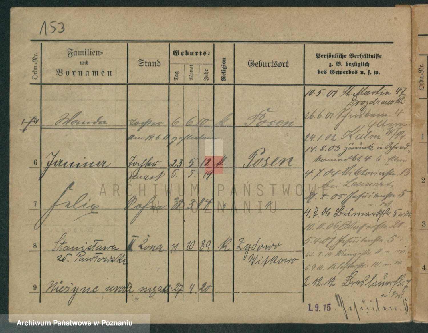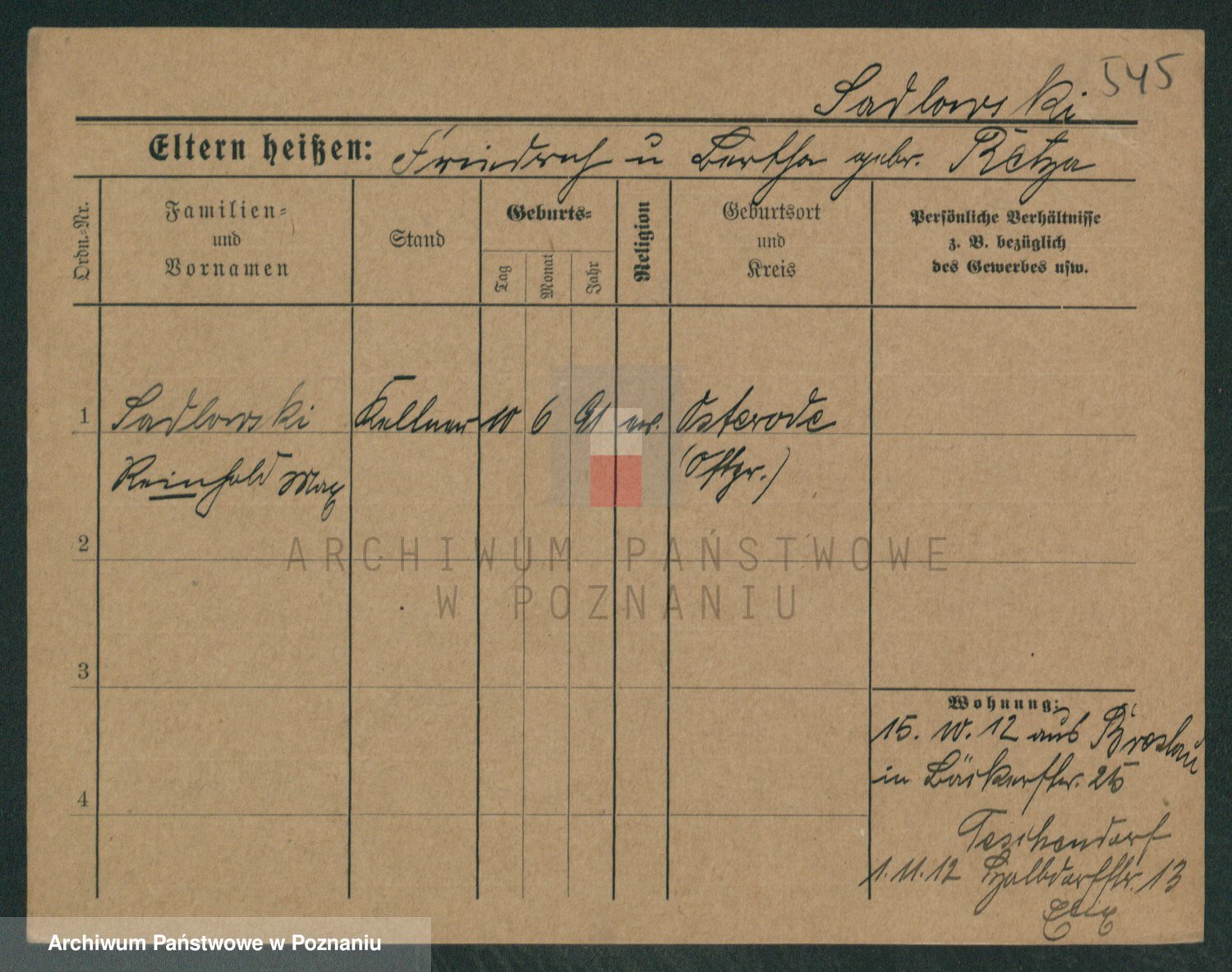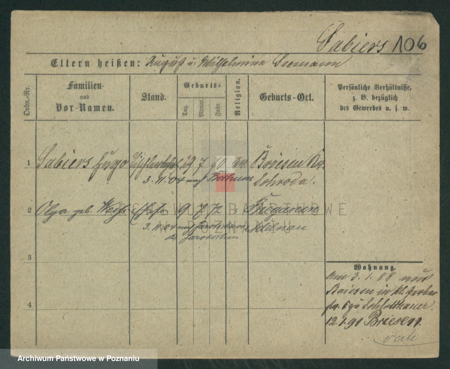 Podgląd karty osobowej dostępny jest po kliknięciu na nazwisko lub ikonkę karty. Można dokonywać powiększenia (ikony na górze) lub przechodzić między kolejnymi skanami (strzałki po bokach).