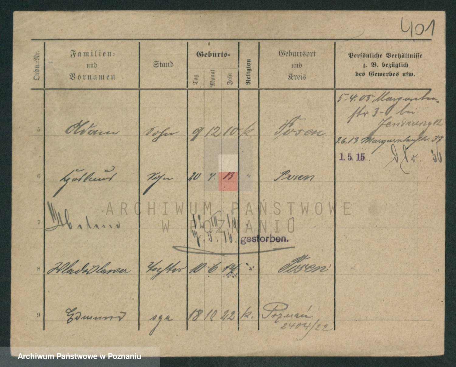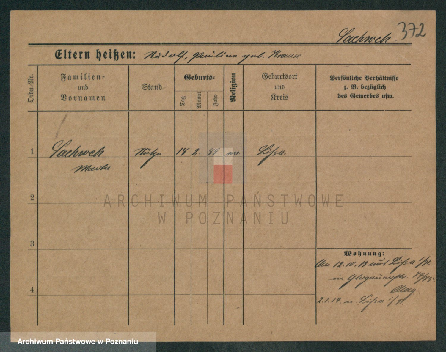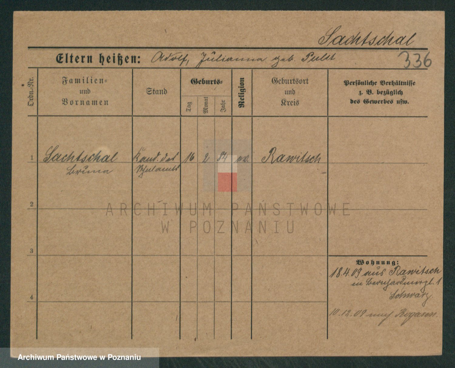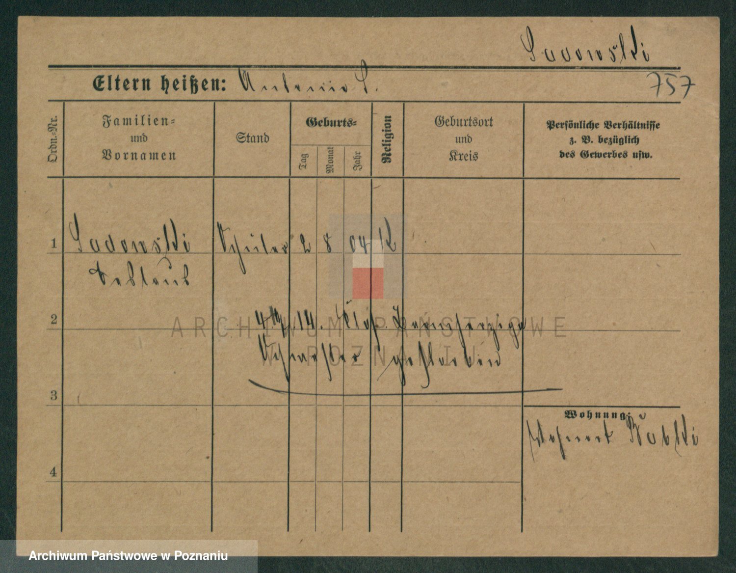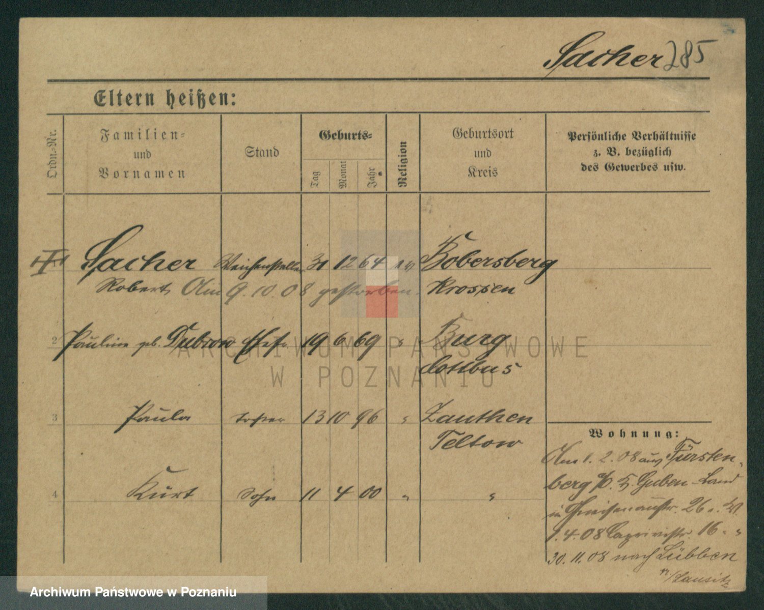Podgląd karty osobowej dostępny jest po kliknięciu na nazwisko lub ikonkę karty. Można dokonywać powiększenia (ikony na górze) lub przechodzić między kolejnymi skanami (strzałki po bokach).