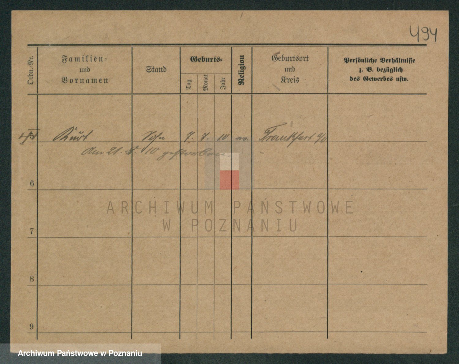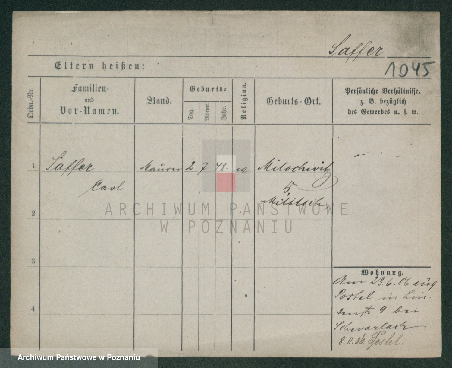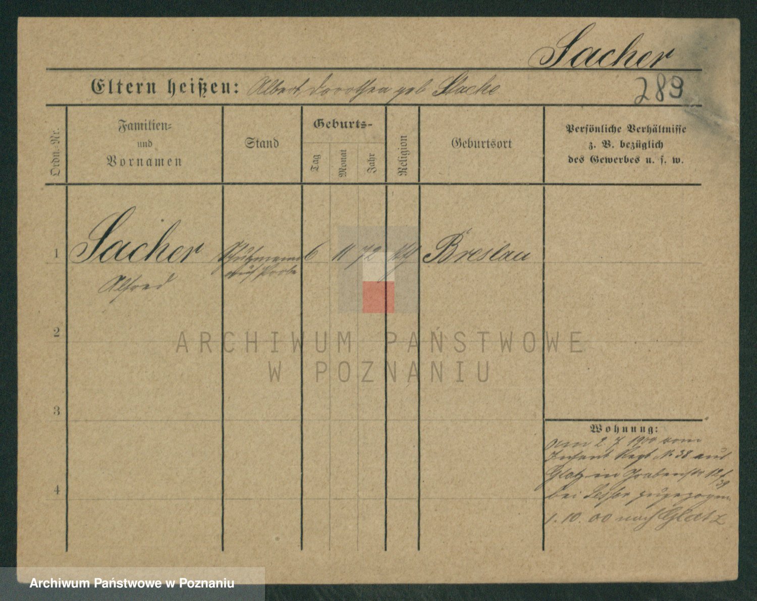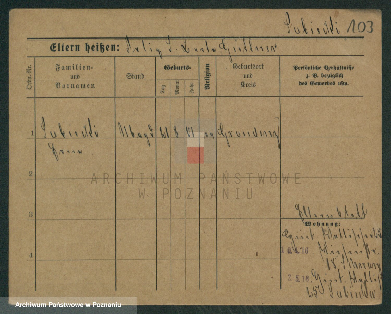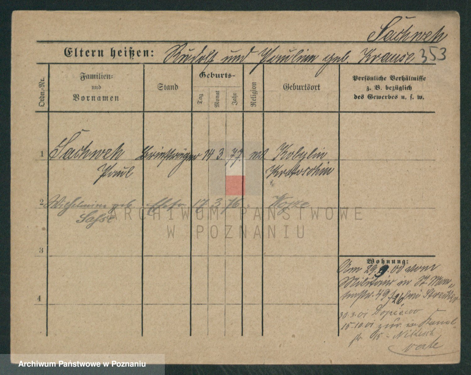 Podgląd karty osobowej dostępny jest po kliknięciu na nazwisko lub ikonkę karty. Można dokonywać powiększenia (ikony na górze) lub przechodzić między kolejnymi skanami (strzałki po bokach).