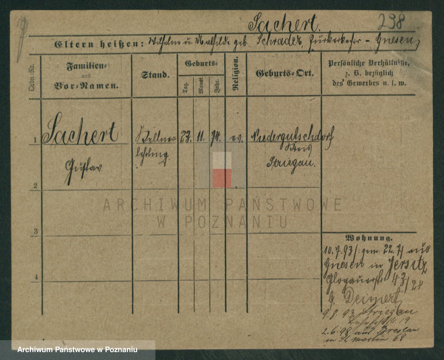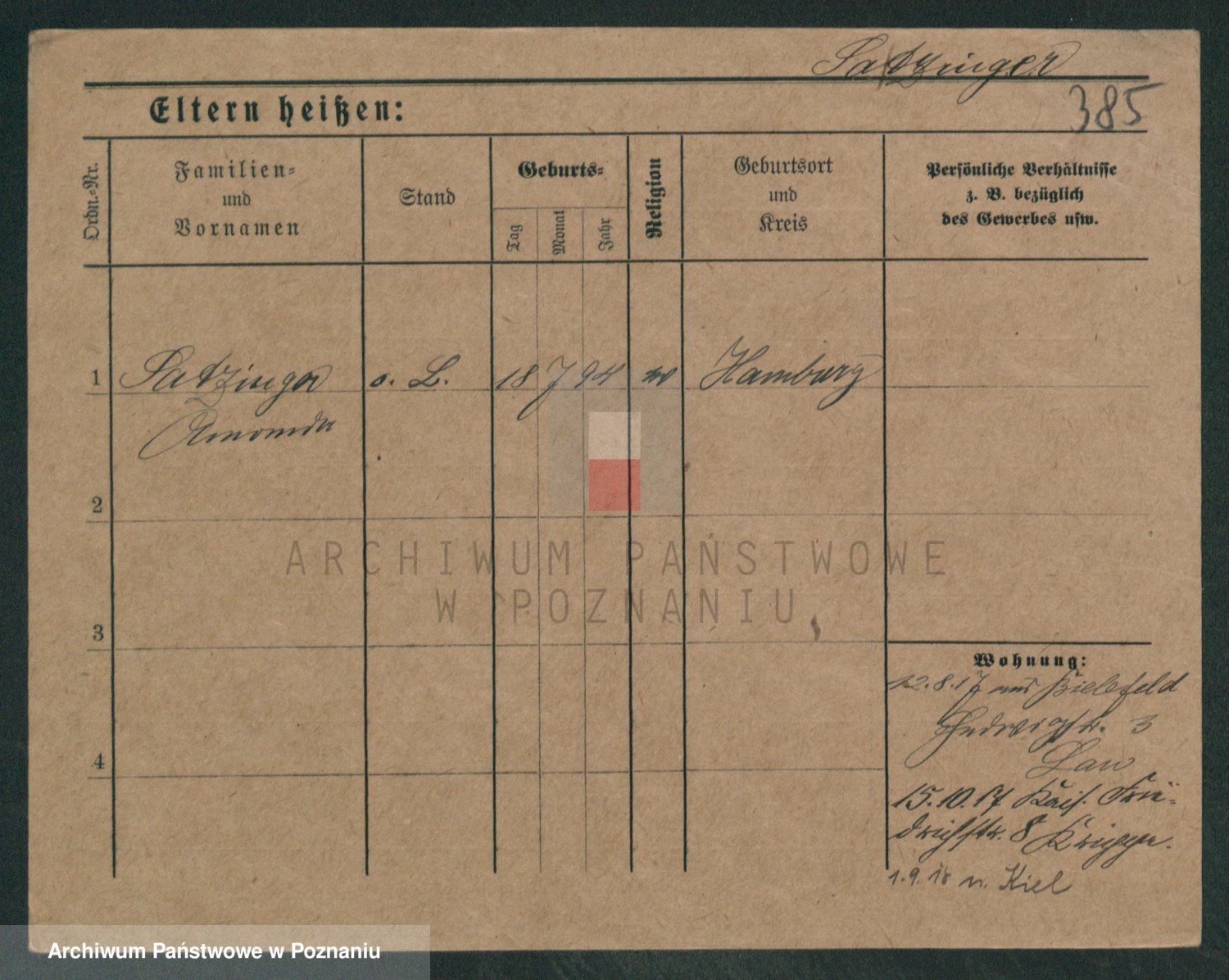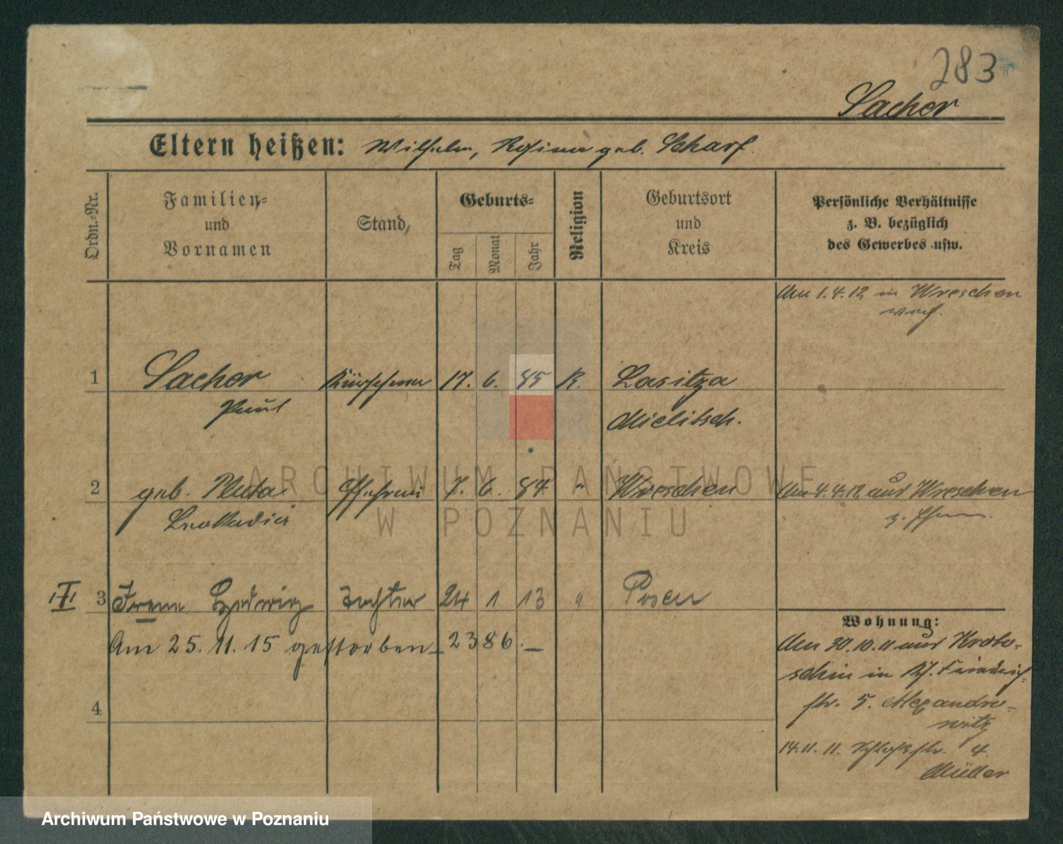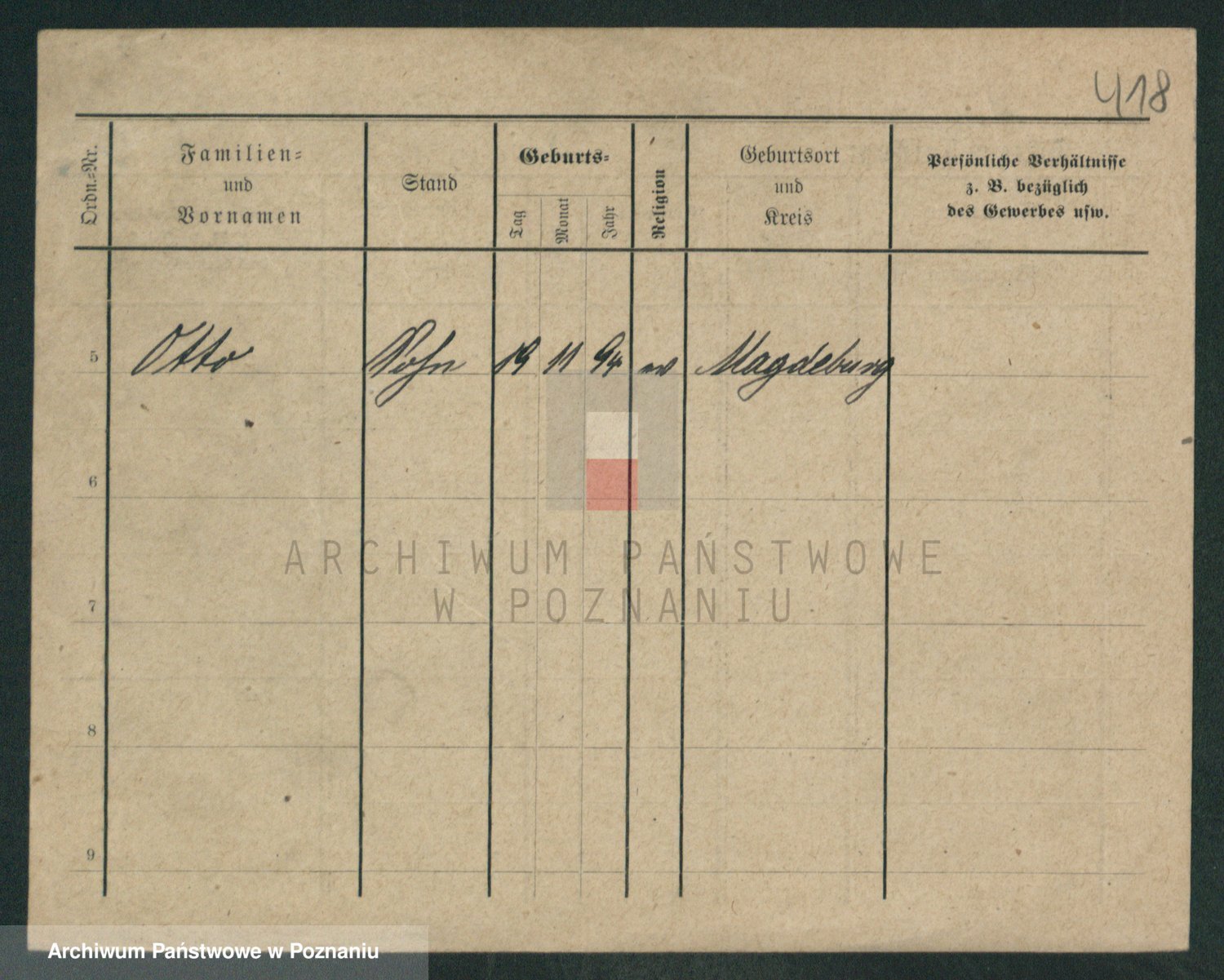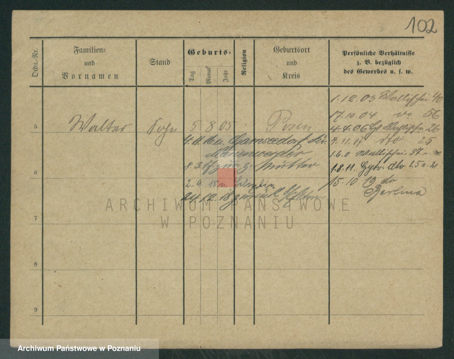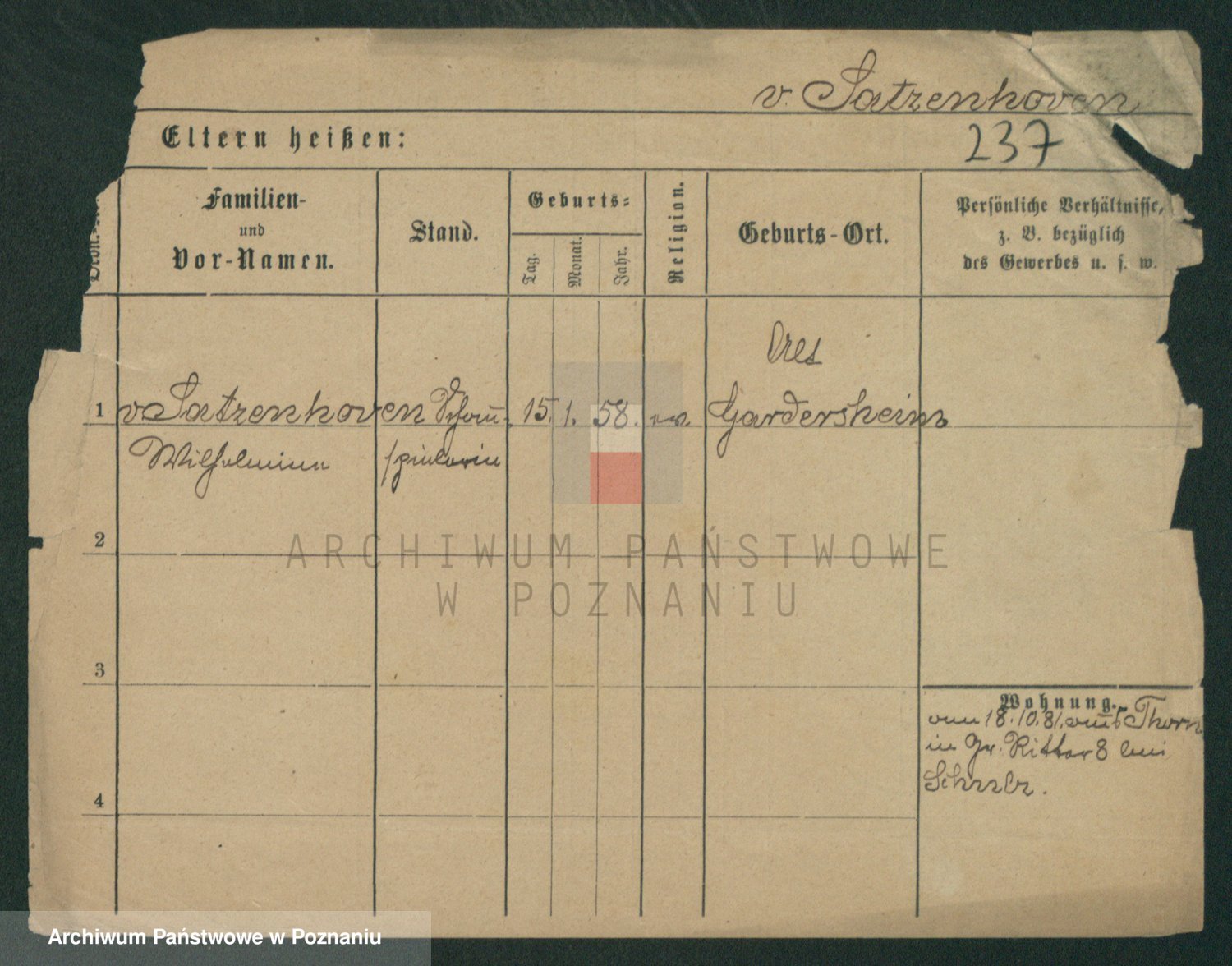 Podgląd karty osobowej dostępny jest po kliknięciu na nazwisko lub ikonkę karty. Można dokonywać powiększenia (ikony na górze) lub przechodzić między kolejnymi skanami (strzałki po bokach).