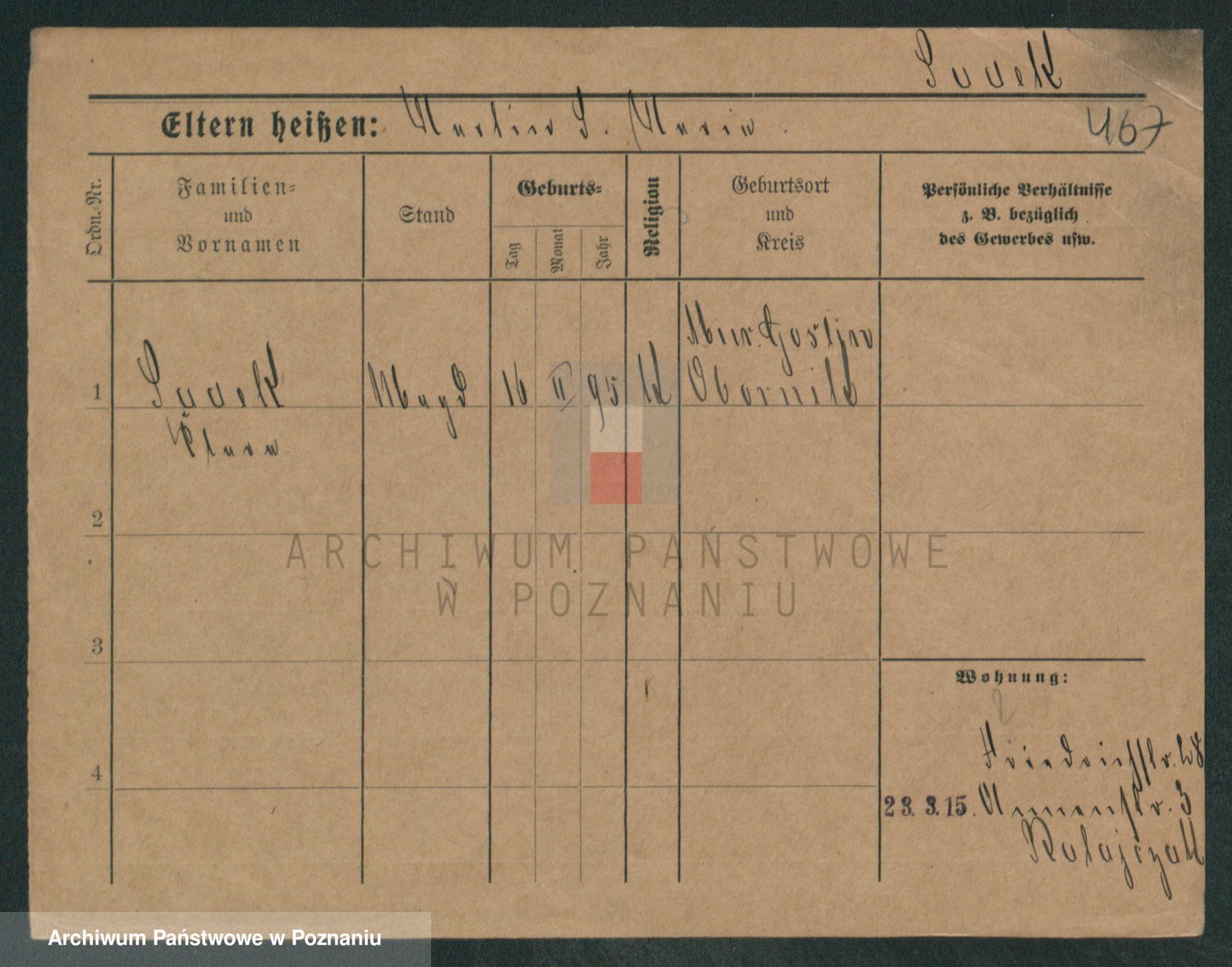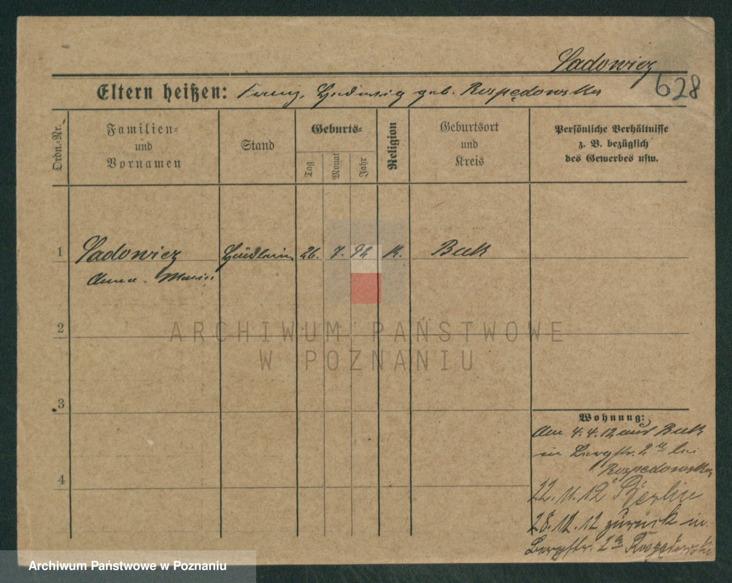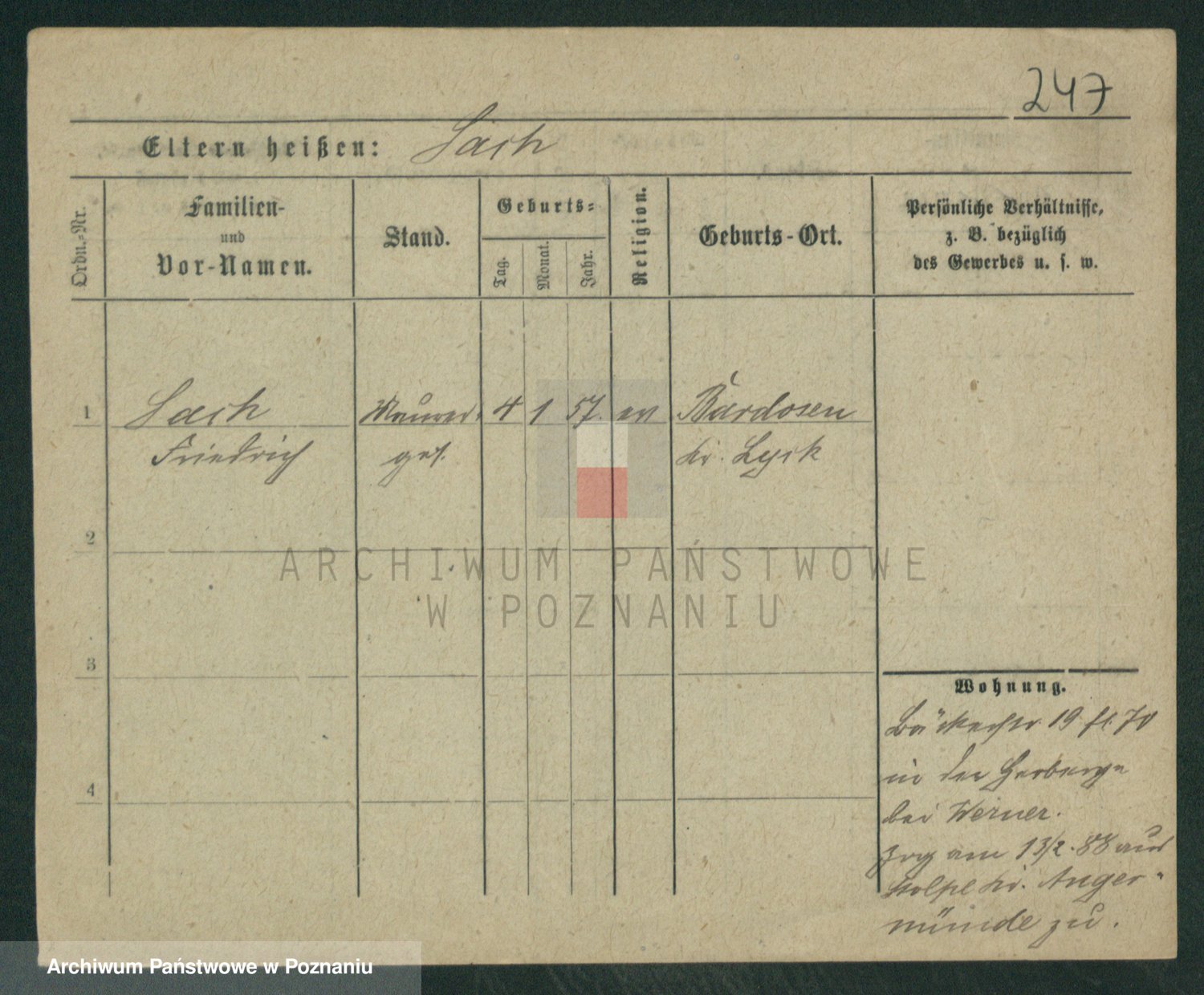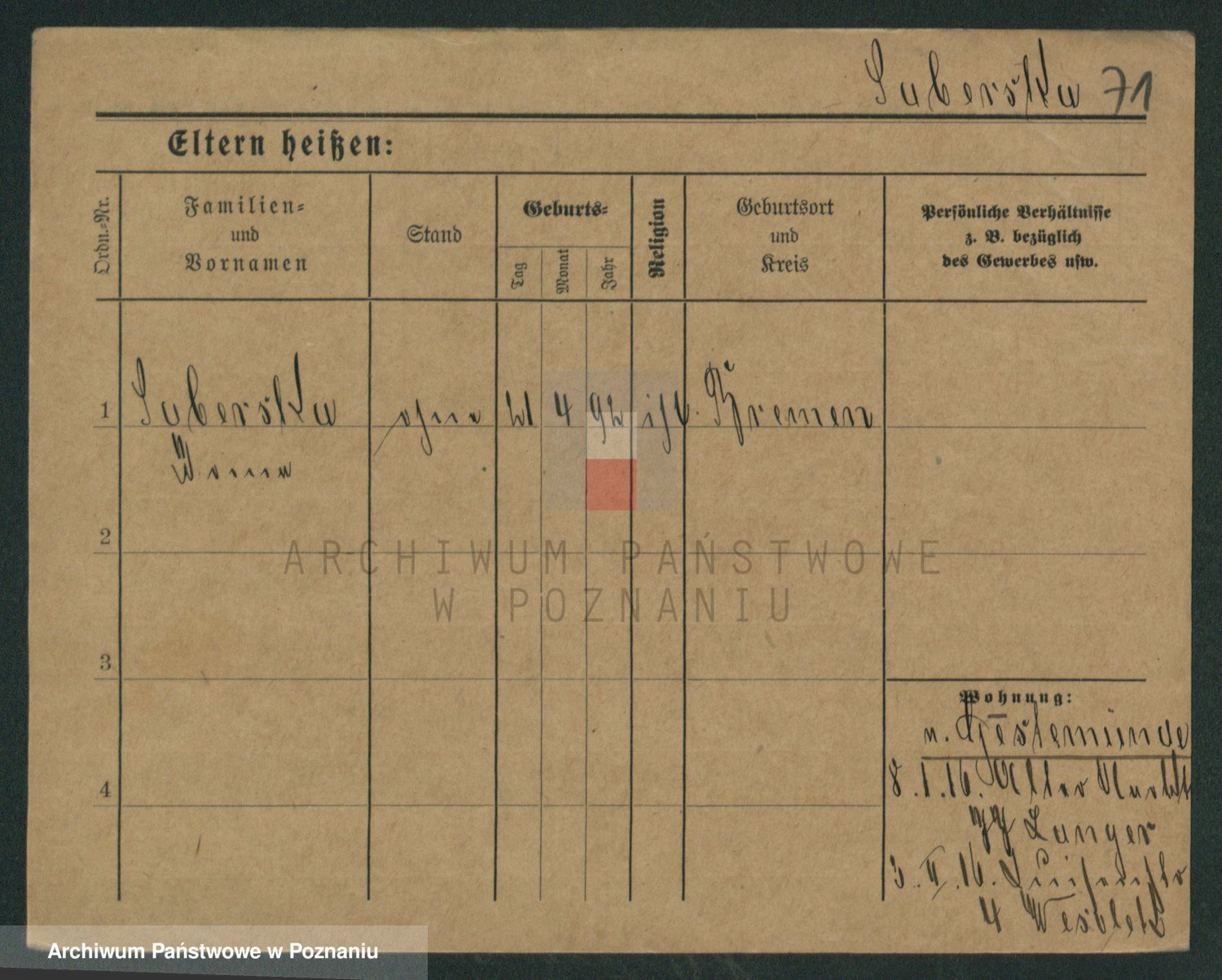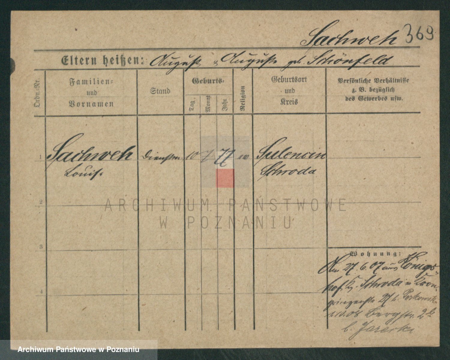 Podgląd karty osobowej dostępny jest po kliknięciu na nazwisko lub ikonkę karty. Można dokonywać powiększenia (ikony na górze) lub przechodzić między kolejnymi skanami (strzałki po bokach).