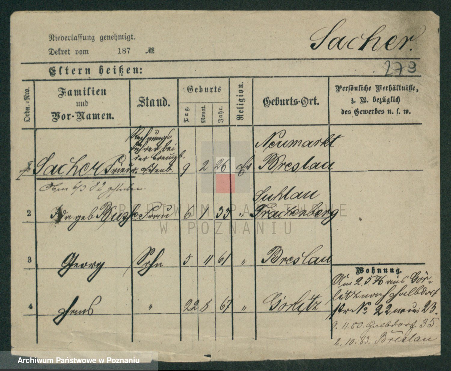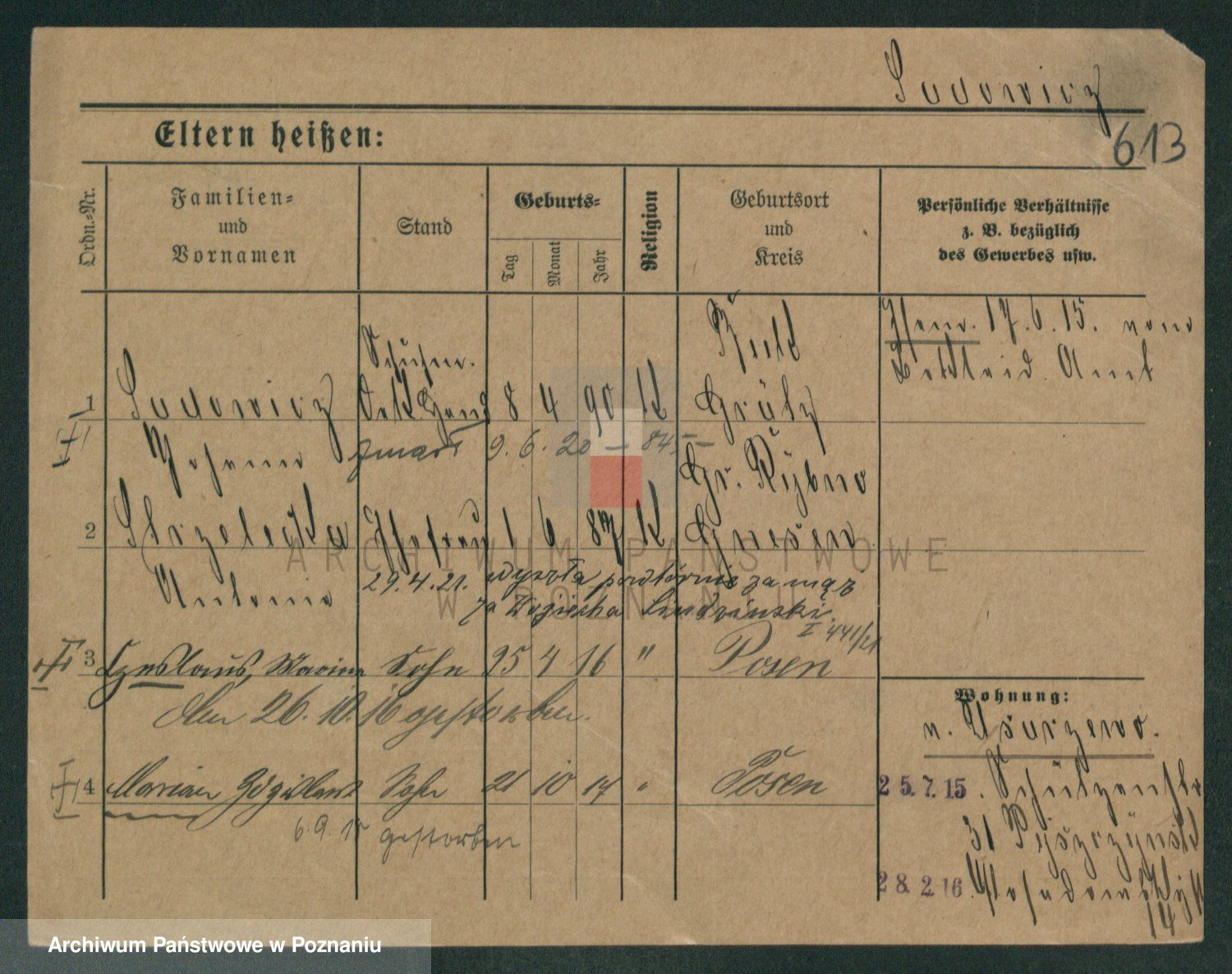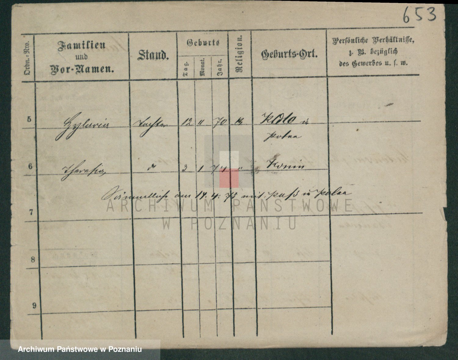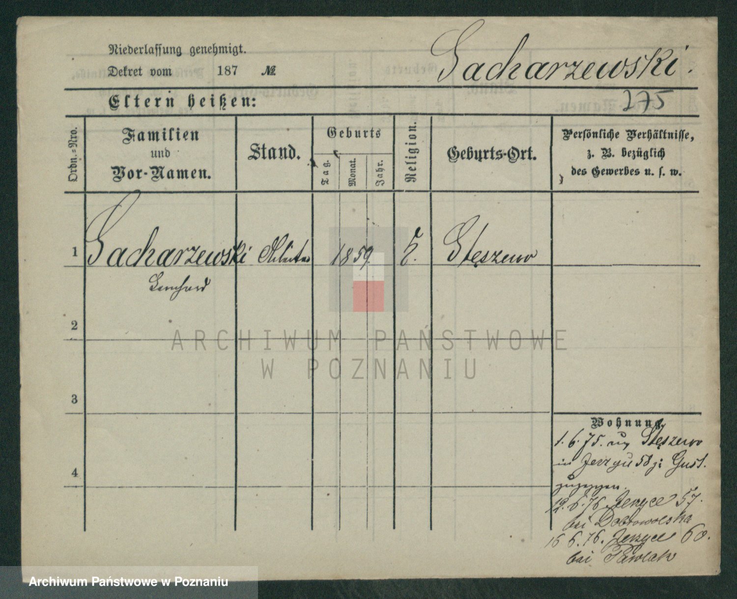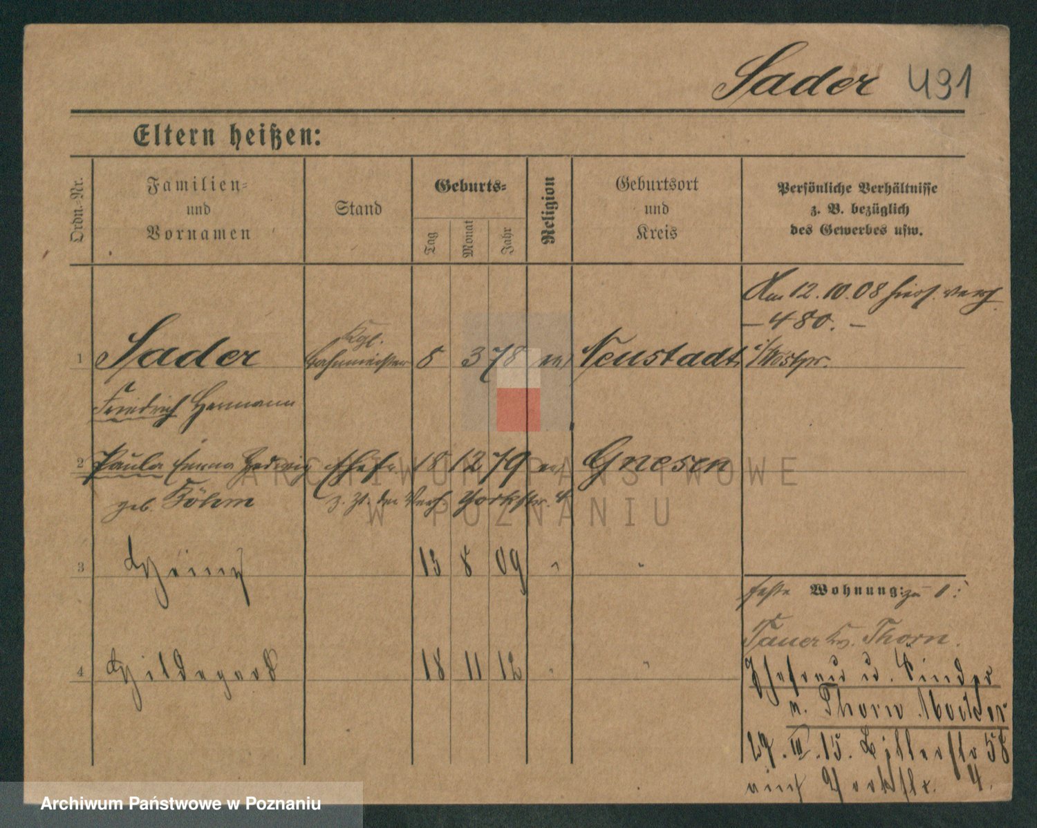 Podgląd karty osobowej dostępny jest po kliknięciu na nazwisko lub ikonkę karty. Można dokonywać powiększenia (ikony na górze) lub przechodzić między kolejnymi skanami (strzałki po bokach).