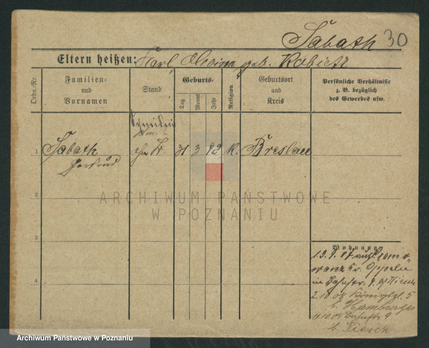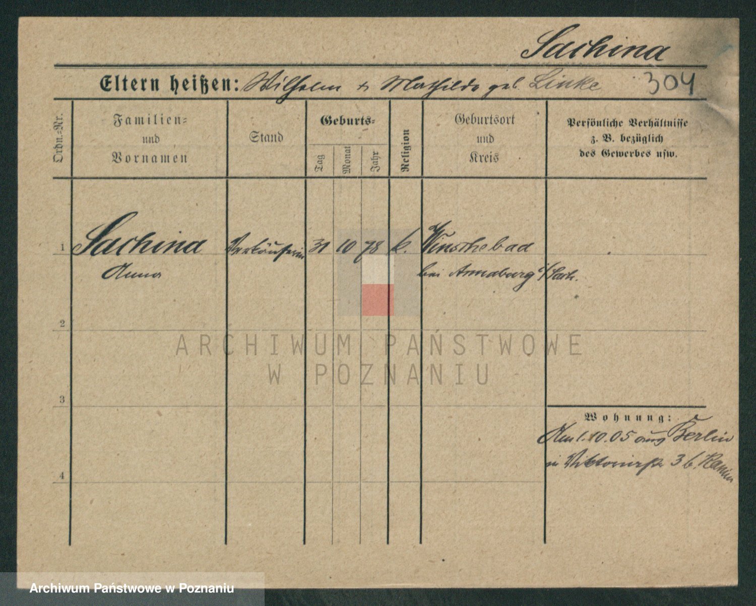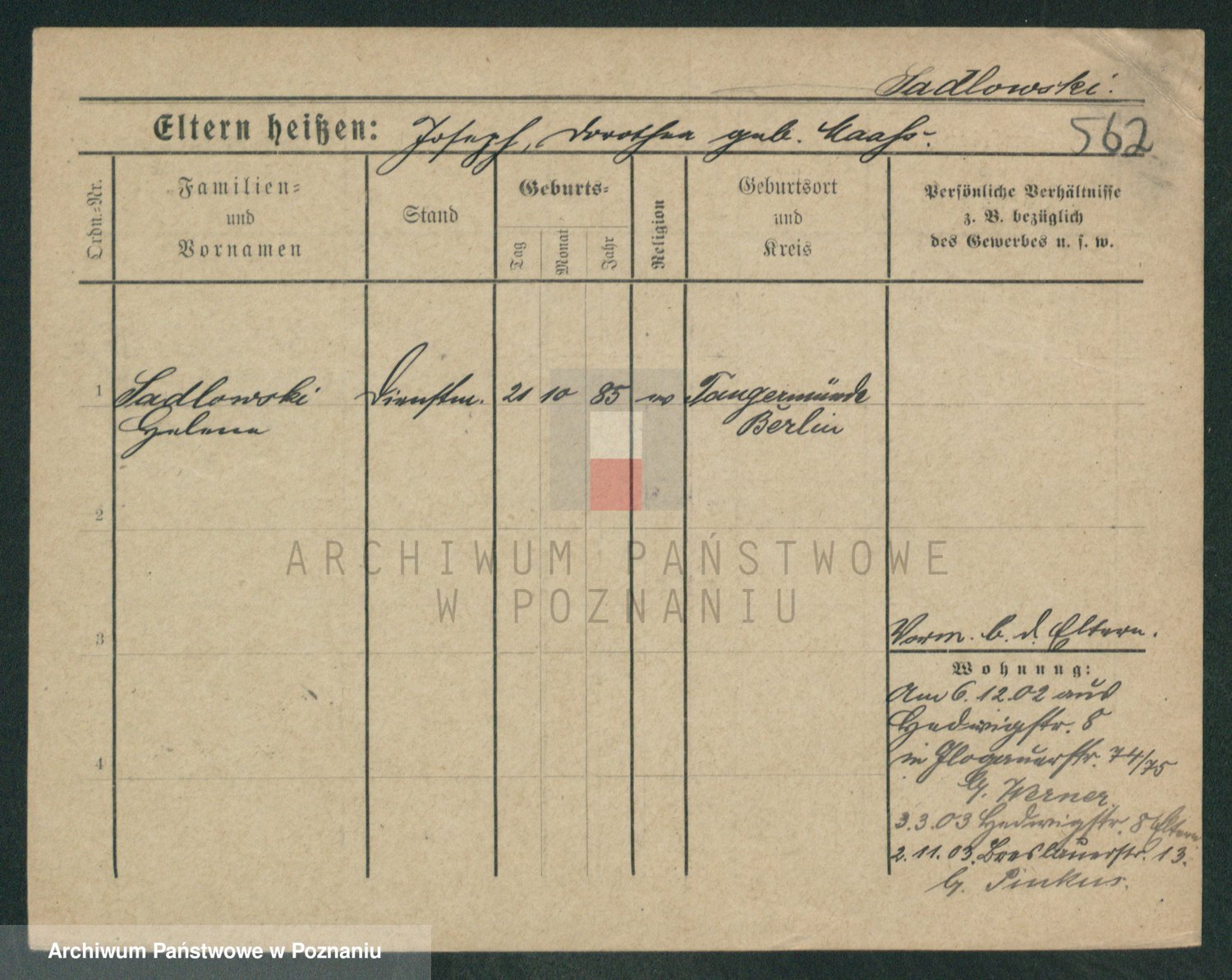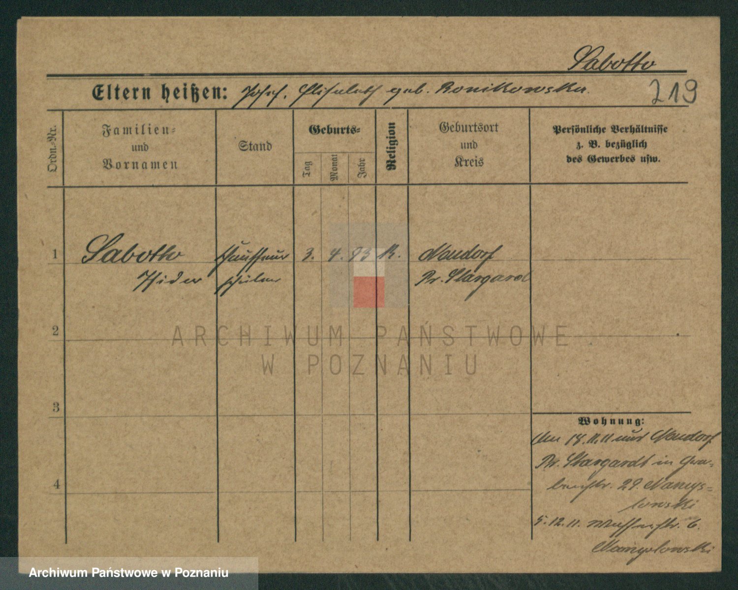 Sabatzki v. z d. Opitz, Clara