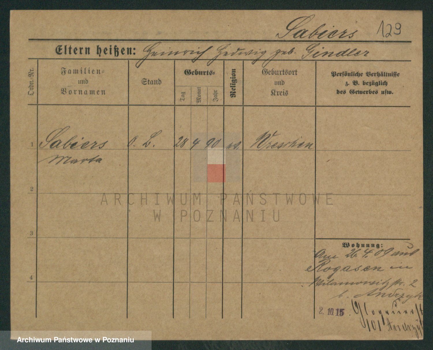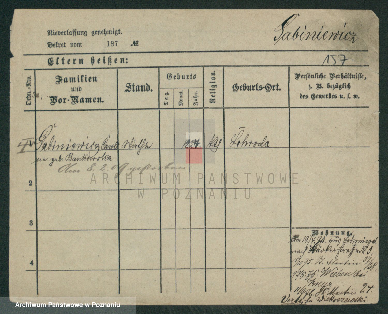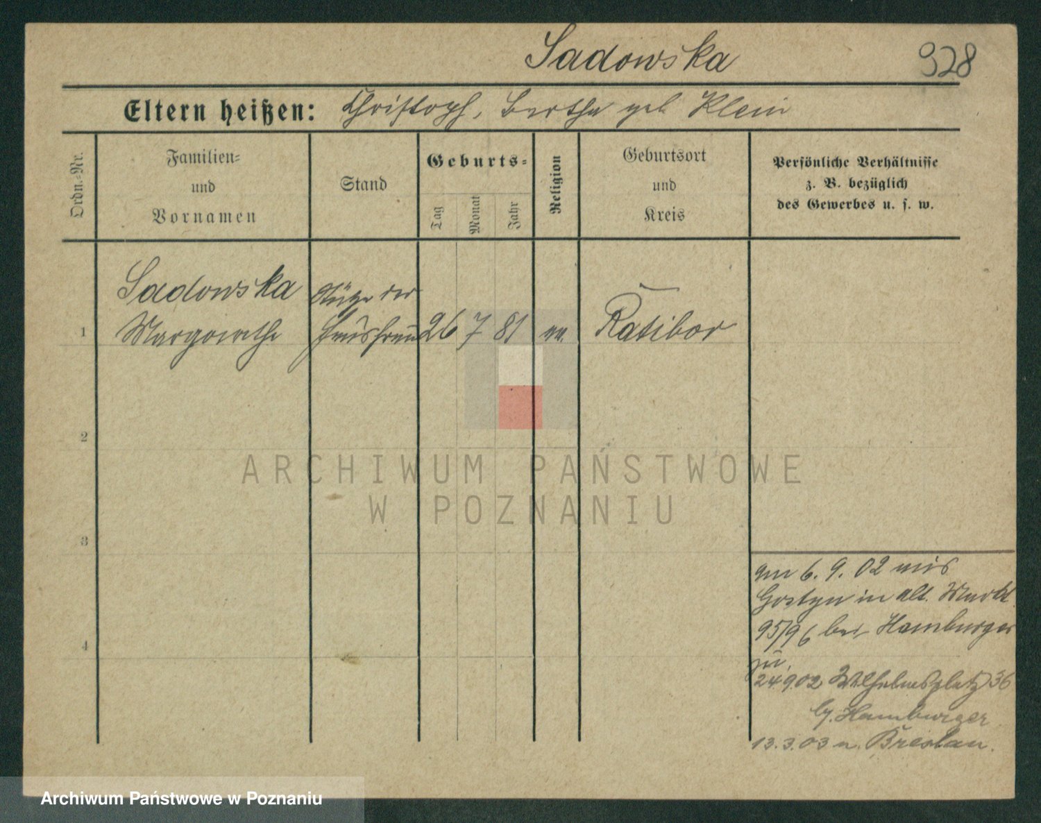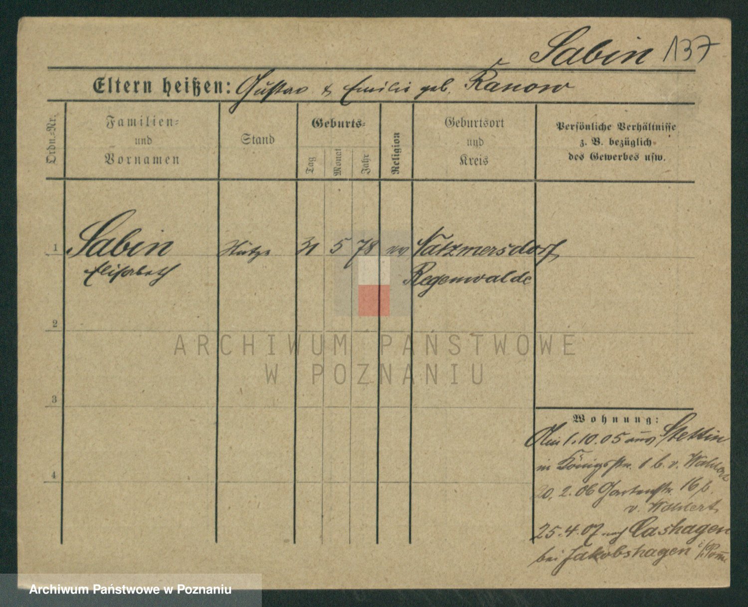 Sabatzki v. z d. Opitz, Clara