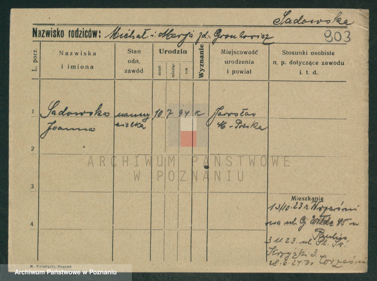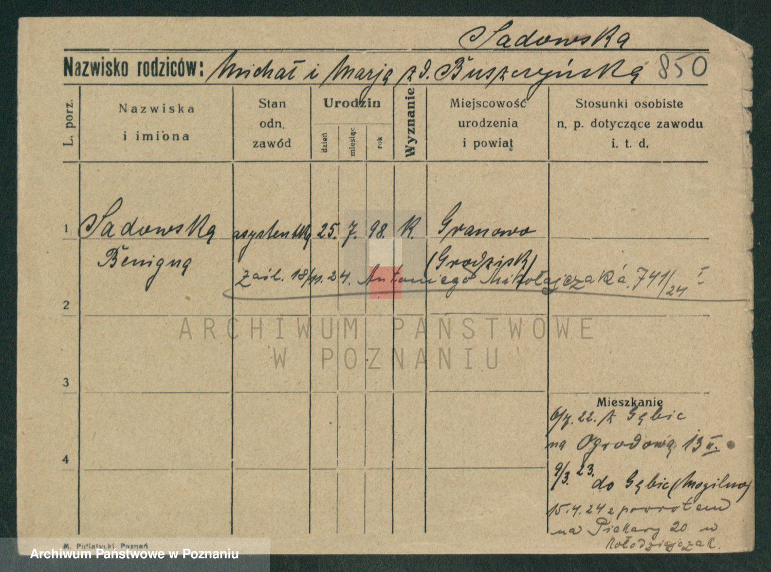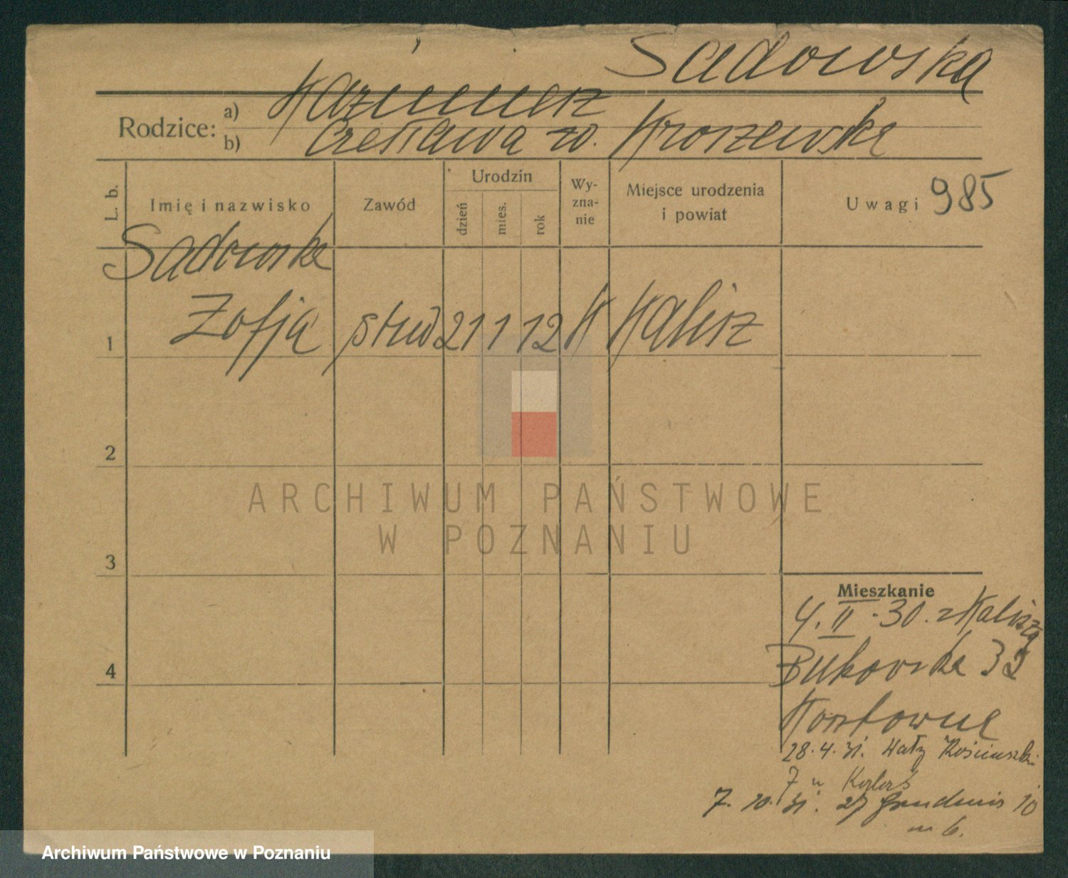 Sadzinska, Stanislawa