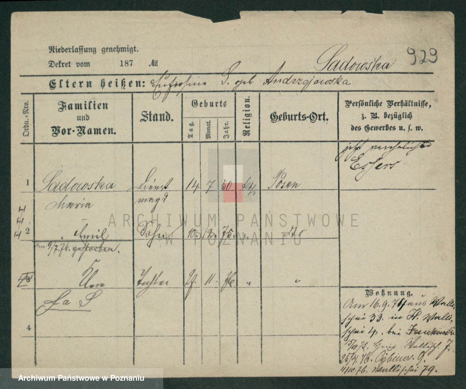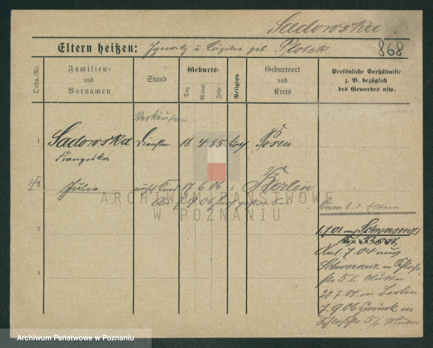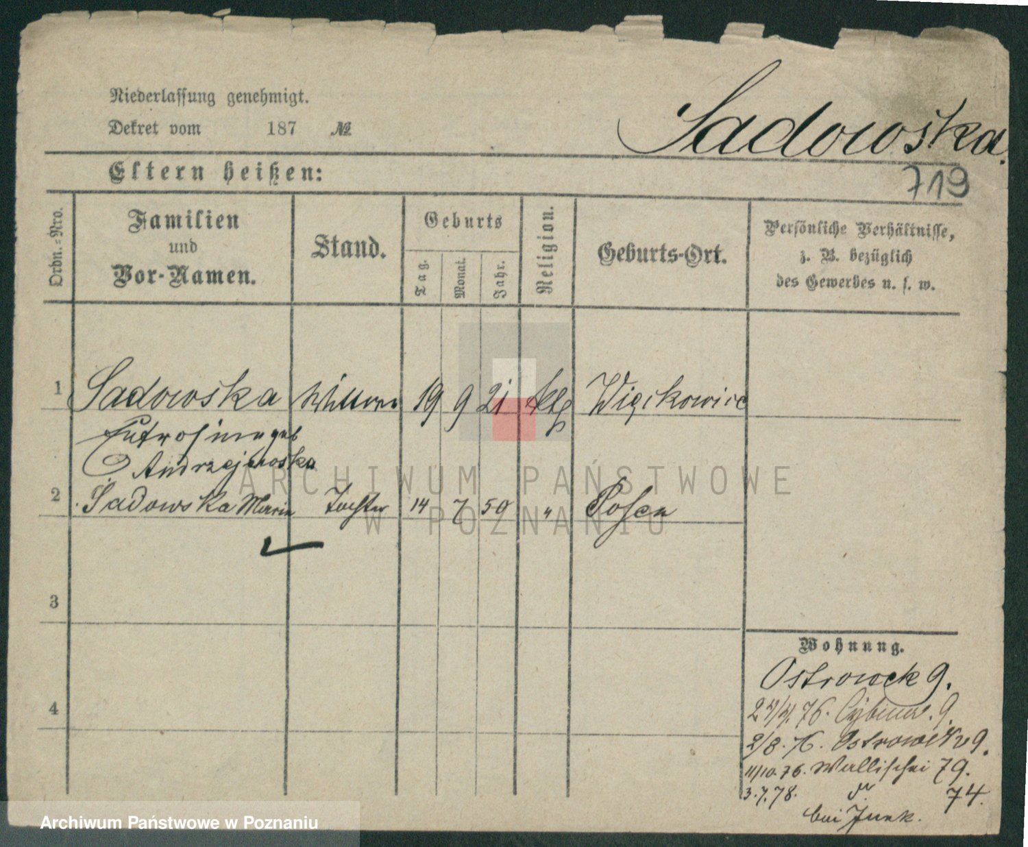 Sadzinska, Rosalie