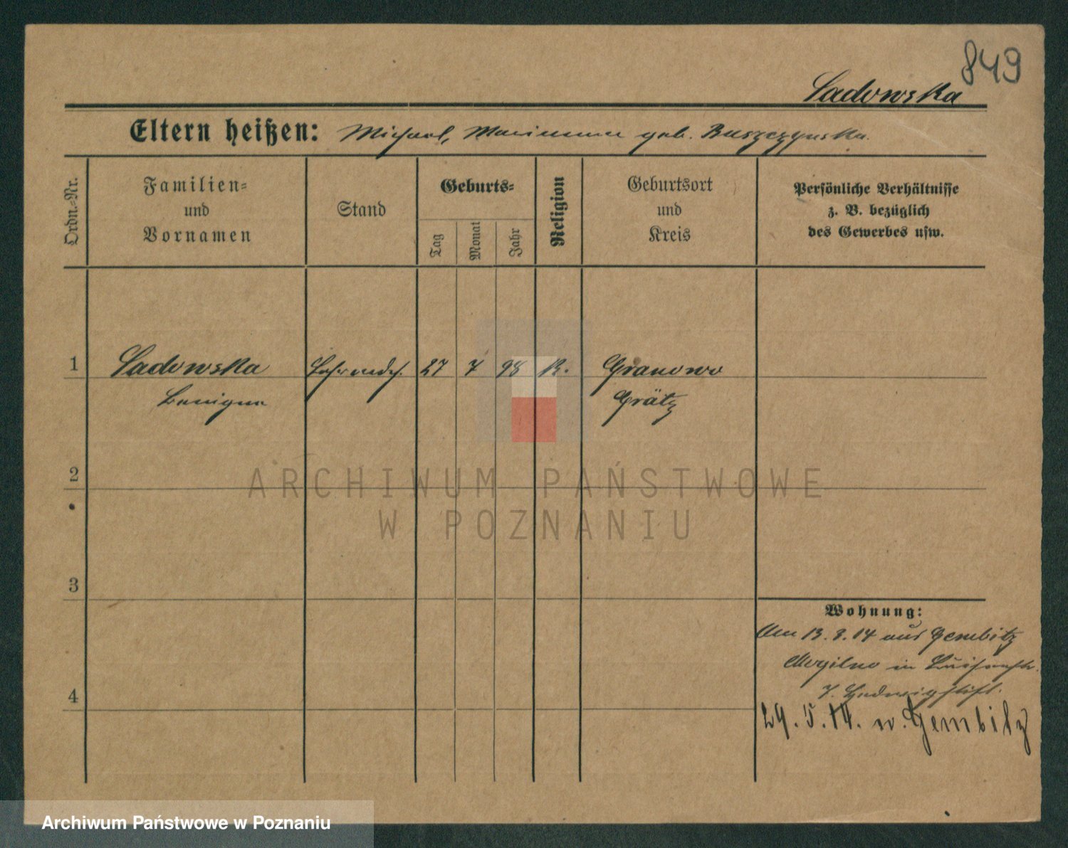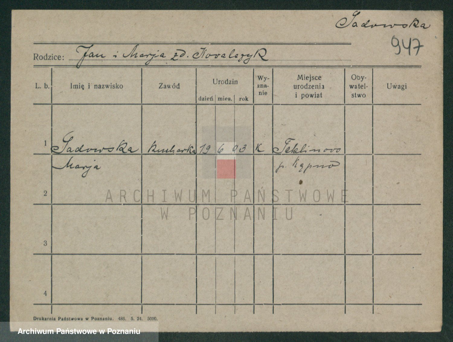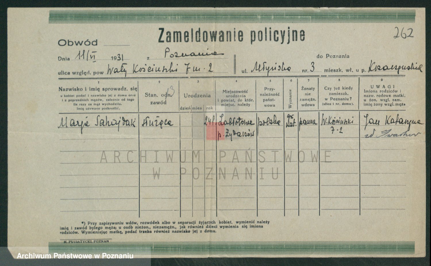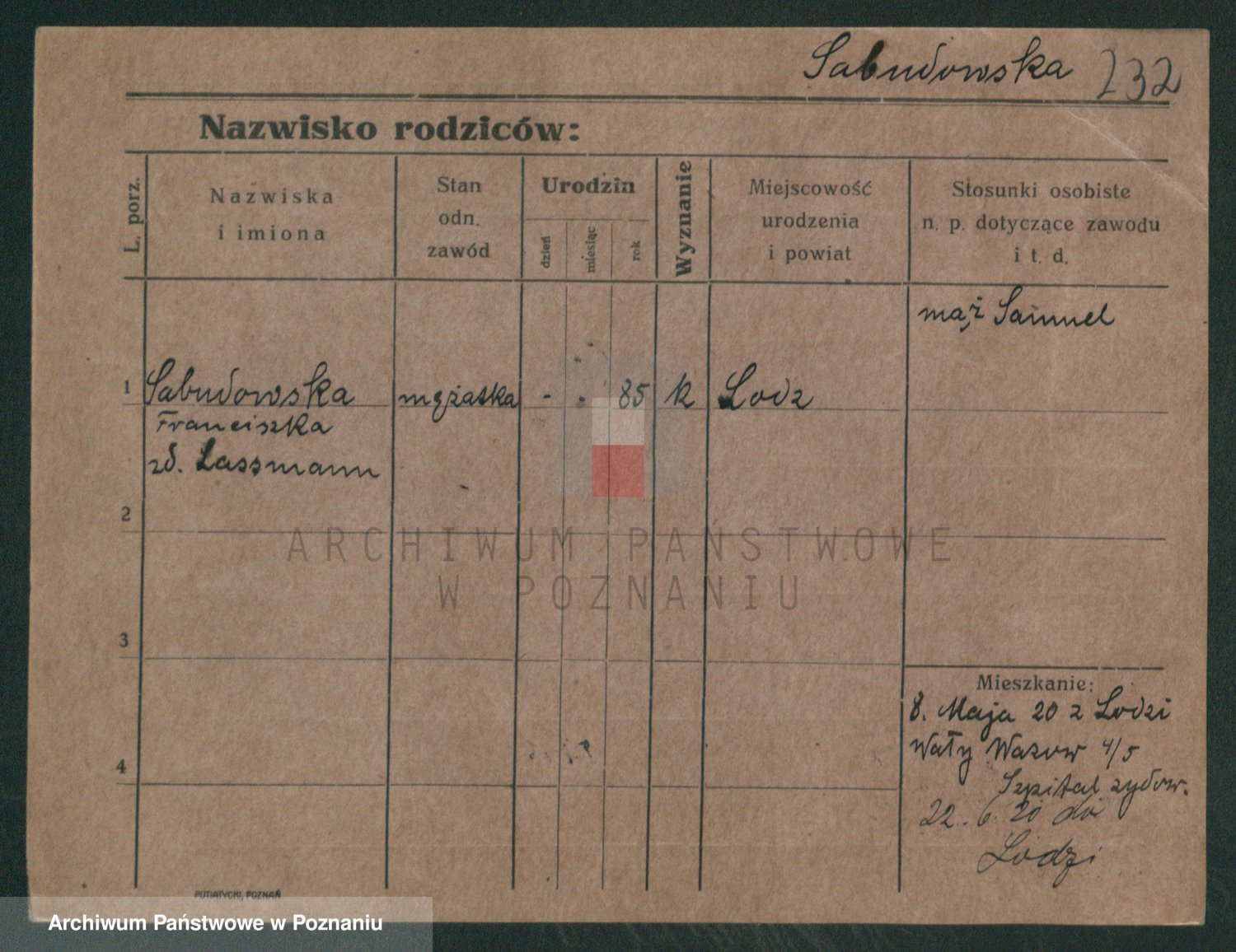 Sabański z d. Kuster, Marja