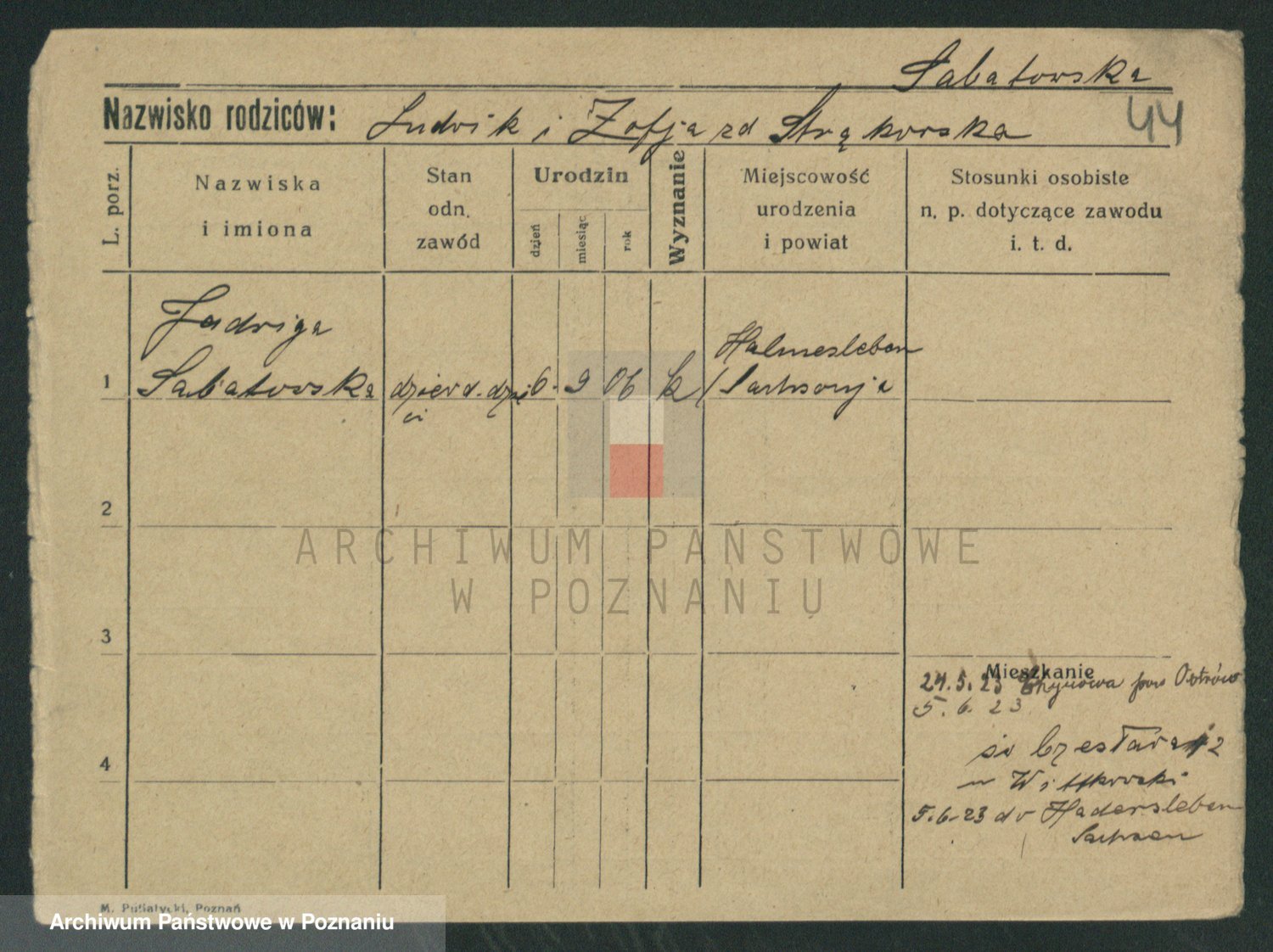 Sabatowski z d. Piotrowska, Maria