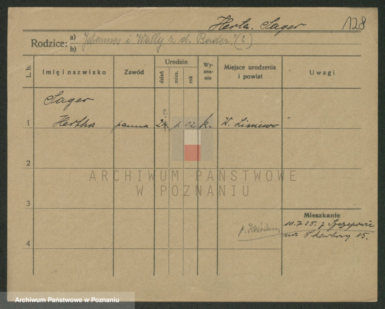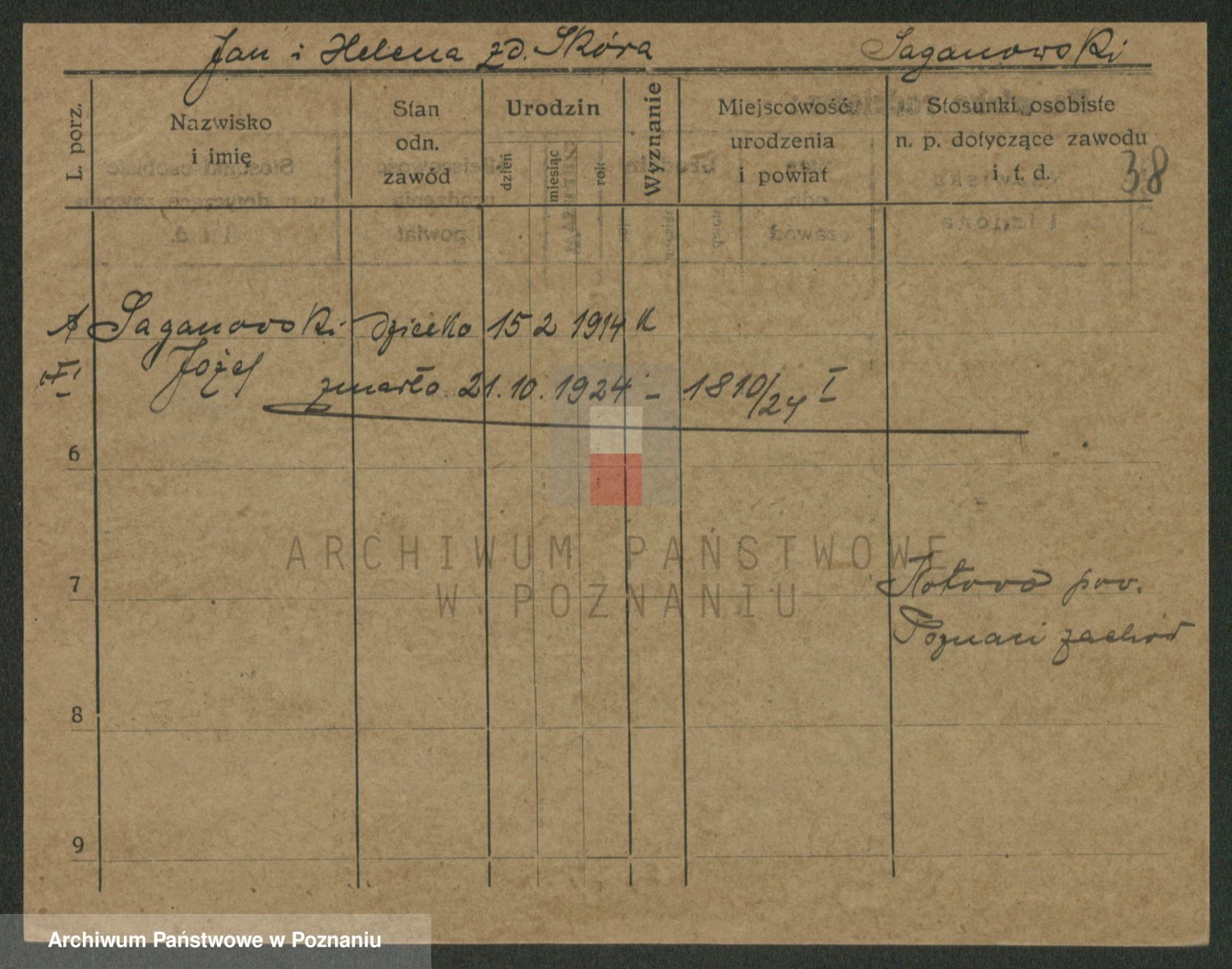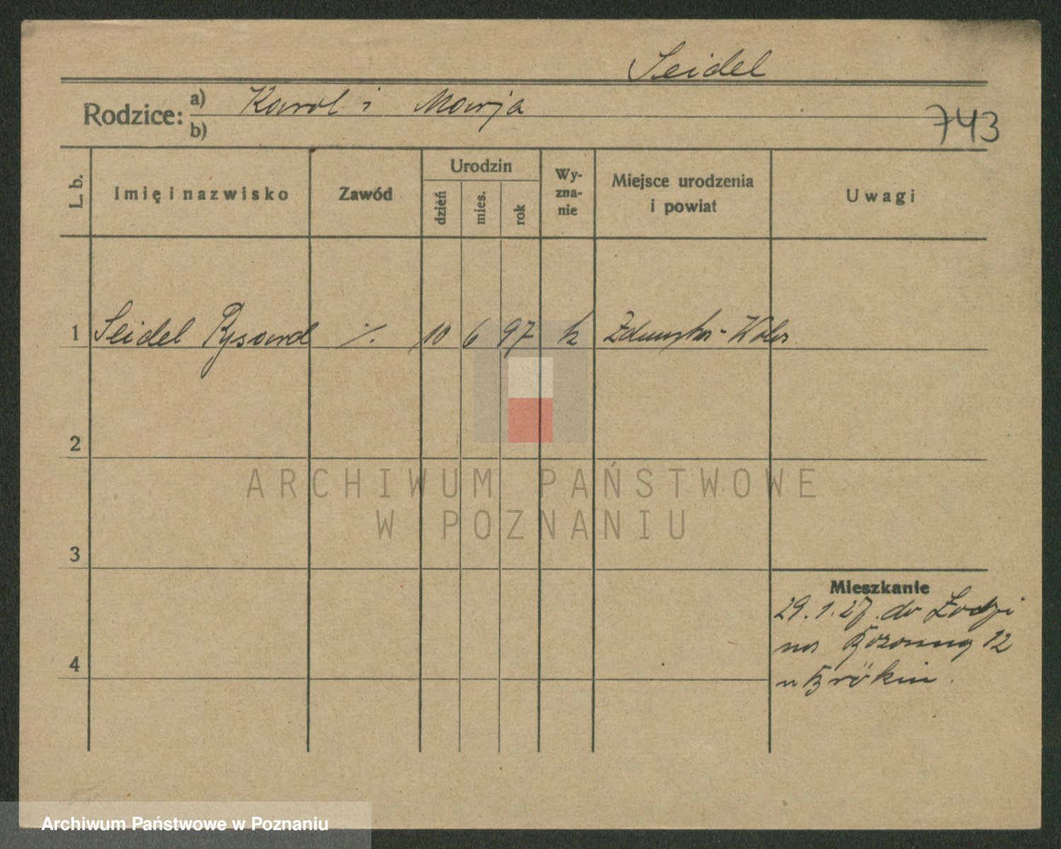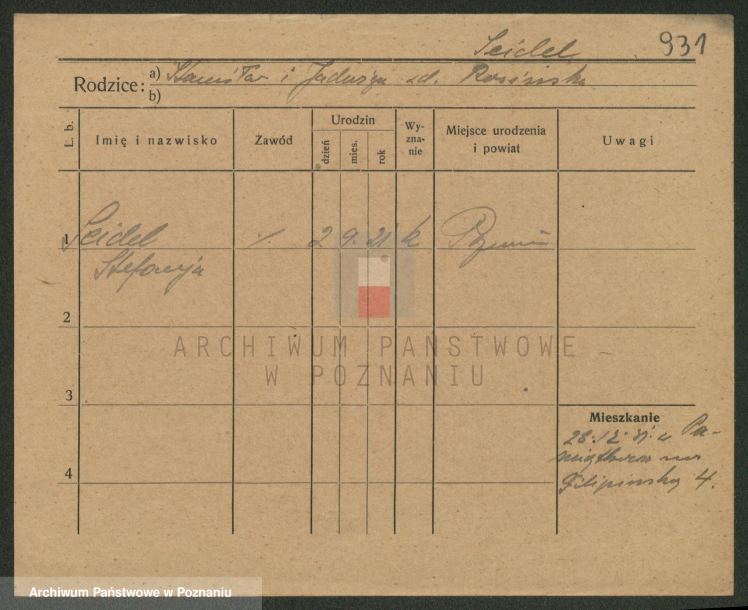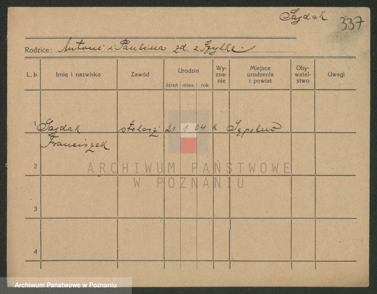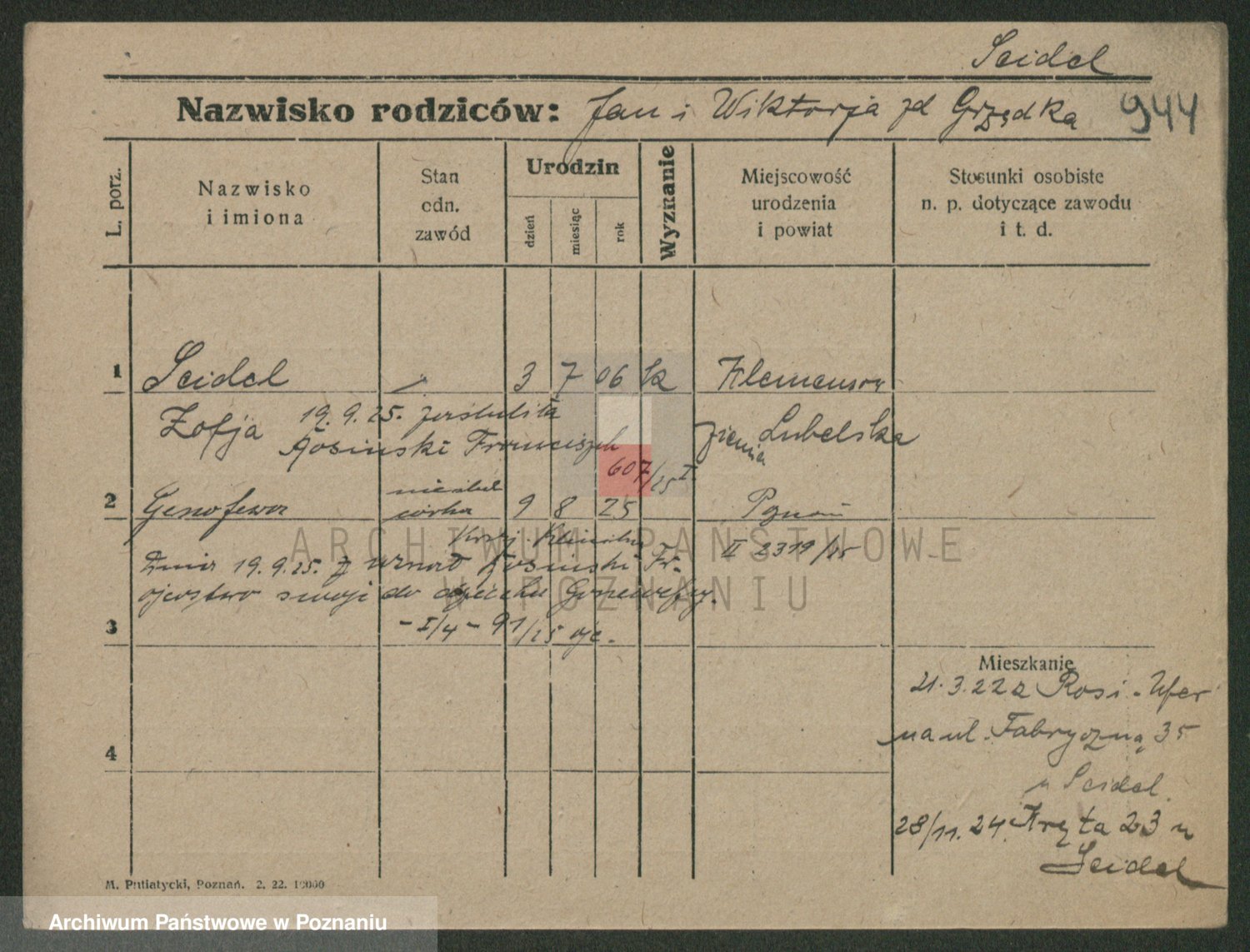 Podgląd karty osobowej dostępny jest po kliknięciu na nazwisko lub ikonkę karty. Można dokonywać powiększenia (ikony na górze) lub przechodzić między kolejnymi skanami (strzałki po bokach).