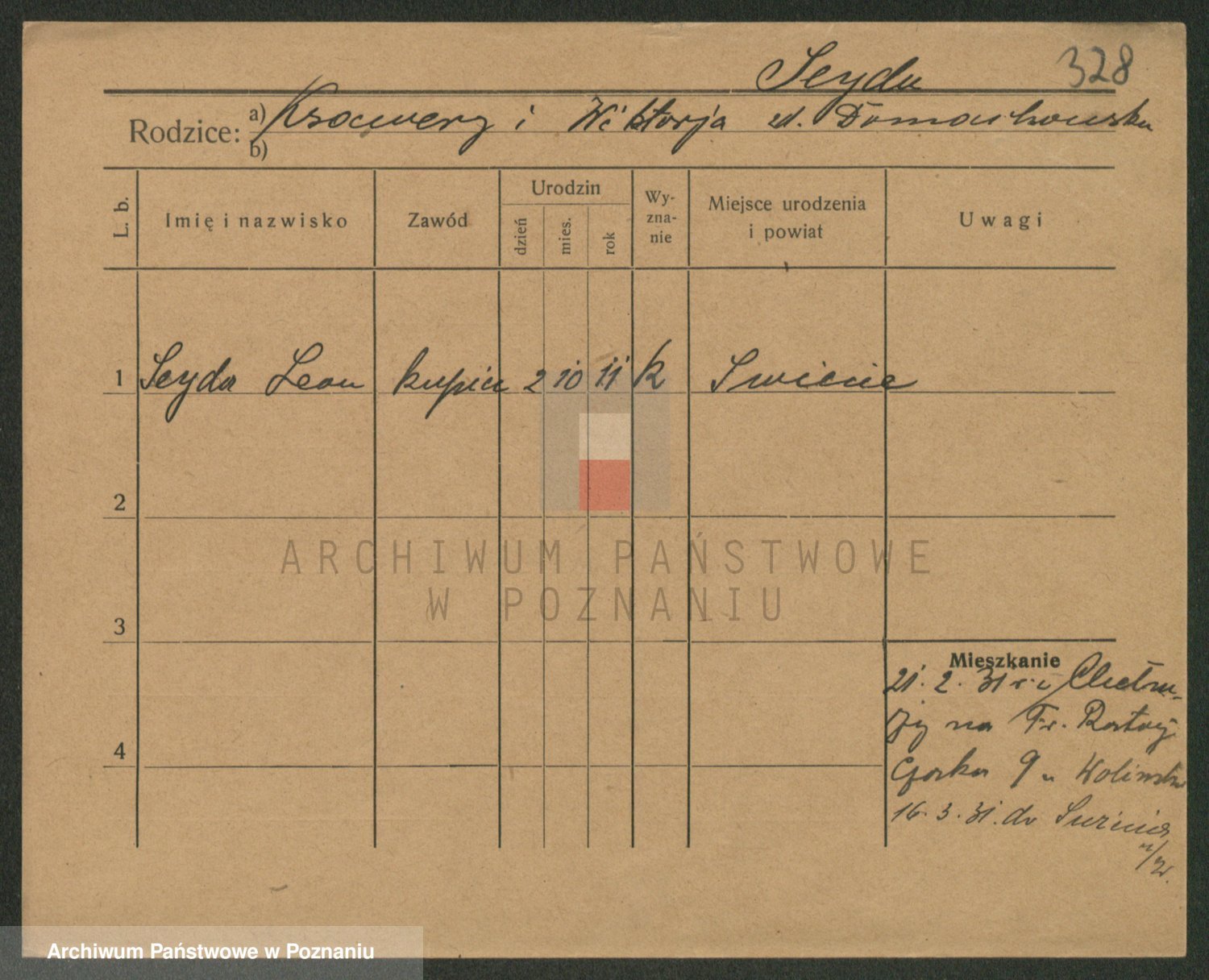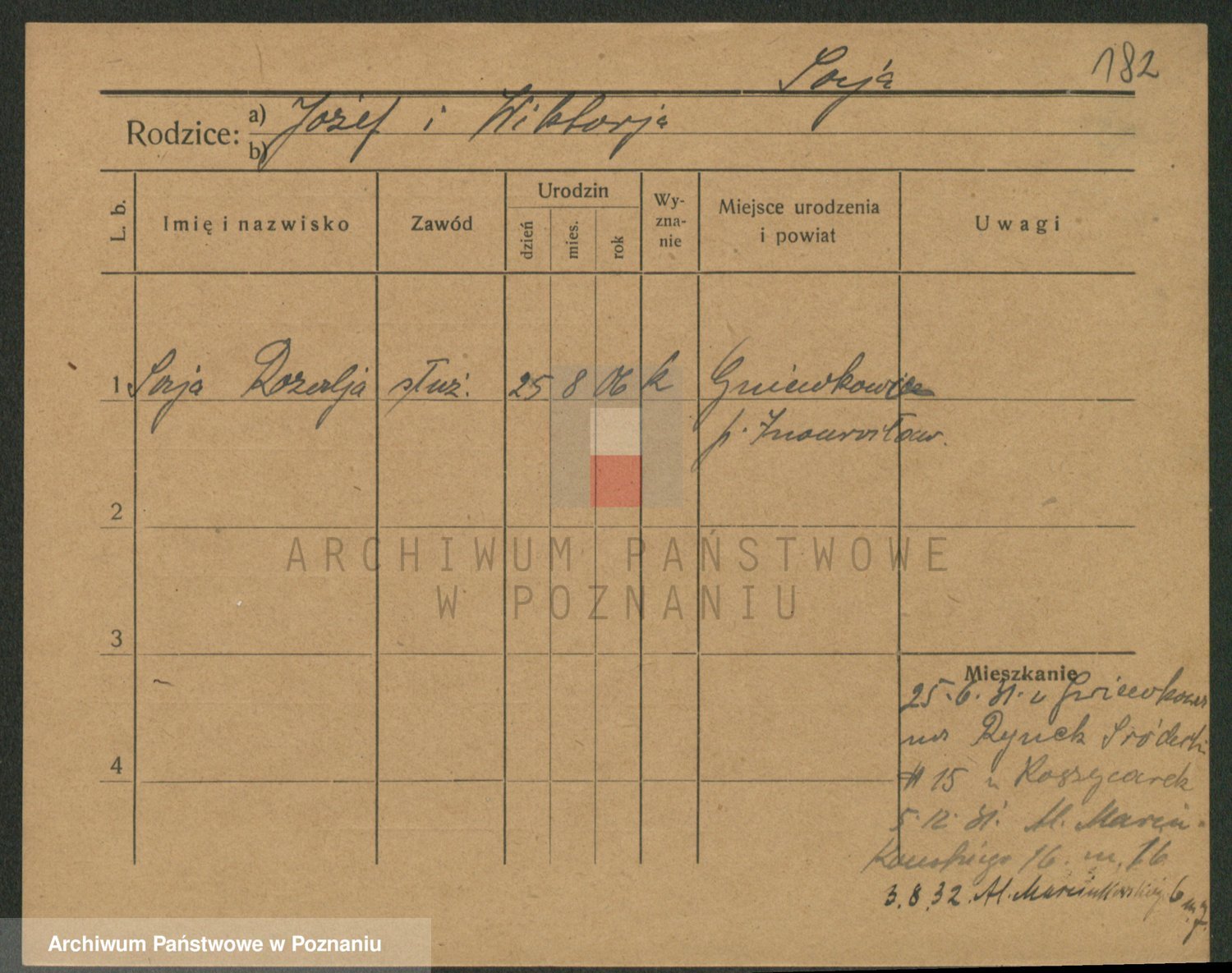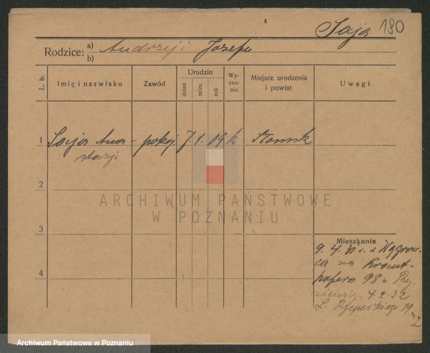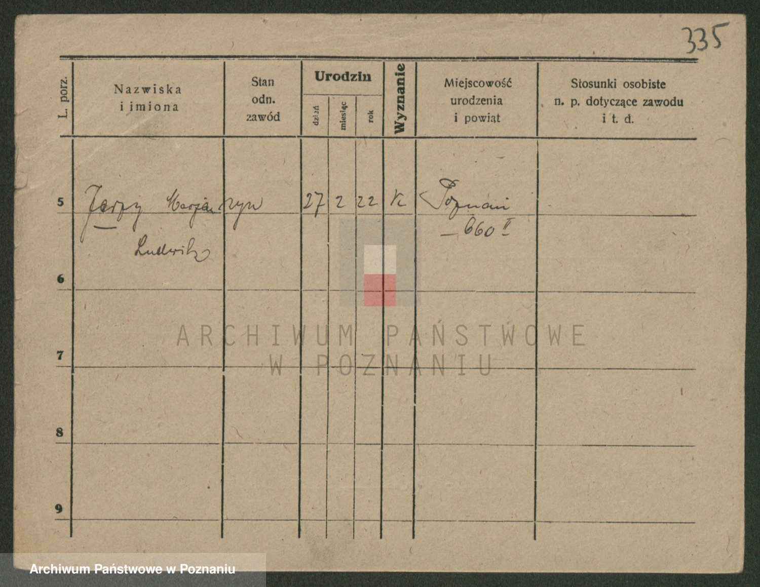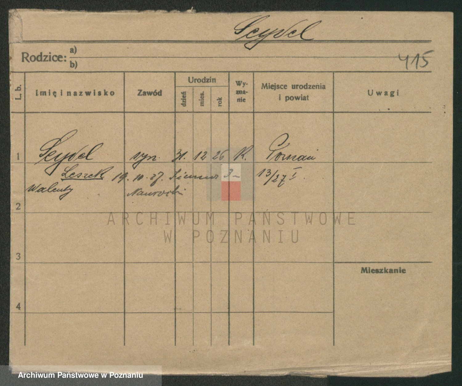 Podgląd karty osobowej dostępny jest po kliknięciu na nazwisko lub ikonkę karty. Można dokonywać powiększenia (ikony na górze) lub przechodzić między kolejnymi skanami (strzałki po bokach).