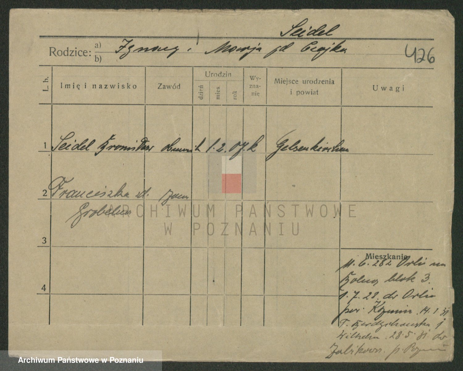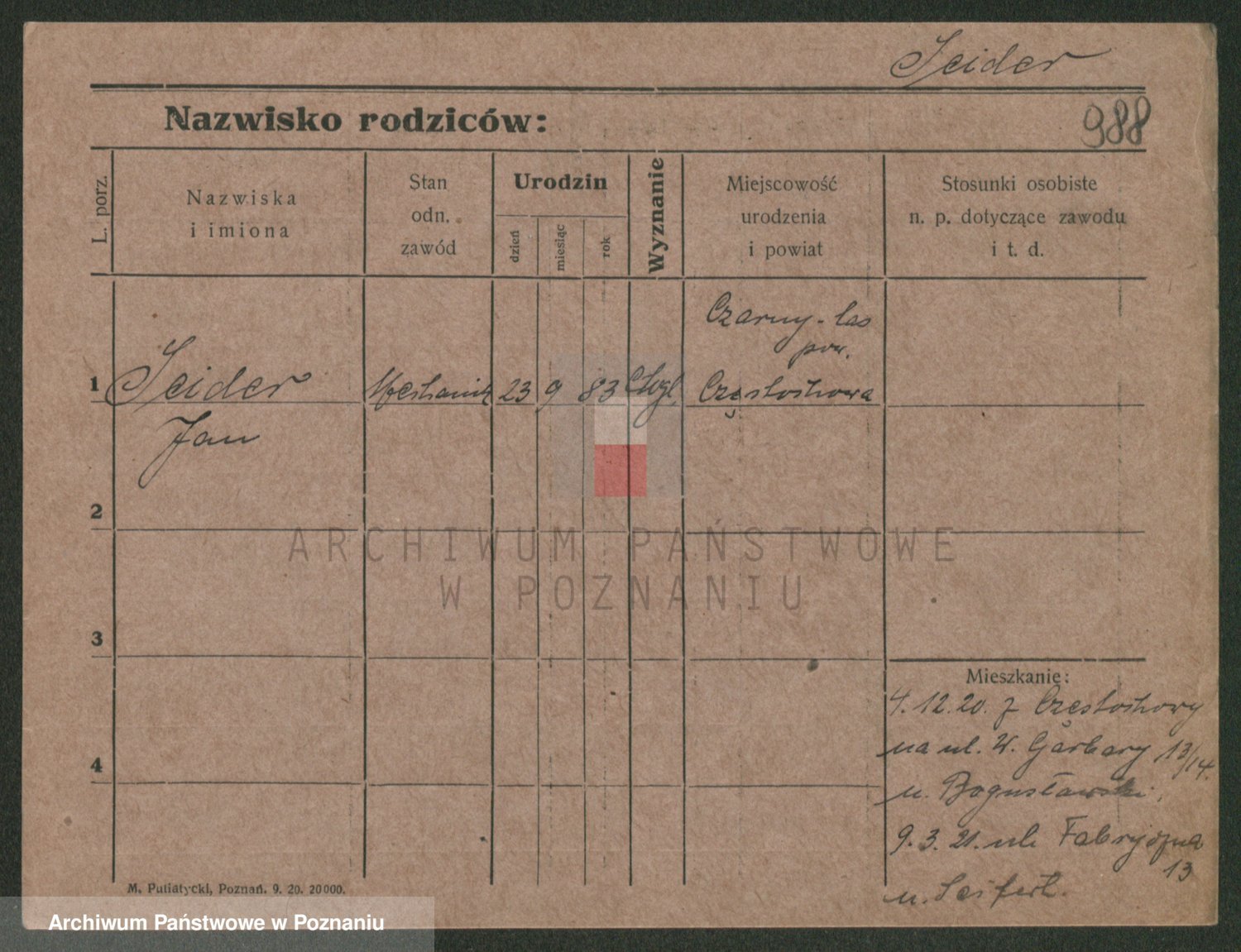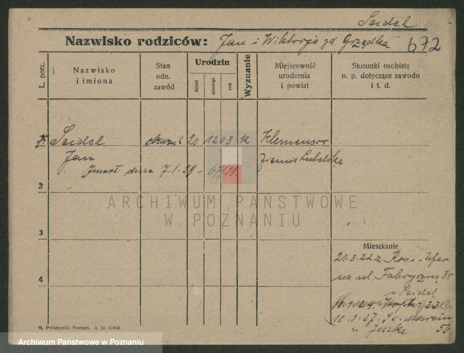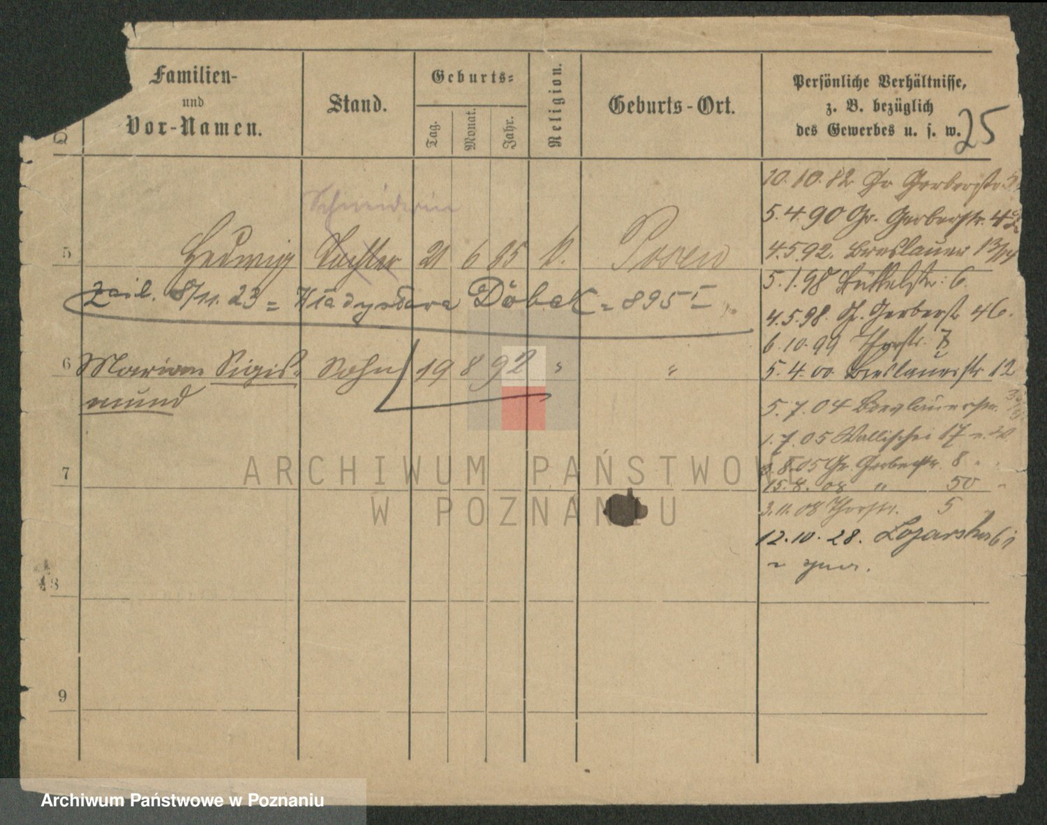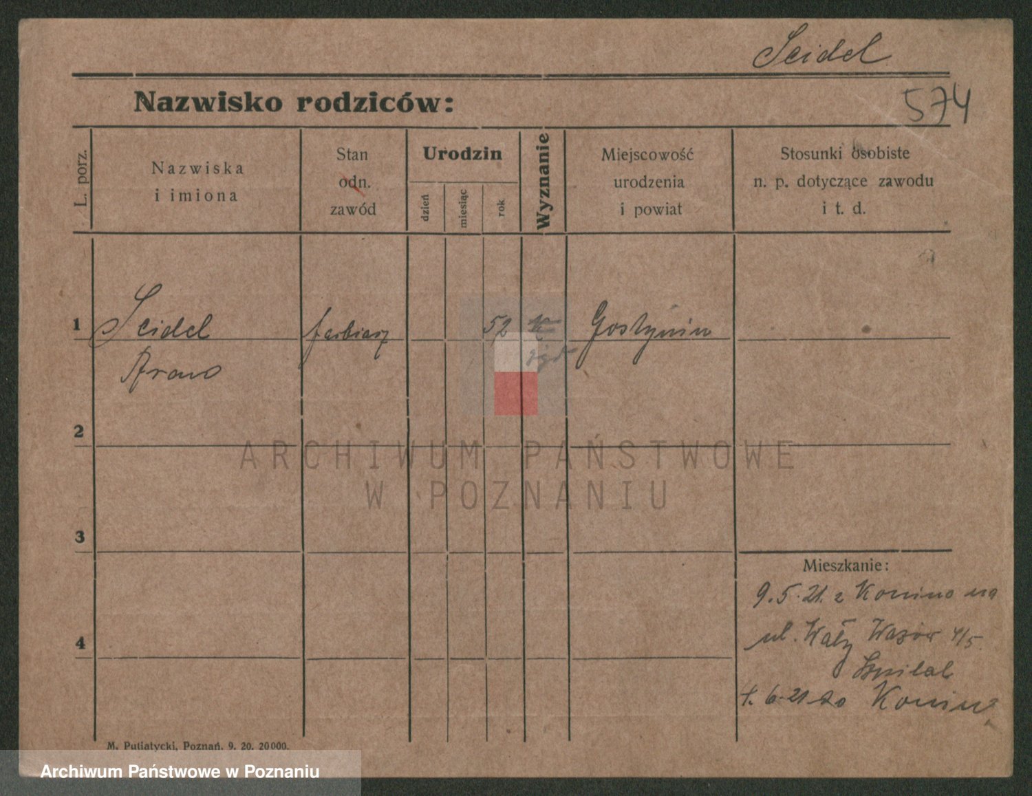 Podgląd karty osobowej dostępny jest po kliknięciu na nazwisko lub ikonkę karty. Można dokonywać powiększenia (ikony na górze) lub przechodzić między kolejnymi skanami (strzałki po bokach).