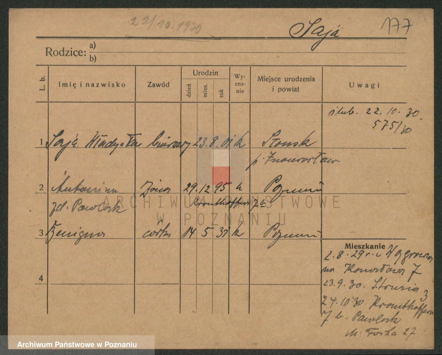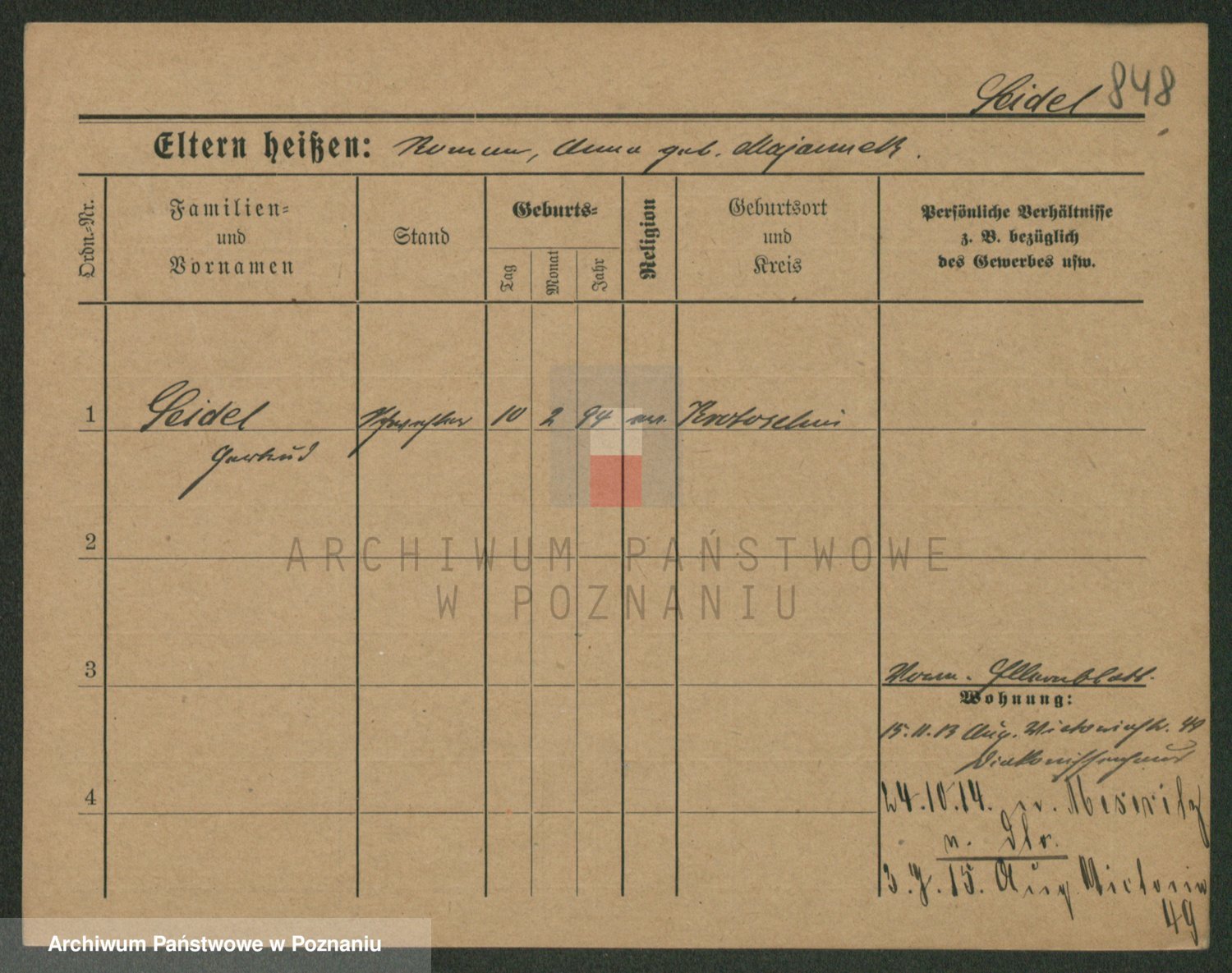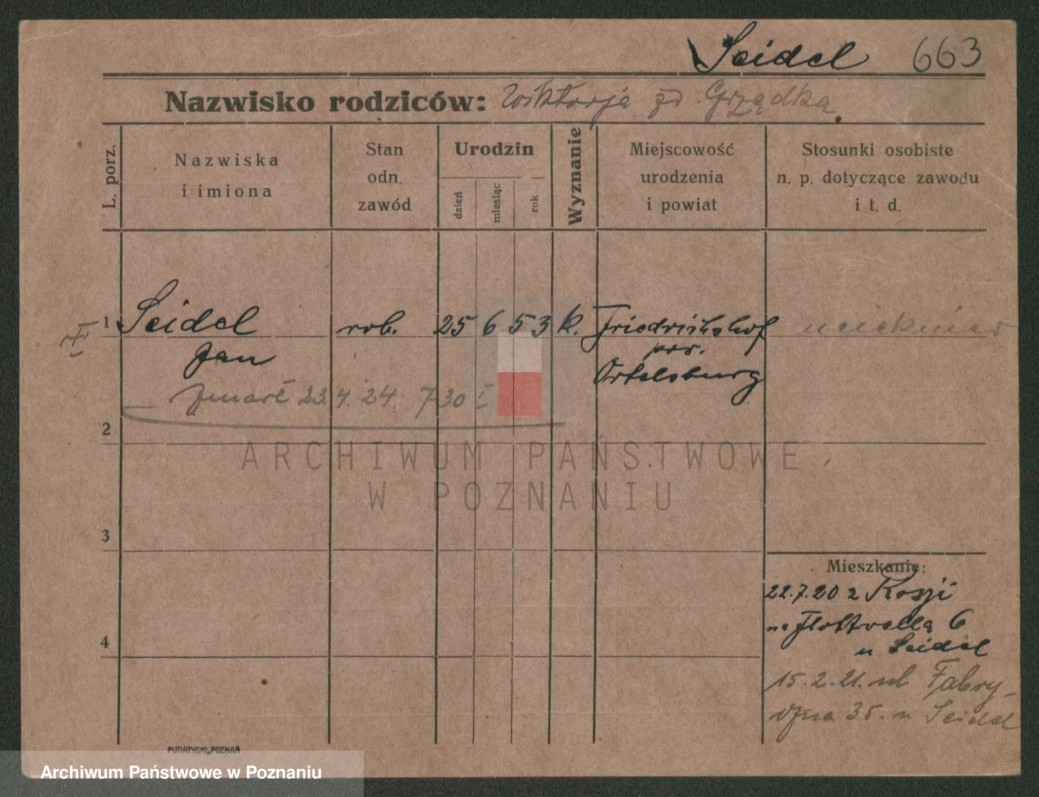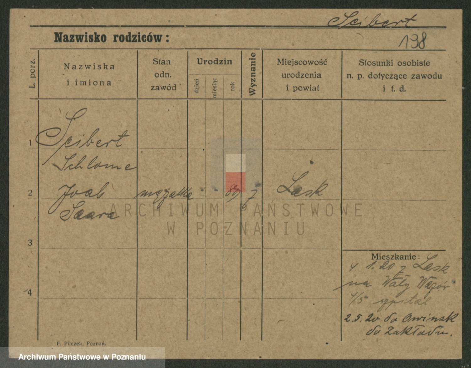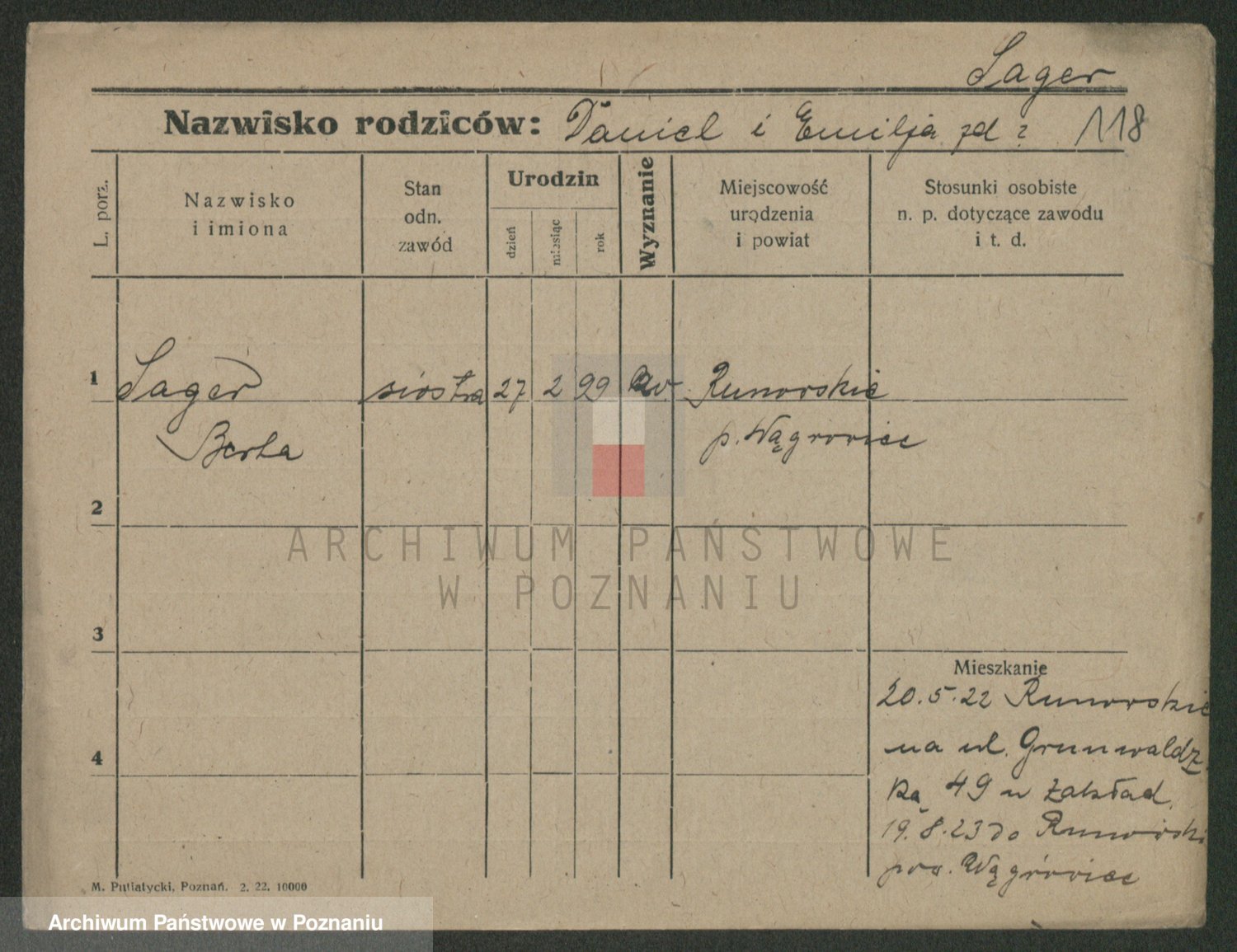 Podgląd karty osobowej dostępny jest po kliknięciu na nazwisko lub ikonkę karty. Można dokonywać powiększenia (ikony na górze) lub przechodzić między kolejnymi skanami (strzałki po bokach).