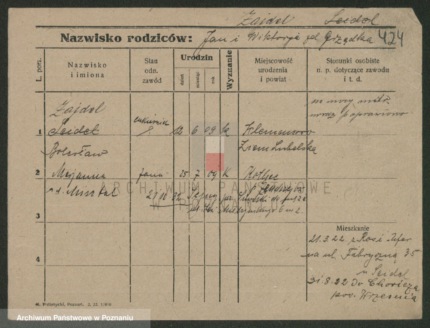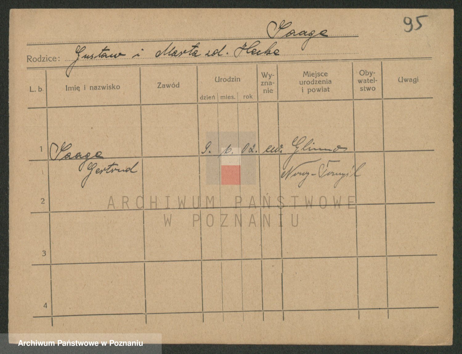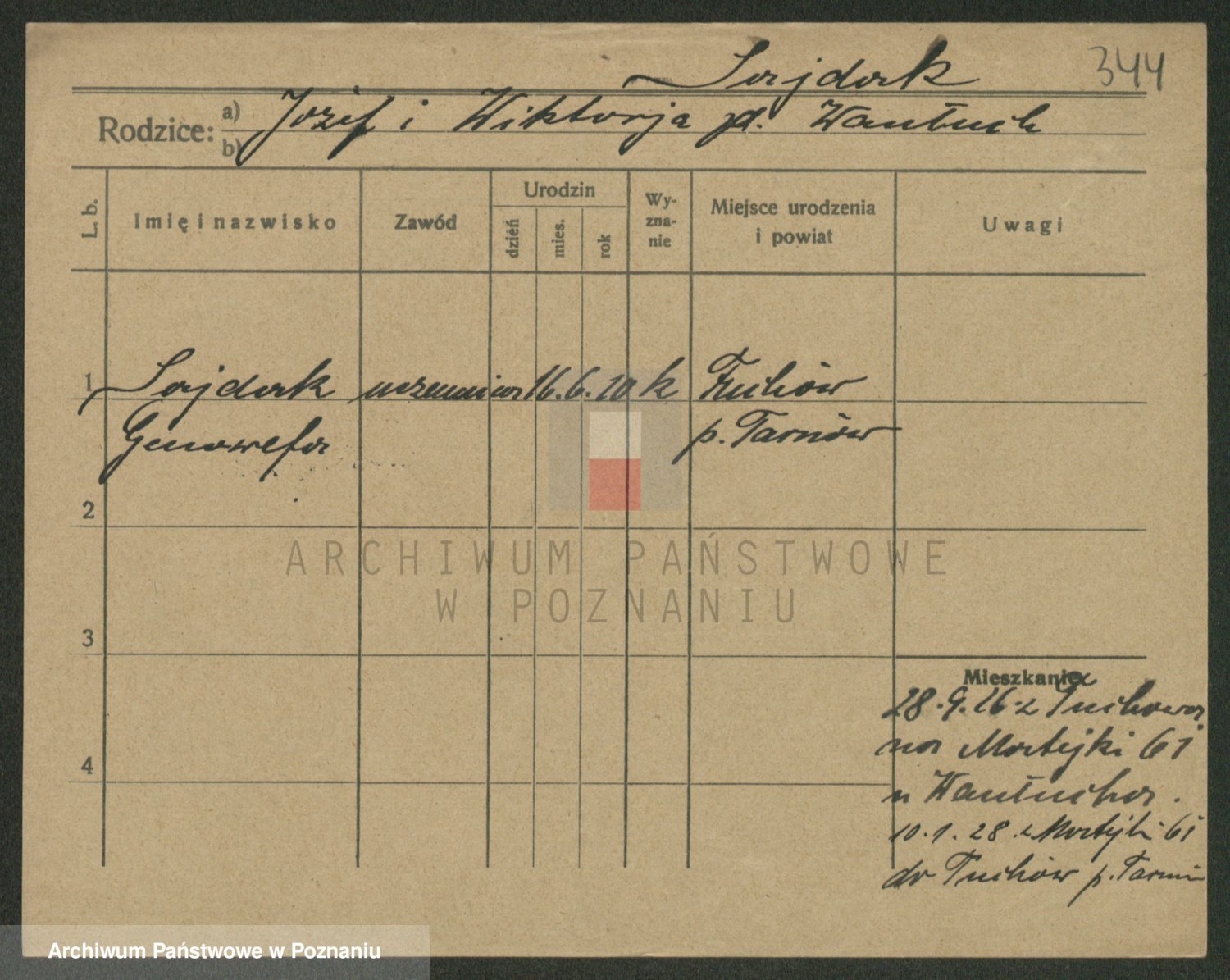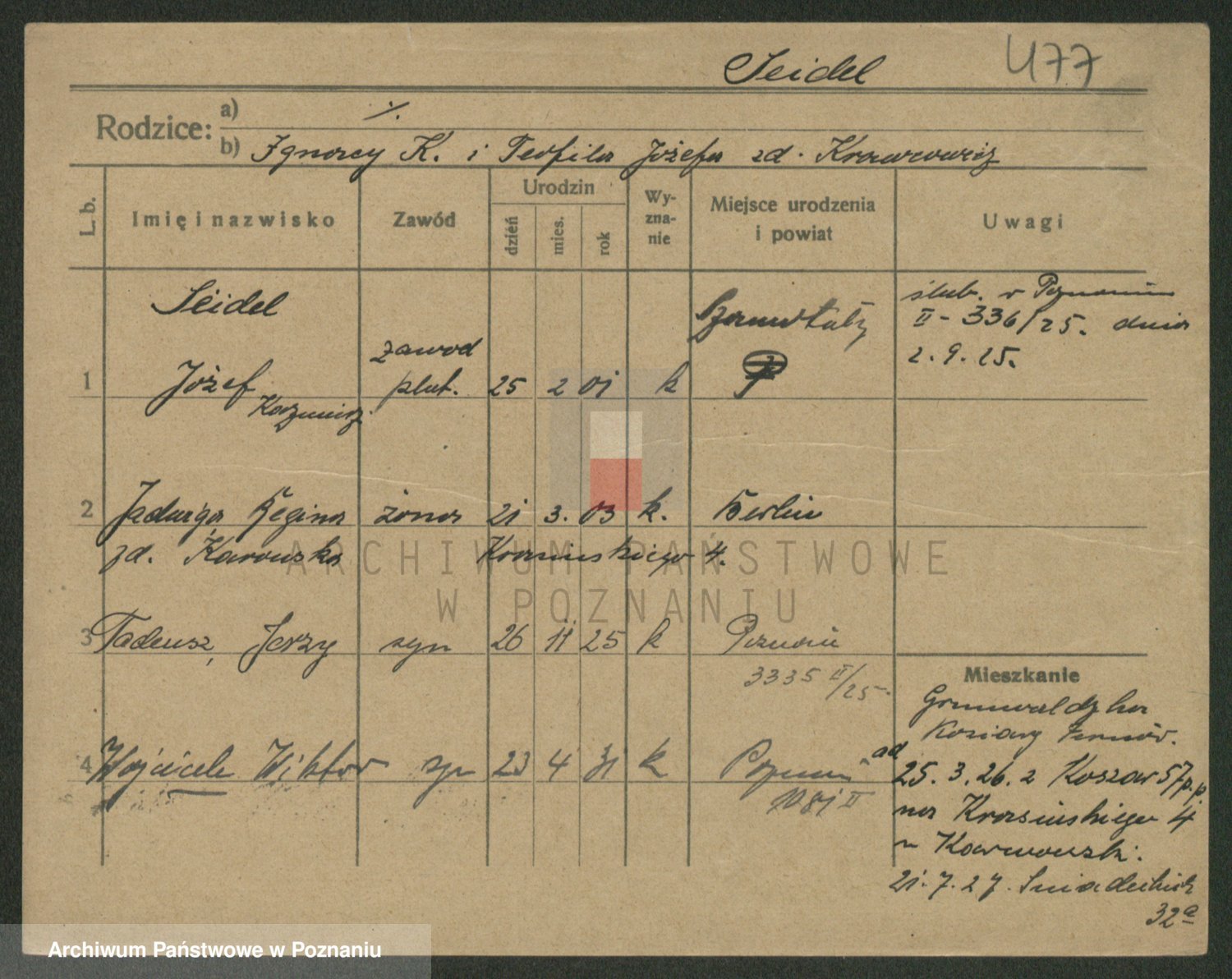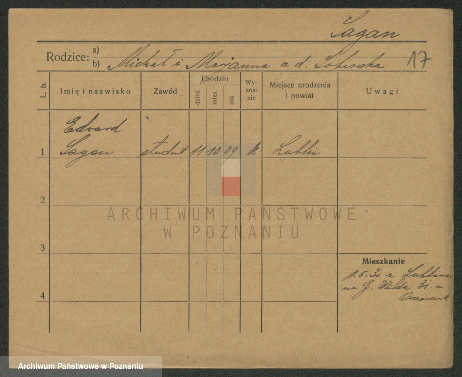 Podgląd karty osobowej dostępny jest po kliknięciu na nazwisko lub ikonkę karty. Można dokonywać powiększenia (ikony na górze) lub przechodzić między kolejnymi skanami (strzałki po bokach).