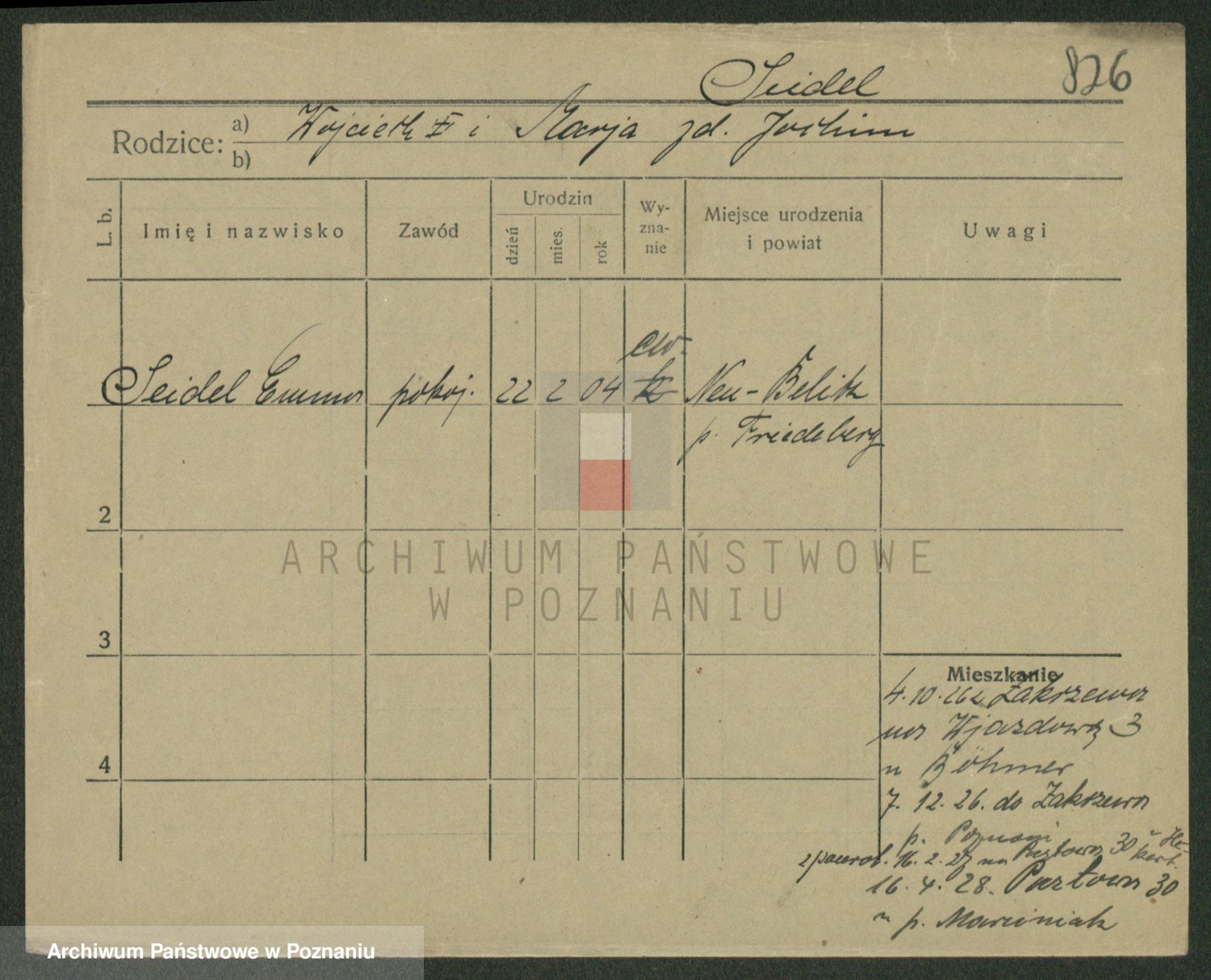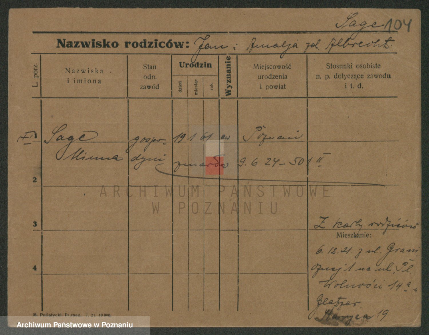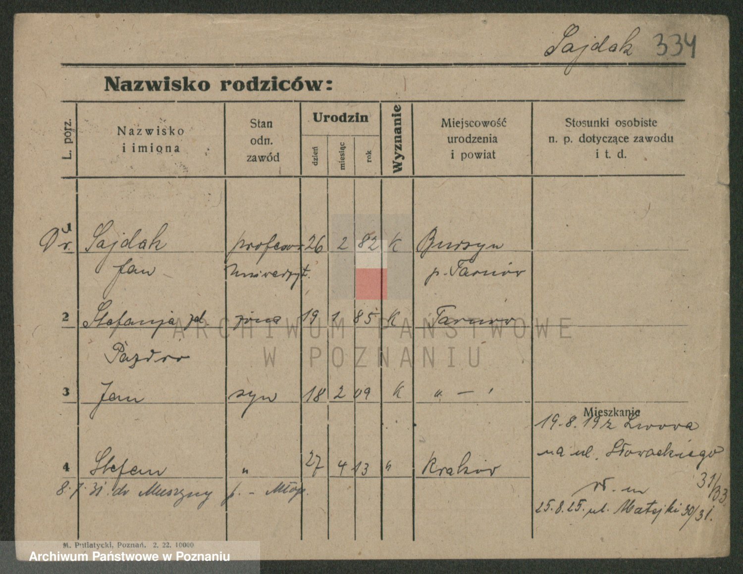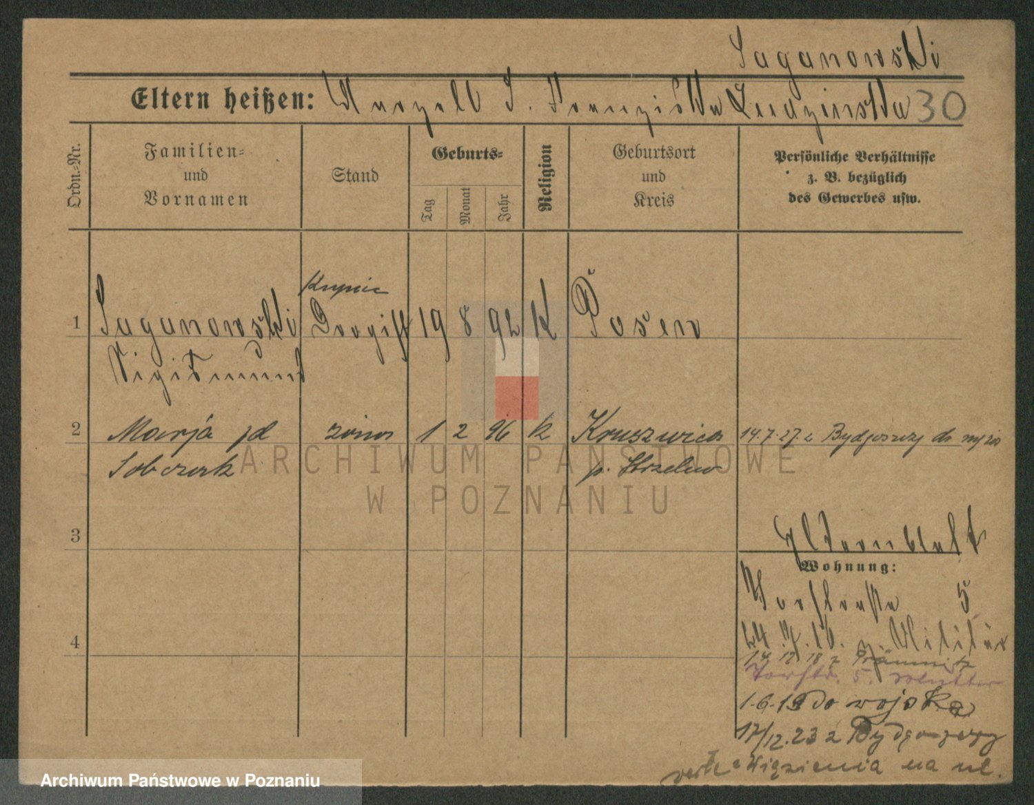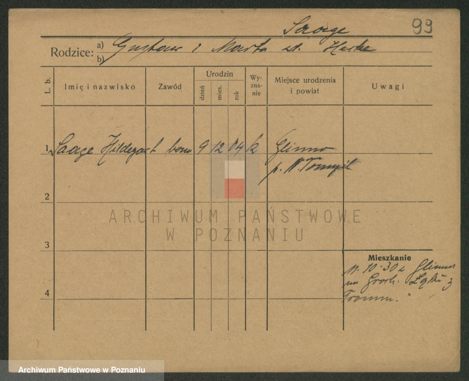Podgląd karty osobowej dostępny jest po kliknięciu na nazwisko lub ikonkę karty. Można dokonywać powiększenia (ikony na górze) lub przechodzić między kolejnymi skanami (strzałki po bokach).