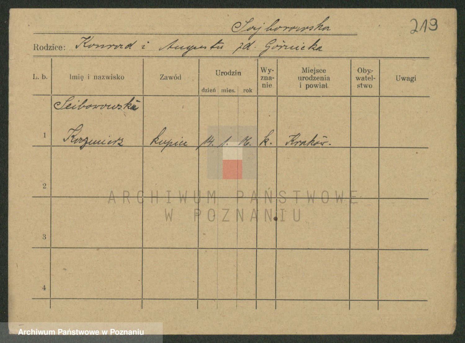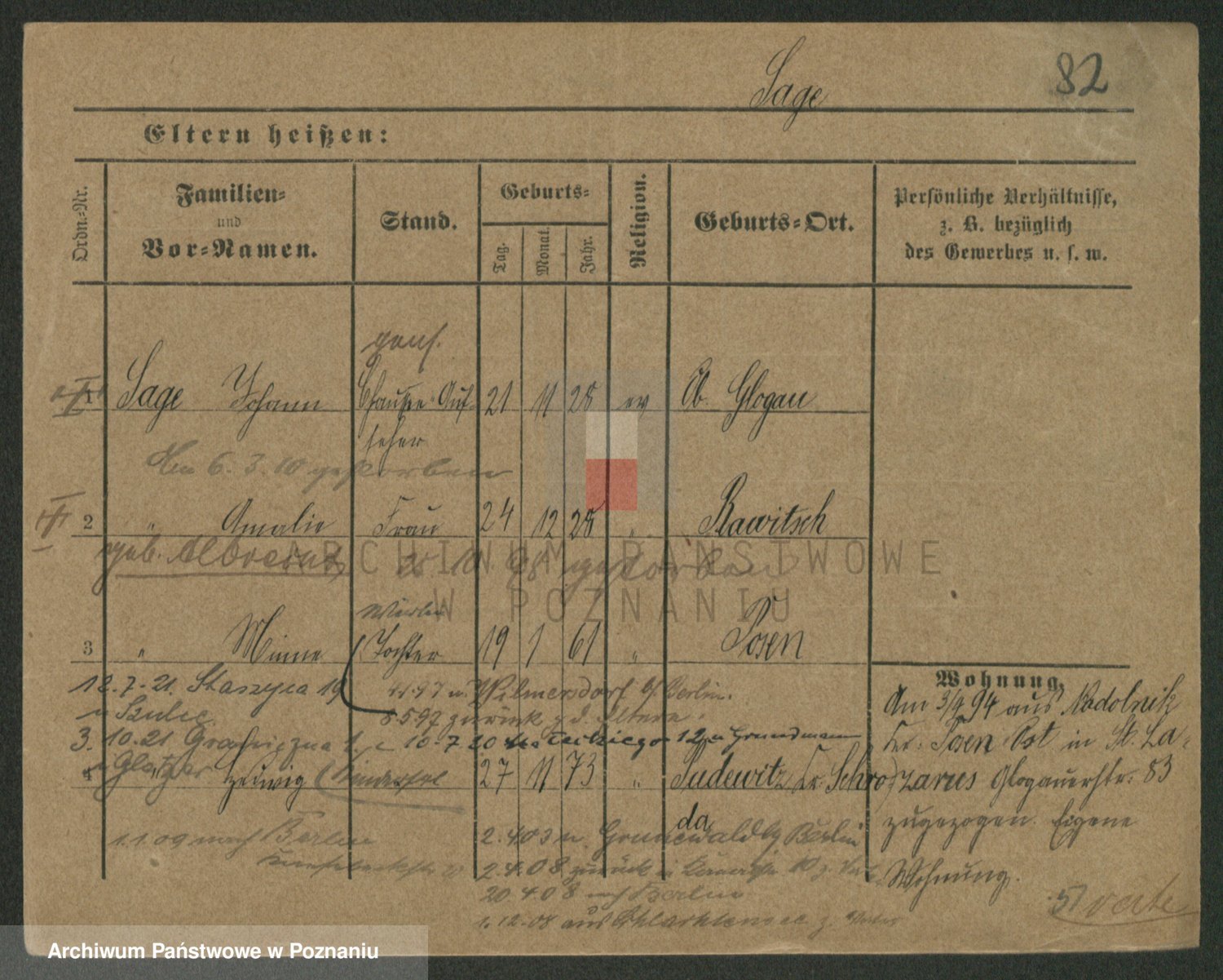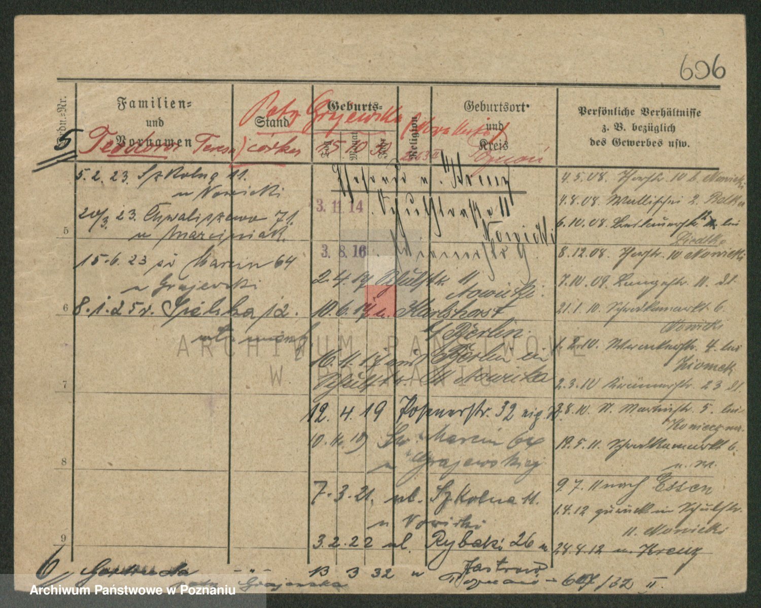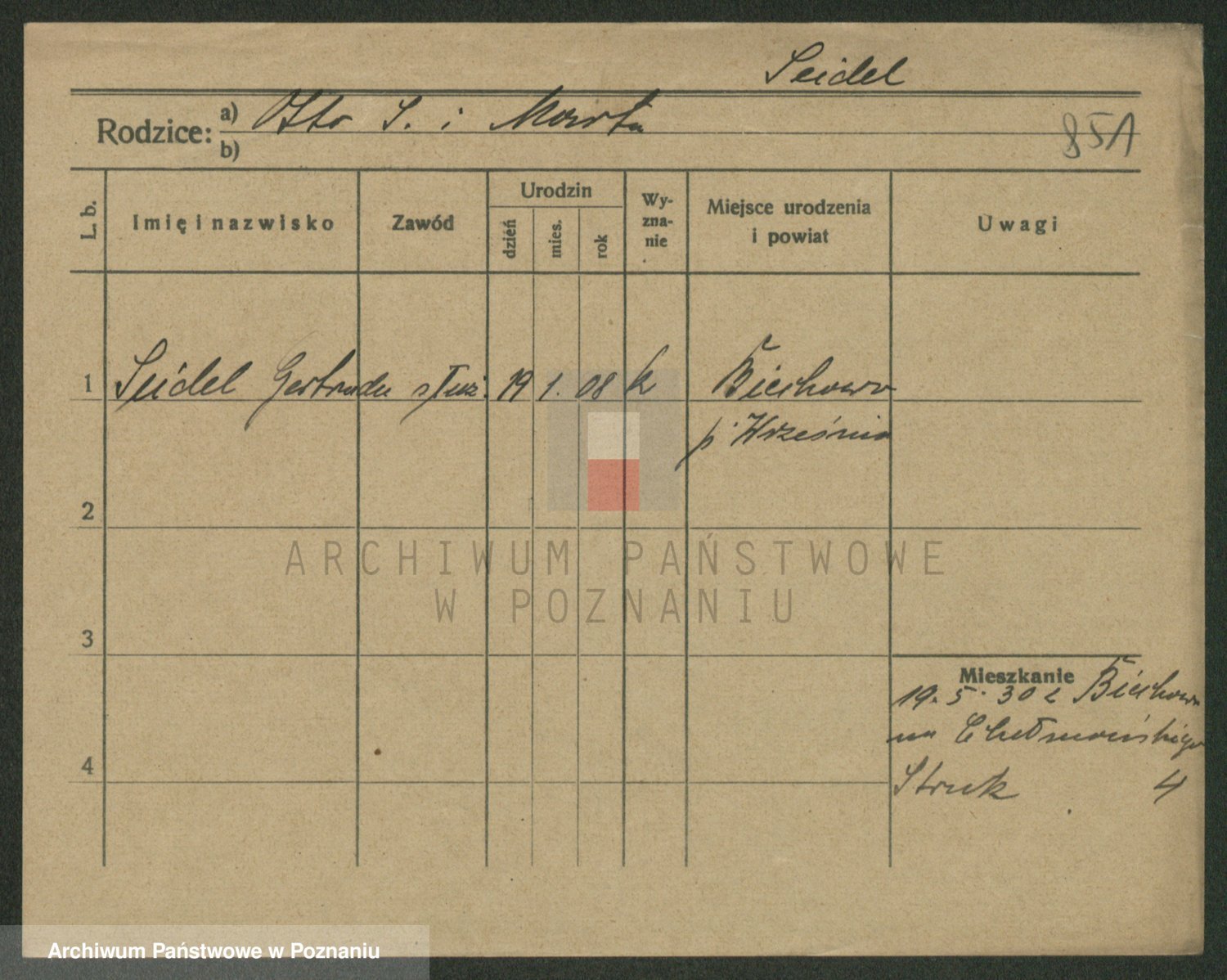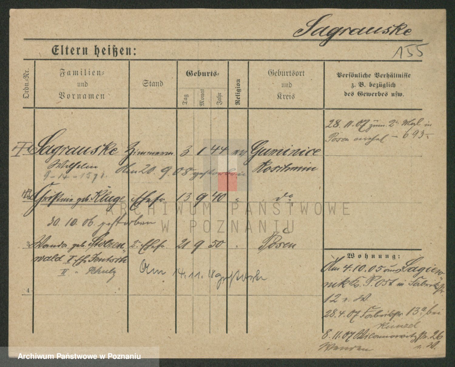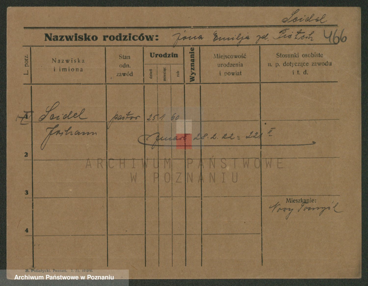 Podgląd karty osobowej dostępny jest po kliknięciu na nazwisko lub ikonkę karty. Można dokonywać powiększenia (ikony na górze) lub przechodzić między kolejnymi skanami (strzałki po bokach).