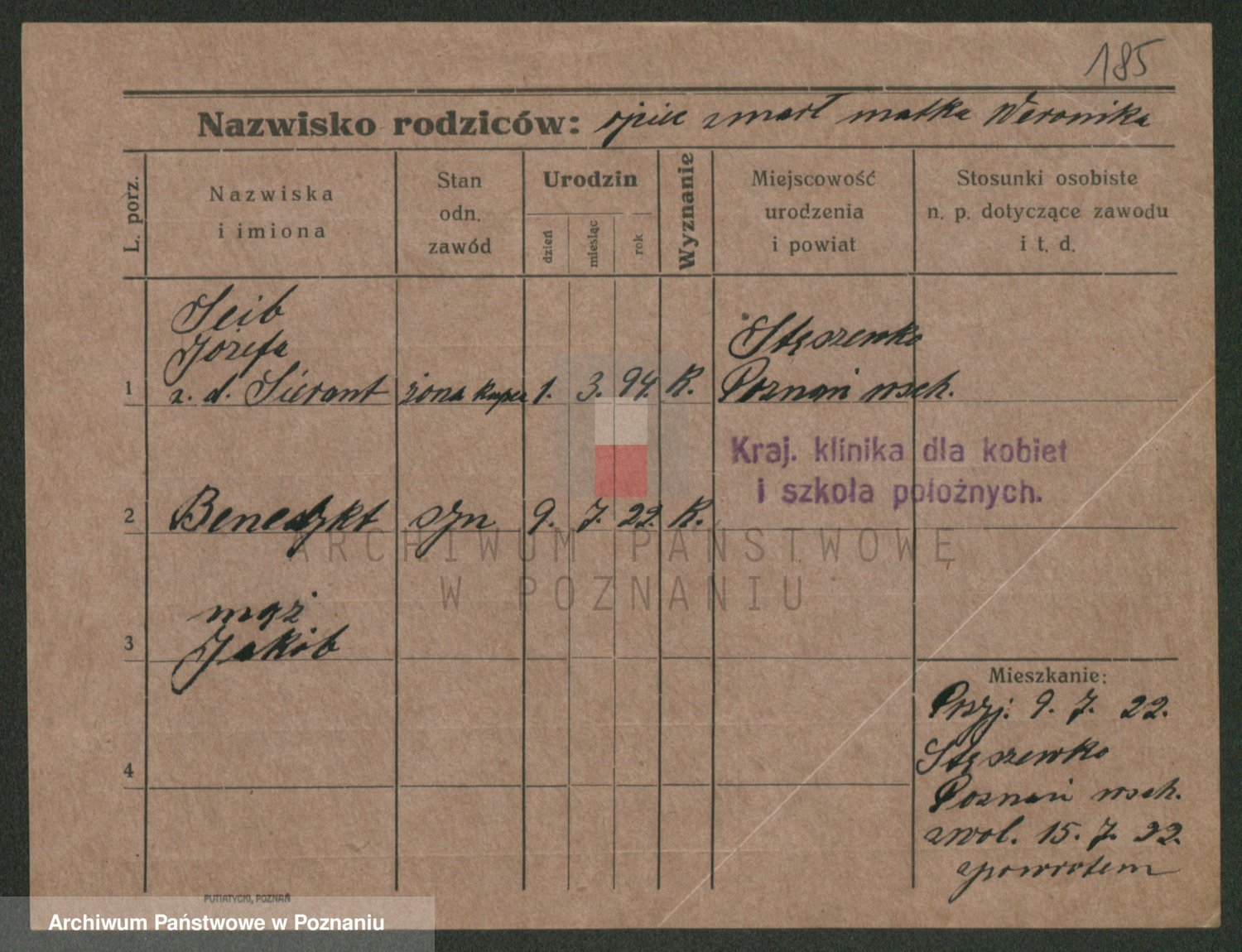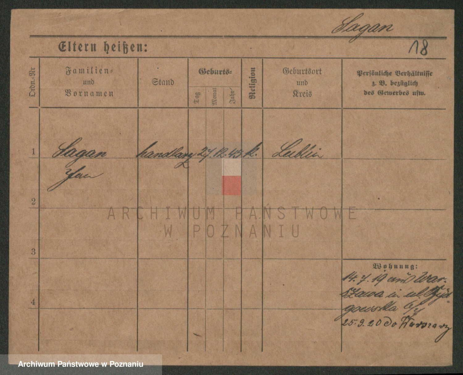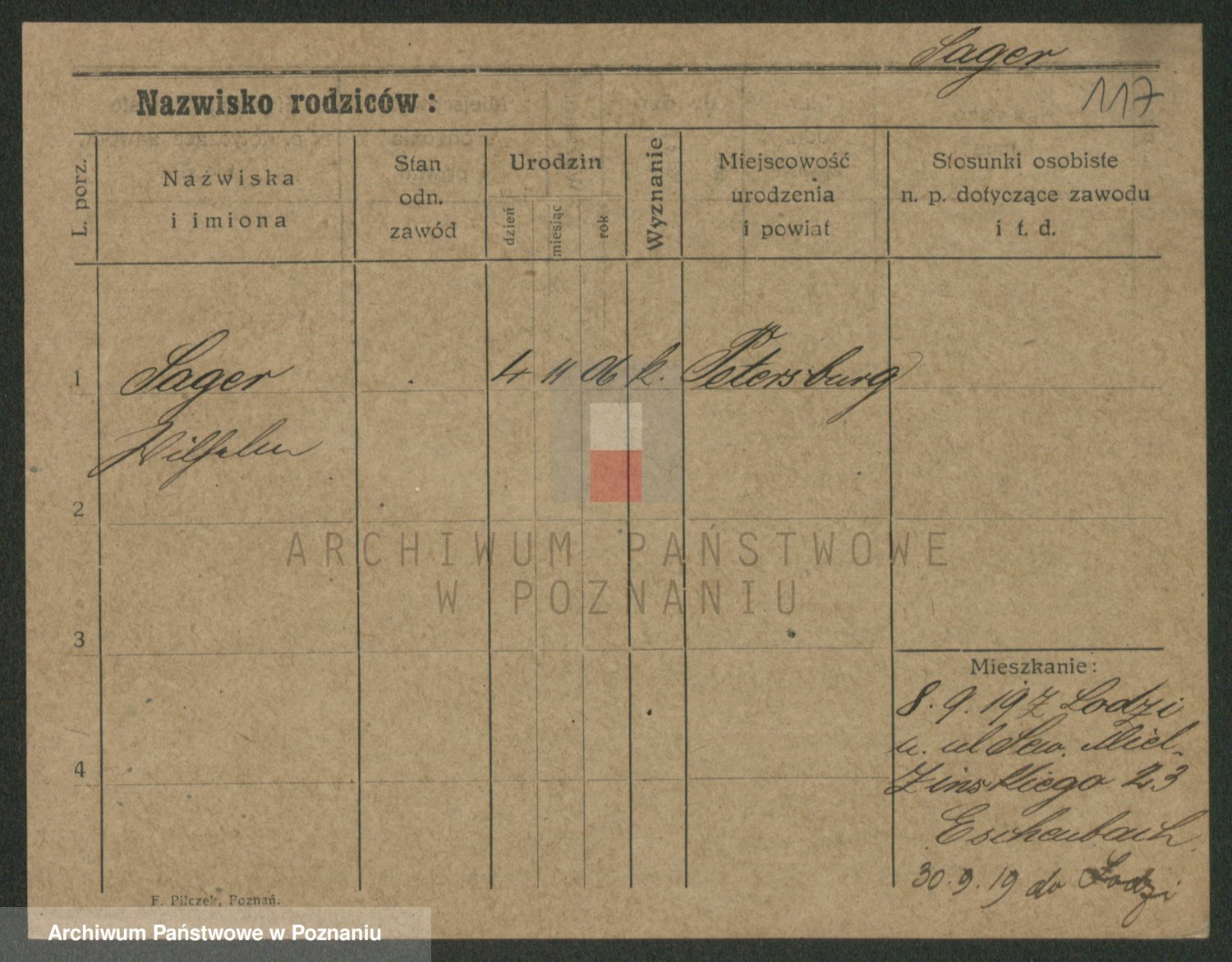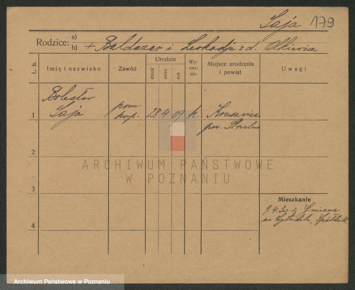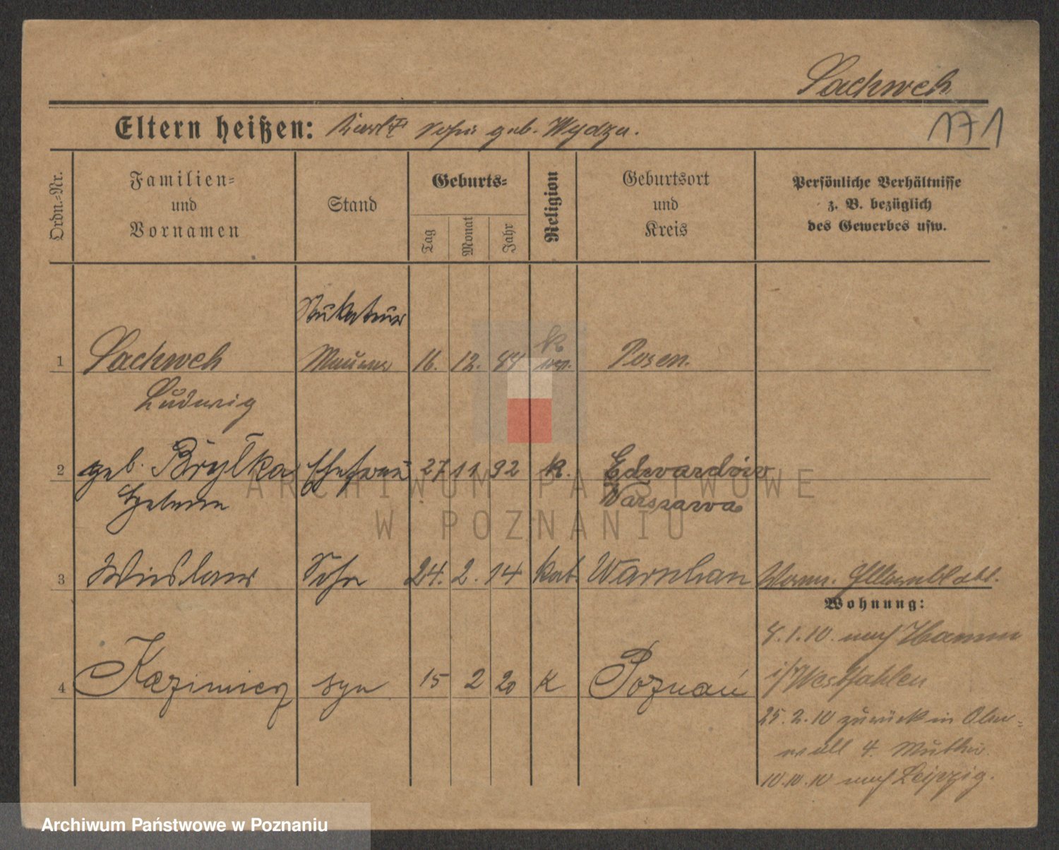 Podgląd karty osobowej dostępny jest po kliknięciu na nazwisko lub ikonkę karty. Można dokonywać powiększenia (ikony na górze) lub przechodzić między kolejnymi skanami (strzałki po bokach).