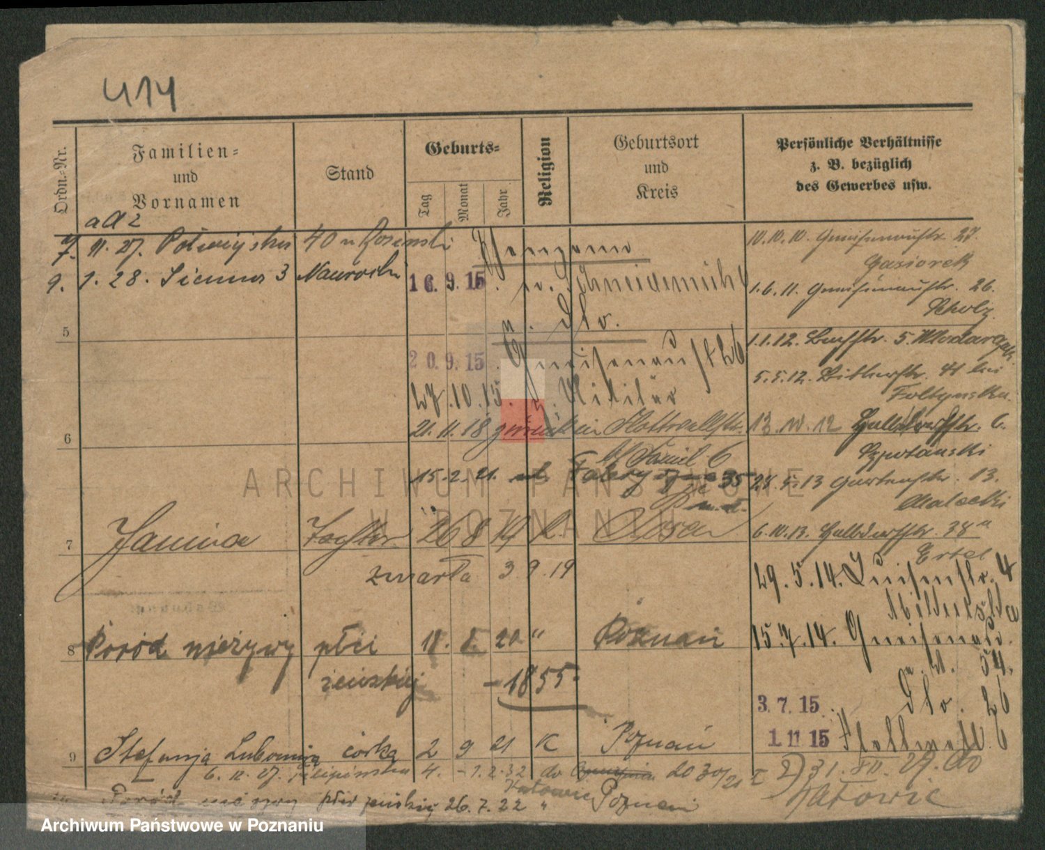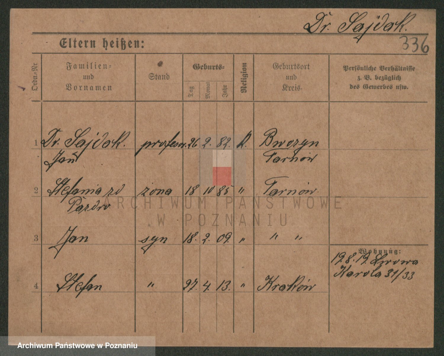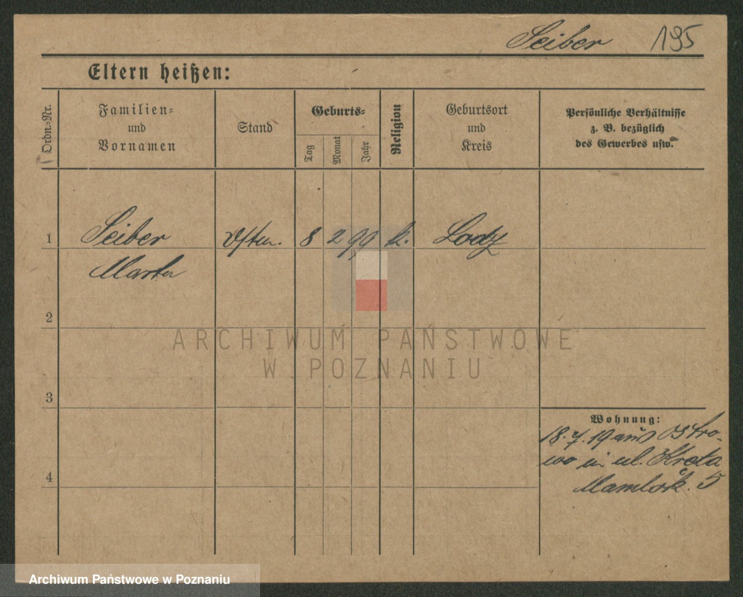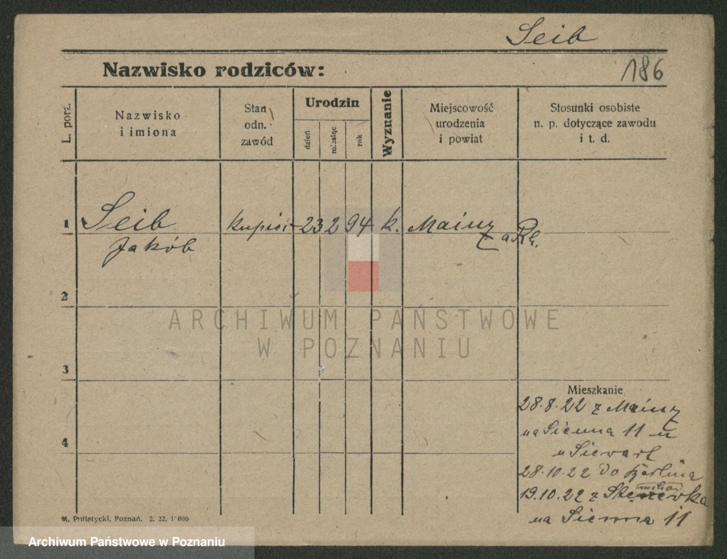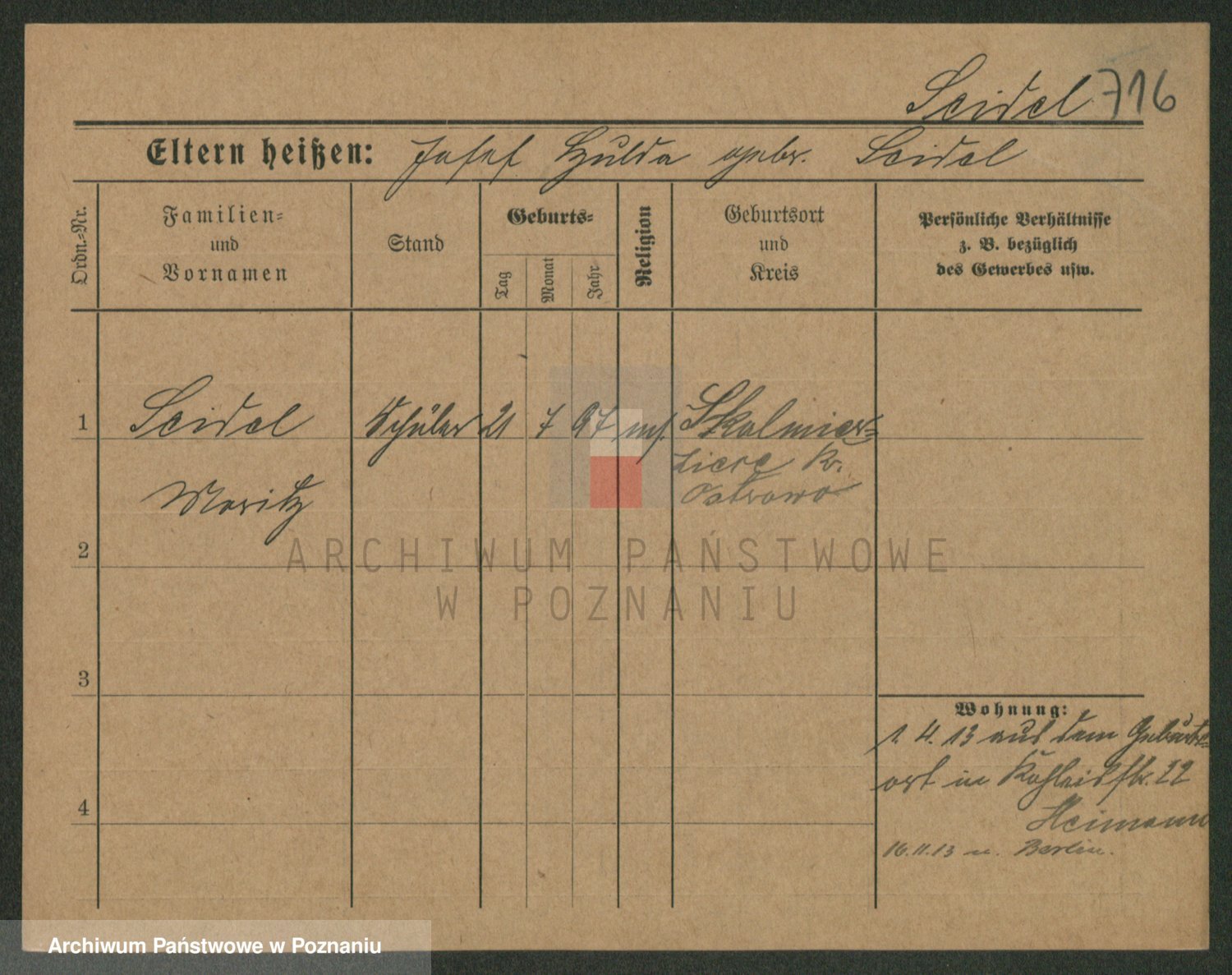 Podgląd karty osobowej dostępny jest po kliknięciu na nazwisko lub ikonkę karty. Można dokonywać powiększenia (ikony na górze) lub przechodzić między kolejnymi skanami (strzałki po bokach).