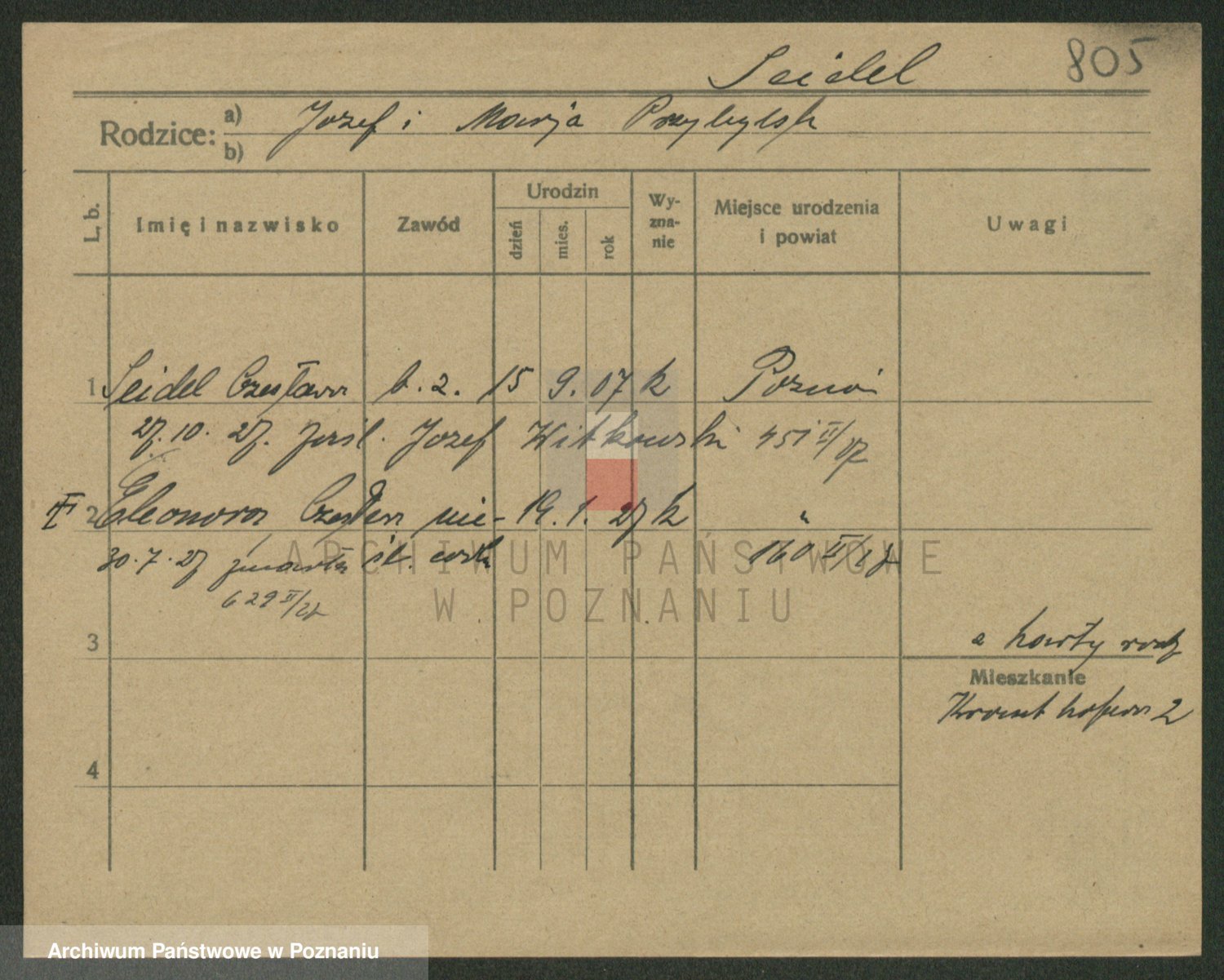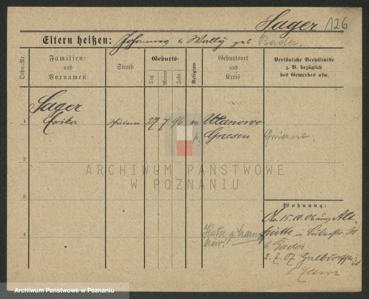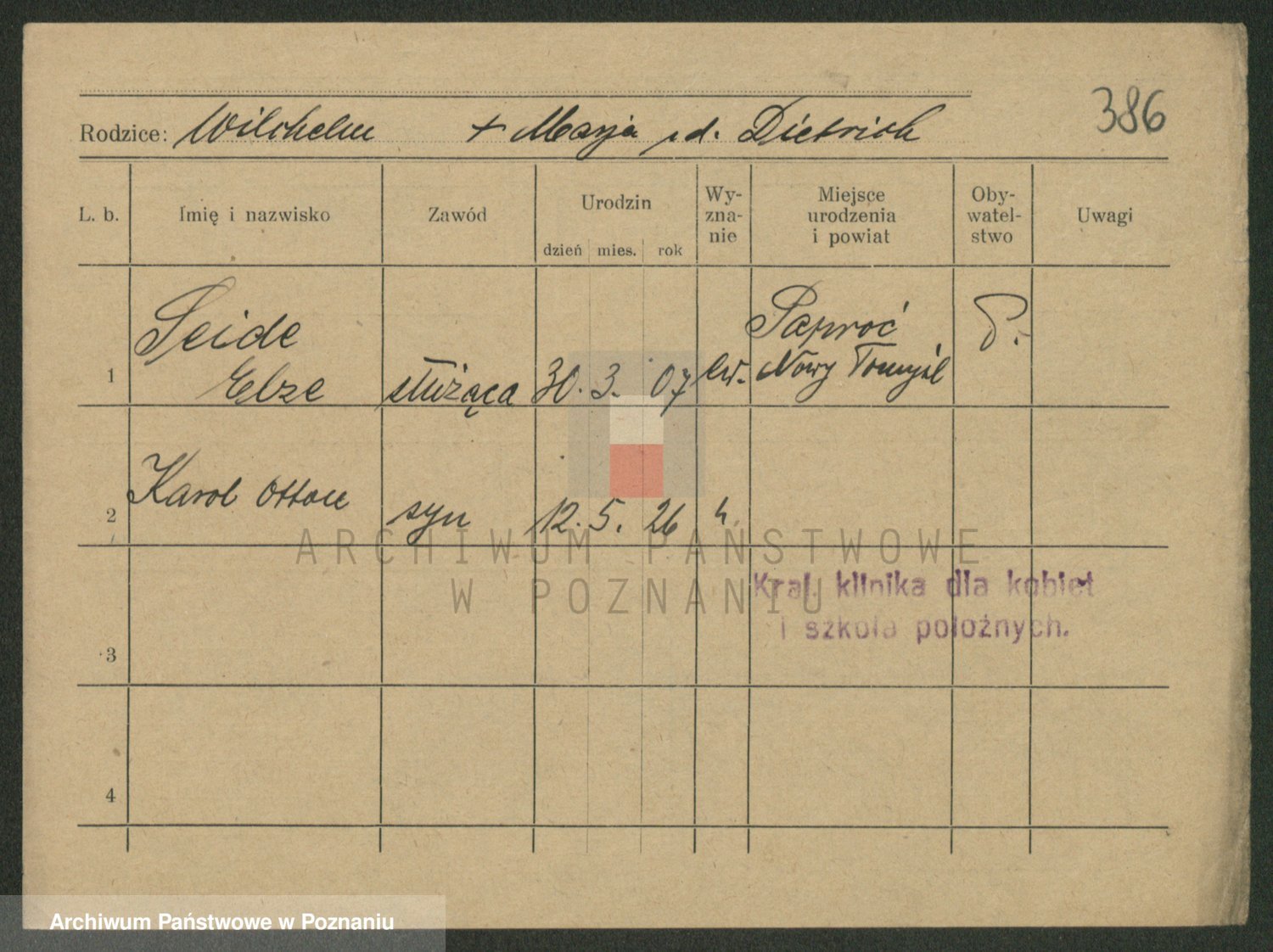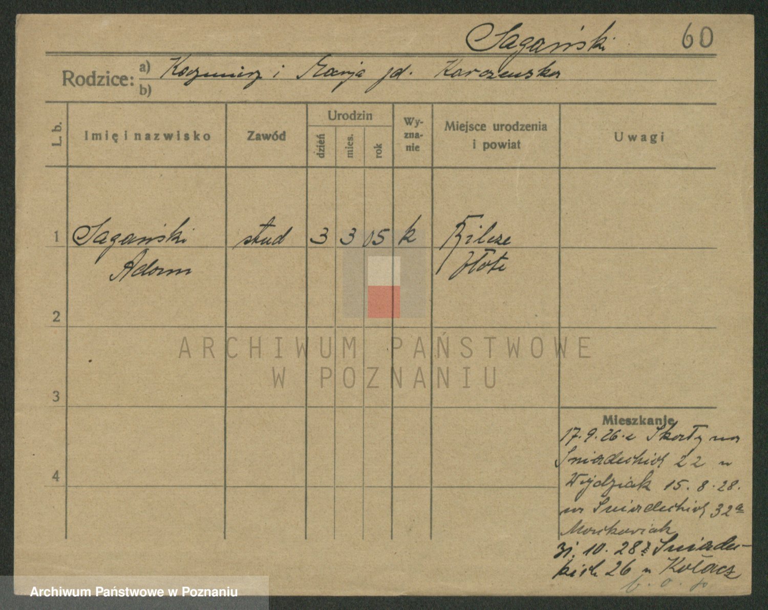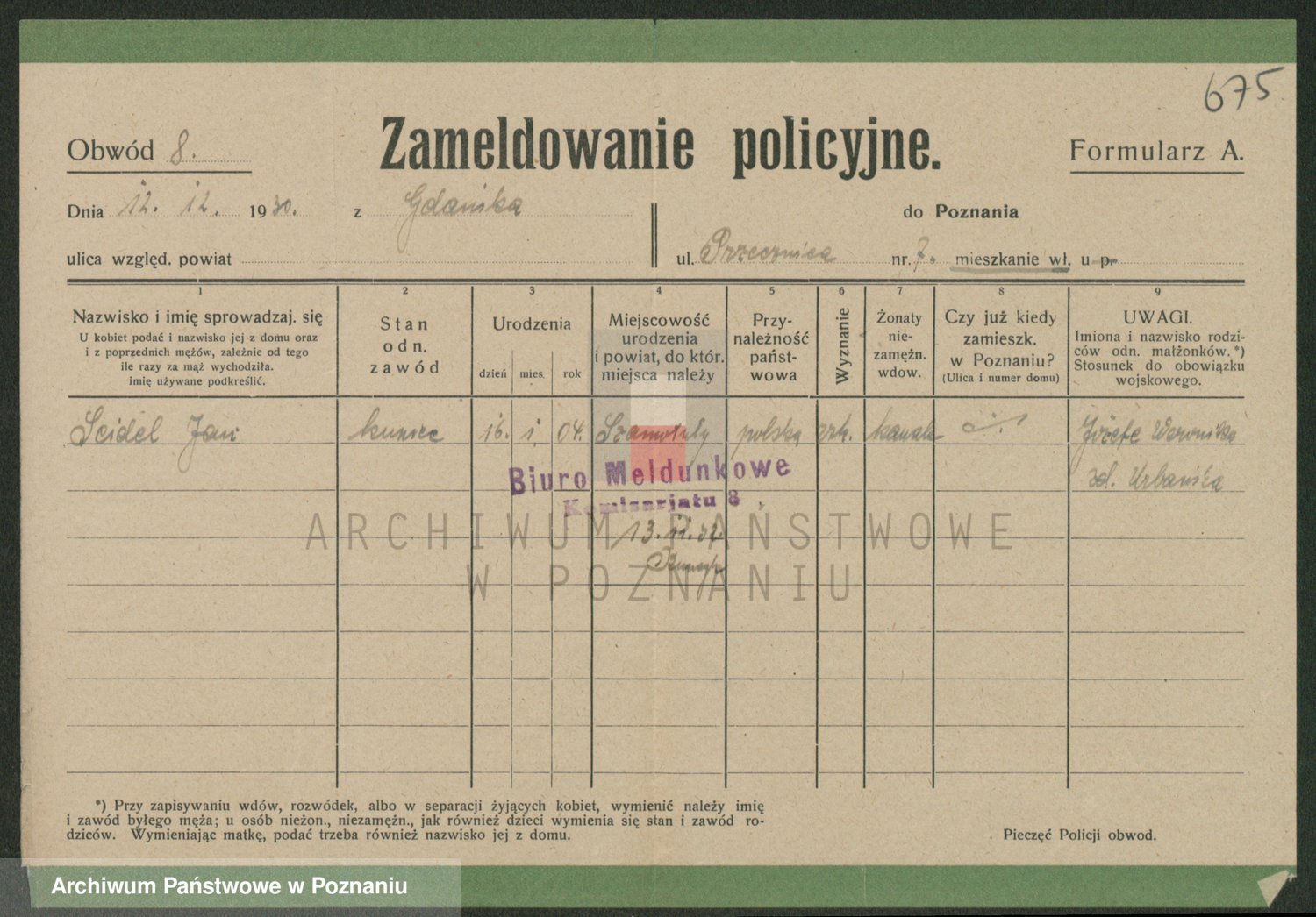 Podgląd karty osobowej dostępny jest po kliknięciu na nazwisko lub ikonkę karty. Można dokonywać powiększenia (ikony na górze) lub przechodzić między kolejnymi skanami (strzałki po bokach).