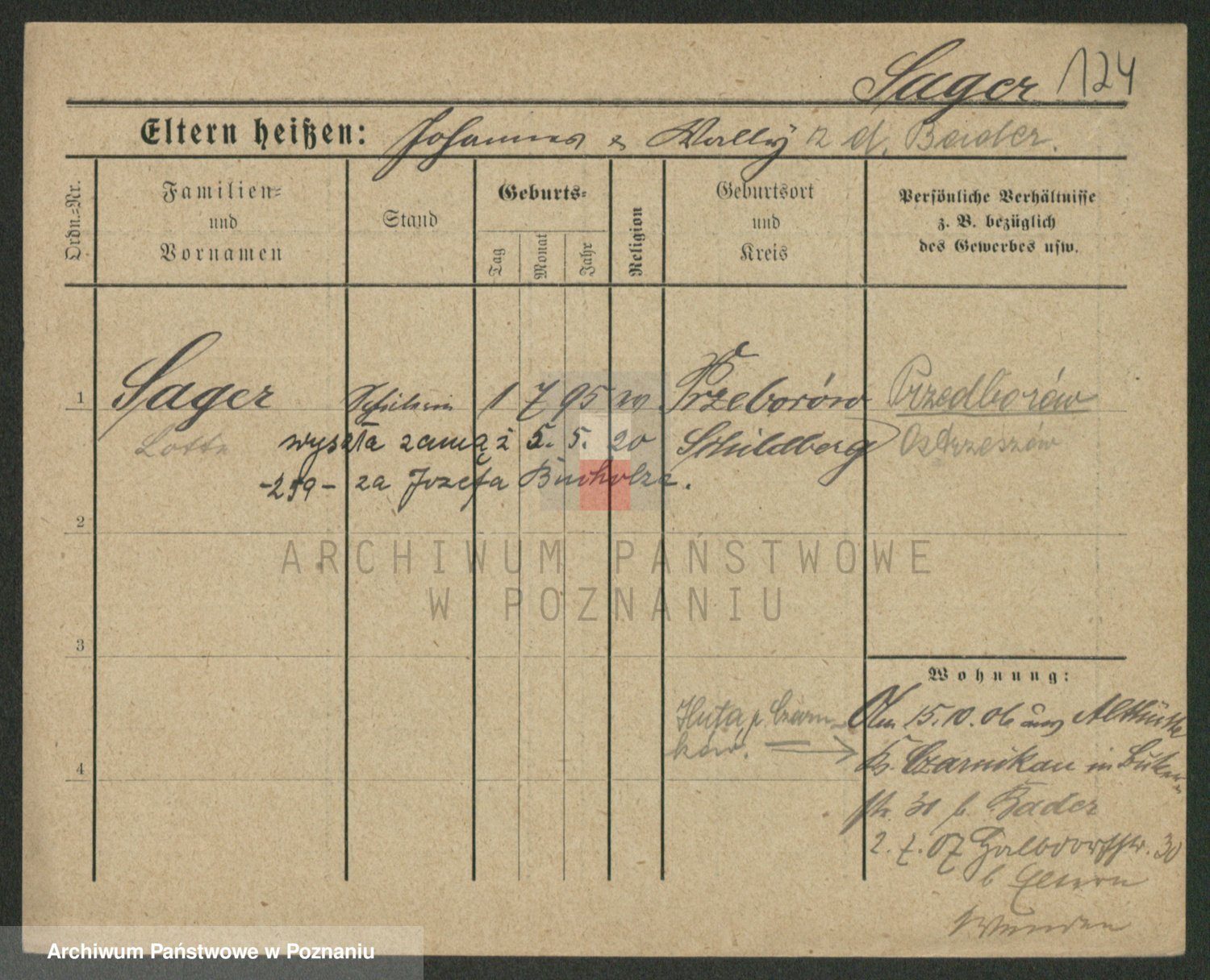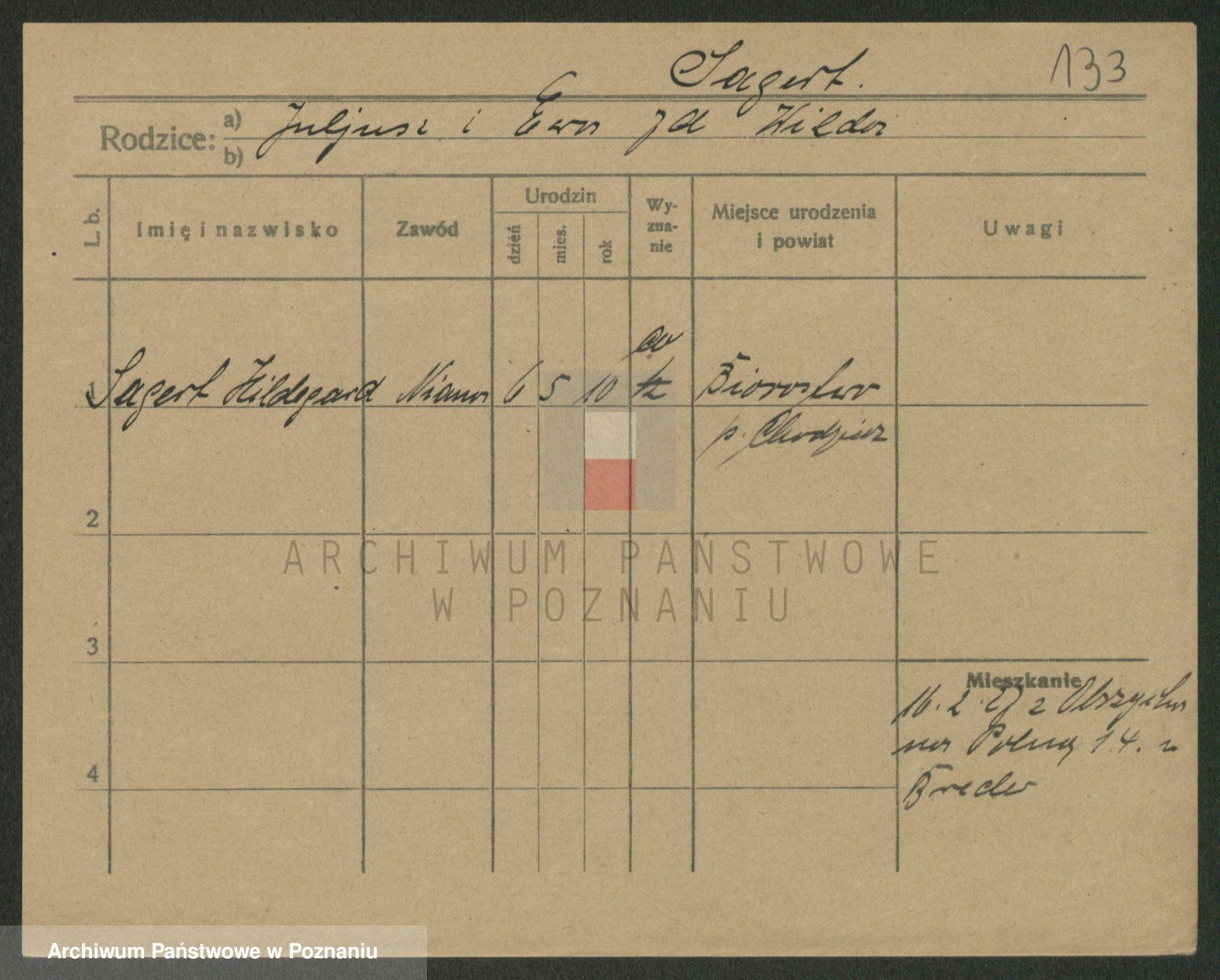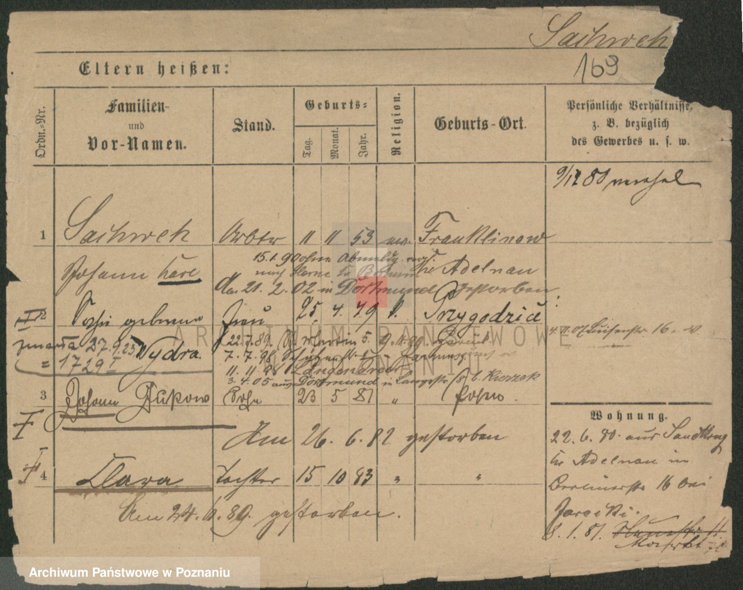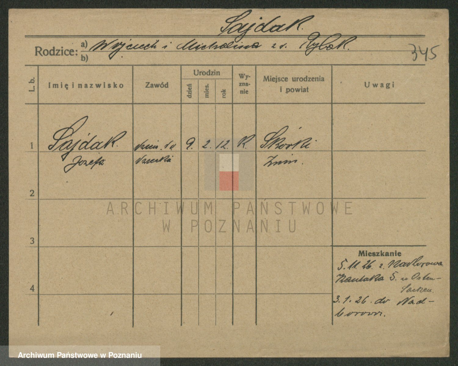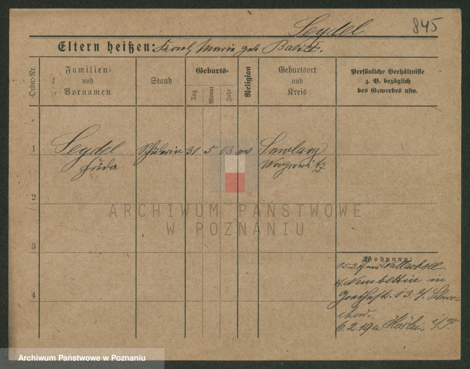 Podgląd karty osobowej dostępny jest po kliknięciu na nazwisko lub ikonkę karty. Można dokonywać powiększenia (ikony na górze) lub przechodzić między kolejnymi skanami (strzałki po bokach).