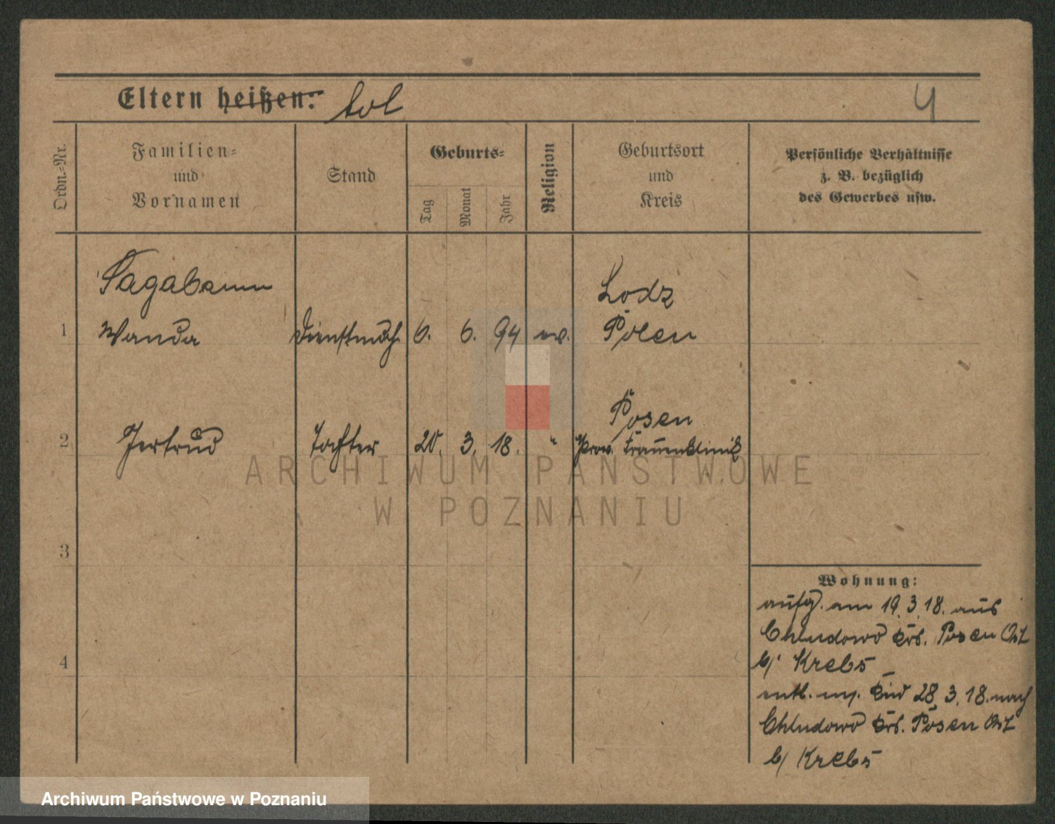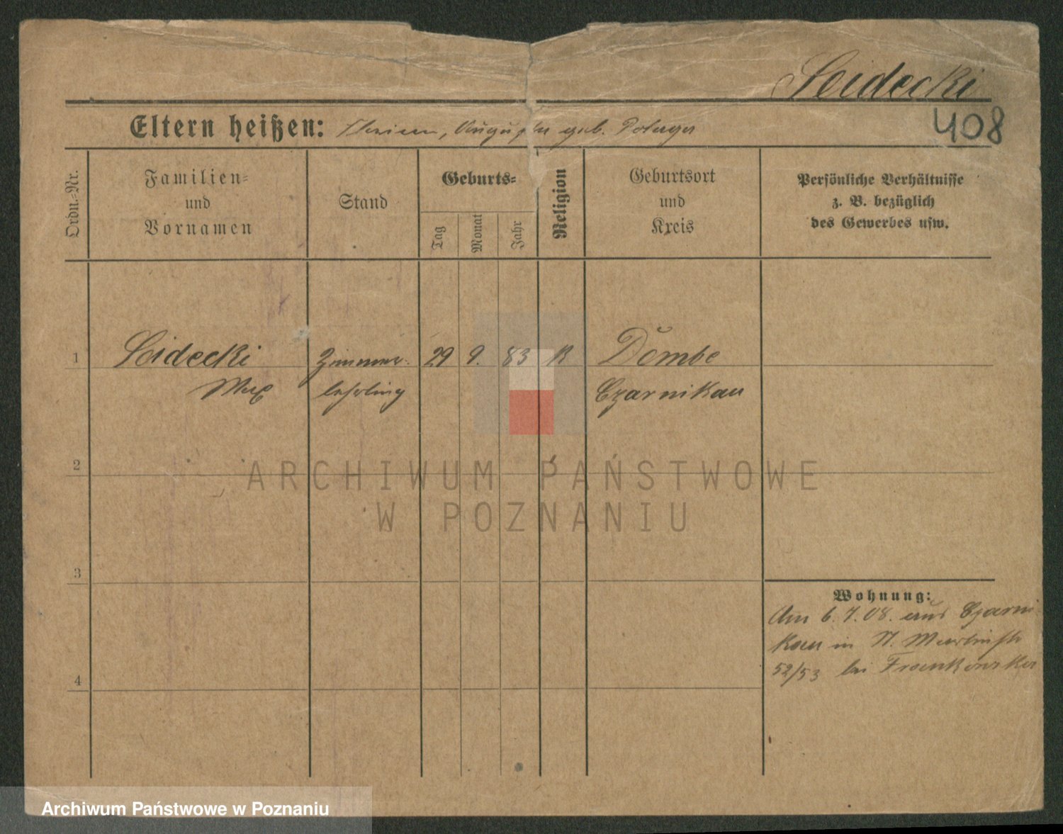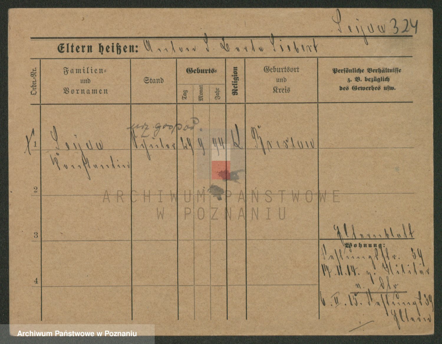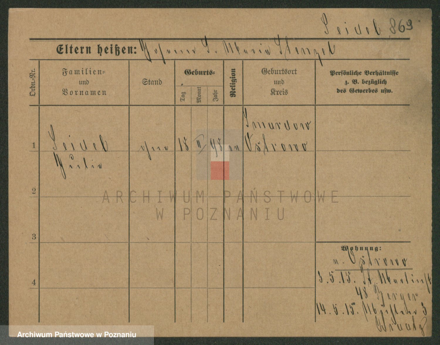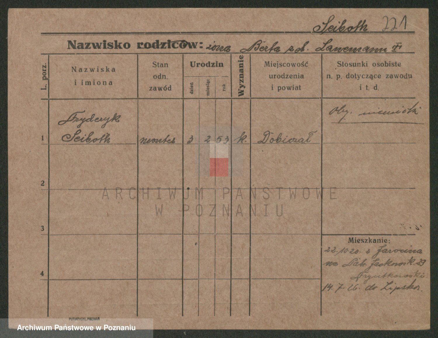 Podgląd karty osobowej dostępny jest po kliknięciu na nazwisko lub ikonkę karty. Można dokonywać powiększenia (ikony na górze) lub przechodzić między kolejnymi skanami (strzałki po bokach).