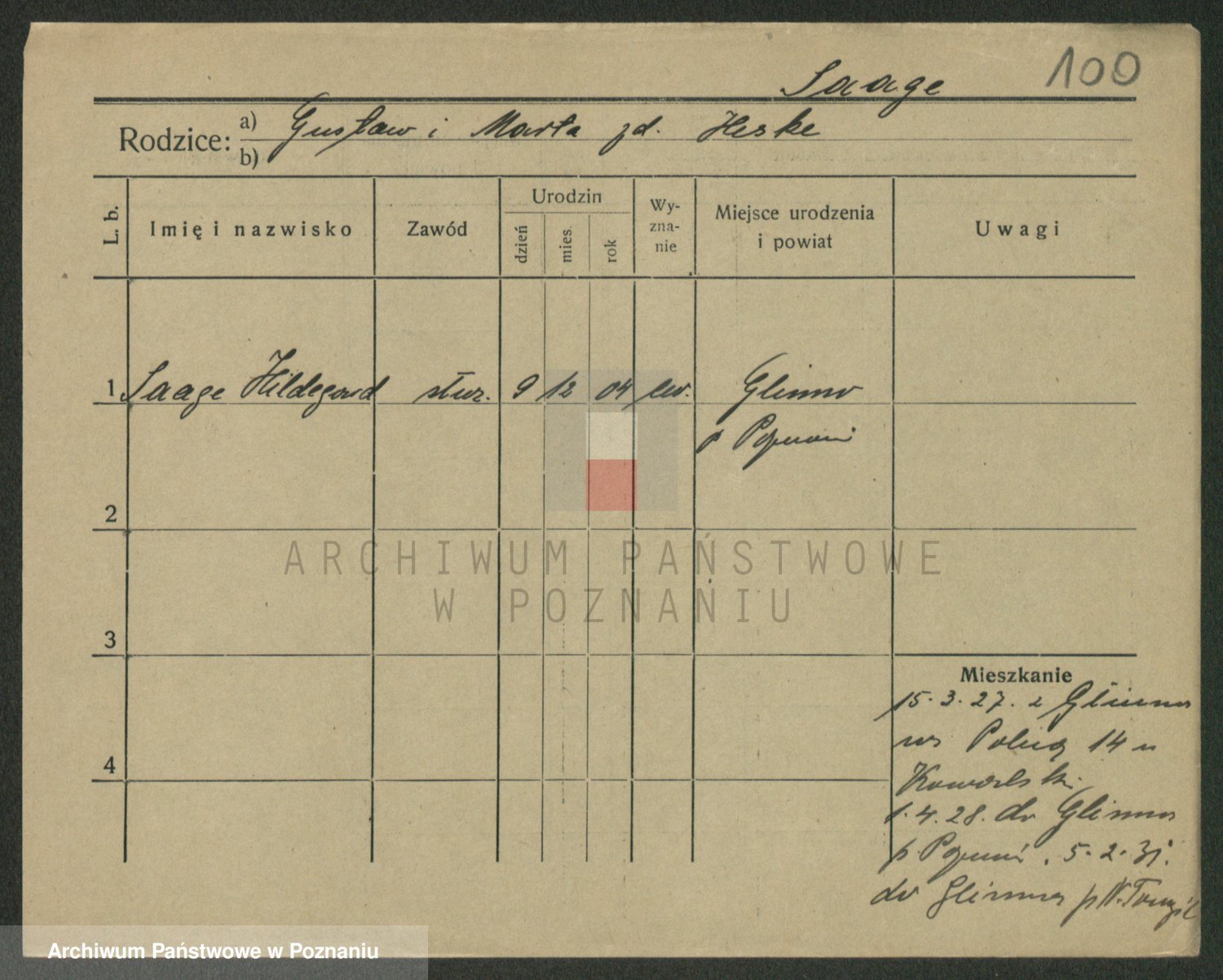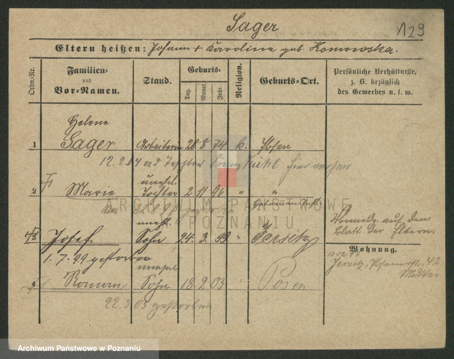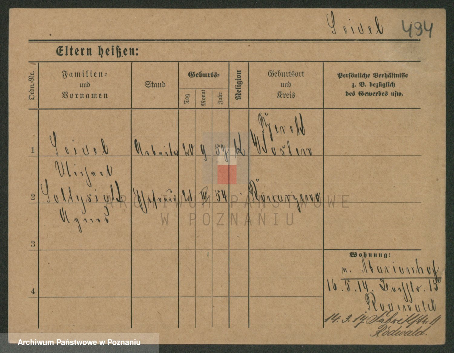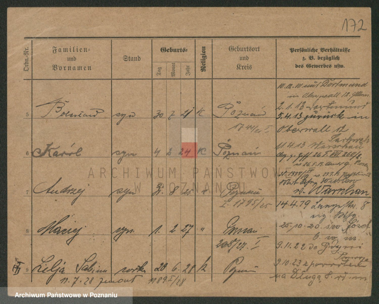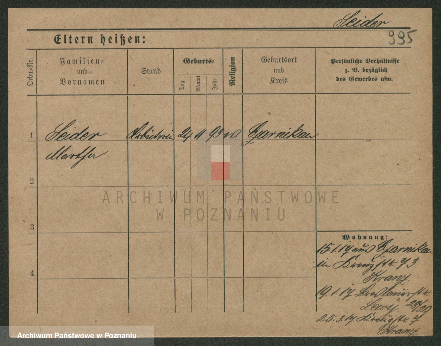 Podgląd karty osobowej dostępny jest po kliknięciu na nazwisko lub ikonkę karty. Można dokonywać powiększenia (ikony na górze) lub przechodzić między kolejnymi skanami (strzałki po bokach).